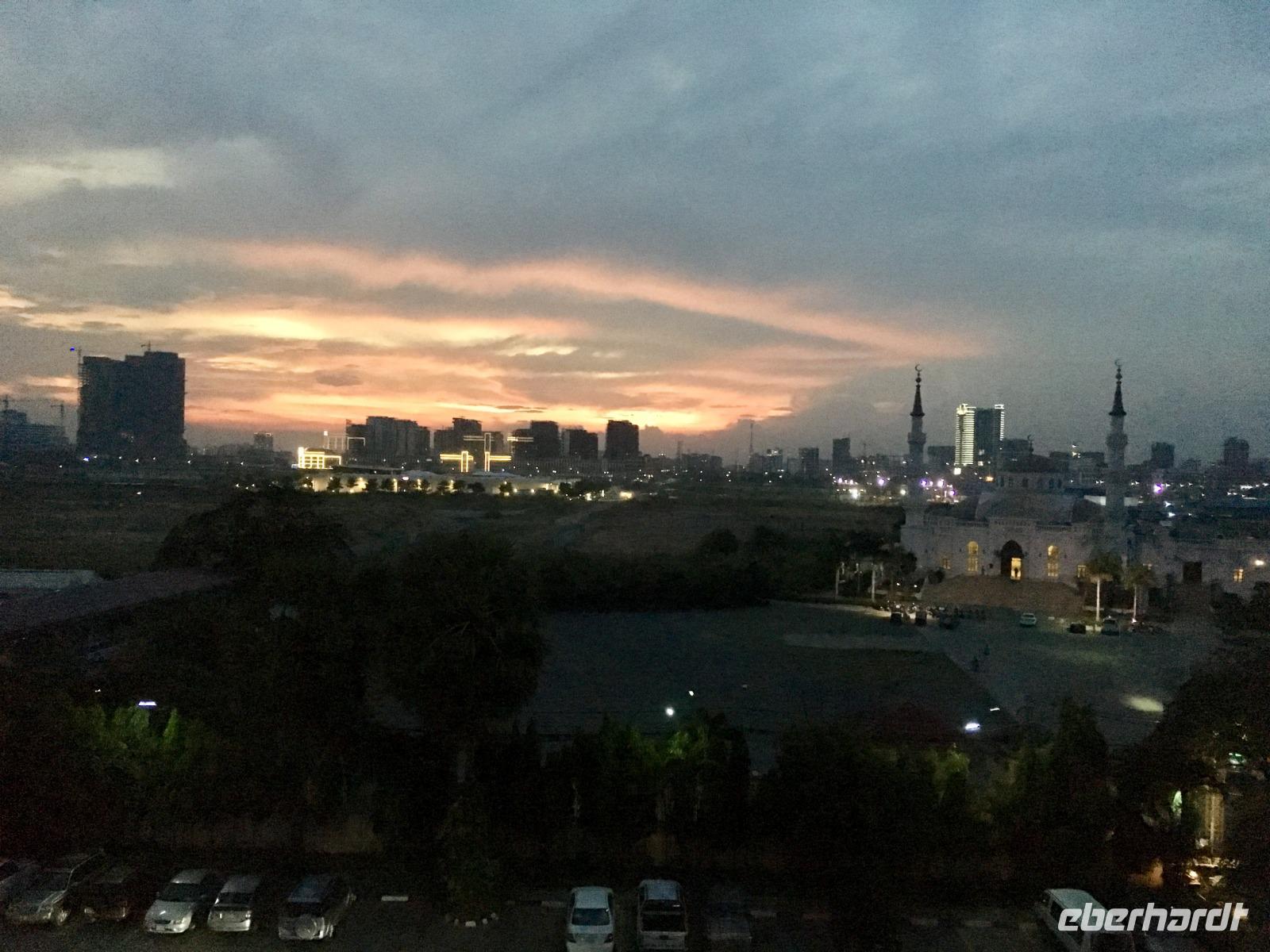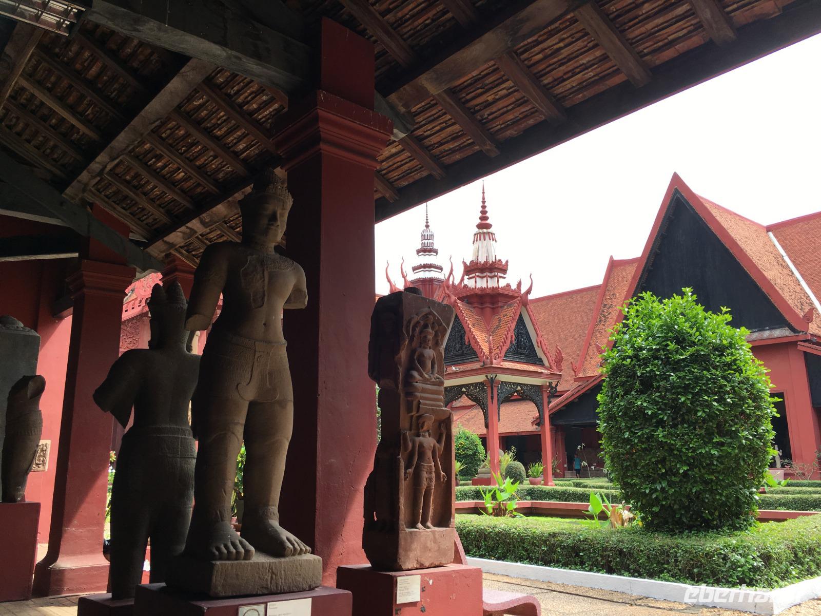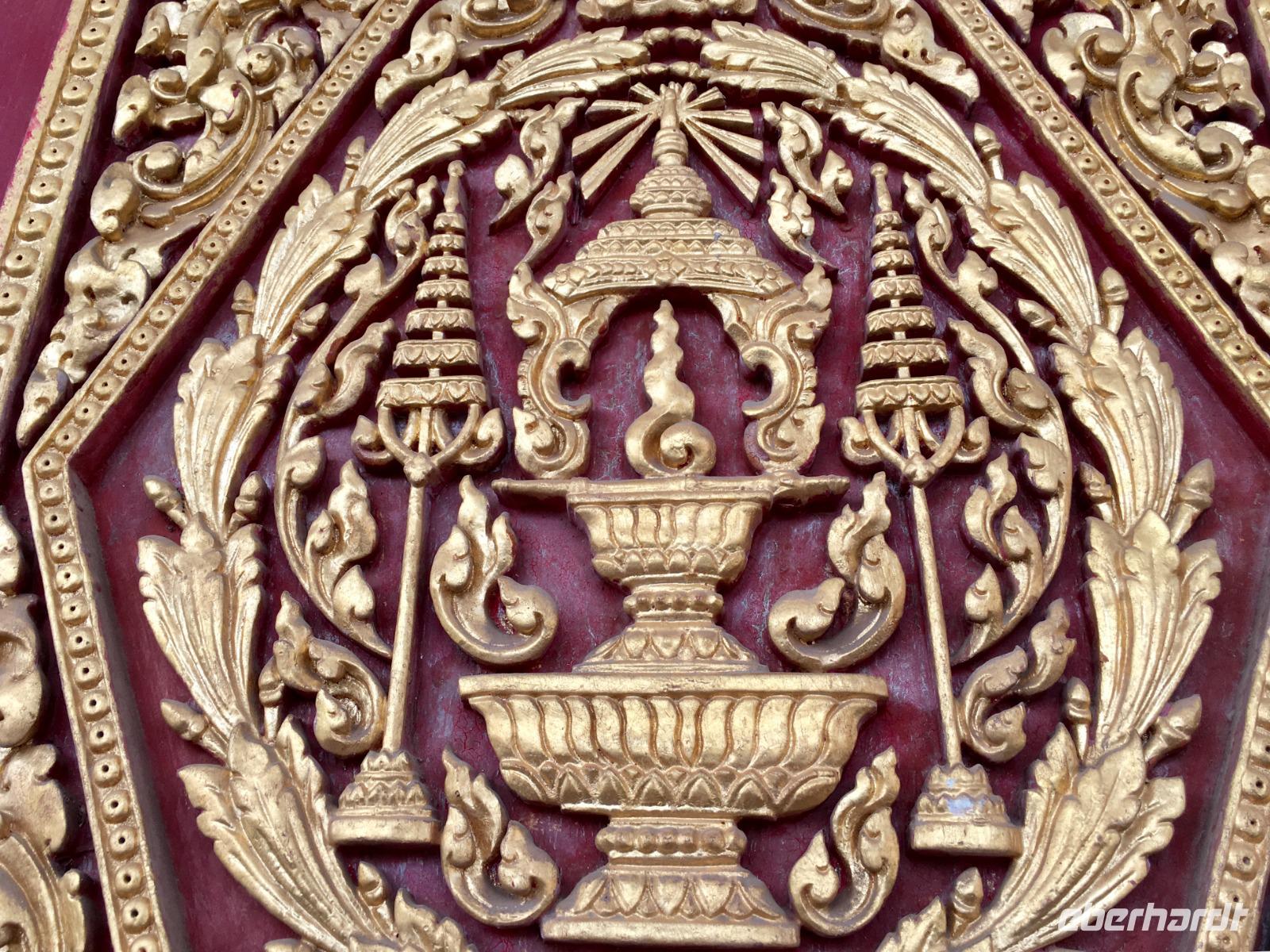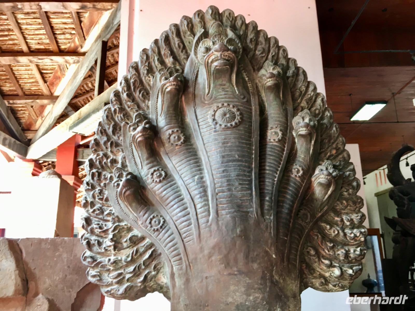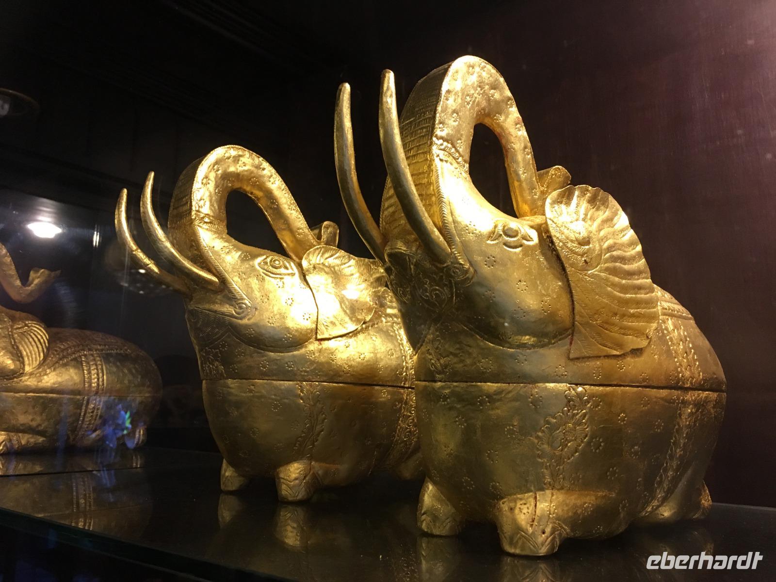 Um 8:00 Uhr sind wir schon startbereit. Der Himmel ist weisslich mit blauem Schleier, oder umgekehrt ! So viele Autos, Mofas und Motore verschmutzen die Luft. Thol wird unser Reiseleiter von nun an und er fuehrt uns auch gleich zum Kaiserpalast. Da er freier Reiseleiter ist, wird er kontrolliert und darf nicht immer das sagen, was wir hoeren moechten. Spietzel seien ueberall in diesem kommunistischen Land wo es seit 1 Jahr bloss noch eine Partei gibt, die Volkspartei. Er sei seit April ein Aktivist und lebe in einem Kloster, die Situation hier in Kambodscha sei sehr schwierig traut er uns an. Auf einer Flaeche von 391 Km2 leben hier in Phnom Penh rund 2 Mio Einwohner. Wir befinden uns hier 12 Meter ueber Meer, jedes Jahr steigt hier der Mekong zur Regenzeit bis zu 4 Meter an. Jedenfalls schauen wir uns vorerst die Prunkgebaeude des Kaiserpalastes an. Es ist ein sehr grosses Areal, mitten in der Stadt am Mekong Fluss gelegen. Die Empfangshalle ist wohl das Paradestueck mit seinem imposanten Aufgang und dem vergoldeten Dach. Hier werden bloss lokale Politiker empfangen keine auslaendischen. Daneben ist, hinter einer Mauer gelegen, der eigentliche Palast, wo der Koenig nach wie vor mit seiner Mutter, 5 Ehefrauen und 15 Kinderlein lebt. In der Naehe des Flusses sehen wir auch ein offenes Gebaeude, oder ueberdachter Platz. Es ist die Versammlungshalle, der kuehle Wind des Mekongs kuehlt hier die Koepfe der Besprechungs-teilnehmer. Nun noch die beruehmte Silber-Pagode. Der ganze Boden soll hier einmal aus Silber gewesen sein und in der Mitte sogar aus purem Gold. Ueber die Zeit, wurde es von verschiedenen Bewegungen «ausgetauscht». Wir stehen heute auf Blech. Aber die ganze Pagode ist sehr eindruecklich und Buddah sitzt in seinen 5000 Kg Gold, ganz oben mit seinem himmlischen Ausdruck des Erleuchteten. Na ja, das Gold wurde auch schon «ausgetauscht» denn man kann da einfach hingehen ! Ausserhalb sehen wir noch eine Stupa, die nicht angemalt ist, sie sei das Grabmal des verstorbenen Koenigs Sianouh. So viele herrliche, goldene Eindruecke bringen uns wieder zum Ausgang und dann gleich weiter zum National Museum. Leider sind alle Audio Guides schon besetzt also schauen wir uns mit Thol die wunderbaren Ausstellungsstuecke der Khmer Kunst an. Statuen, Bruchteile von Eingaengen und Mauerteile sind hier verwahrt sowie alte Stoffe, Kronen und Schmuck. Wir lernen ueber die Vor- und Nach - Angkor Zeit und auch, dass im 1907 der franzoesische Generalgouvereur dieses Museum hat bauen lassen. Koenig Siswath wurde damals zur Eroeffnung eingeladen. In Kambodscha gibt es Buddisten und Hindus uns so sehen wir Vishnu mit seiner vielzahl von Armen, Nagha als mehrere Schlangen dargestellt, Ganesh der Elefant und immer wieder Apsara Taenzerinnen in ihren grazioesen Positionen sowie Buddah mit seinem serenen Gesichtsausdruck und Ngeh das Fabeltier. Aber auch hier im National Museum sind wir von Spietzel umringt was die Erklaerungen sehr nuechtern haltet. Nun gehts aber zum Mittagessen in ein nahegelegenes Restaurant. Die wunderbaren Curries und Suppen schmecken sehr lecker. Danach noch den obligaten Besuch der Pagode nach der diese Stadt benannt wurde. Wat Phnom wurde bereits im 1373 auf einem Huegel erbaut und thront in seinem vollen Glanze nach wie vor ueber der Stadt. Am Nachmittag ist nun etwas Freizeit angesagt. Der Pool mit dem kuehlen Wasser lockt. Einige kommen gegen Abend mit zur Uferpromenade, denn dort wollen wir einfach dem Leben der Kambodschaner zuschauen. Einige zieht es zum Hardrock Cafe, da das T-Shirt als Andenken an diese Stadt in der Garderobe nicht fehlen darf. Uebermorgen ist hier ein grosses Fest, das jaehrliche Wasserfest, angesagt. Die Drachenboote welche mit 80-100 Ruderer bestueckt sind ueben schon und die alten Dschunken wurden mit riesen Leuchtbilder versehen und stehen nun am Siswath Quay bereit zur Besichtigung. Unsere Bierchen und bunten Cocktails auf der wunderbaren Terrasse untermalen das Treiben der Uferpromenade sehr angenehm. Das Hotel ist bloss 4 TukTuk Dollar entfernt. Noch schnell umziehen und dann ab zum schmackhaften Abendbrot in einem Gartenrestaurant am Mekong. Das war ein voller, schoener Tag und die geraeumigen Zimmer warten schon auf uns. Wenn man mal herausgefunden hat, wie das Licht ausgeht und die Klimaanlage an bleibt darf man auch schlafen gehen.