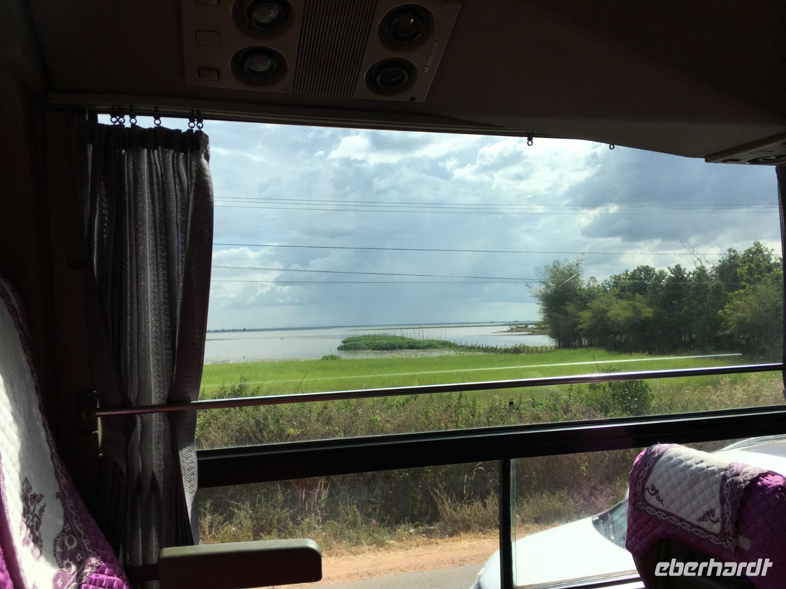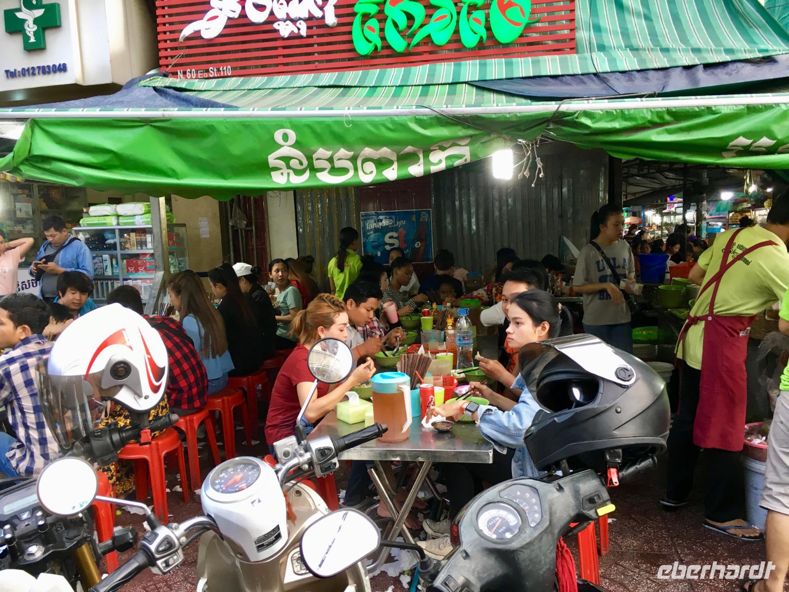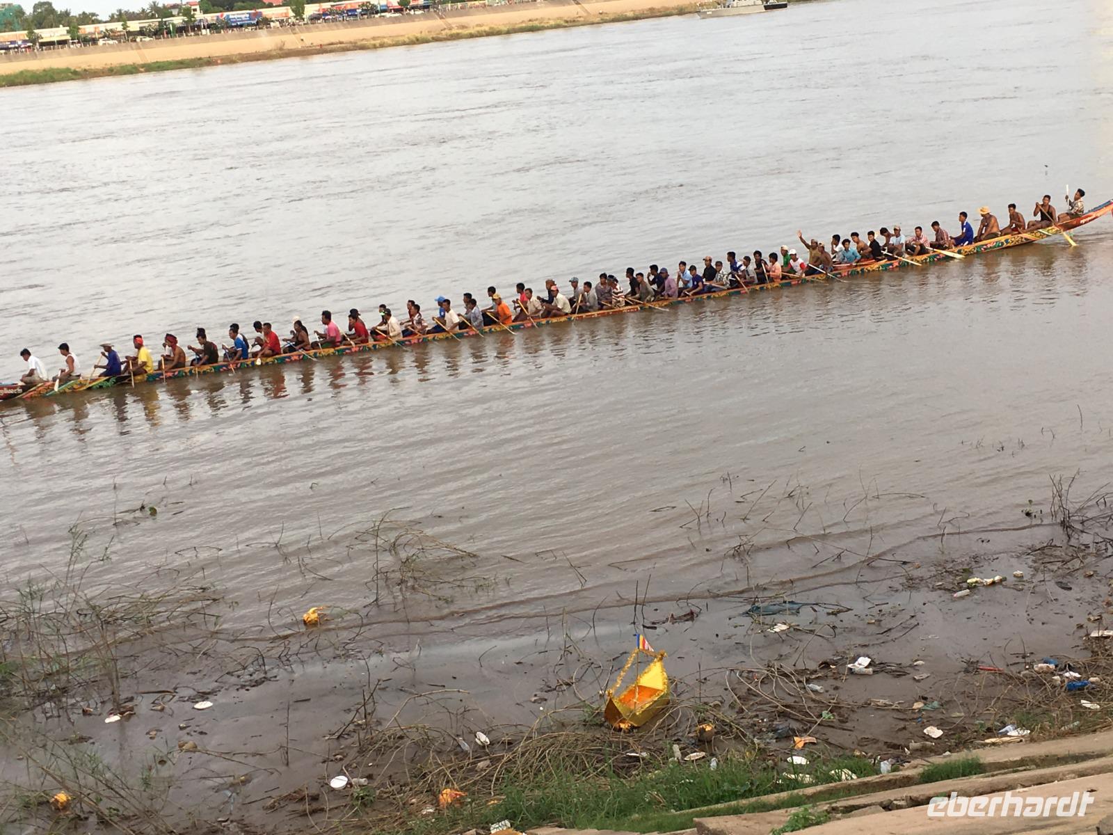 Bereits um 6:30 sind wir bereit um unseren naechsten Abschnitt der Reise anzutreten. Heute segeln wir auf dem Mekong flussaufwaerts nach Kambodscha. Erst einmal ins Schnellboot huepfen indem schon alle unsere Koffer geladen sind und ab geht es auf rasanter Fahrt den Mekong hinauf. Unsere gute Huong winkt uns noch zu und der Fahrer ist schon wieder unter seinem Bus versteckt, er arbeitet wohl an seiner Tuere, die seit gestern abend nur noch sporadisch auf-und zu geht. Vorbei an vielen Frachtschiffen und Faehren sowie Fischerboote und Sampan flitzen wir. Der Mekong ist noch immer braun, da es im Norden sehr viel geregnet hatte. In der Regenzeit schwillt der Fluss bis zu 3 Meter an, dann sind diese schoenen Inseln ueberschwemmt. Gerade deswegen ist das Land hier auch besonders fruchtbar. Ein Stunde und die ersten Bierchen spaeter sind wir bereits an der Grenze. May, unsere Bootsreiseleiterin hat bereits alle Vorkehrungen fuer uns getroffen und wir muessen lediglich noch einen Stempel in unseren Pass geben lassen. Der Grenzwart freut sich nicht besonders ueber so viel Arbeit und verbringt gute 5 Minuten damit, seine Stempel und Kugelschreiber auf seinem Schreibtisch zu ordnen und wiederzuordnen. May geht auch kurz bei ihm vorbei und oeffnet seine Schublade...schwups...ah, jetzt gehts, wir kommen dran. May muss uns nun hier leider verlassen und der charmante Doc uebernimmt das servieren der vielen Getraenke, Fruechte und Sandwiches. Nun geniessen wir noch 3 Stunden auf dem schoenen Mekong Fluss, bis wir in Phnom Penh ankommen. Der oertliche Reiseleiter Ahnan findet uns auch bald und faehrt mit uns und unseren Koffern zu einem sehr schoenen Hotel. Nun haben wir den Nachmittag zur freien Verfuegung. Einige gehen gleich mal schwimmen in dem grossen Aussenpool des Hotels, andere spazieren in die Stadtmitte und wieder andere ruhen sich einfach mal aus. Wir treffen uns dann alle wieder zum Abendessen und sind schon gespannt wie das hier in Kambodscha wohl schmecken wird. Erster Eindruck : schaerfer, andere Gewuerze wobei die Speisen nicht unbedingt anders ausschauen und die Leute sind hier noch freundlicher, falls dies ueberhaupt moeglich waere. Morgen haben wir Stadtbesichtigung mit einem anderen Reiseleiter und wir freuen uns schon darauf.