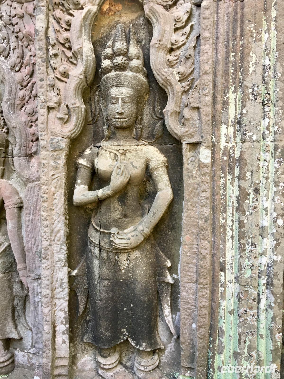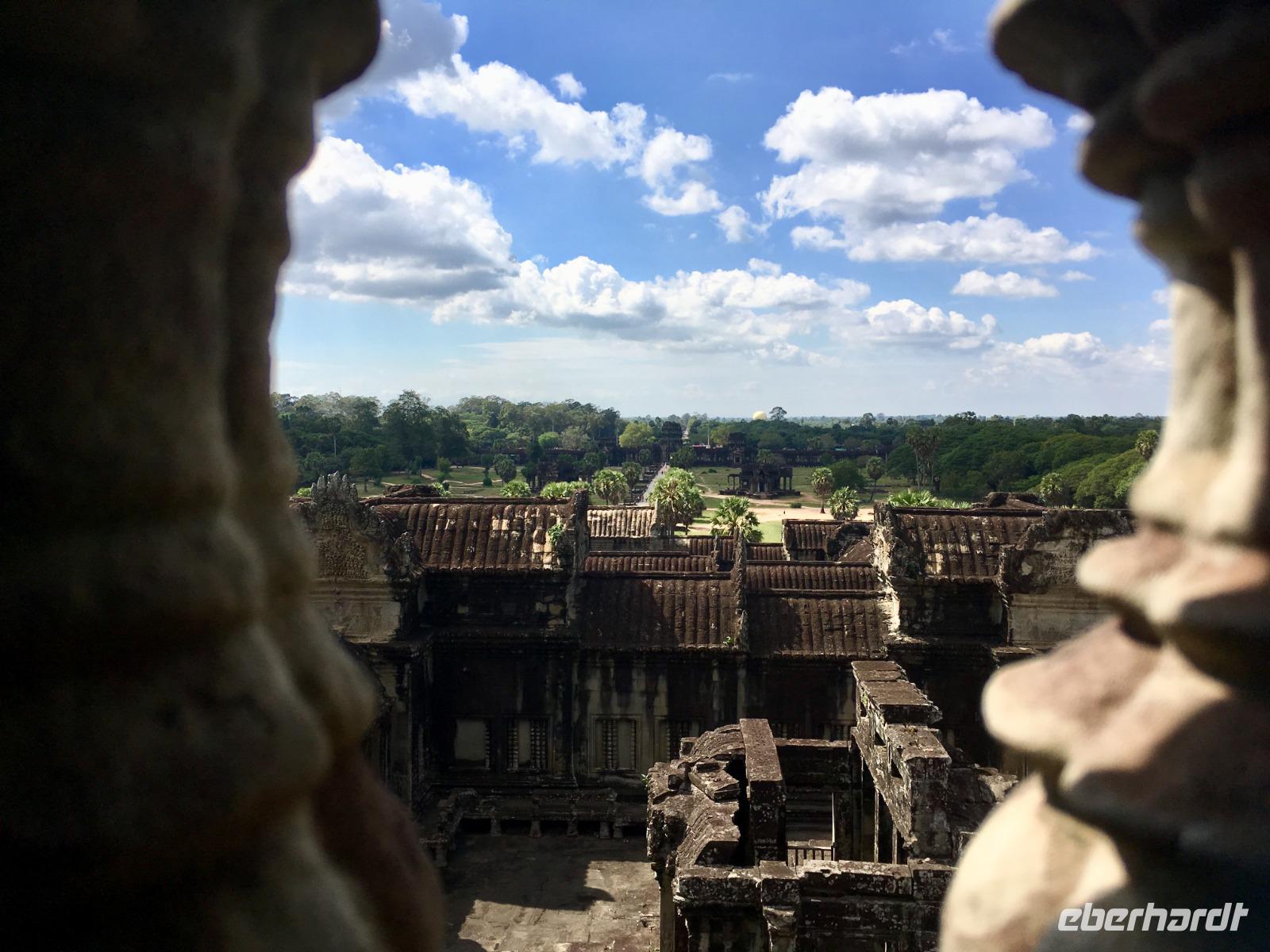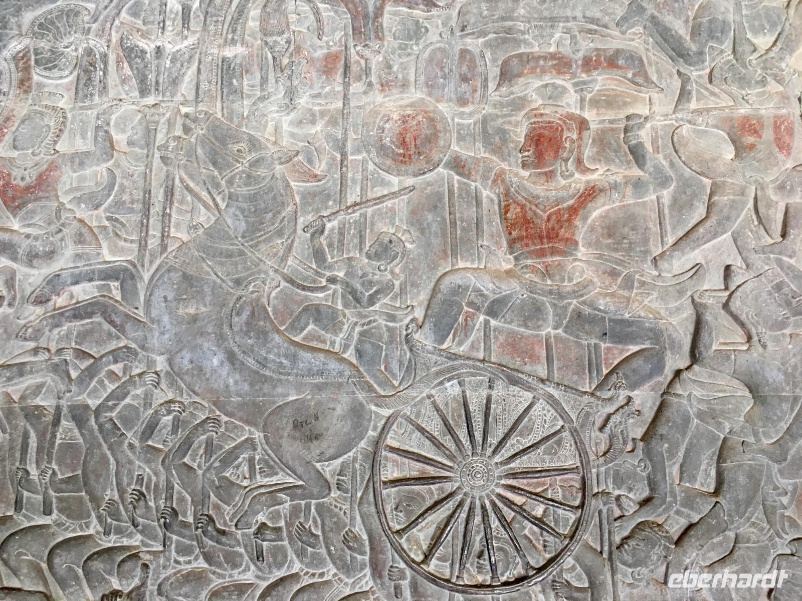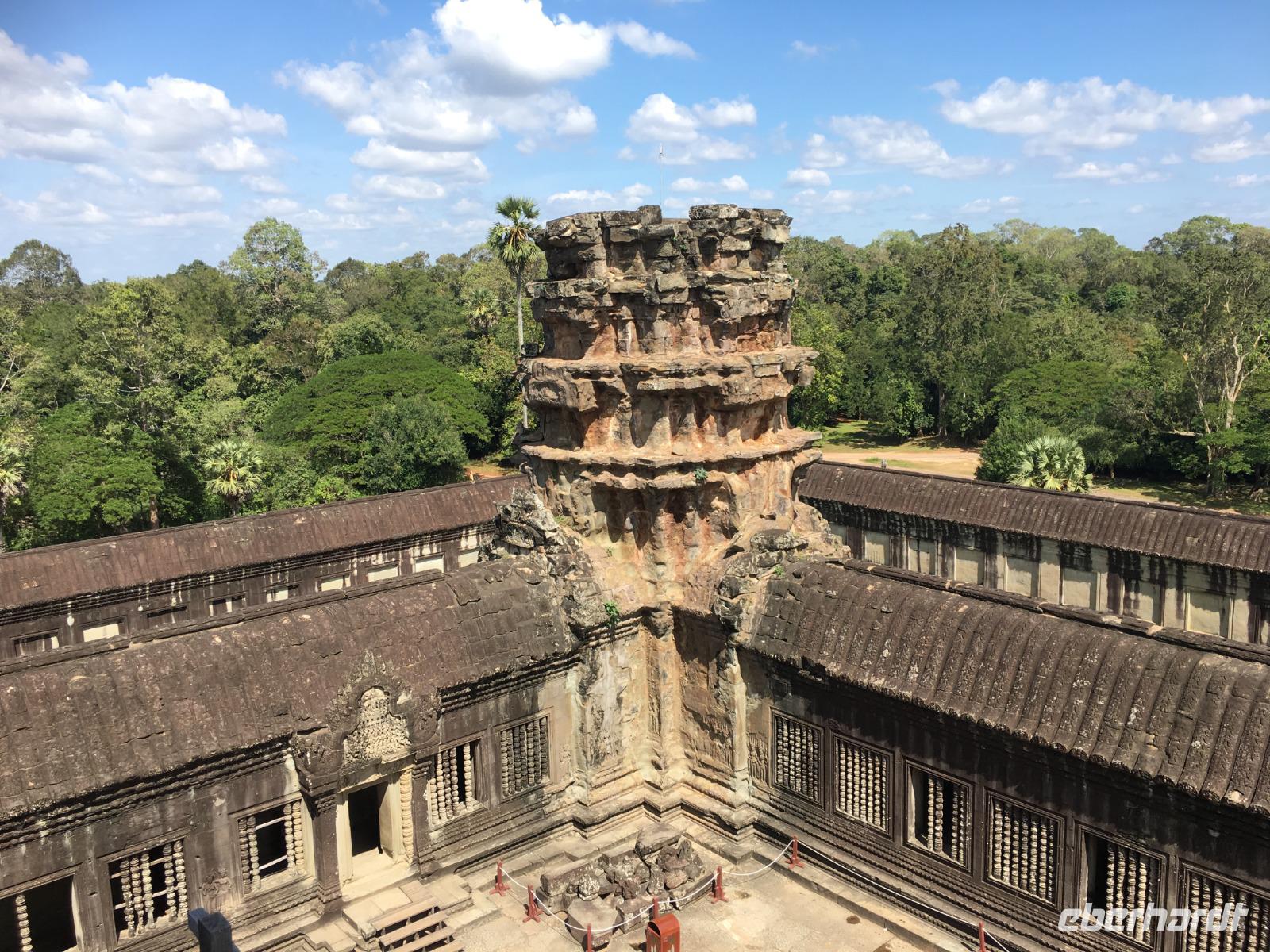 Um 8:00 Uhr stehen wir alle schon bereit in Tempelausruestung (Hosen bis zum Knie, T-Shirt mit Kurzarm, gutes Schuhwerk schnell zum aus- und anziehen). Da ist auch schon Thol mit einem riesen Blumenstrauss, lauter Lotusblumen hat er uns gebracht und Flaeschen dazu um die geschenkte Blume im Zimmer aufstellen zu koennen. Ahhh, danke schoen. Spaeter lernen wir dann auch noch, wie man so eine Blume falten kann, damit sie zu einer Rose oder Tulpe wird und sehr lange haelt. Gleich fahren wir die 2 Km bis zum Eintritts-karten-Palast. Keine ¼ Stunde spaeter sind wir ausgeruestet mit einer personalisierten Eintrittskarte zu den Angkor Tempel. Noch 5 Km und dann stehen wir vor diesem herrlichen UNESO Weltkulturerbe. Eine grosse Bruecke fuehrt ueber den Wassergraben zum West-Eingangs-Tempel des Angkor Wat Komplexes. Die eigentliche Steinbruecke wird gerade renoviert also spazieren wir auf einer Ersatzbruecke. Nein, Krokodile gibt es schon lange keine mehr in dem Graben aber Lotusblumen schon. Wir hoeren, wie die vielen Kriege, Kolonialherrschaften und politischen Perioden diese Tempel beschaedigt und teilweise zerstoert haben. Diese Buddistentempel wurden im 11. und 12. Jhrdt erbaut und von vielen nachfolgenden Religionen und Koenigen verwandelt, angepasst und «renoviert». Es war die Khmer Hauptstadt und hatte seine Bluetezeit vom 9. bis zum 15. Jhrdt. So sind sie heute Hindu-tempel geworden mit ein paar versteckten Buddahs meist in oberen, schwer erreichbaren Etagen. Das ganze Angkor Wat ist wie eine Stadt, mit einigen Gebaeuden, vielen Tempel, Terrassen, See, Moenchsquartiere und Ausgrabungsstellen. Wir klettern ueber viele Tuerschwellen, gehen vielen Gallerien entlang die mit herrlichem Tief-Relief verziert sind, steigen immer wieder Treppen hinauf und hinunter und vor allem, kommen wir aus dem Staunen kaum heraus. Ueberall herrliche Durchblicke, Ein- und Ausblicke. Die Kameras werden ganz wild und wollen immer ueberall dabei und zu vorderst sein. Wenn es nicht so irre heiss waere, kaeme eine echte Euphorie auf...aber eben, die Schweissperlen im Gesicht und die nassgeschwitzten Hemde zuegeln unsere Energie. Es gibt sogar eine Maenner- und 100 Mt entfernt eine Damenkueche. Auch sie schauen wie Tempel aus und wurden zu Bibliotheken umgewandelt. Ein paar «Billy» rein und tadah....aus Kueche wird Bibliothek ! Neben dem Restaurant sehen wir auch das Moenchkloster und die vielen Stupas. Die Mittagspause ist eine Erholung und die verschiedenen Salate und Speisen, geben uns die Kraft zum naechsten Tempel-Komplex. Er ist bloss 9Km2 gross und heisst Angkor Thom. Da gibt es 72 Tempel, einen Koenigspalast und eine Elefantenterrasse. Wir schauen uns vorerst Bayon Tempel an. Ein hochragender, reichdekorierter Khmer-Tempel mit vielen verschieden hohen Tuermen erwartet uns. Vor dem Tempel ein kleiner See und daneben 5 junge Moenche in ihren orange leuchtenden Kutten. Der Tempel ist grau, da er von einer japanischen Firma vor 2 Jahren gereinigt wurde. Das Moos und die Flaechten wachsen jedoch schnell wieder nach. Man stelle sich vor, blauer See, darin gespiegelter Tempel, saftig gruenes Grass mit orang bekleideten Moenchen vor dem Tempel, wolkendurchzogener blauer Himmel als Kanvas, das muss doch ein Paradestueck von Foto werden. Im Tempel drinnen wird es etwas eng, viele Durchgaenge und Kammern, Gallerien, Fenster und Tueren verleiten zu einem Versteckespiel. Aber wir sind Erwachsene also knipsen wir lustige Bilder von unseren Lieben und natuerlich auch von den schoenen Gesichter die riesengross in Stein gemeisselt, in verschiedene Richtungen schauend, die zahlreichen Tuerme, zieren. Nun besuchen wir noch die Elefantenterrasse, sie schaut auf eine grosse Flaeche hinunter wo Elefanten fuer Zuschauer kaempften. Auf der Wiese sehen wir keine Elefanten aber ein Aeffchen, wie es soeben von einer fahrenden Verkaeuferin eine Banane gestohlen hat und protzig nun dasitzt und das Gestohlene genuesslich verzehrt. Beim Ausgang kommen wir auch bei dekorierten Elefanten vorbei, knips, und wir fahren schon weiter zu unserem Hotel mit dem schoenen Schwimmbad. Das Abendessen ist beim Schwimmbad. Ein wunderbares Buffet wurde hergerichtet und eine Buehne aufgestellt. Die Tempeltaenzerinnen fuehren ihre zierliche Apsarataenze vor mit Bewegungen die wir heute in Stein gemeisselt schon gesehen haben. Ach wie schoen und gute Nacht.