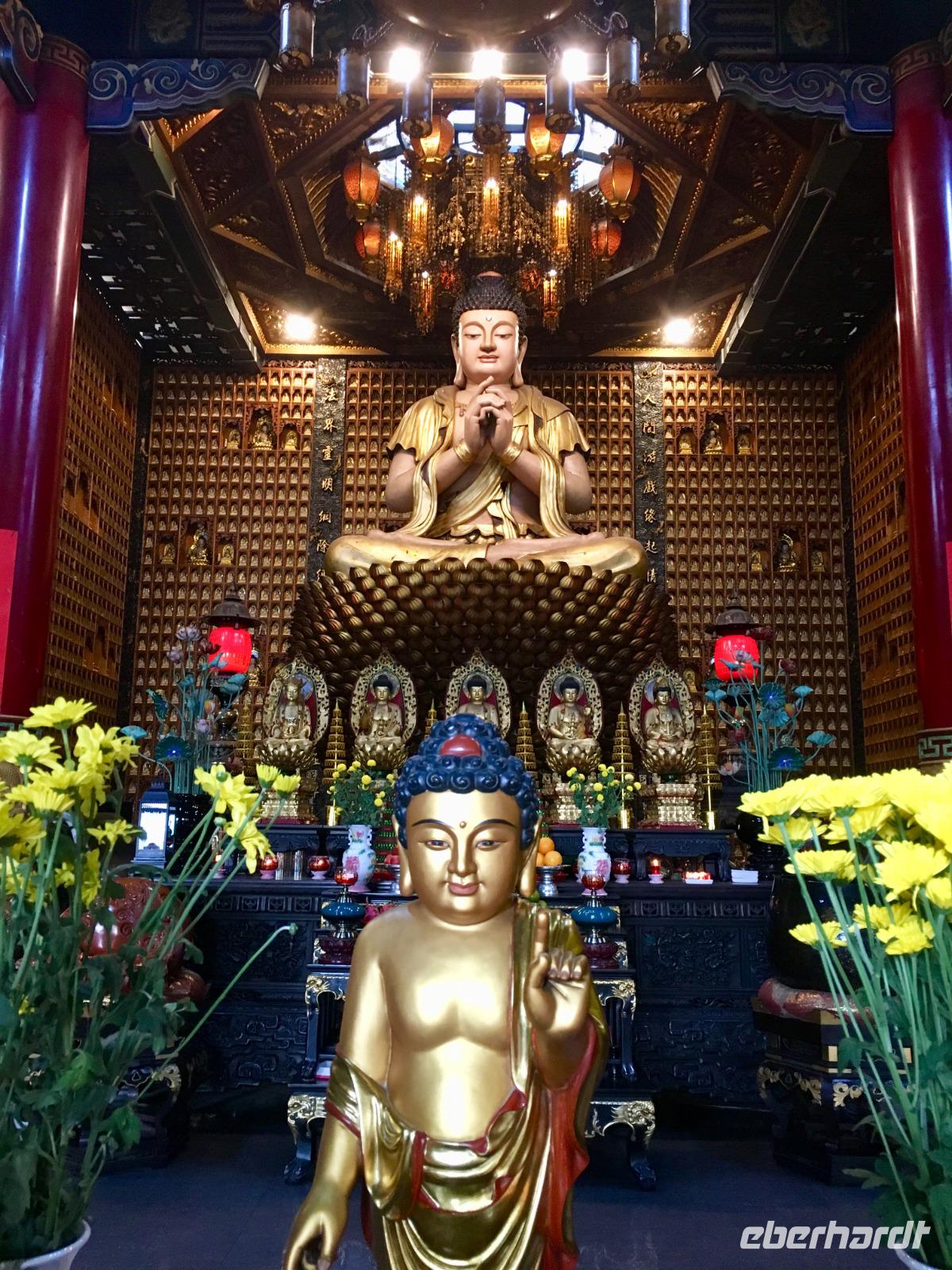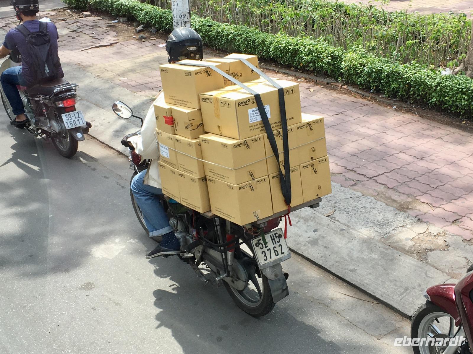 Die Freude ist riesig, wenn wir uns endlich alle in Frankfurt beim Gate in die Augen sehen- und uns begruessen koennen. Eine komplizierte Passgeschichte hat unsere Gruppe schon lange vor der Abreise zusammenschweissen lassen und es ist, als kennten wir uns alle schon laengere Zeit. Unser Flugzeug von Singapore Airlines ist nigel-nagel-neu. Alles leuchtet und die Sitzplaetze glaenzen sogar golden. Nur wenige Kleinkinder werden an Bord getragen, die Nacht ist uns sicher. Alles laeuft planmaessig, Chefpilot Logel, mit Co-pilot Kukmi.. und Doerkptnasalamuta (oder so) fliegen uns sicher, in 11 Stunden nach Singapore. Dort unternehmen wir eine 20 minuetige Wanderung zu unserem Anschlussflug nach Hanoi. Mr. Ot, unser Reiseleiter von Nordvietnam wartet bereits auf uns und in einem roten Bus werden wir zu unserem Hotel gebracht. Jetzt geht die Bus-Tuere, auf und alle Sinne werden wach. Es ist warm, 28 Grad, es ist laut mit den 4000 hupenden Mopeds, es ist schwuel und ueberall gibt es Leute, Autos, Fahrraeder, Mopeds und junge Frauen mit bunten Masken auf ihren Gesichter. Ganz Asien laechelt uns zu, das ist Vietnam wie wir es uns gewuenscht haben. Nach der Erfrischungspause in unseren Zimmer treffen wir uns bald wieder um einen Stadtbummel in die Altstadt zu unternehmen. Es gibt ueberall Gehsteige, bloss sind die vollgeparkt mit kleinen blauen Stuehlen der Strassenrestaurants, mit Mopeds, Fahrraeder, Autos und angebotener Ware. Also spazieren wir auf der Strasse, uiiii, das ist interessant, wer weicht nun wem aus ? Wie geht man ueber diese Strassen ? Wie schaut, fotografiert und redet man waehrend man sich doch um seine eigene Sicherheit kuemmern sollte ? Die vielen Farben, Lichter, Toene, Gerueche und Ansichten sind uebewaeltigend, sodass wir nach 1 Stunde unbedingt eines der vielen Kaffeehaeuser aufsuchen muessen. Mmmh das Bierchen schmeckt hier gut. Ot will uns auch den Hoan Kiem See zeigen und uns in den Tempel Ngoc Son auf seinem Inselchen fuehren. Die verewigte Schildkroete mit des Kaisers Schwert wird fotografiert sowie das Selfie «Schatzilein und ich auf der roten Bruecke in Hanoi» ist nun verewigt. Ehe wir ins Hotel zurueckkehren, spazieren wir zu unserem Restaurant fuers Abendbrot. Es ist ein luxurioeses-vegeterianisches Restaurant mit herrlichen Speisen und wir ueben uns im Gemuese-Staebchen-Essen. Gar nicht so einfach, aber wenns gelingt, ach so koestlich. Kunststueck sind die Vietnamesen alle so zierlich ! Aber eben, wir haben ja noch 19 Tage Zeit mit Stricknadeln essen zu lernen.