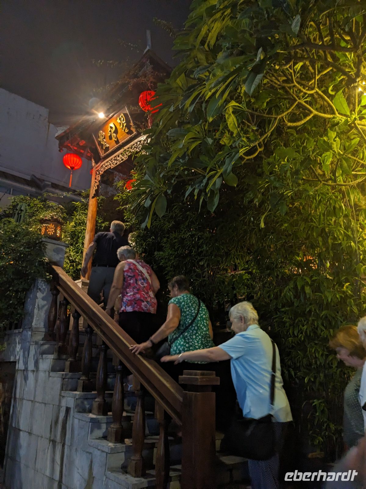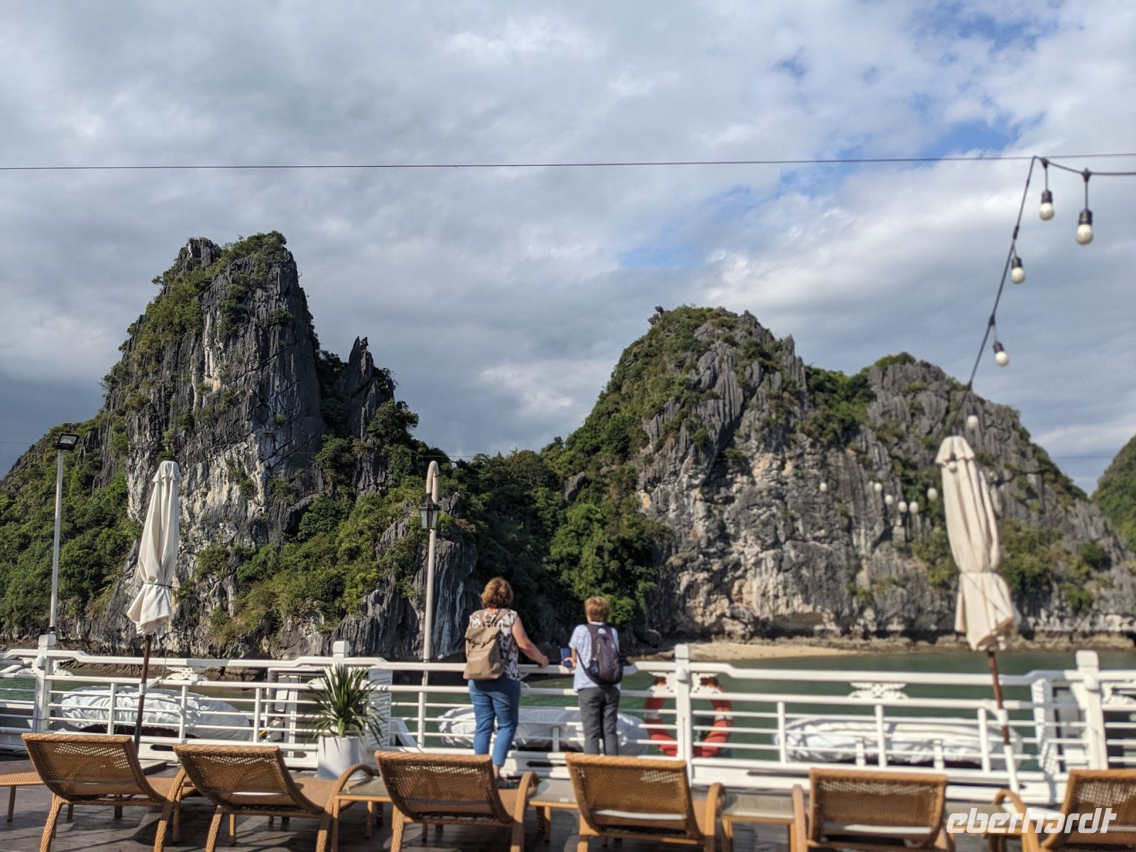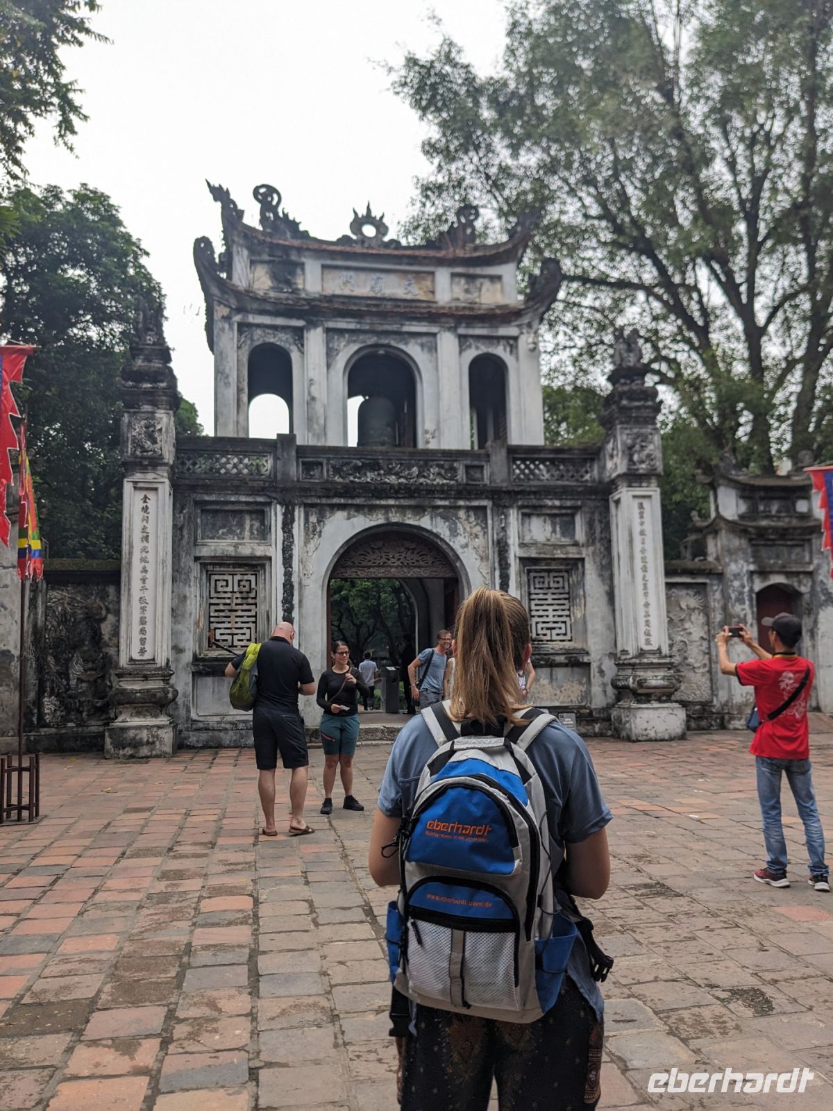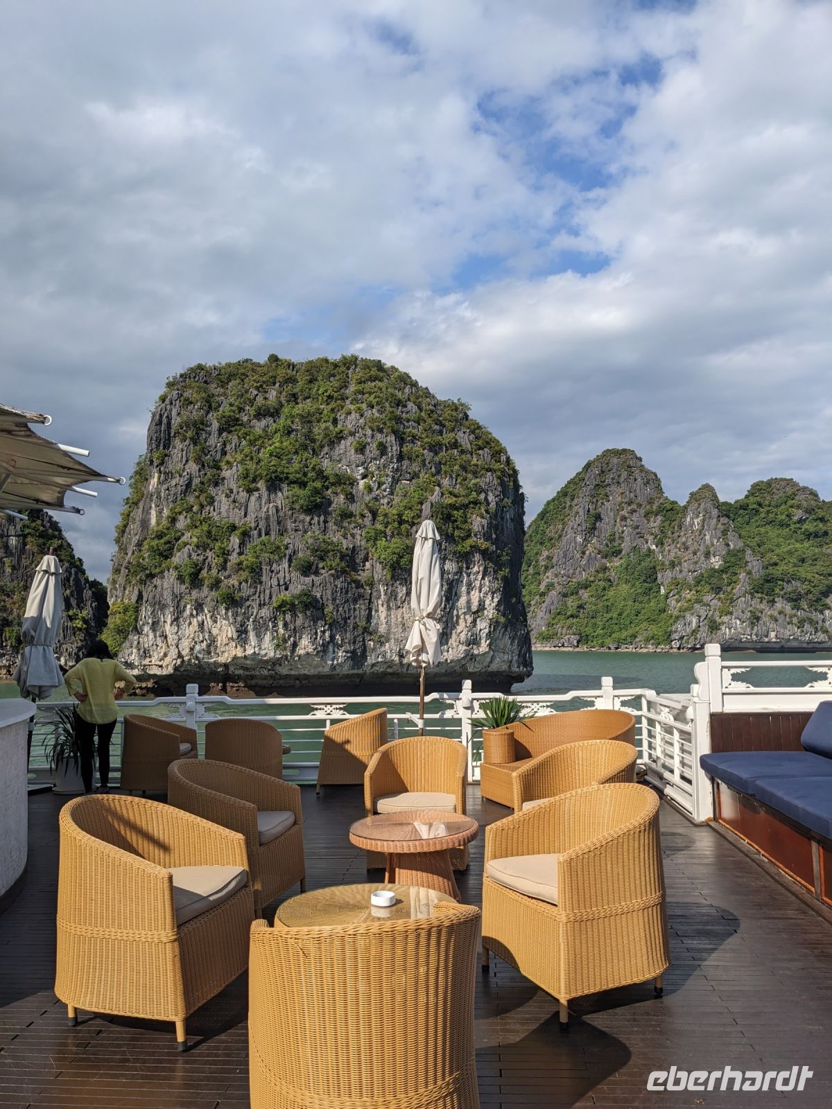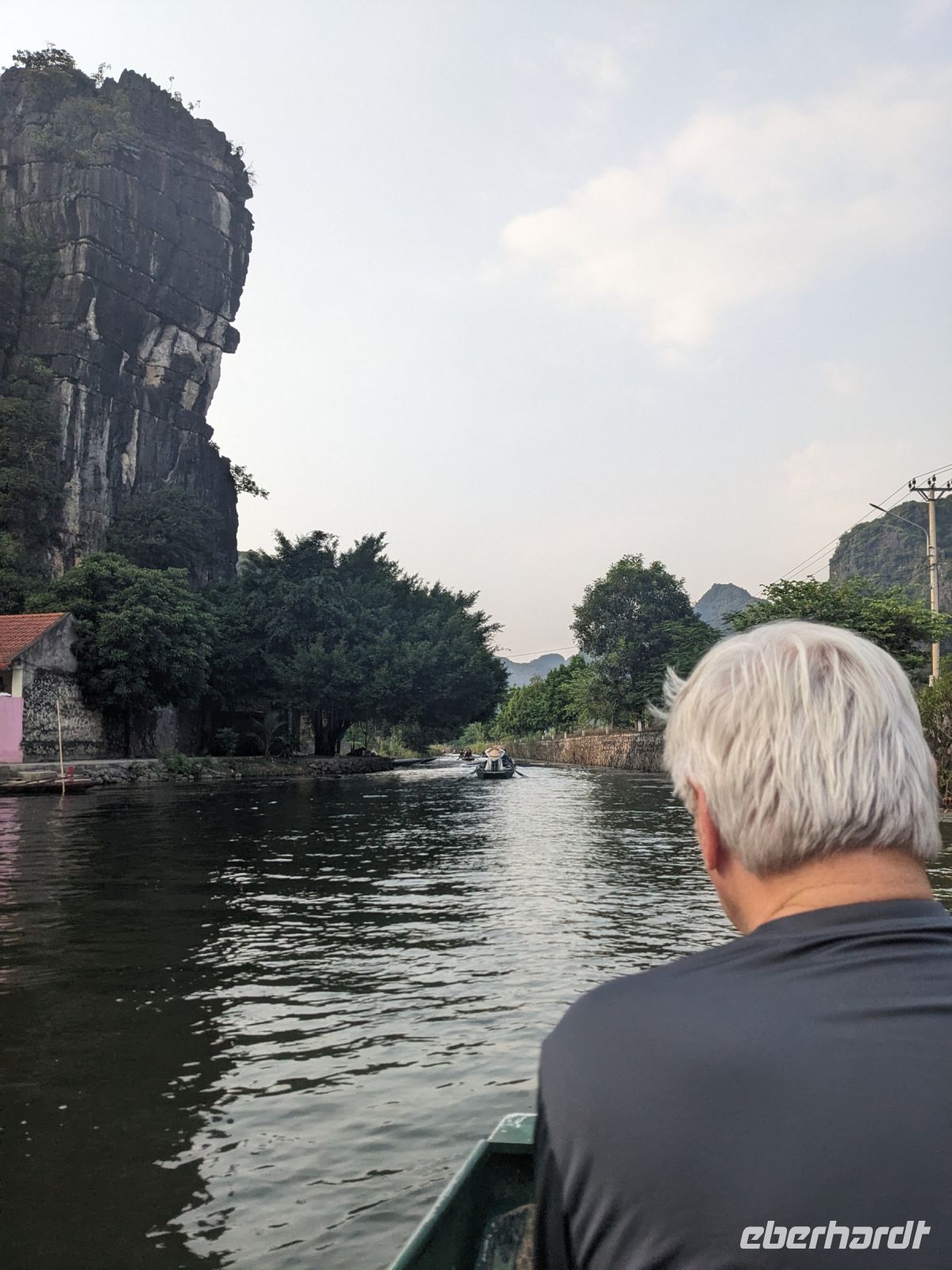 Schon früh am Morgen kamen wir in Hanoi an und fuhren zunächst erstmal zum Hotel, doch aufgrund der frühen Stunde waren unsere Zimmer noch nicht fertig und so machten wir uns nur kurz frisch und zogen dann los auf einen Stadtspaziergang. Noch leicht übermüdet von dem langen Flug kamen hier sehr viele Eindrücke zusammen: der Verkehr, die Wärme, die Gerüche - wo waren wir denn hier gelandet? Es musste also erstmal ein Eierkaffee, eine vietnamesische Spezialität, her. Am Hoan-Kiem-See dann ein Menschenauflauf - und alle in rot. Unser Reiseleiter Lang erklärte uns, dass hier gerade ein Festival stattfindet. In der Innenstadt bestand auch die Möglichkeit für diejenigen, die noch nicht Geld getauscht hatten, dies hier zu tun - als mehrfache Multimillionäre verließen wir dann die Wechselstube - ein schönes Gefühl. Zurück im Hotel blieb noch etwas Wartezeit und schließlich konnten wir unsere Zimmer beziehen - eine Wohltat nach der Anreise! Am Abend trafen wir uns zum Abendessen wieder und anschließend suchten wir noch eine Gasse auf. Aber keine gewöhnliche Gasse natürlich! Hier führten Bahnschienen entlang und bei einem Getränk im Namen von Eberhardt TRAVEL rauschte der Zug nur wenige Zentimeter an uns vorbei - eine unbeschreibliche Erfahrung und wäre hier in Deutschland auf jeden Fall niemals zulässig. Aber genau für solche Momente verreisen wir ja, nicht wahr?