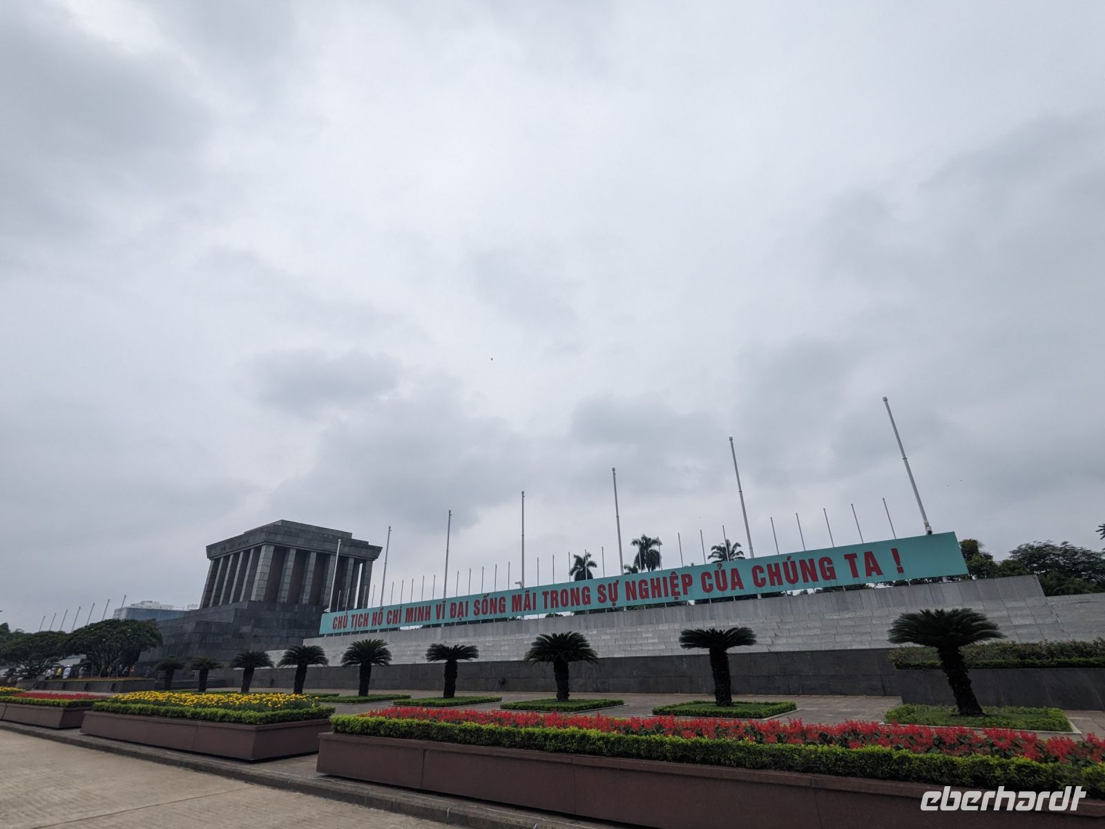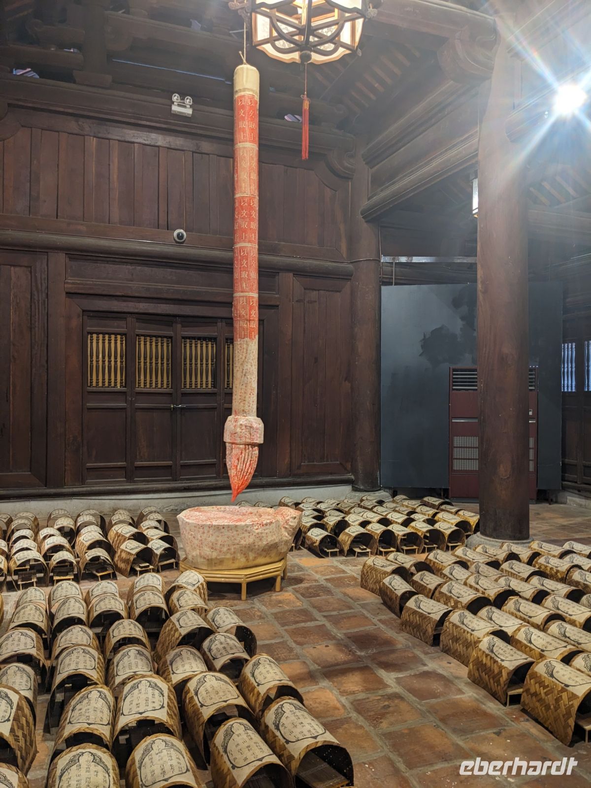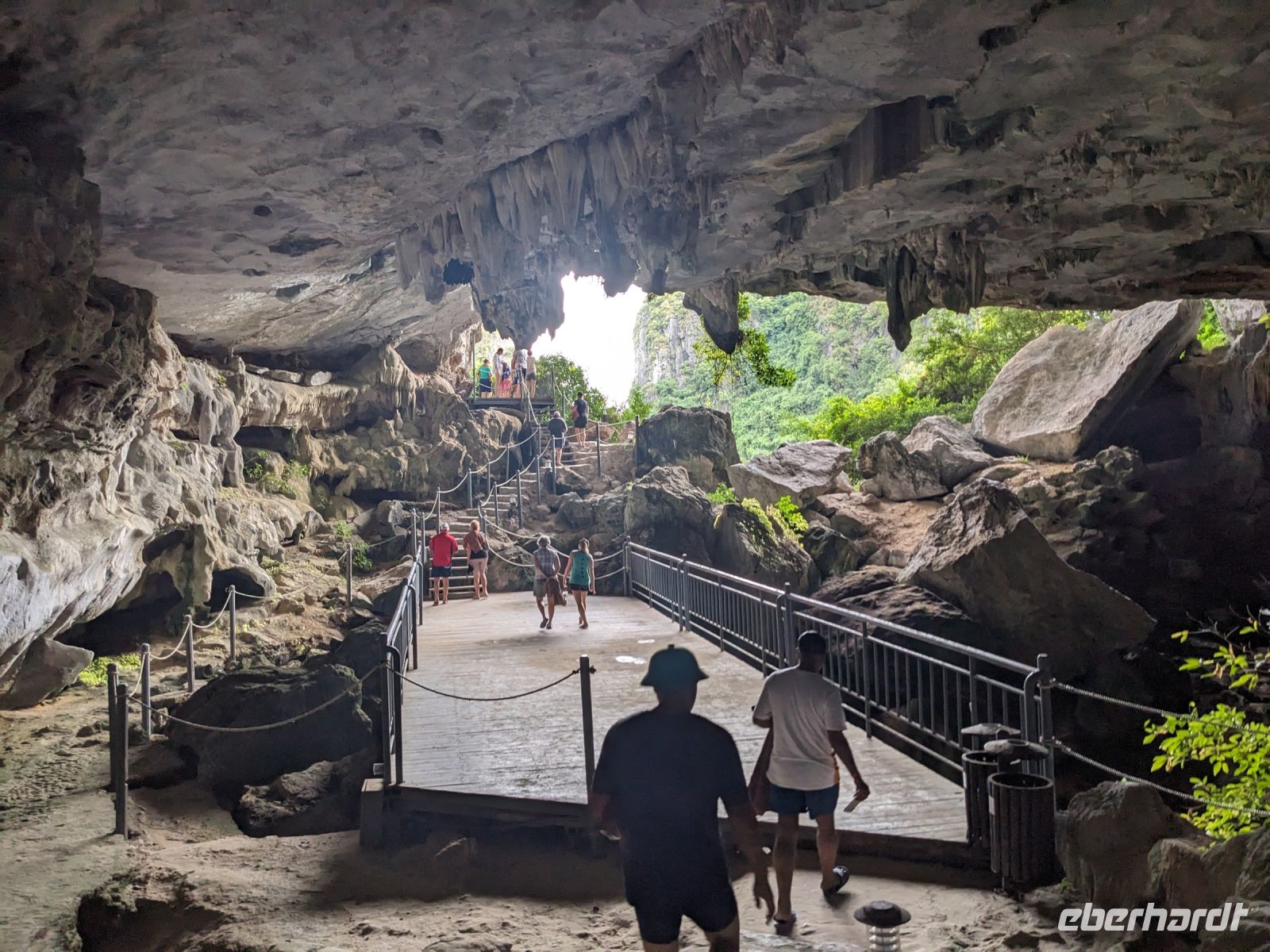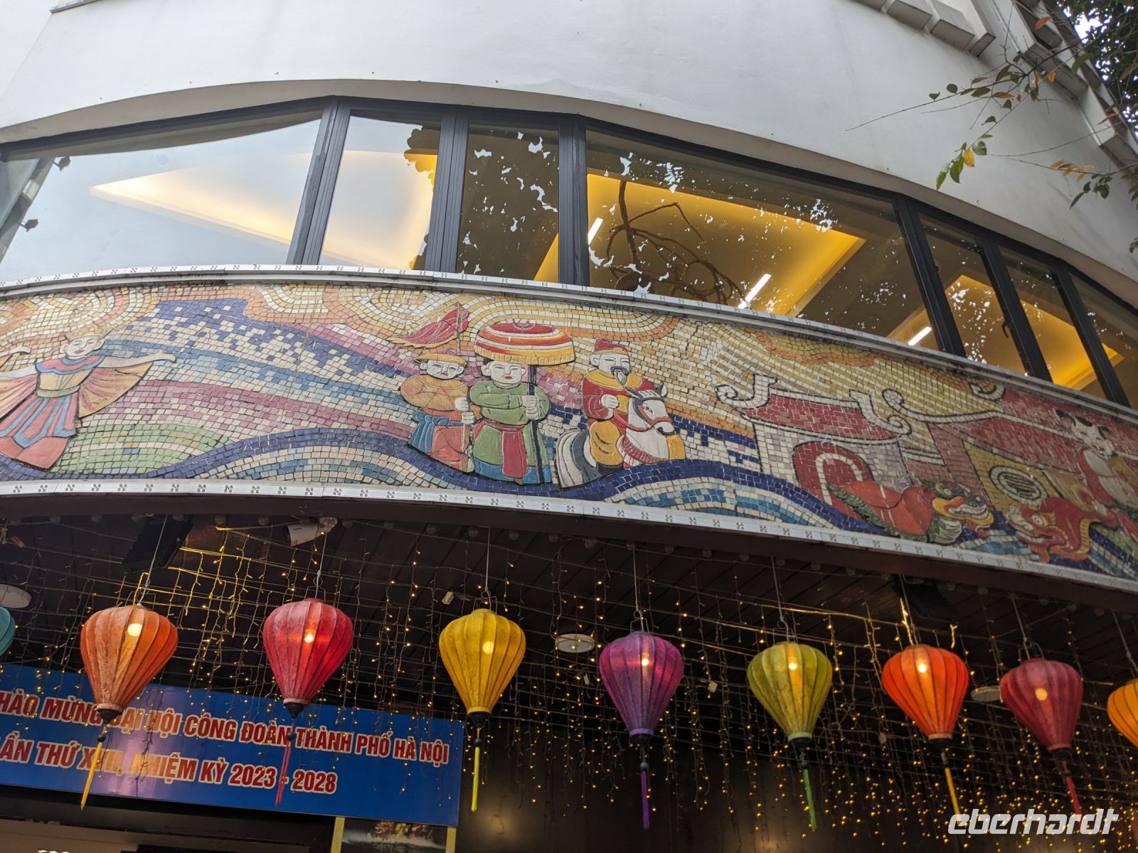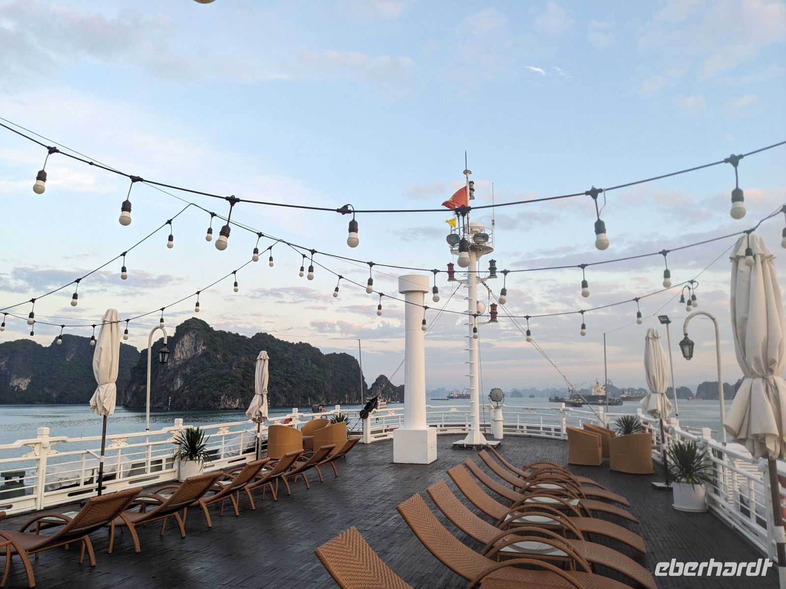 Schon früh am Morgen kamen wir in Hanoi an und fuhren zunächst erstmal zum Hotel, doch aufgrund der frühen Stunde waren unsere Zimmer noch nicht fertig und so machten wir uns nur kurz frisch und zogen dann los auf einen Stadtspaziergang. Noch leicht übermüdet von dem langen Flug kamen hier sehr viele Eindrücke zusammen: der Verkehr, die Wärme, die Gerüche - wo waren wir denn hier gelandet? Es musste also erstmal ein Eierkaffee, eine vietnamesische Spezialität, her. Am Hoan-Kiem-See dann ein Menschenauflauf - und alle in rot. Unser Reiseleiter Lang erklärte uns, dass hier gerade ein Festival stattfindet. In der Innenstadt bestand auch die Möglichkeit für diejenigen, die noch nicht Geld getauscht hatten, dies hier zu tun - als mehrfache Multimillionäre verließen wir dann die Wechselstube - ein schönes Gefühl. Zurück im Hotel blieb noch etwas Wartezeit und schließlich konnten wir unsere Zimmer beziehen - eine Wohltat nach der Anreise! Am Abend trafen wir uns zum Abendessen wieder und anschließend suchten wir noch eine Gasse auf. Aber keine gewöhnliche Gasse natürlich! Hier führten Bahnschienen entlang und bei einem Getränk im Namen von Eberhardt TRAVEL rauschte der Zug nur wenige Zentimeter an uns vorbei - eine unbeschreibliche Erfahrung und wäre hier in Deutschland auf jeden Fall niemals zulässig. Aber genau für solche Momente verreisen wir ja, nicht wahr?