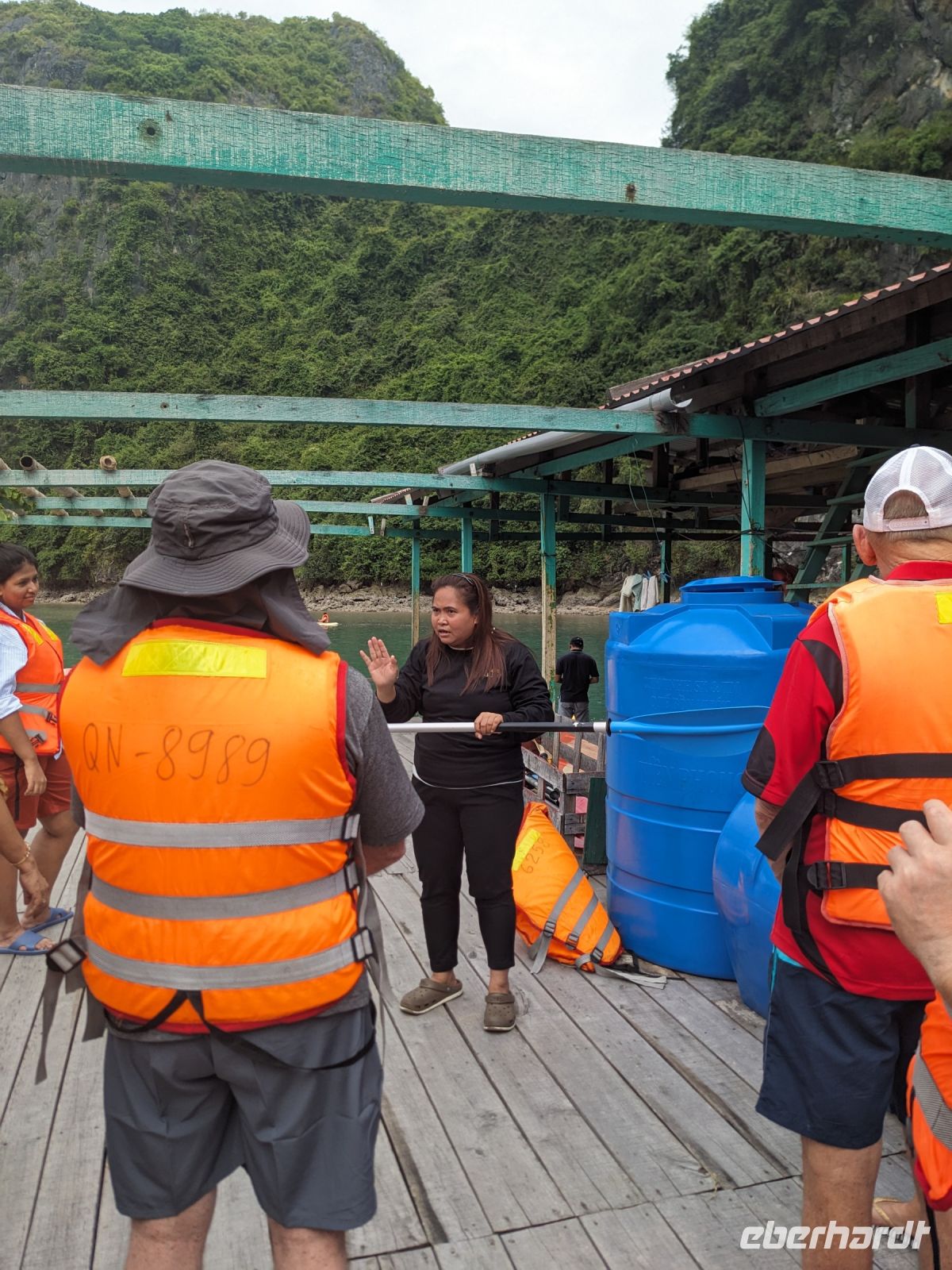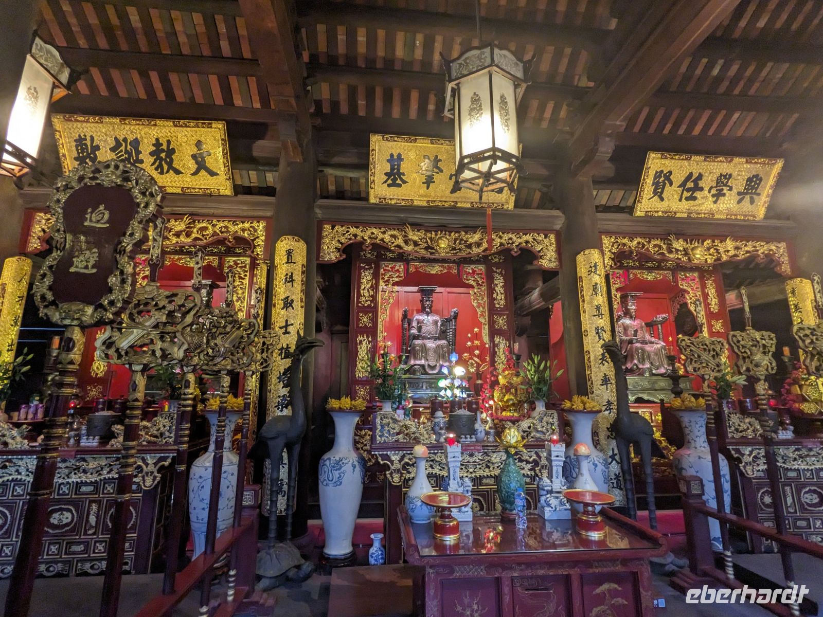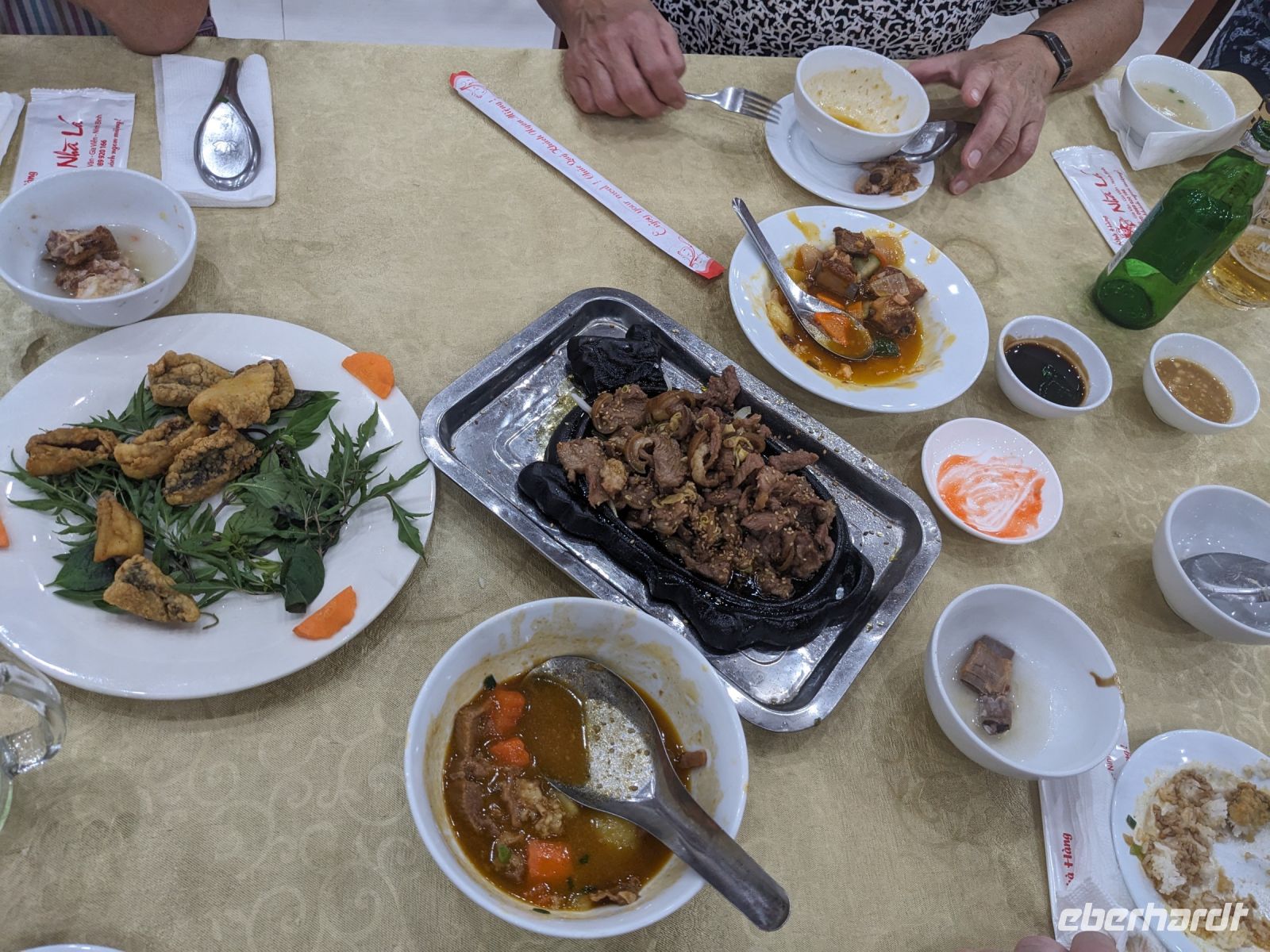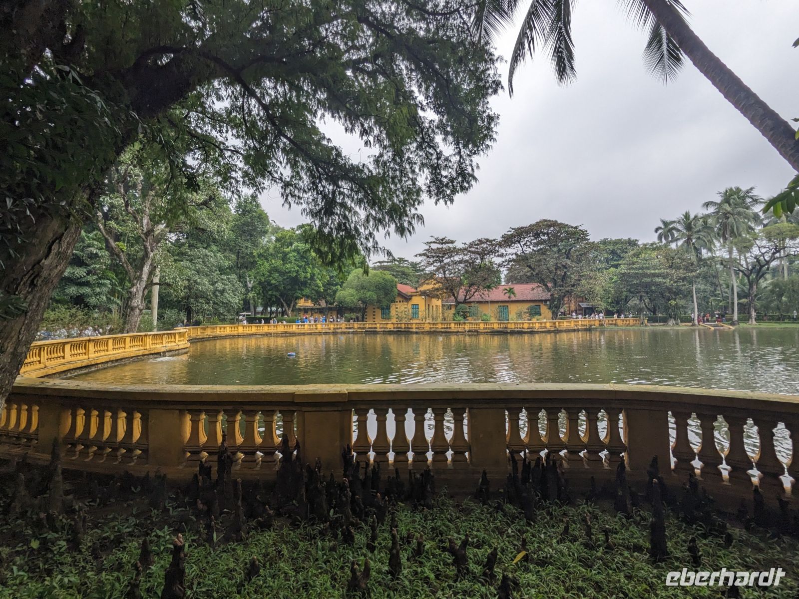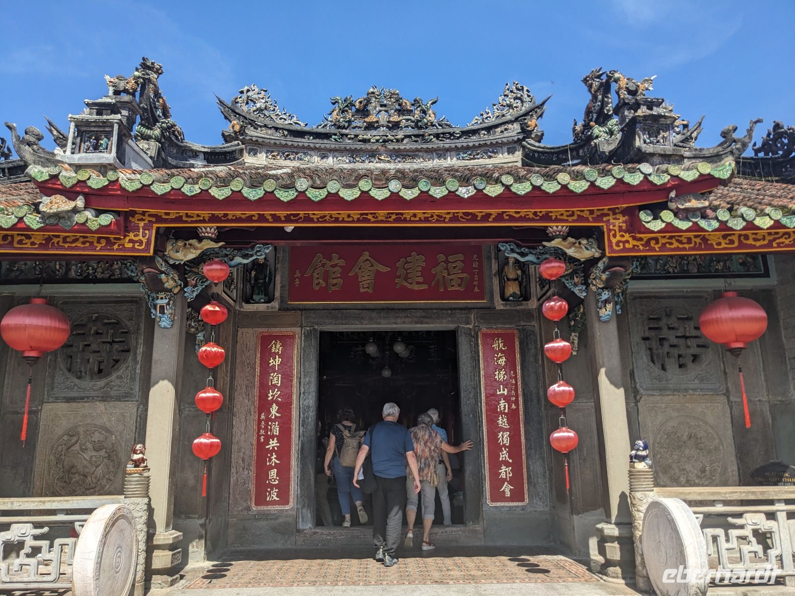 Schon früh am Morgen kamen wir in Hanoi an und fuhren zunächst erstmal zum Hotel, doch aufgrund der frühen Stunde waren unsere Zimmer noch nicht fertig und so machten wir uns nur kurz frisch und zogen dann los auf einen Stadtspaziergang. Noch leicht übermüdet von dem langen Flug kamen hier sehr viele Eindrücke zusammen: der Verkehr, die Wärme, die Gerüche - wo waren wir denn hier gelandet? Es musste also erstmal ein Eierkaffee, eine vietnamesische Spezialität, her. Am Hoan-Kiem-See dann ein Menschenauflauf - und alle in rot. Unser Reiseleiter Lang erklärte uns, dass hier gerade ein Festival stattfindet. In der Innenstadt bestand auch die Möglichkeit für diejenigen, die noch nicht Geld getauscht hatten, dies hier zu tun - als mehrfache Multimillionäre verließen wir dann die Wechselstube - ein schönes Gefühl. Zurück im Hotel blieb noch etwas Wartezeit und schließlich konnten wir unsere Zimmer beziehen - eine Wohltat nach der Anreise! Am Abend trafen wir uns zum Abendessen wieder und anschließend suchten wir noch eine Gasse auf. Aber keine gewöhnliche Gasse natürlich! Hier führten Bahnschienen entlang und bei einem Getränk im Namen von Eberhardt TRAVEL rauschte der Zug nur wenige Zentimeter an uns vorbei - eine unbeschreibliche Erfahrung und wäre hier in Deutschland auf jeden Fall niemals zulässig. Aber genau für solche Momente verreisen wir ja, nicht wahr?