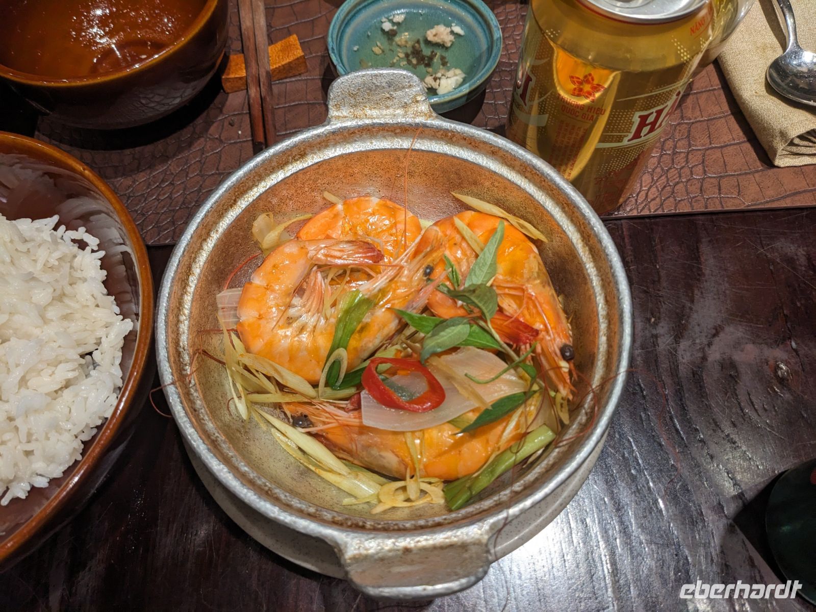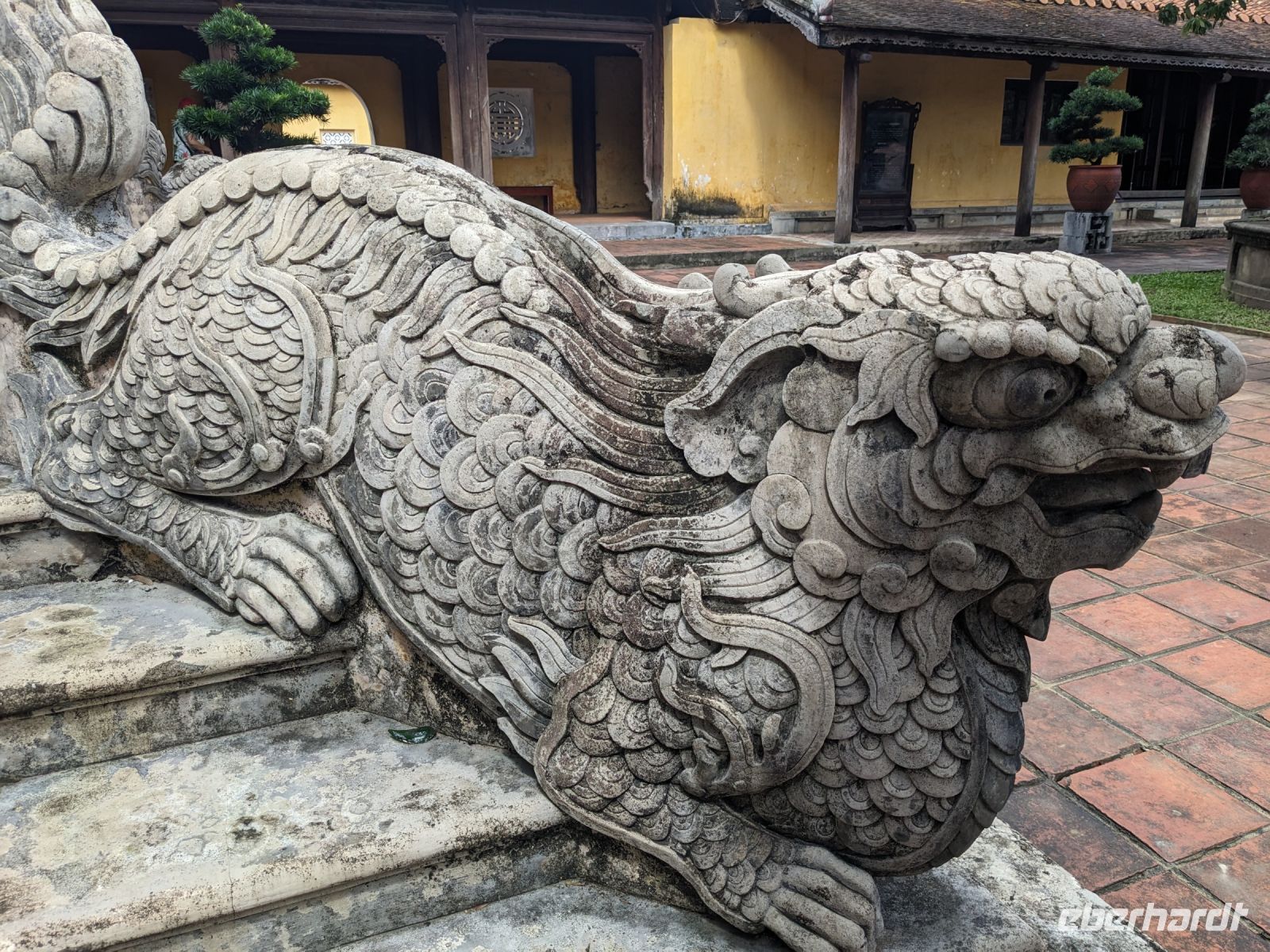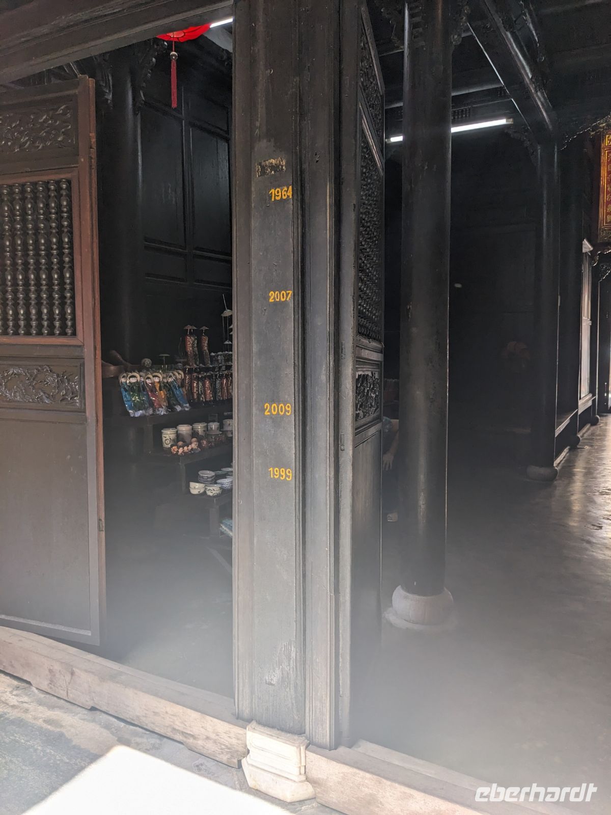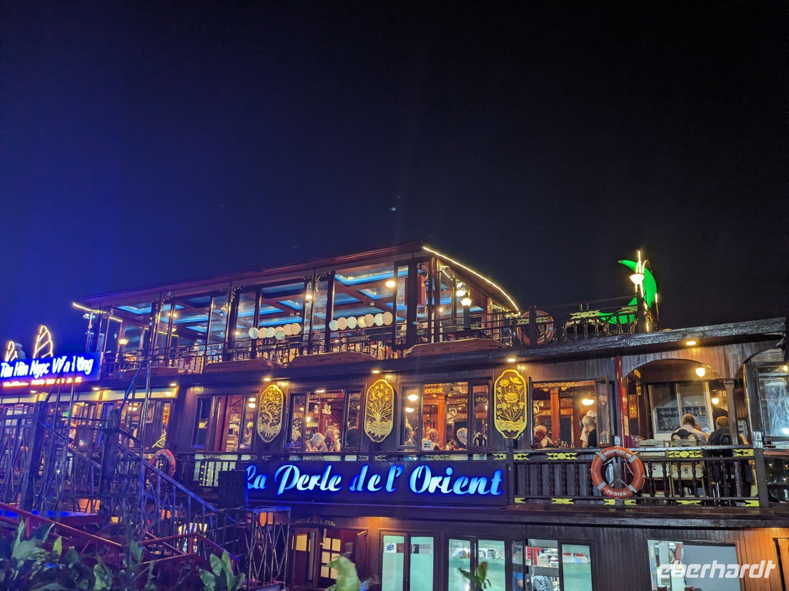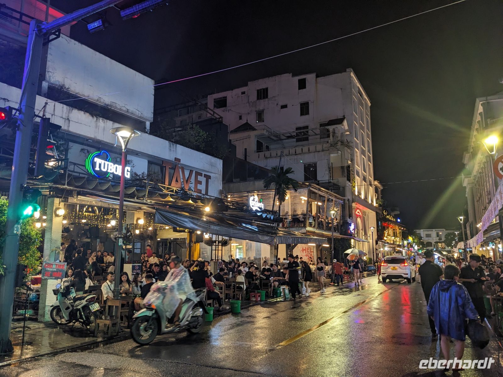 Schon früh am Morgen kamen wir in Hanoi an und fuhren zunächst erstmal zum Hotel, doch aufgrund der frühen Stunde waren unsere Zimmer noch nicht fertig und so machten wir uns nur kurz frisch und zogen dann los auf einen Stadtspaziergang. Noch leicht übermüdet von dem langen Flug kamen hier sehr viele Eindrücke zusammen: der Verkehr, die Wärme, die Gerüche - wo waren wir denn hier gelandet? Es musste also erstmal ein Eierkaffee, eine vietnamesische Spezialität, her. Am Hoan-Kiem-See dann ein Menschenauflauf - und alle in rot. Unser Reiseleiter Lang erklärte uns, dass hier gerade ein Festival stattfindet. In der Innenstadt bestand auch die Möglichkeit für diejenigen, die noch nicht Geld getauscht hatten, dies hier zu tun - als mehrfache Multimillionäre verließen wir dann die Wechselstube - ein schönes Gefühl. Zurück im Hotel blieb noch etwas Wartezeit und schließlich konnten wir unsere Zimmer beziehen - eine Wohltat nach der Anreise! Am Abend trafen wir uns zum Abendessen wieder und anschließend suchten wir noch eine Gasse auf. Aber keine gewöhnliche Gasse natürlich! Hier führten Bahnschienen entlang und bei einem Getränk im Namen von Eberhardt TRAVEL rauschte der Zug nur wenige Zentimeter an uns vorbei - eine unbeschreibliche Erfahrung und wäre hier in Deutschland auf jeden Fall niemals zulässig. Aber genau für solche Momente verreisen wir ja, nicht wahr?