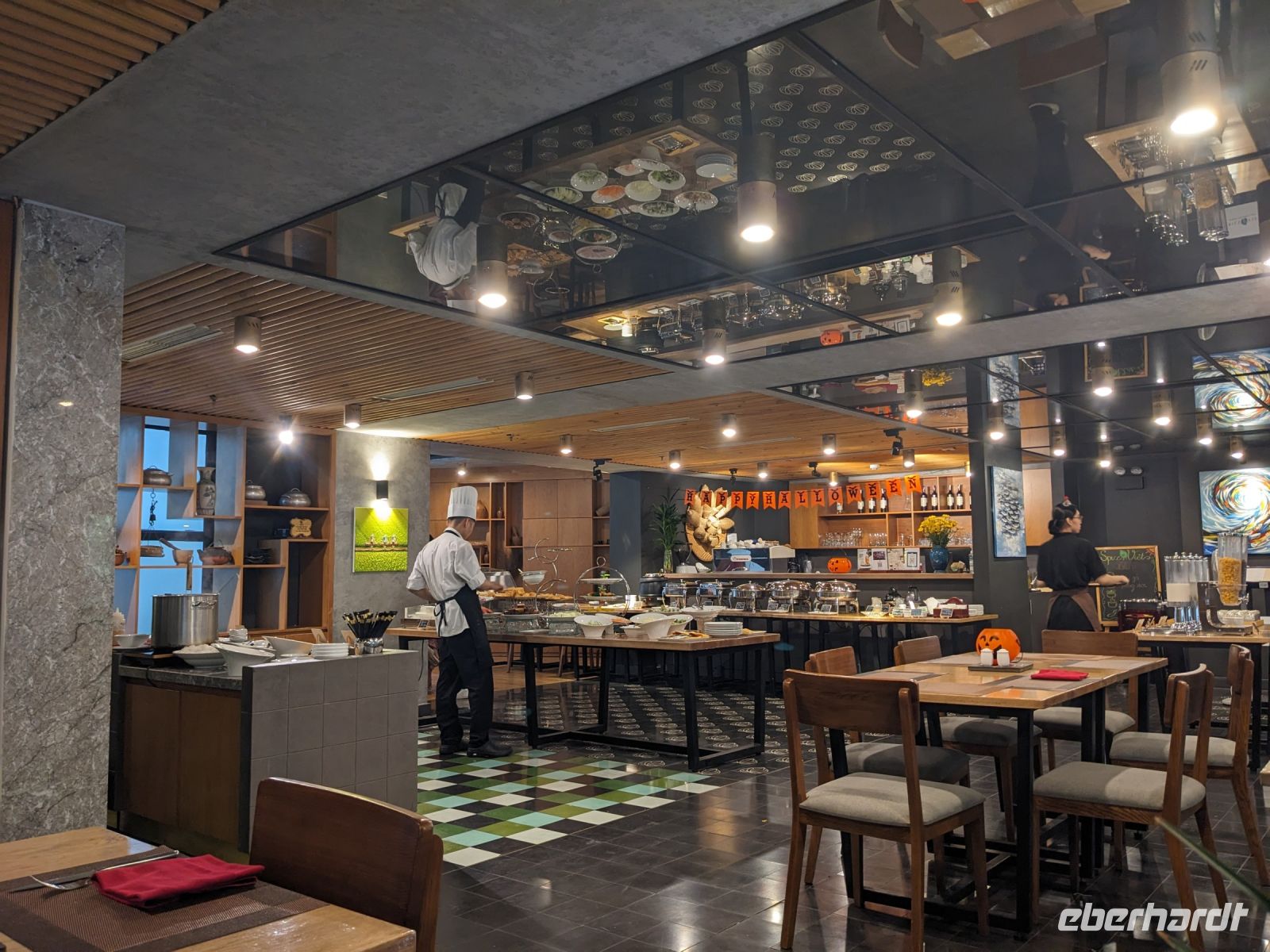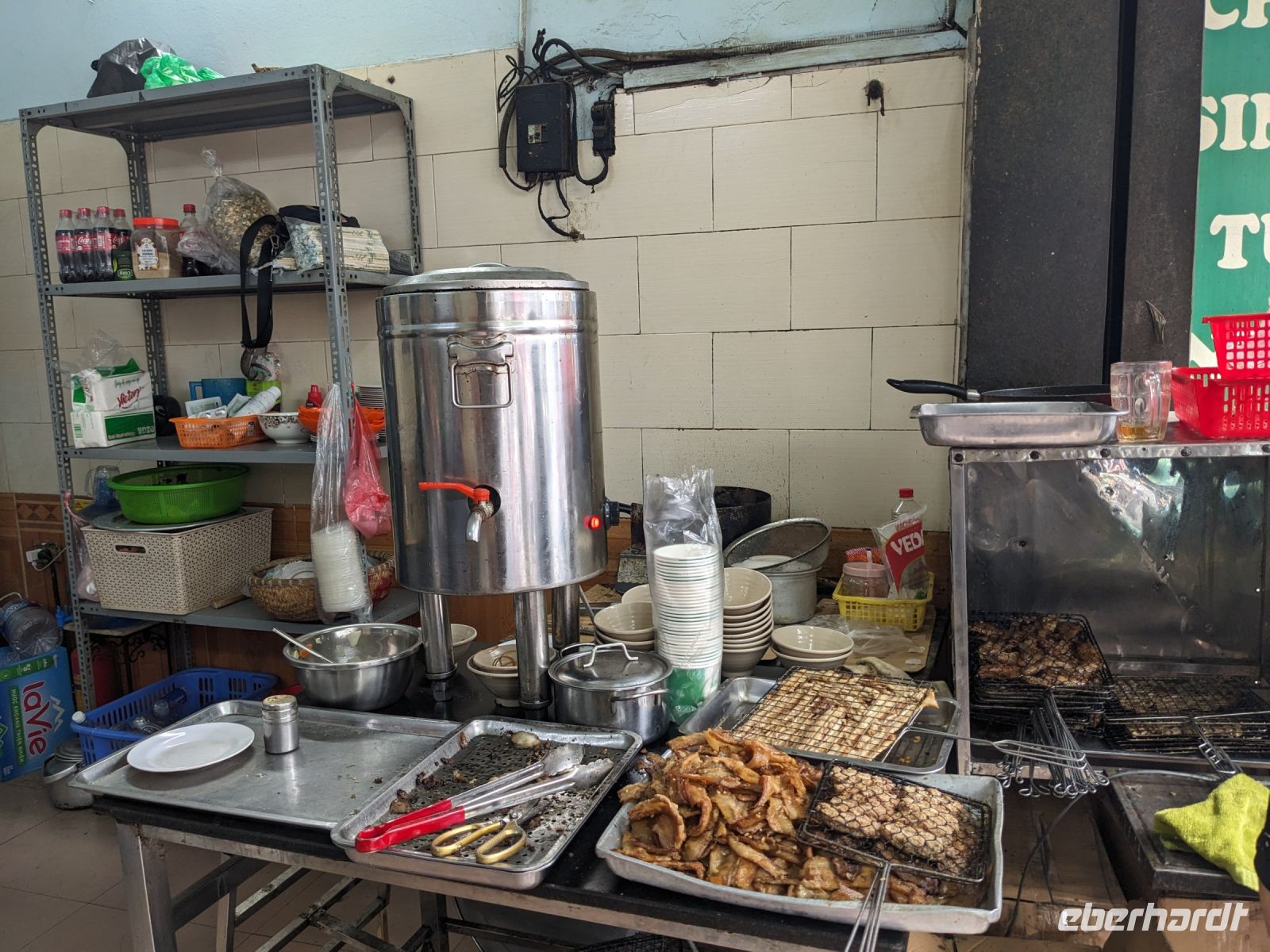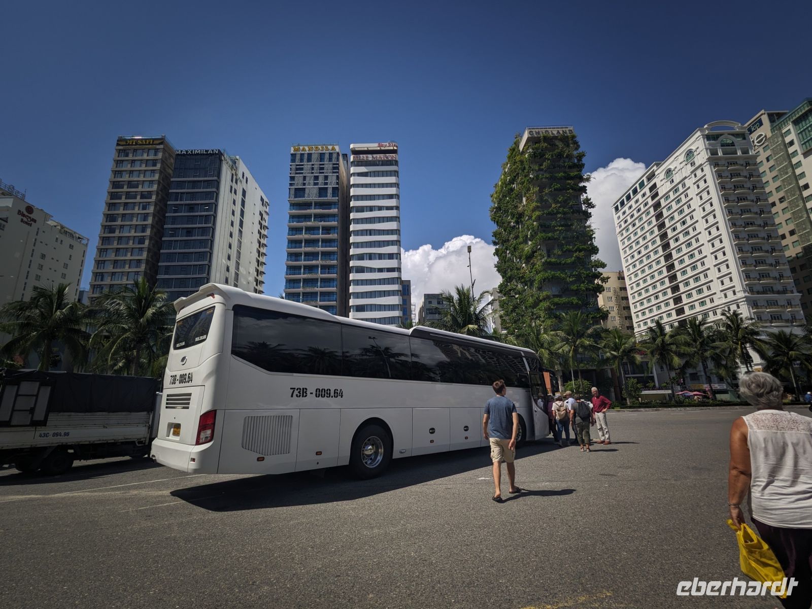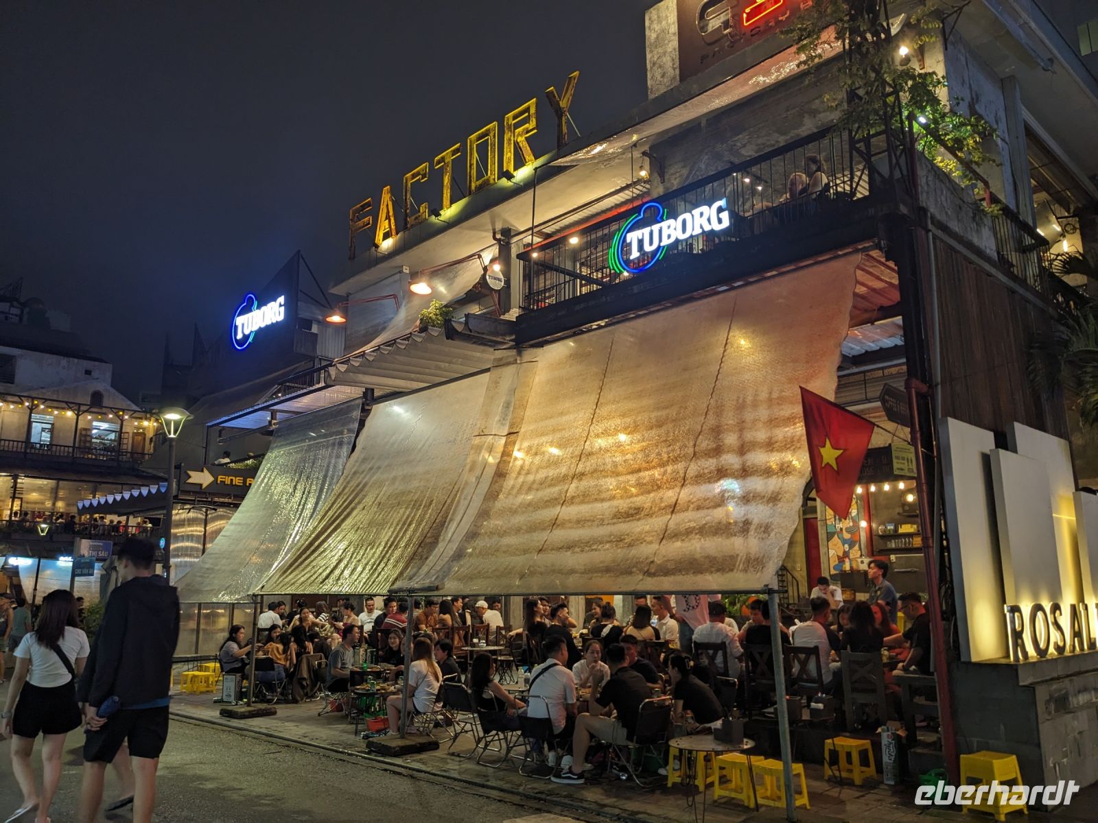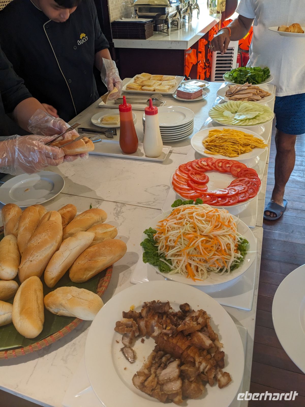 Schon früh am Morgen kamen wir in Hanoi an und fuhren zunächst erstmal zum Hotel, doch aufgrund der frühen Stunde waren unsere Zimmer noch nicht fertig und so machten wir uns nur kurz frisch und zogen dann los auf einen Stadtspaziergang. Noch leicht übermüdet von dem langen Flug kamen hier sehr viele Eindrücke zusammen: der Verkehr, die Wärme, die Gerüche - wo waren wir denn hier gelandet? Es musste also erstmal ein Eierkaffee, eine vietnamesische Spezialität, her. Am Hoan-Kiem-See dann ein Menschenauflauf - und alle in rot. Unser Reiseleiter Lang erklärte uns, dass hier gerade ein Festival stattfindet. In der Innenstadt bestand auch die Möglichkeit für diejenigen, die noch nicht Geld getauscht hatten, dies hier zu tun - als mehrfache Multimillionäre verließen wir dann die Wechselstube - ein schönes Gefühl. Zurück im Hotel blieb noch etwas Wartezeit und schließlich konnten wir unsere Zimmer beziehen - eine Wohltat nach der Anreise! Am Abend trafen wir uns zum Abendessen wieder und anschließend suchten wir noch eine Gasse auf. Aber keine gewöhnliche Gasse natürlich! Hier führten Bahnschienen entlang und bei einem Getränk im Namen von Eberhardt TRAVEL rauschte der Zug nur wenige Zentimeter an uns vorbei - eine unbeschreibliche Erfahrung und wäre hier in Deutschland auf jeden Fall niemals zulässig. Aber genau für solche Momente verreisen wir ja, nicht wahr?