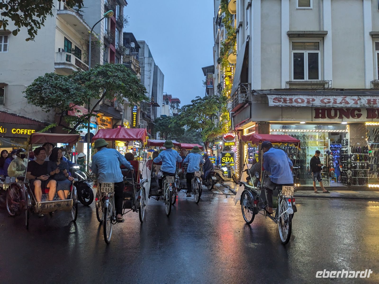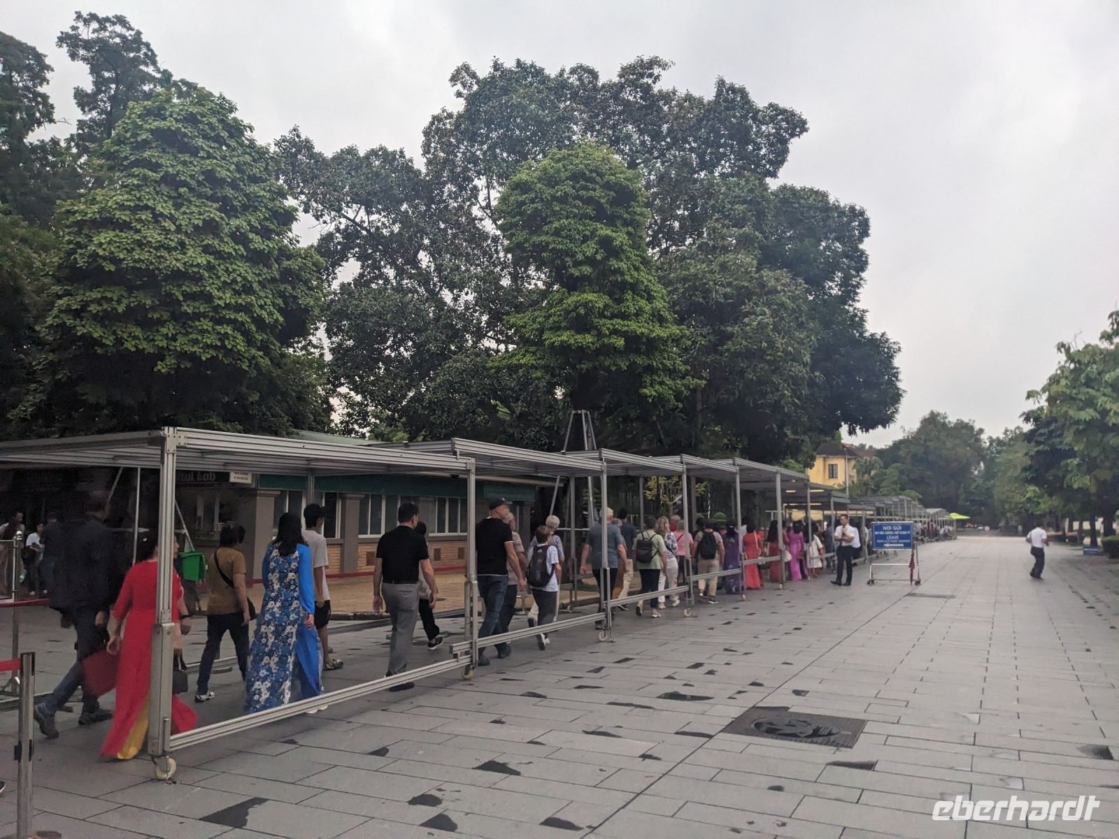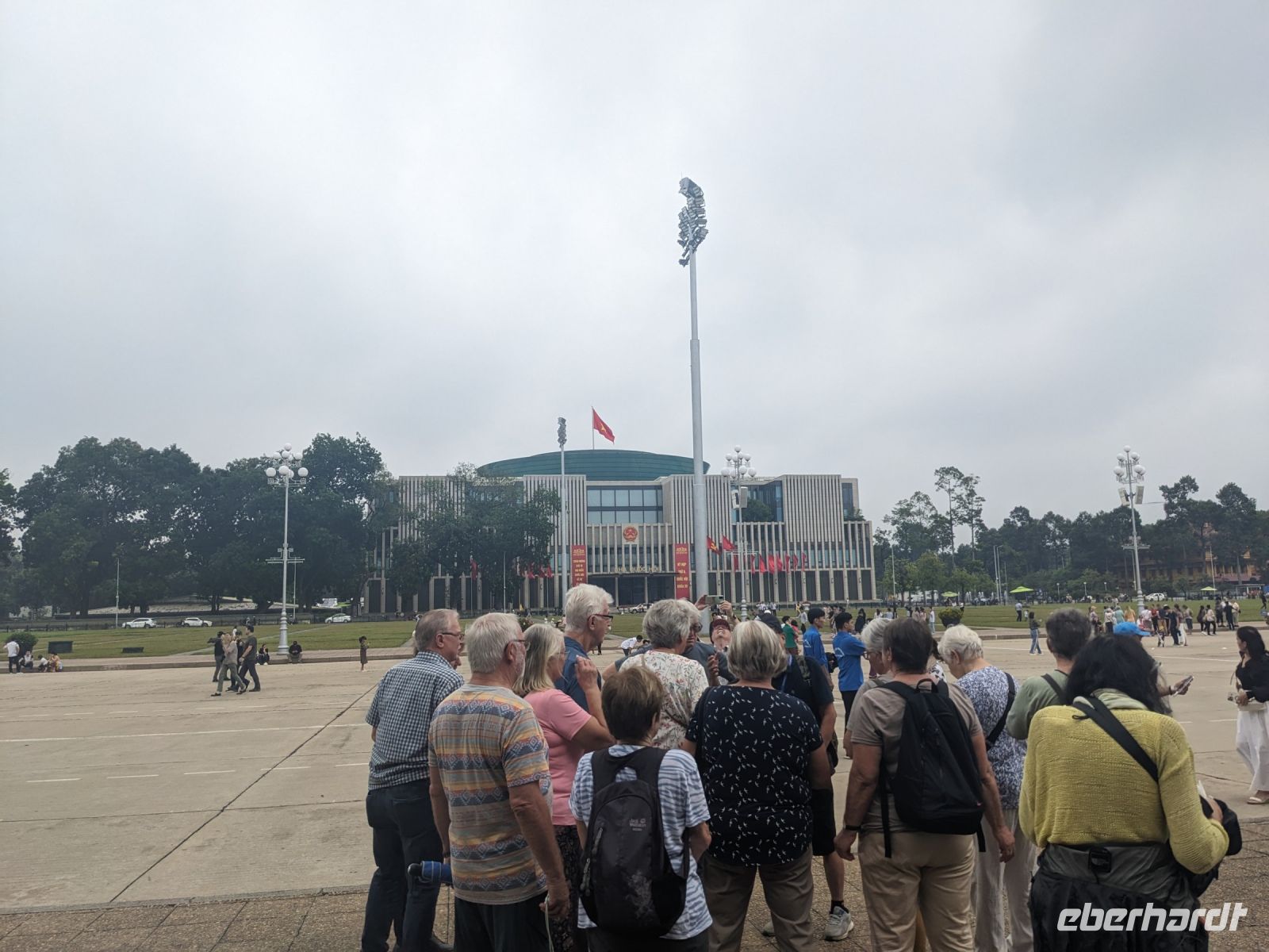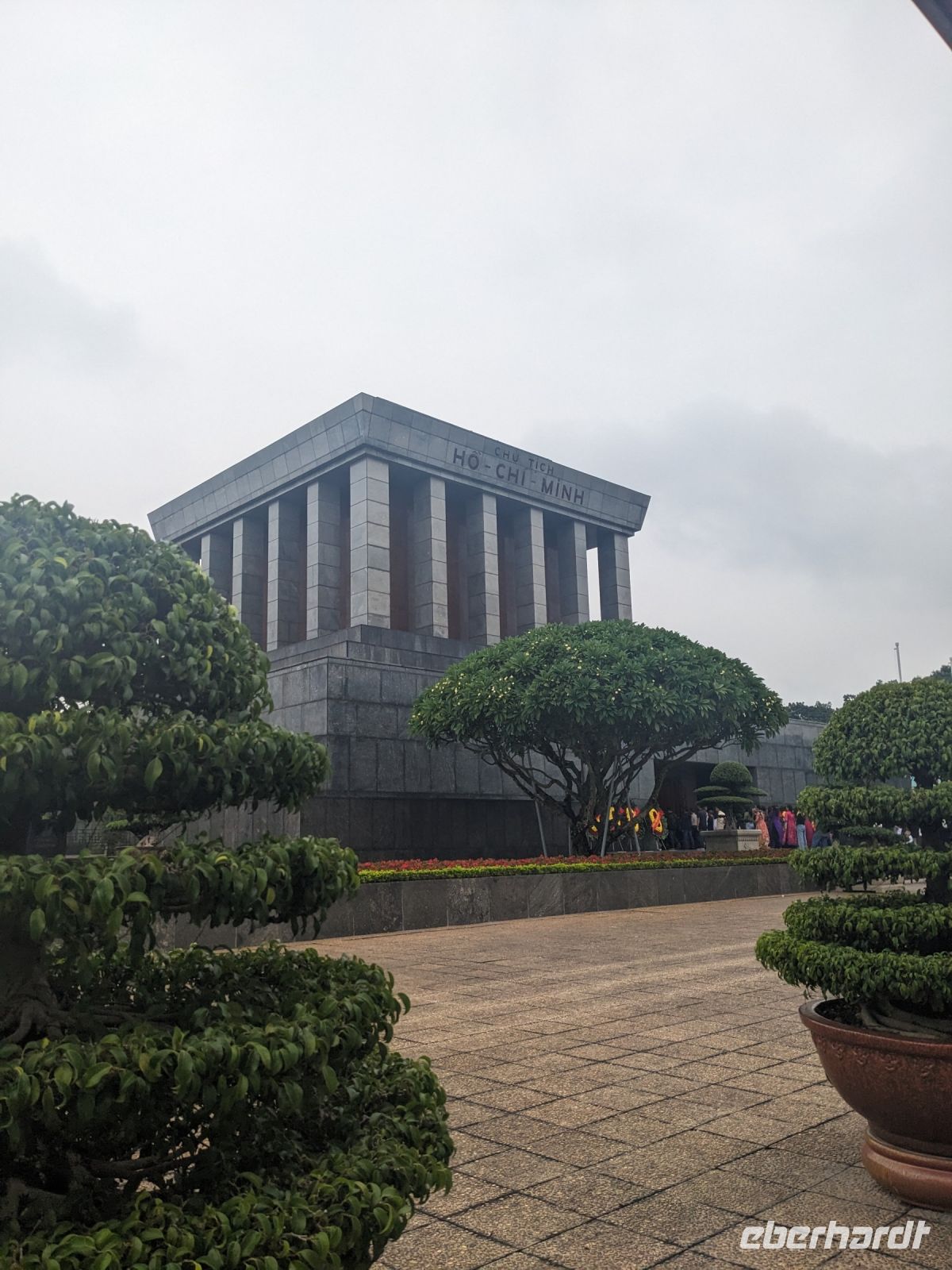 Ausgeschlafen ging es am nächsten Morgen zum Ho Chi Minh Mausoleums, wo Sicherheit großgeschrieben wird. Rucksäcke, Wasserflaschen, Kameras - alles musste weg, um IHN zu sehen, den legendären Politiker, welcher dort aufgebahrt unter strengsten Vorkehrungen für die Öffentlichkeit zugänglich ist. Ein gut strukturiertes Leitsystem führte uns über das Gelände. Anschließend brachte Lang uns in ein interessantes Mittagslokal - für den europäischen Standard eine eher ungewöhnliche Lokalität. Weiter ging es dann zum Literaturtempel. Hier feierten gerade einige Schüler ihren Abschluss und machten viele Fotos - nicht verwunderlich in dieser schöne Kulisse. Mit dem Bus fuhren wir anschließend zum Wasserpuppentheater. Der Besuch war eine wirklich tolle Erfahrung, auch wenn bei einigen aufgrund der sanften Melodien und der Dunkelheit die Augen zufielen. Die Art und Weise der Präsentation ist auf jeden Fall einen Besuch wert - wir waren begeistert. Anschließend hatten wir noch etwas Zeit und schlenderten individuell durch die umliegenden Geschäfte, bevor wir uns wieder trafen, um mit Rikschas durch die Stadt und schließlich zum Restaurant zu fahren. Pünktlich dazu fing es an zu regnen. Zum Glück waren die Rikschas überdacht und die umsichtigen Fahrer hatten Planen, sodass wir trocken diese tolle Atmosphäre der verregneten Stadt im Dämmerlicht genießen konnten. Der Regen hat hier kein bisschen gestört, sondern das Ganze eher sogar schöner gemacht. Nach dem gemeinsamen Abendessen kehrten wir schließlich wieder im Hotel ein.