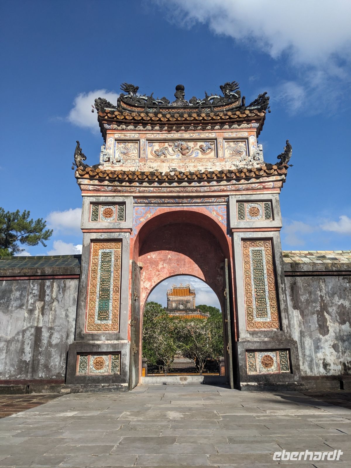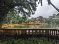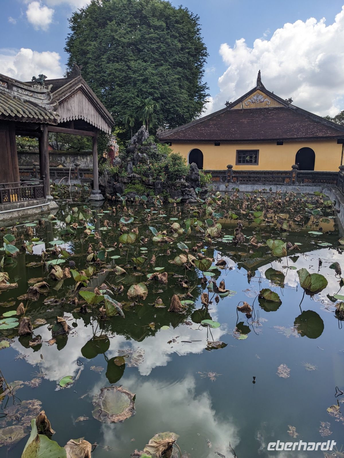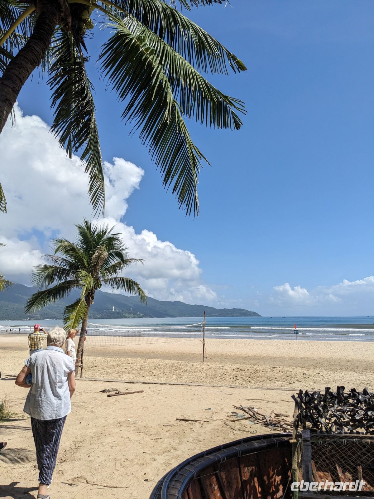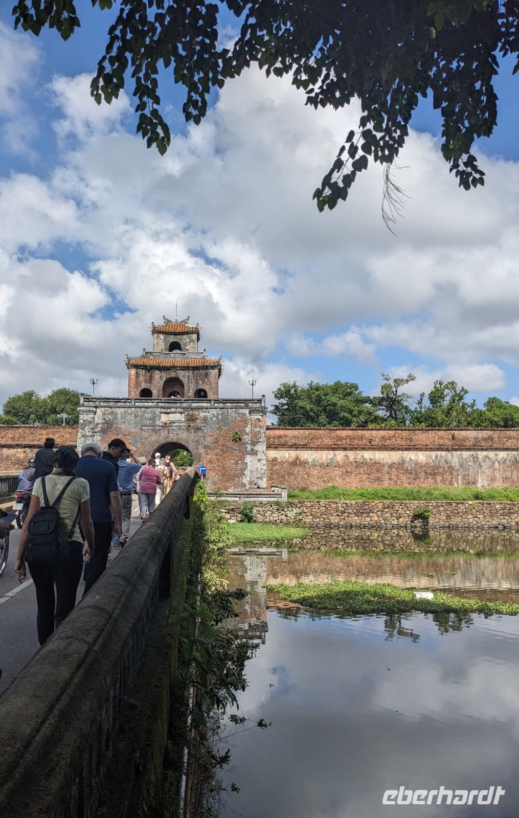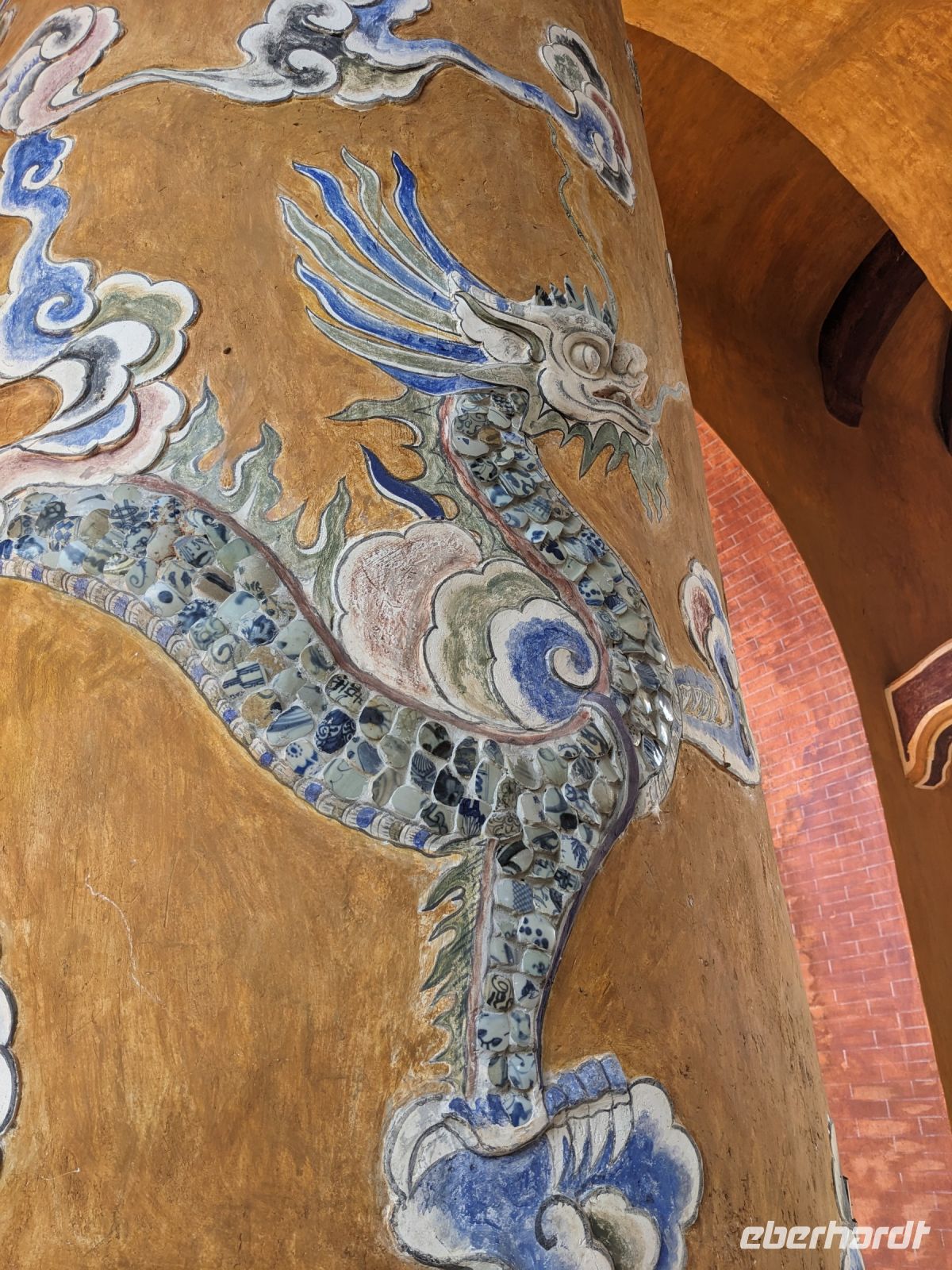 Auf dem Weg zum Wolkenpass legten wir noch einen Zwischenstopp am Strand von Lang Co ein - dort war es sehr paradiesisch und einige von uns wagten sich auch mit den Füßen in das angenehm erfrischende Wasser. Die Anblicke bei der Überfahrt des Wolkenpasses konnten sich auch sehen lassen. Es waren zudem Bahnschienen auszumachen und später rauschte ein Zug an uns vorbei - im Hintergrund eine idyllische Bucht. Angekommen in Hue besuchten wir zunächst die Thien-Mu Pagode, eine schöne Anlage inmitten der Stadt. Anschließend machten wir, ganz nach meinem Motto: Was wäre ein Besuch eines neues Ortes ohne Bootsfahrt, eine kleine Tour mit einem Drachenboot über den Fluss. Dabei konnten wir schon unser morgiges Ziel, den Königspalast, erahnen. Schließlich brachte uns unser Bus von der Anlegestelle zum naheliegenden Hotel. Zum Abendessen besuchten wir ein sehr gutes Restaurant, welches seine Speisen auf künstlerische Art und Weise servierte.