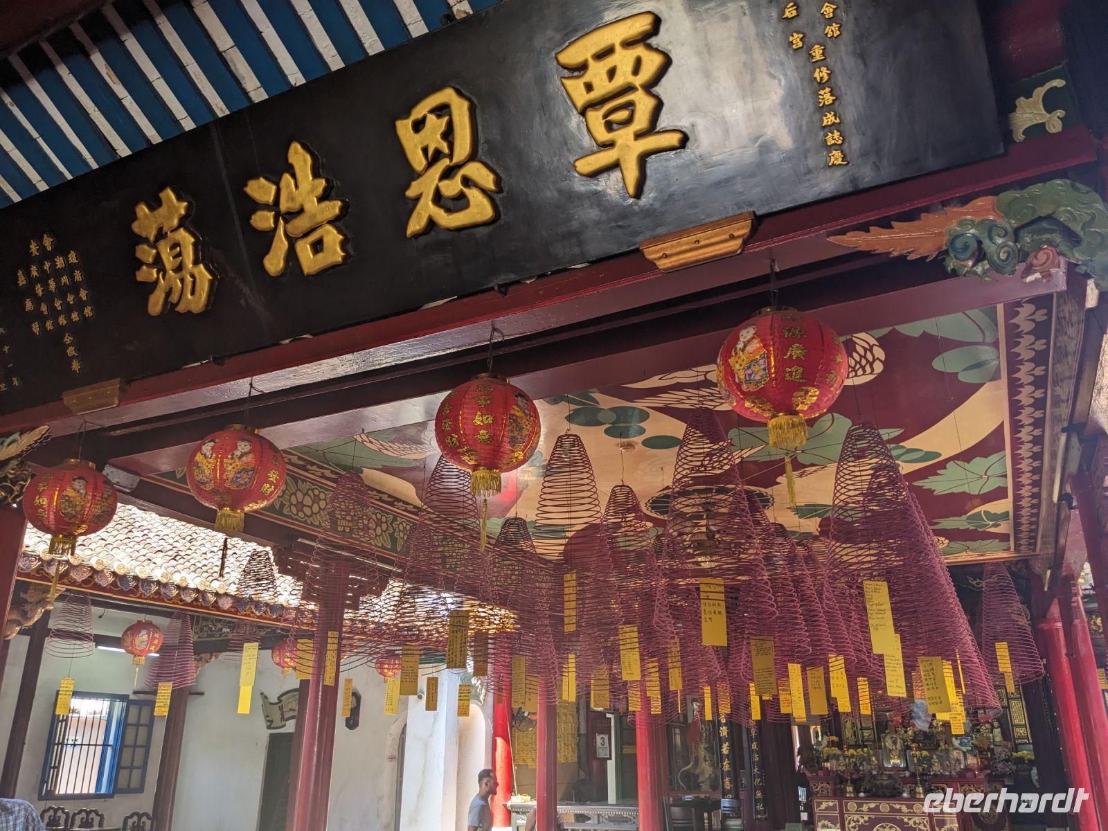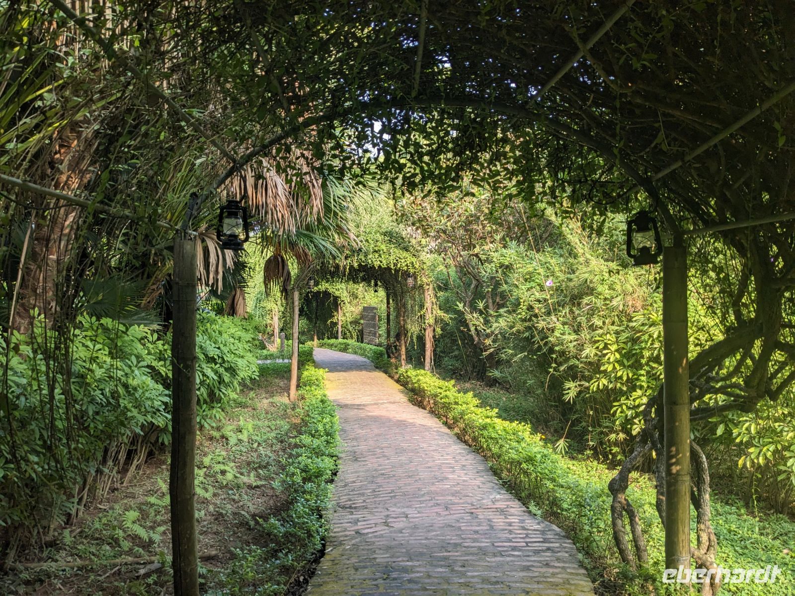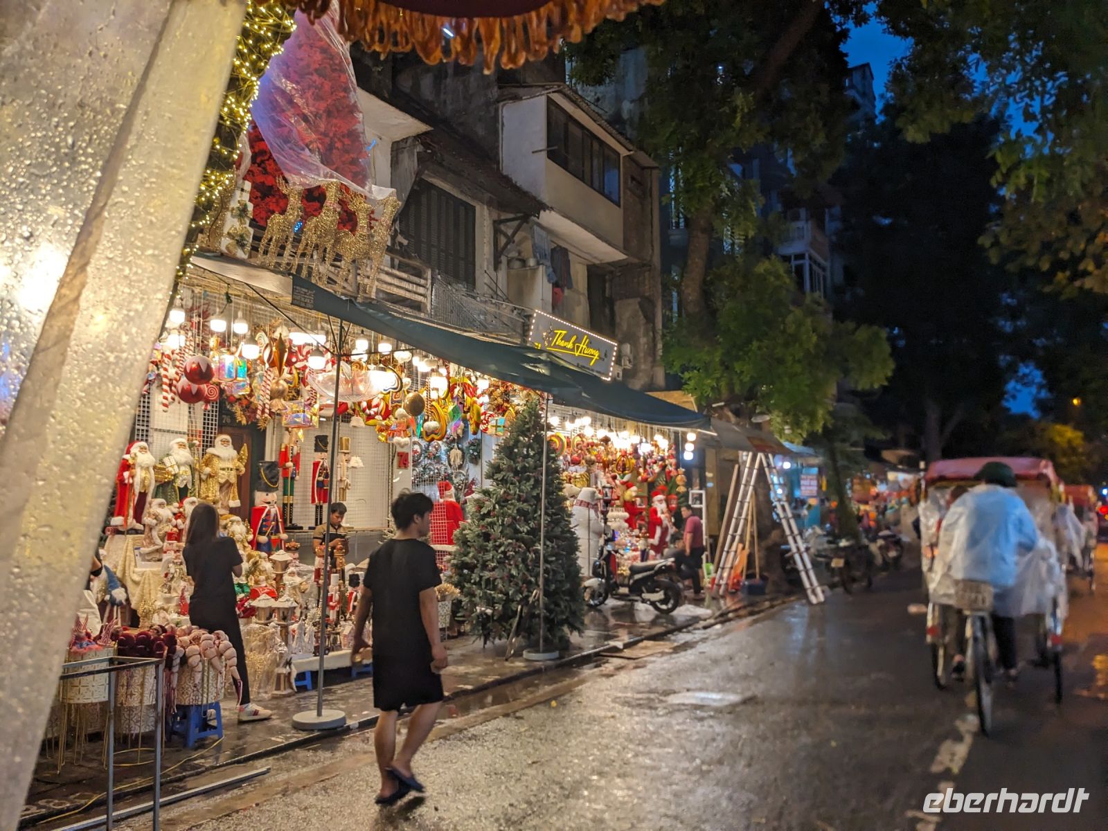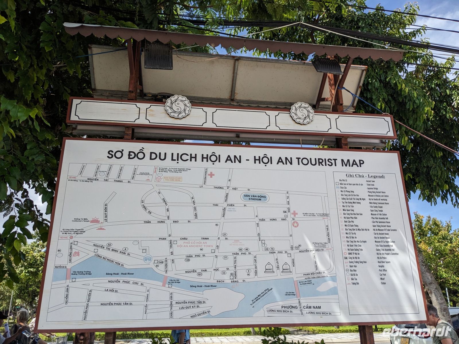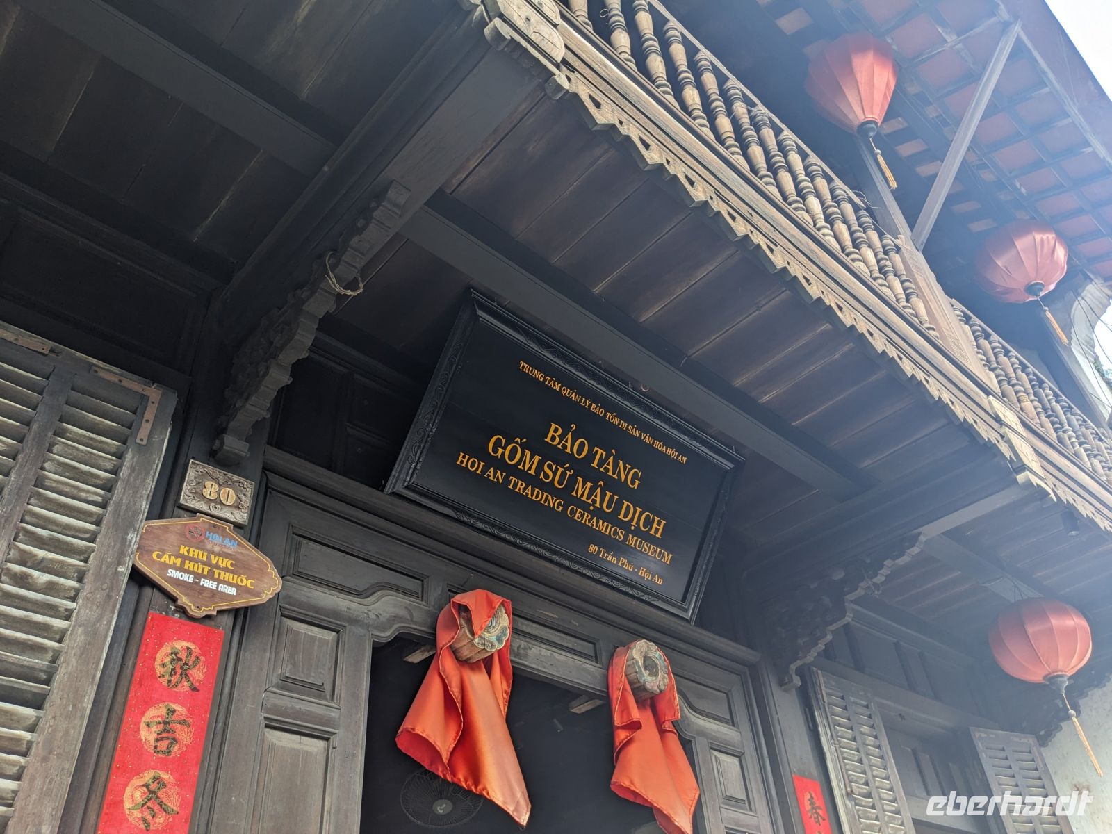 Am Vormittag erwartete uns ein besonderes Highlight: die Fahrt mit runden Bambusbooten. Ein sehr lustiges Unterfangen in dieser runden Halbkugel über den Fluss zu schippern. Aufgrund der starken Sonneneinstrahlung halfen uns die umsichtigen Bootsführer mit Hüten und Sonnenschirmen aus - so ließ es sich gut aushalten. Entertainer sorgten zu stimmungsvoller Musik mit beeindruckenden Kunststücken zwischendurch für Unterhaltung und wir entdeckten sogar in unseren Reihen einen wahren Gesangskünstler. Anschließend ging es zurück in die Innenstadt von Hoi An, wo wir einen Rundgang unternahmen, bei dem wir uns unter anderem ein traditionelles Wohnhaus, ein Museum, eine chinesische Versammlungshalle und eine Seidenmanufaktur anschauten. Die Stadt ist insgesamt sehr schön hergerichtet und wir konnten schon zahlreiche Lampions erspähen. Wie es hier wohl abends aussieht? Nach dem Rundgang hatten wir noch etwas Freizeit. Manche nutzten die Zeit für eine Fahrt zum Strand, während andere noch durch die Stadt zogen oder sich im Hotel ausruhten. Zum Abendessen trafen wir uns dann wieder - hier kamen unsere Regencapes und -jacken zum Einsatz, denn eine regelrechte Sintflut prasselte auf uns herab. Doch zum Glück hörte es dann pünktlich für unseren abendlichen Spaziergang wieder auf. Mit einem Teil der Gruppe zogen wir noch ein bisschen durch die Straßen, vor allem auf der Suche nach einem Lampion zum Mitnehmen für Zuhause. Und auch meine vorherige Frage klärte sich hier: Abends hatte die Stadt nochmal ein ganz besonderes Flair durch die vielen schönen Lichter in den Baumwipfeln - eine tolle Atmosphäre.