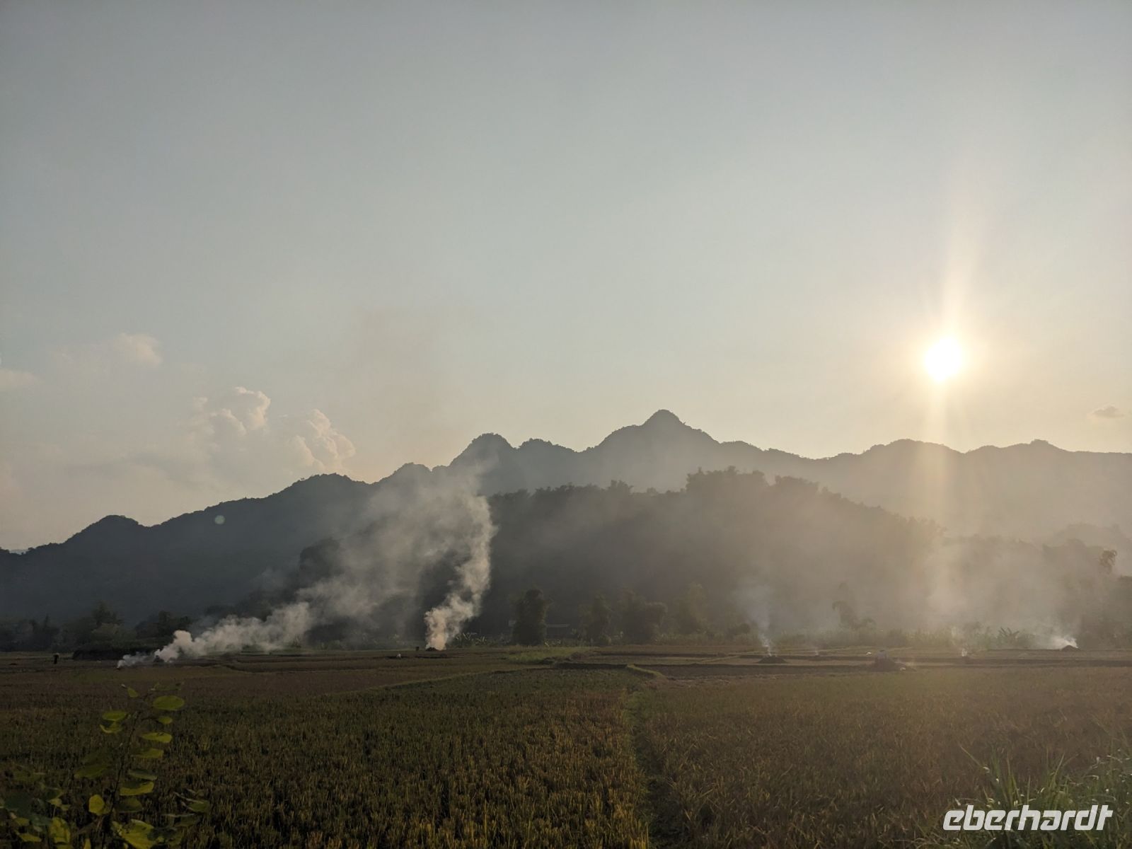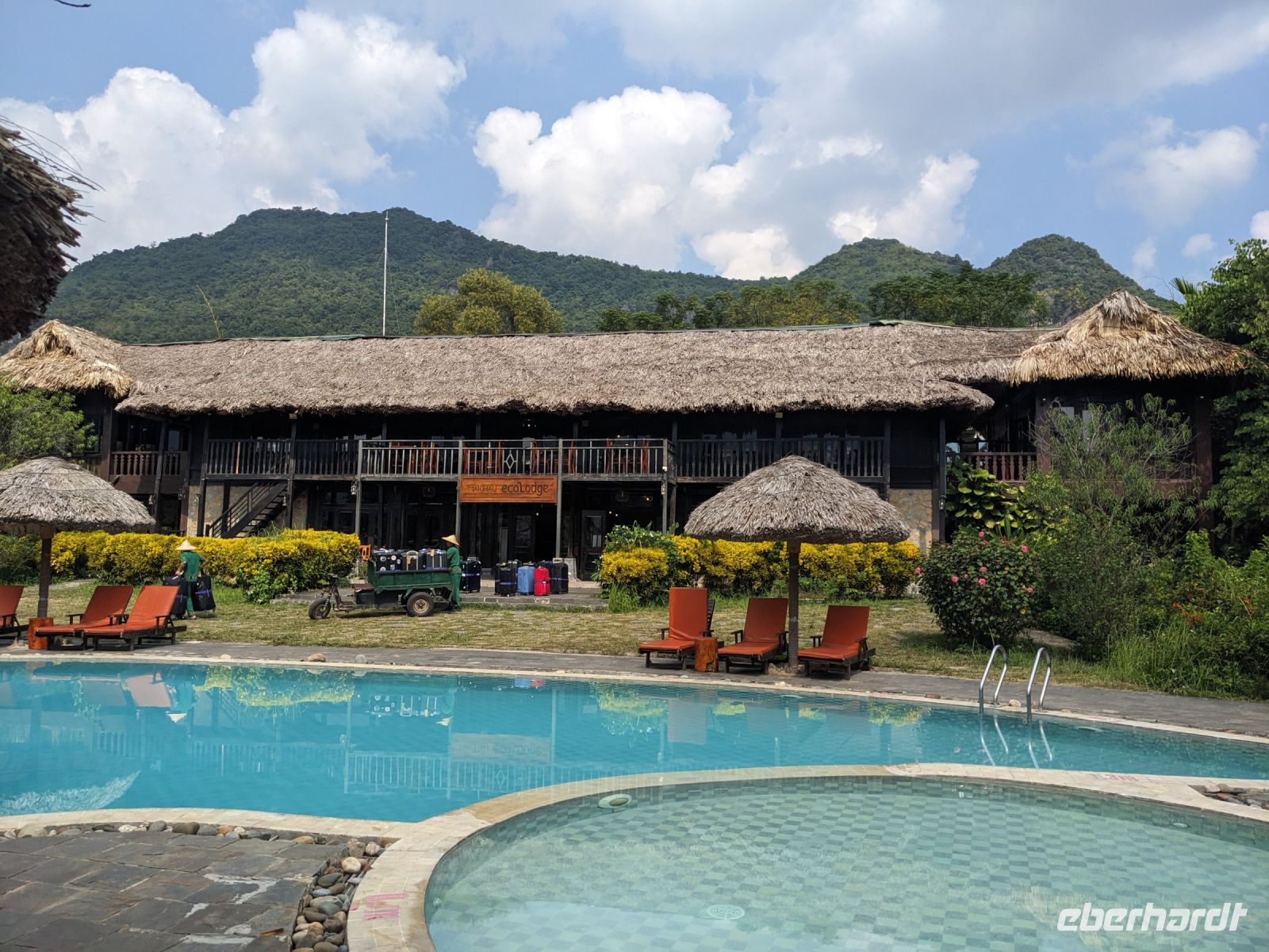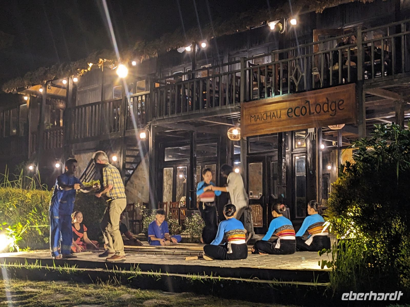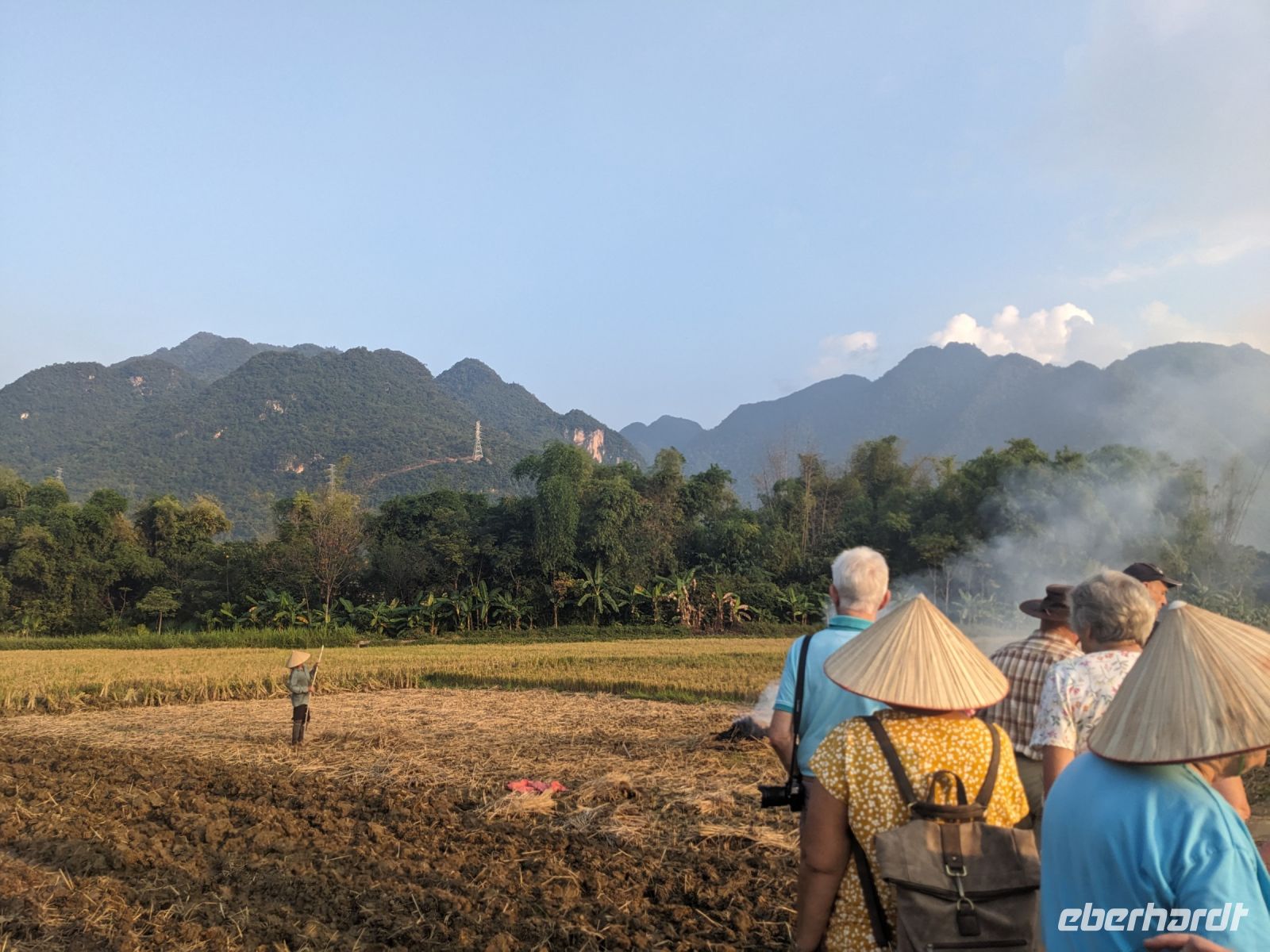 Zum Glück konnten wir heute morgen ein bisschen ausschlafen und uns noch etwas auf der Anlage umsehen, bevor es weiterging. Gut gestärkt von einem wirklich großen Frühstücksangebot starteten wir in den Tag. Unsere Rundreise führte uns in das Bergdorf Mai Chau. Die Ecolodge lag ganz idyllisch umgeben von Reisfeldern. Im Hintergrund ragten die Berge auf. Die Vögel sangen. Der Himmel war blau. Ein wahrhaft schöner Tag. Jeder von uns war in einem kleinen Bungalow untergebracht. Nach einer kurzen Verschnaufpause für ein Mittagessen, einen Sprung in den Pool oder ein kleines Schläfchen trafen wir uns erneut für einen Spaziergang entlang der Reisefelder und durch das Dorf. Dieses war wie ausgestorben. Viele Einwohner besuchten ein Fußballspiel - die Stimmung: ausgelassen. Dafür hatten wir das Dorf fast ganz für uns allein. Lang erzählte, dass es hier am Wochenende ganz schön voll werden würde - Glück gehabt! Wir kehrten schließlich noch in einer Bierstube ein und traten dann bei Dämmerlicht den Heimweg ein. Im Hotel erwartete uns dann ein leckeres Abendessen mit einer anschließenden Tanzvorführung. So fand der Abend einen schönen Ausklang.