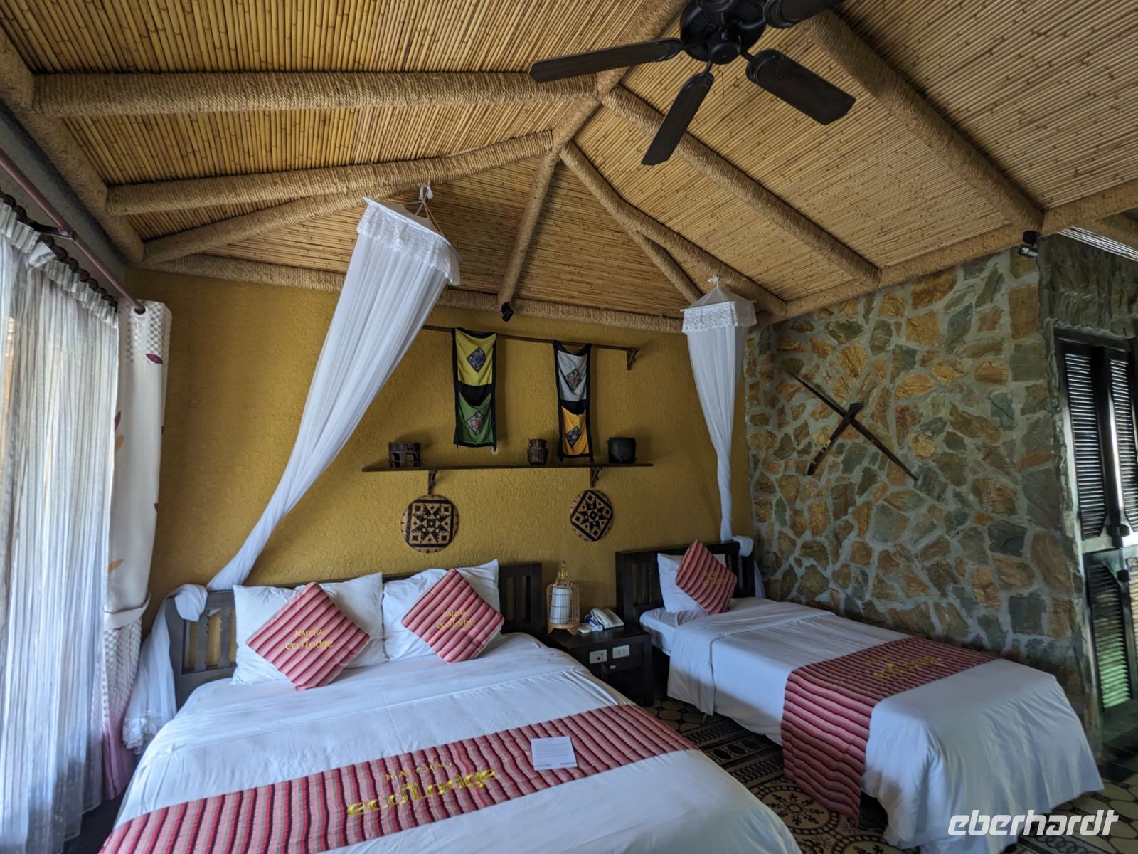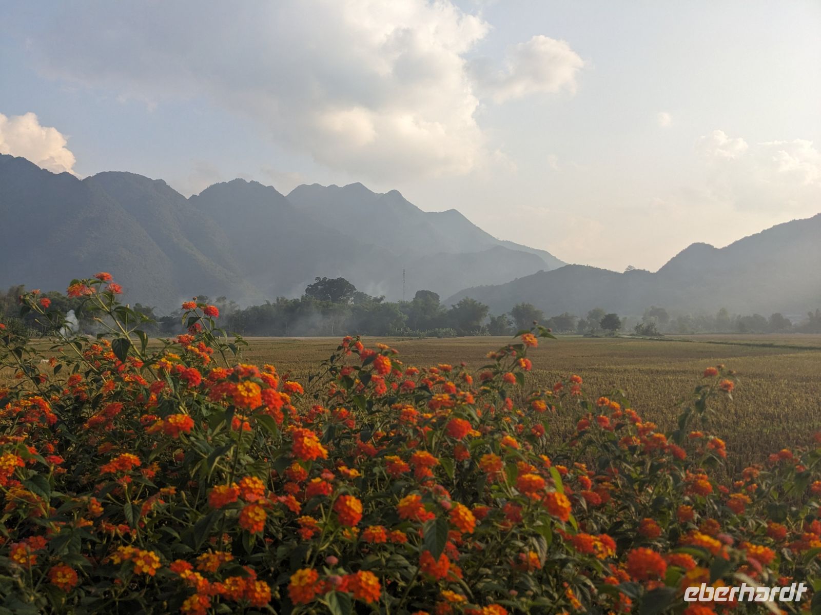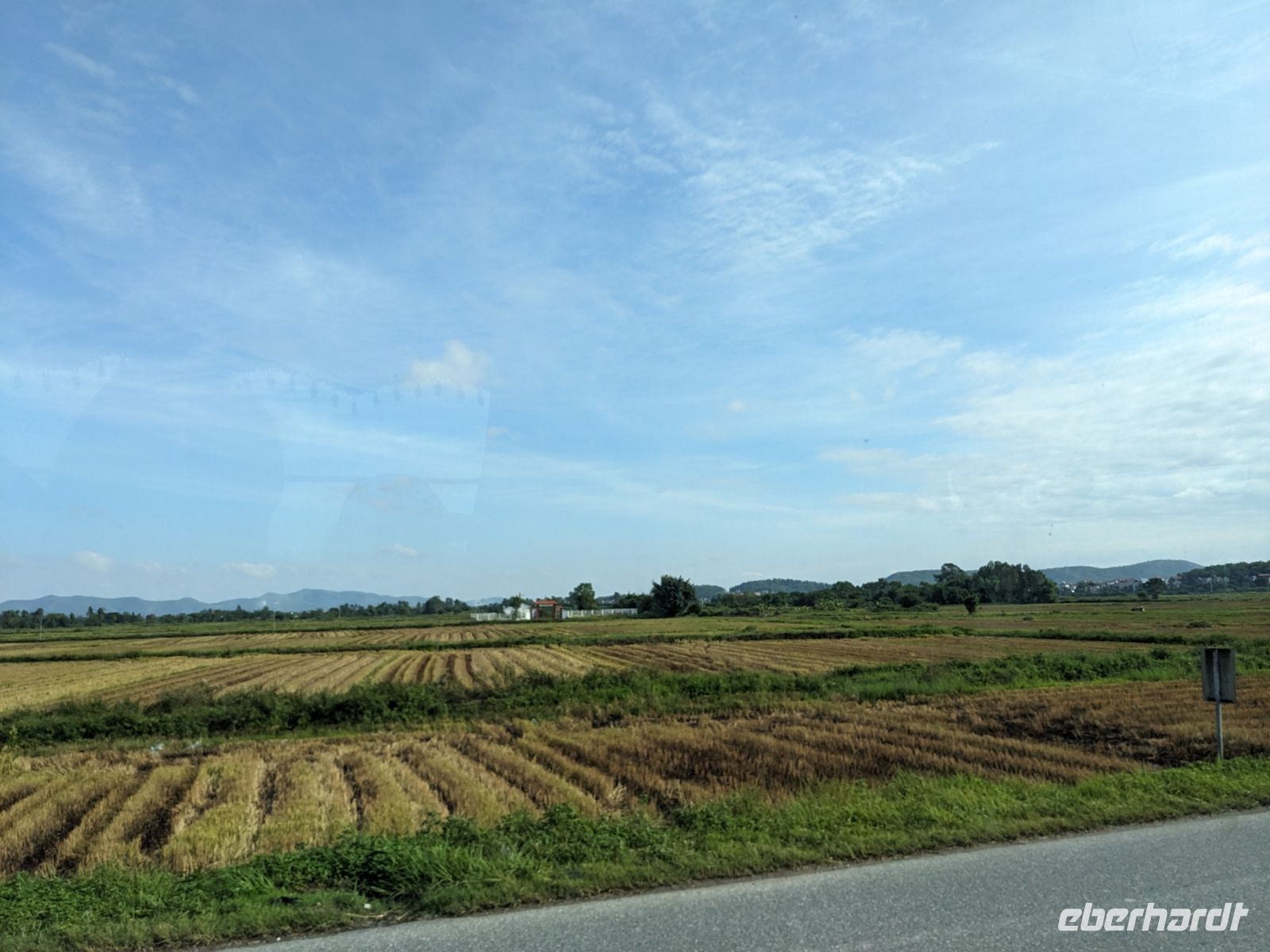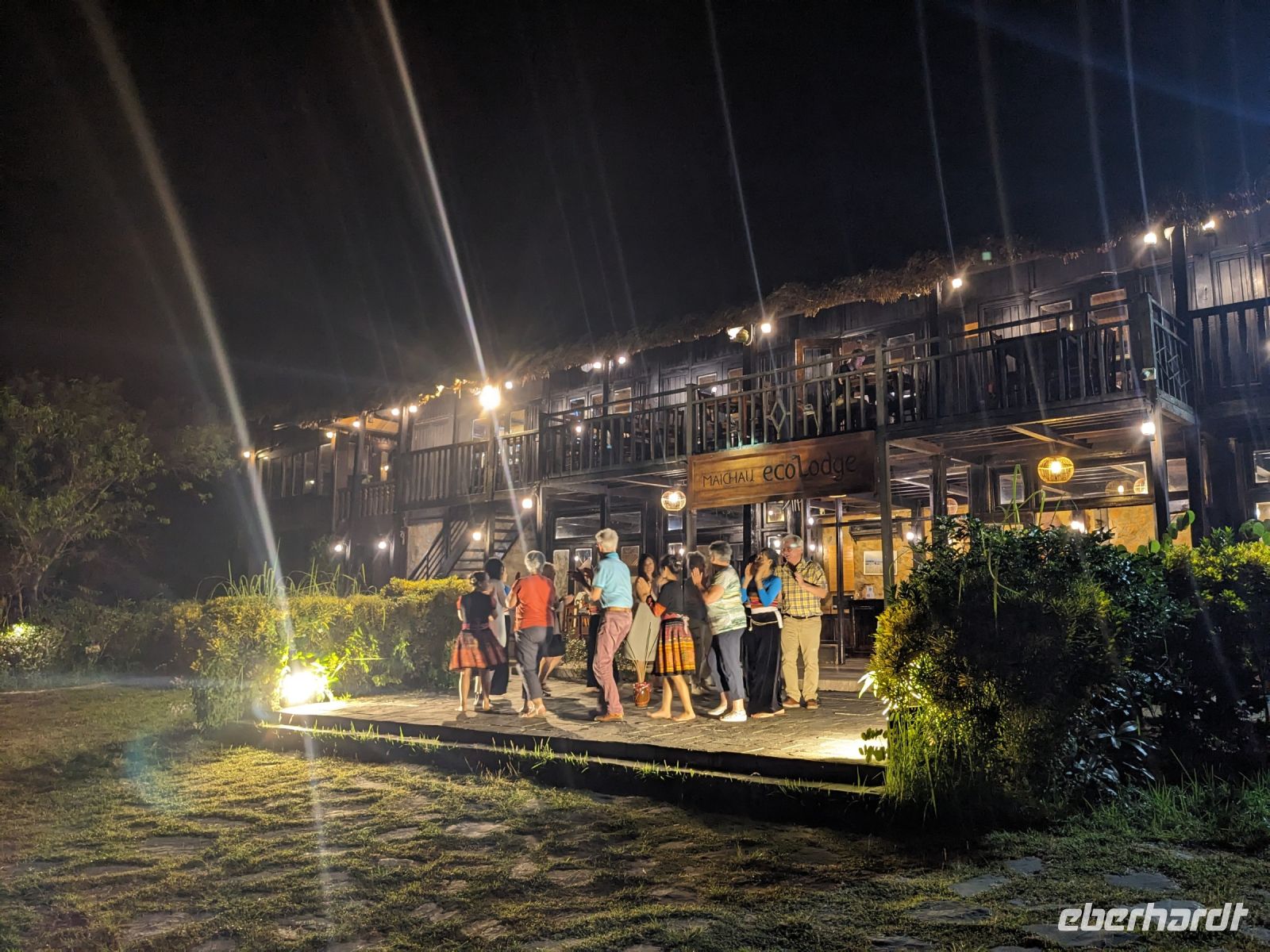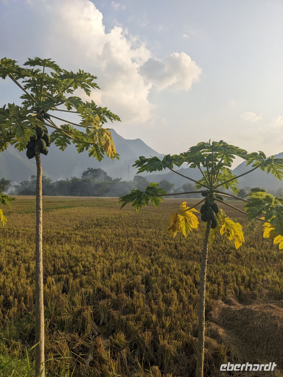 Zum Glück konnten wir heute morgen ein bisschen ausschlafen und uns noch etwas auf der Anlage umsehen, bevor es weiterging. Gut gestärkt von einem wirklich großen Frühstücksangebot starteten wir in den Tag. Unsere Rundreise führte uns in das Bergdorf Mai Chau. Die Ecolodge lag ganz idyllisch umgeben von Reisfeldern. Im Hintergrund ragten die Berge auf. Die Vögel sangen. Der Himmel war blau. Ein wahrhaft schöner Tag. Jeder von uns war in einem kleinen Bungalow untergebracht. Nach einer kurzen Verschnaufpause für ein Mittagessen, einen Sprung in den Pool oder ein kleines Schläfchen trafen wir uns erneut für einen Spaziergang entlang der Reisefelder und durch das Dorf. Dieses war wie ausgestorben. Viele Einwohner besuchten ein Fußballspiel - die Stimmung: ausgelassen. Dafür hatten wir das Dorf fast ganz für uns allein. Lang erzählte, dass es hier am Wochenende ganz schön voll werden würde - Glück gehabt! Wir kehrten schließlich noch in einer Bierstube ein und traten dann bei Dämmerlicht den Heimweg ein. Im Hotel erwartete uns dann ein leckeres Abendessen mit einer anschließenden Tanzvorführung. So fand der Abend einen schönen Ausklang.