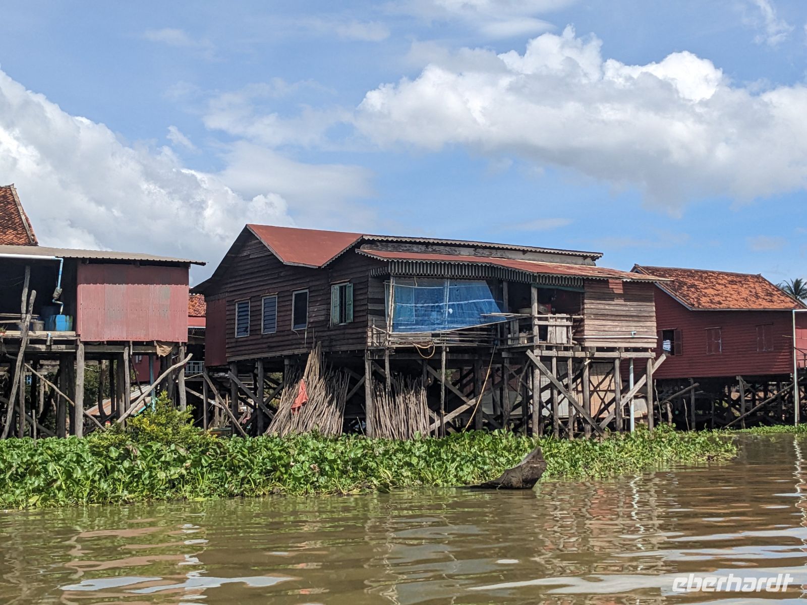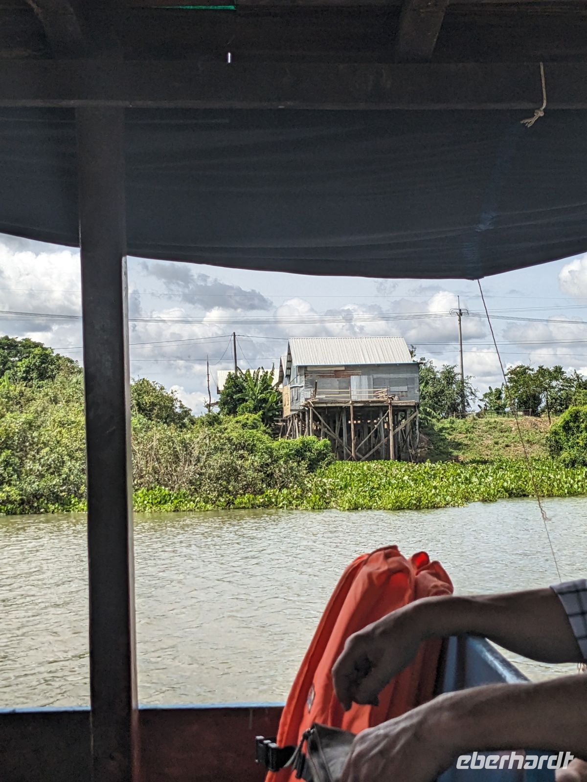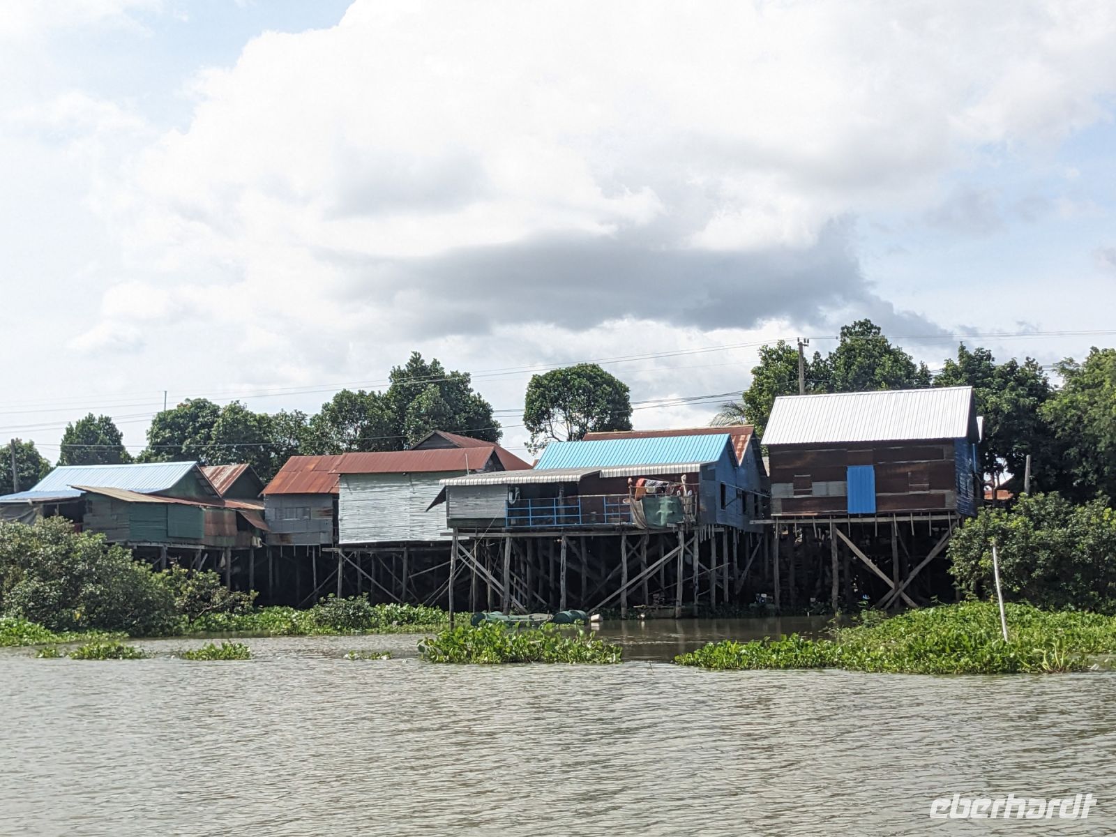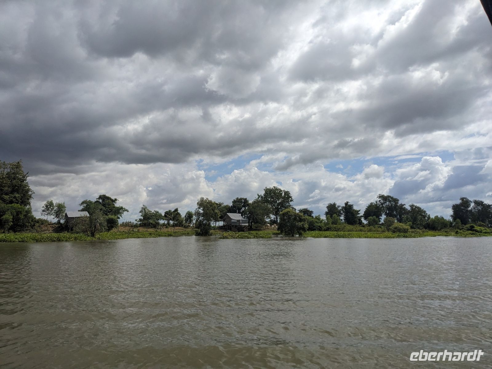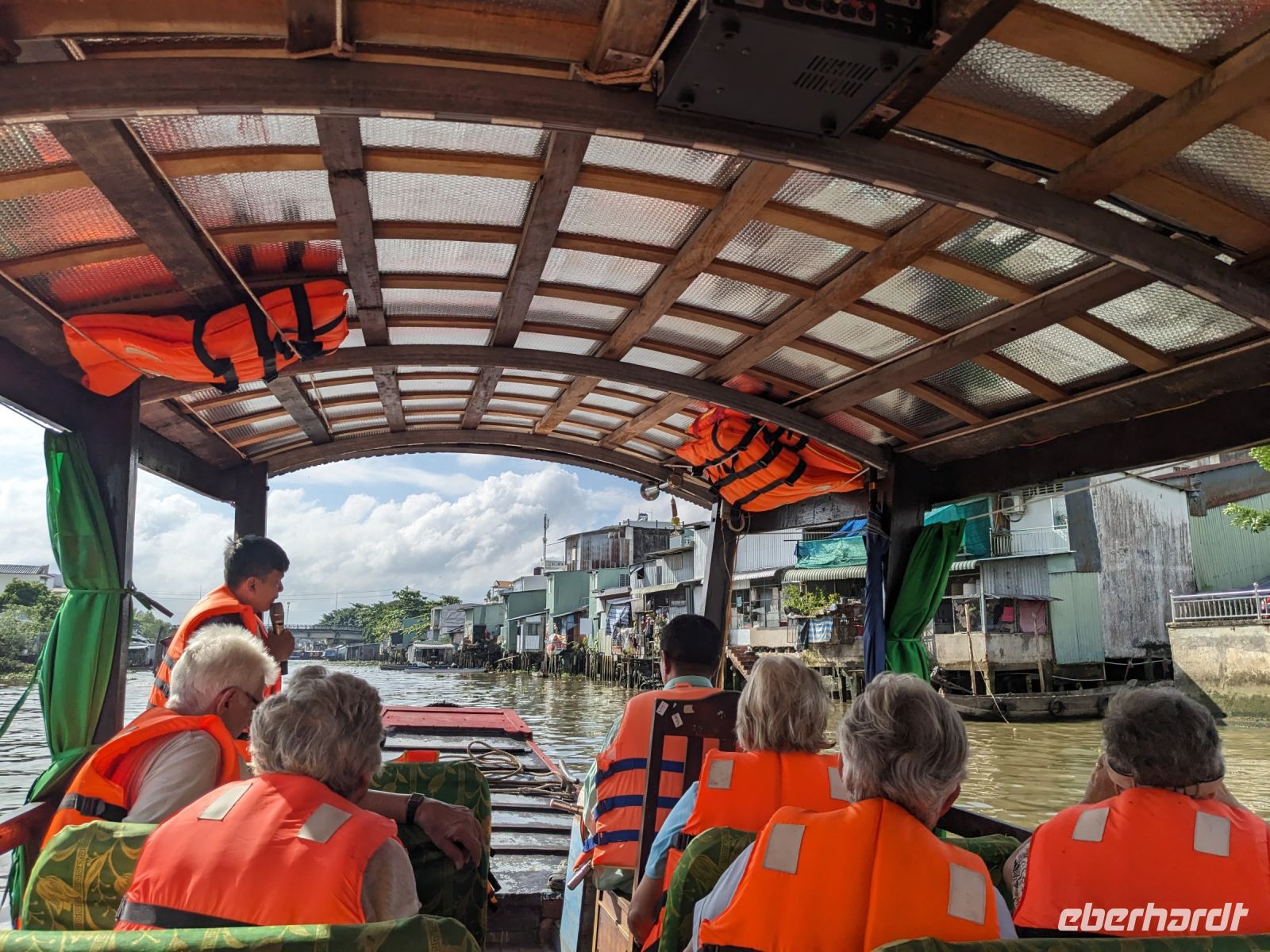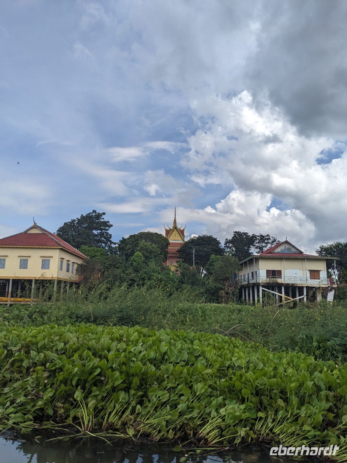Nach einem letzten ausgiebigen Frühstück, genug Zeit zum Koffer packen und zur Nutzung der Annehmlichkeiten des Hotels fuhren wir dann los in Richtung des größten Binnensees Südostasiens, dem Tonle Sap - ein schöner Reiseabschluss mit zahlreichen Eindrücken. Denn bevor wir den eigentlichen See erreichten, durchfuhren wir zunächst ein Gebiet mit Stelzenhäusern, kleinen Inseln, auf denen beispielsweise Tempel gebaut waren und schließlich eröffnete sich uns der Blick in eine uneingeschränkte Weite. So weit wir auch blickten, es war kein Ende des Sees am Horizont zu sehen. Wieder zurück an der Anlegestelle war es mit dem Bus von dort nur ein kurzes Stück zum Flughafen von Siem Reap. Auf der Fahrt gab es von mir noch im Namen von Eberhardt TRAVEL einen kleinen Glücksbringer für zukünftige Reisen. Der Flughafen ist noch nicht mal zwei Monate alt gewesen zum, Zeitpunkt unseres Rückflugs und sehr eindrucksvoll gebaut. Alles hat ohne große Vorkommnisse funktioniert. Unser erstes Ziel war Ho Chi Minh Stadt und von dort ging es dann zurück in Richtung Frankfurt.