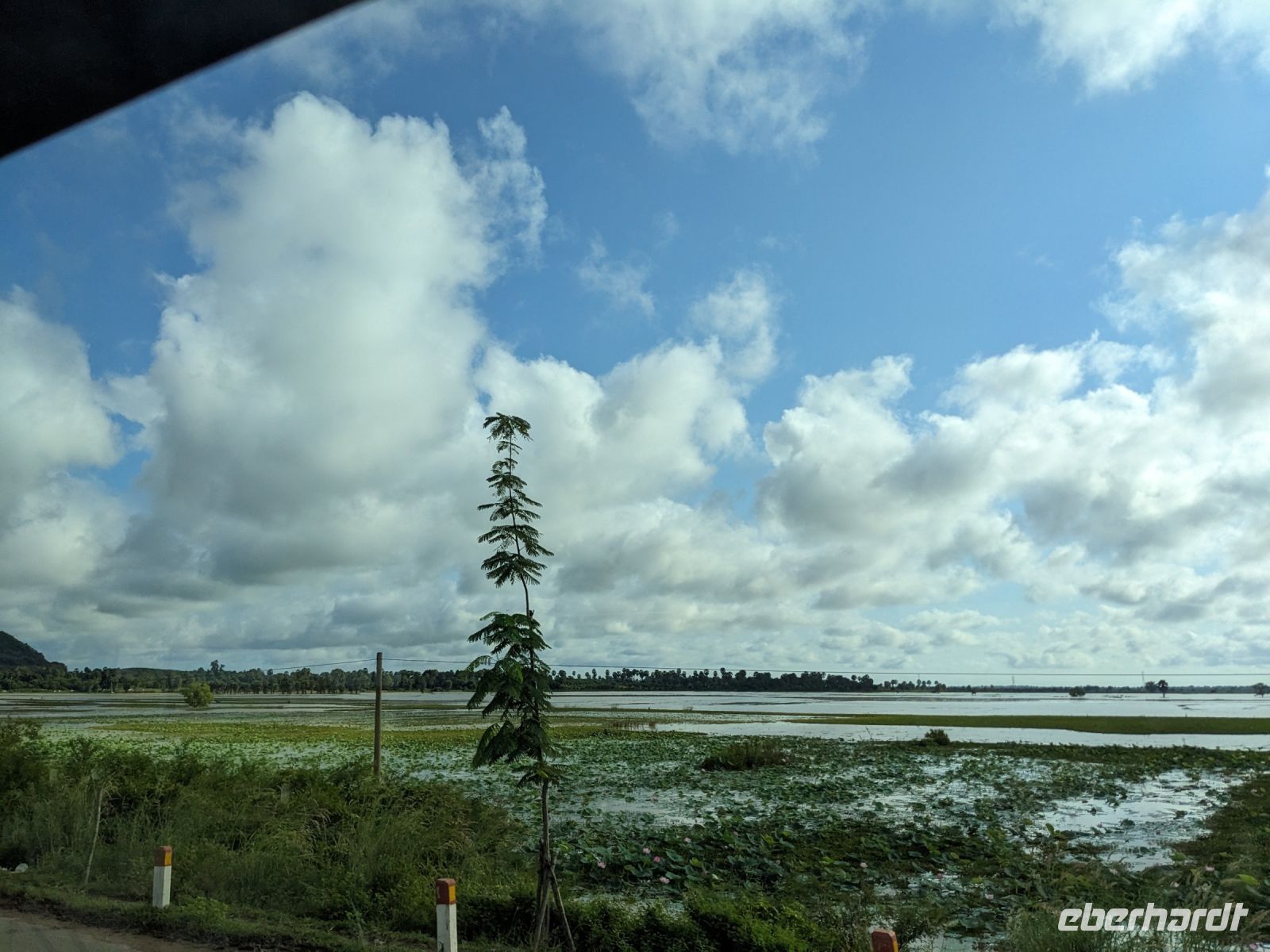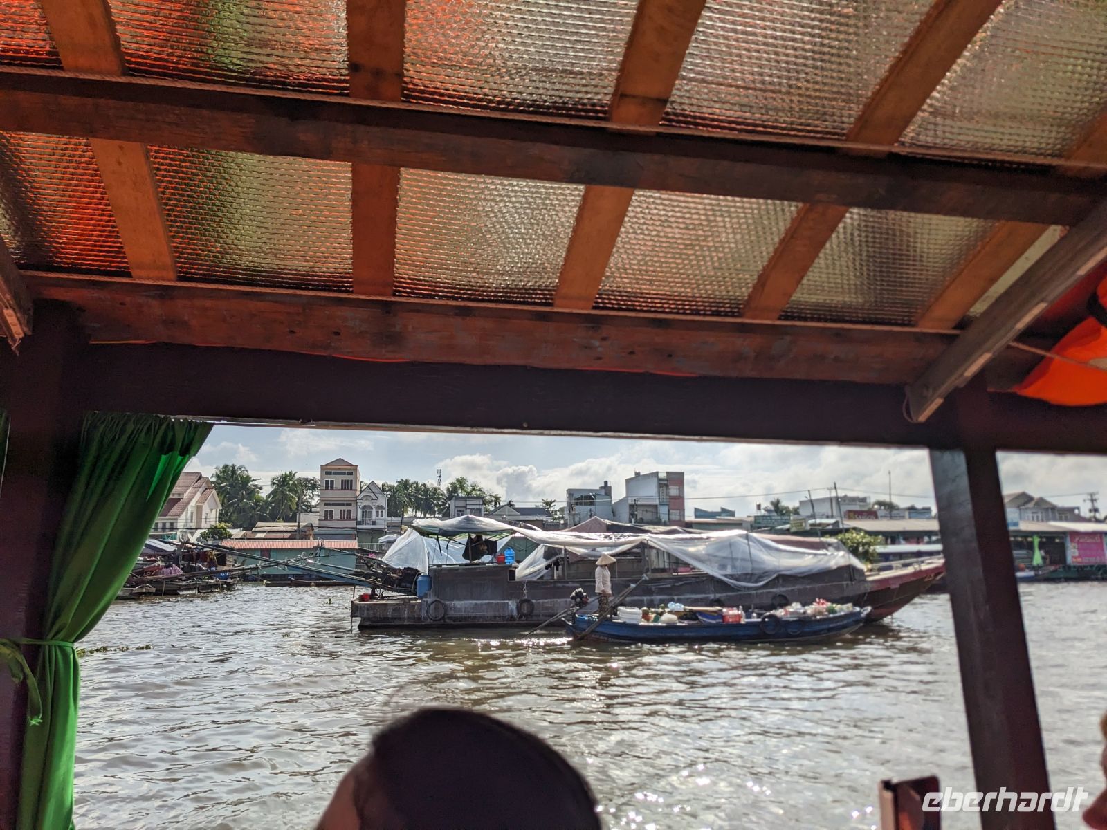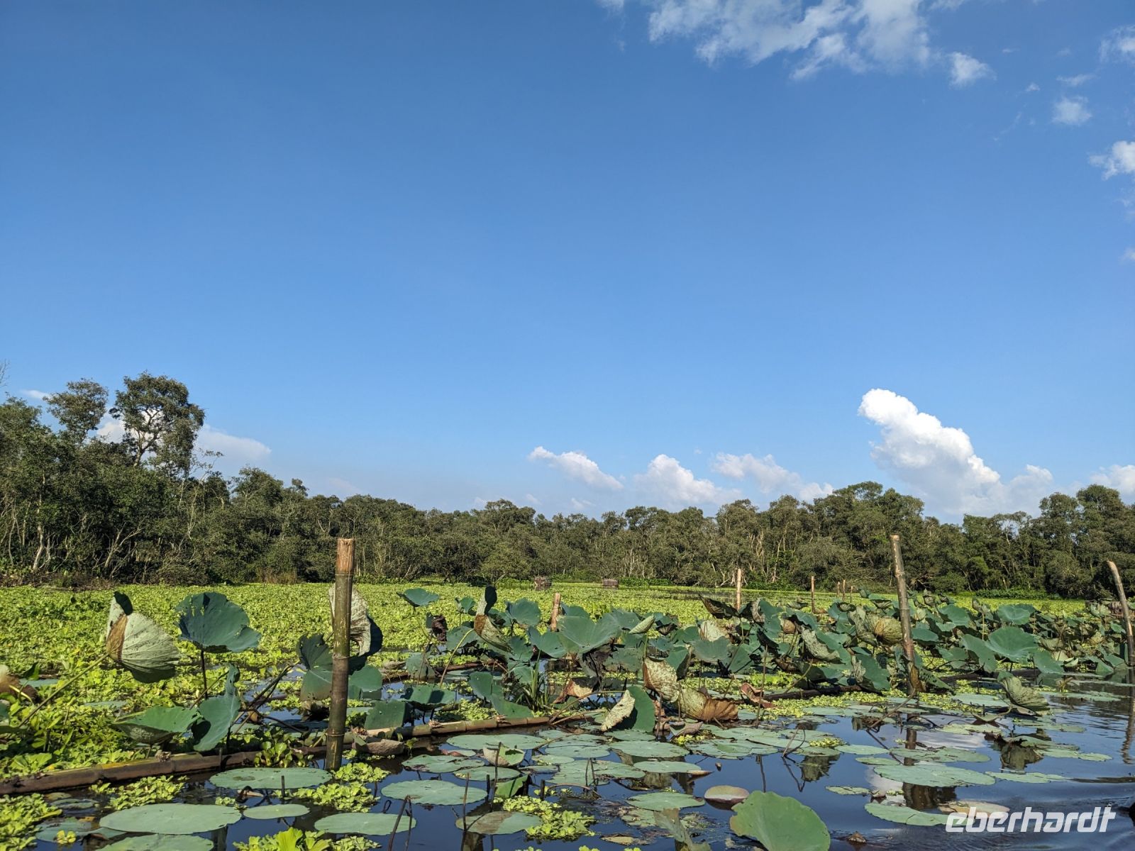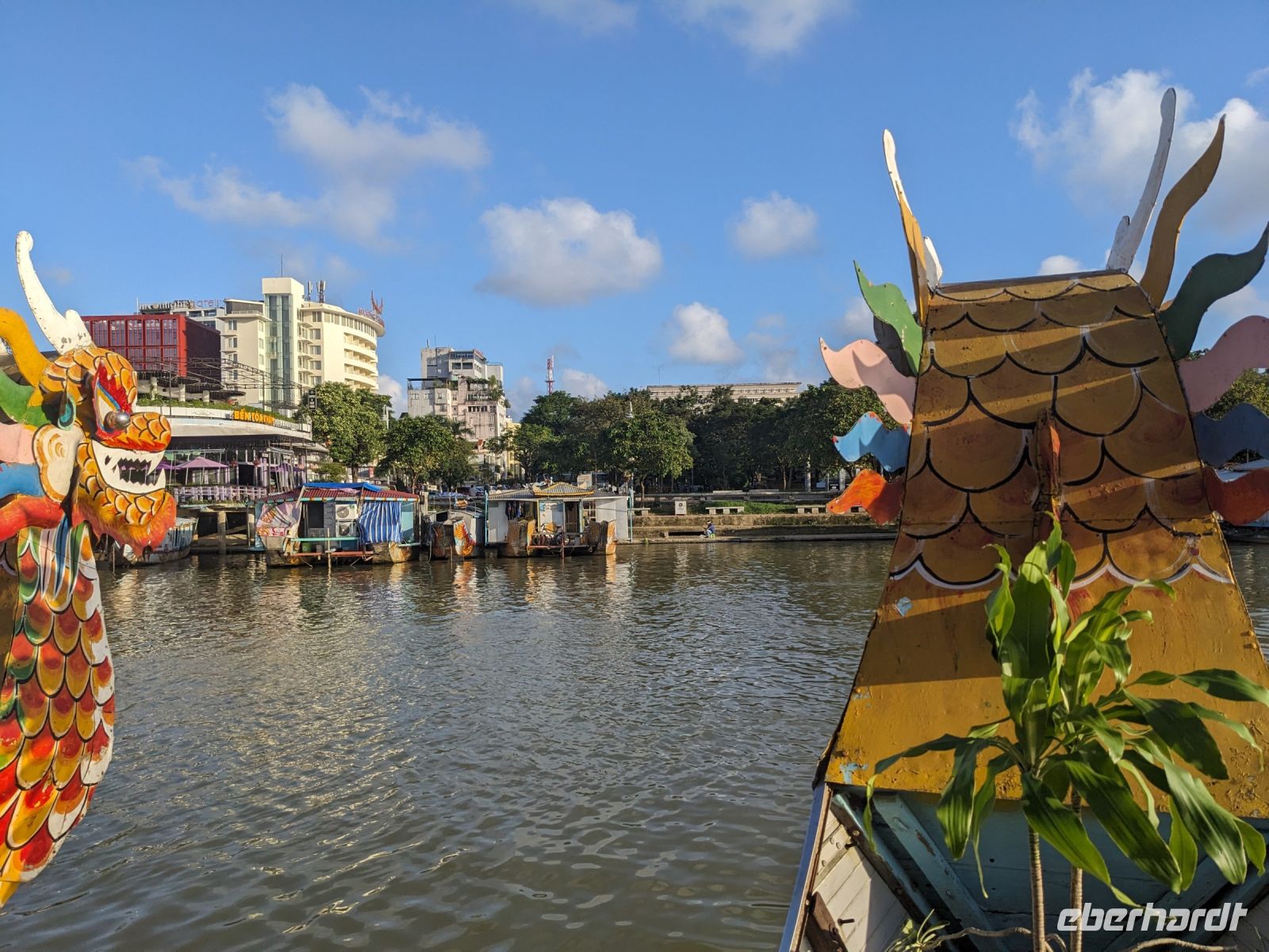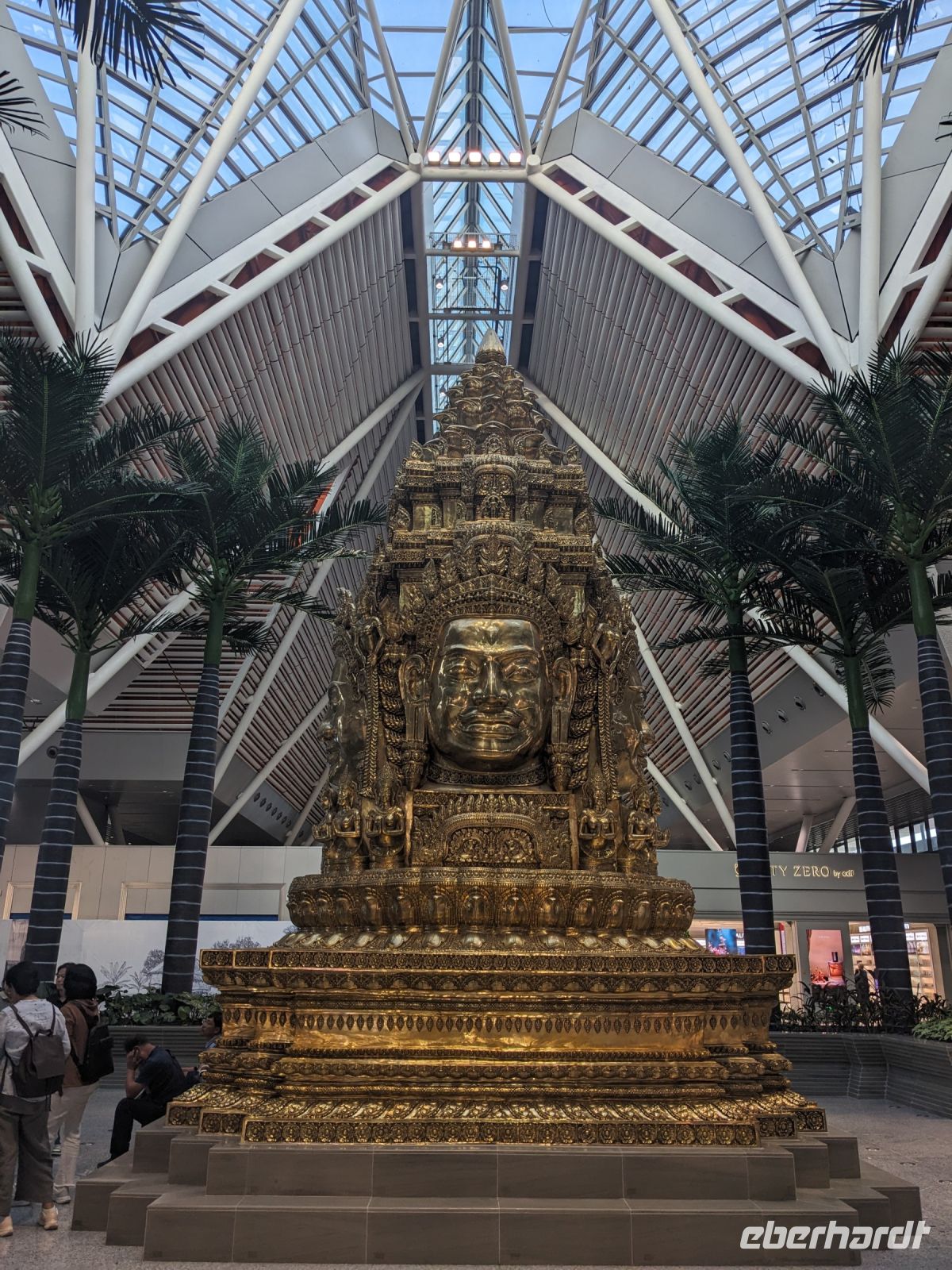 Nach einem letzten ausgiebigen Frühstück, genug Zeit zum Koffer packen und zur Nutzung der Annehmlichkeiten des Hotels fuhren wir dann los in Richtung des größten Binnensees Südostasiens, dem Tonle Sap - ein schöner Reiseabschluss mit zahlreichen Eindrücken. Denn bevor wir den eigentlichen See erreichten, durchfuhren wir zunächst ein Gebiet mit Stelzenhäusern, kleinen Inseln, auf denen beispielsweise Tempel gebaut waren und schließlich eröffnete sich uns der Blick in eine uneingeschränkte Weite. So weit wir auch blickten, es war kein Ende des Sees am Horizont zu sehen. Wieder zurück an der Anlegestelle war es mit dem Bus von dort nur ein kurzes Stück zum Flughafen von Siem Reap. Auf der Fahrt gab es von mir noch im Namen von Eberhardt TRAVEL einen kleinen Glücksbringer für zukünftige Reisen. Der Flughafen ist noch nicht mal zwei Monate alt gewesen zum, Zeitpunkt unseres Rückflugs und sehr eindrucksvoll gebaut. Alles hat ohne große Vorkommnisse funktioniert. Unser erstes Ziel war Ho Chi Minh Stadt und von dort ging es dann zurück in Richtung Frankfurt.
