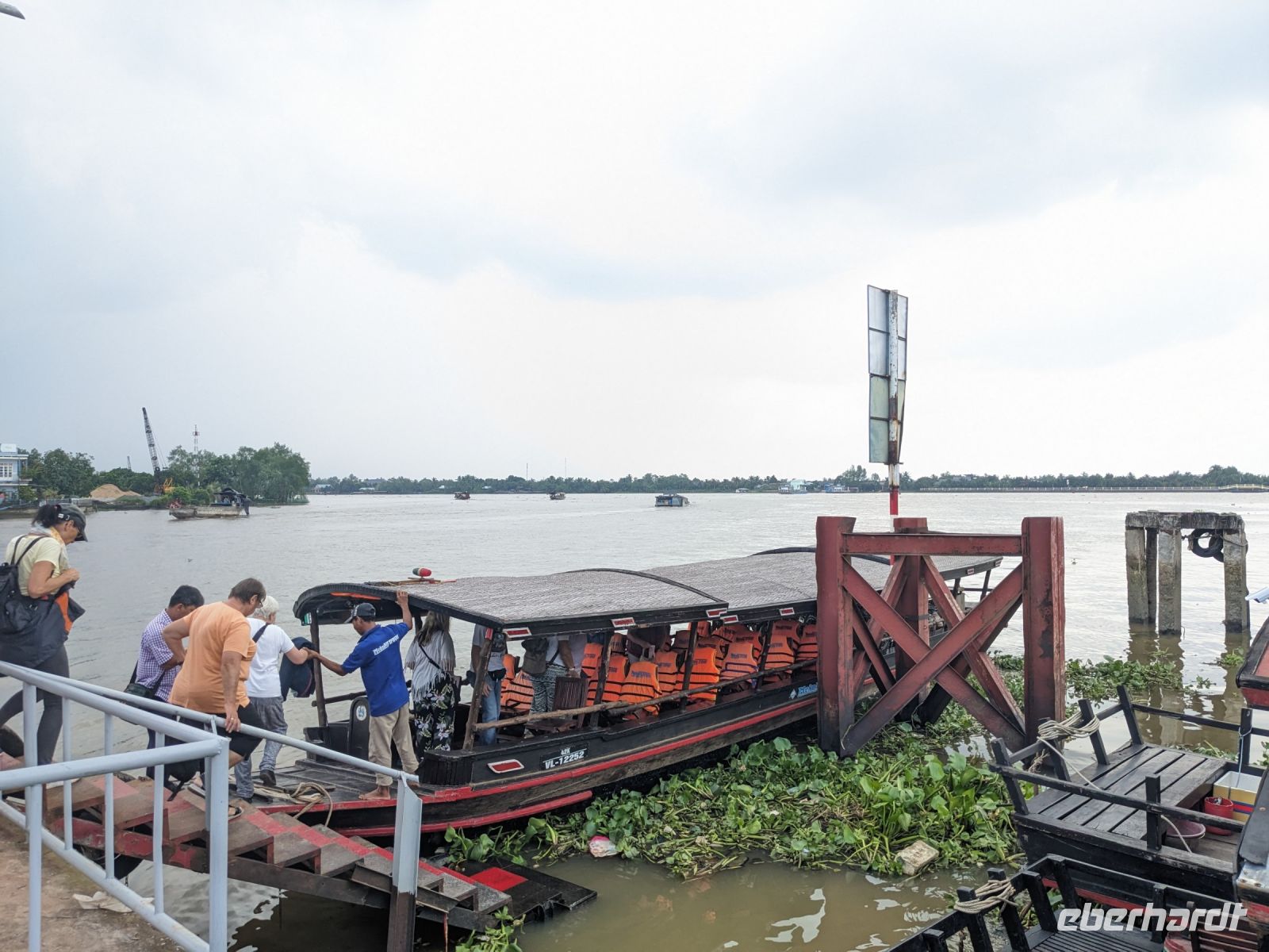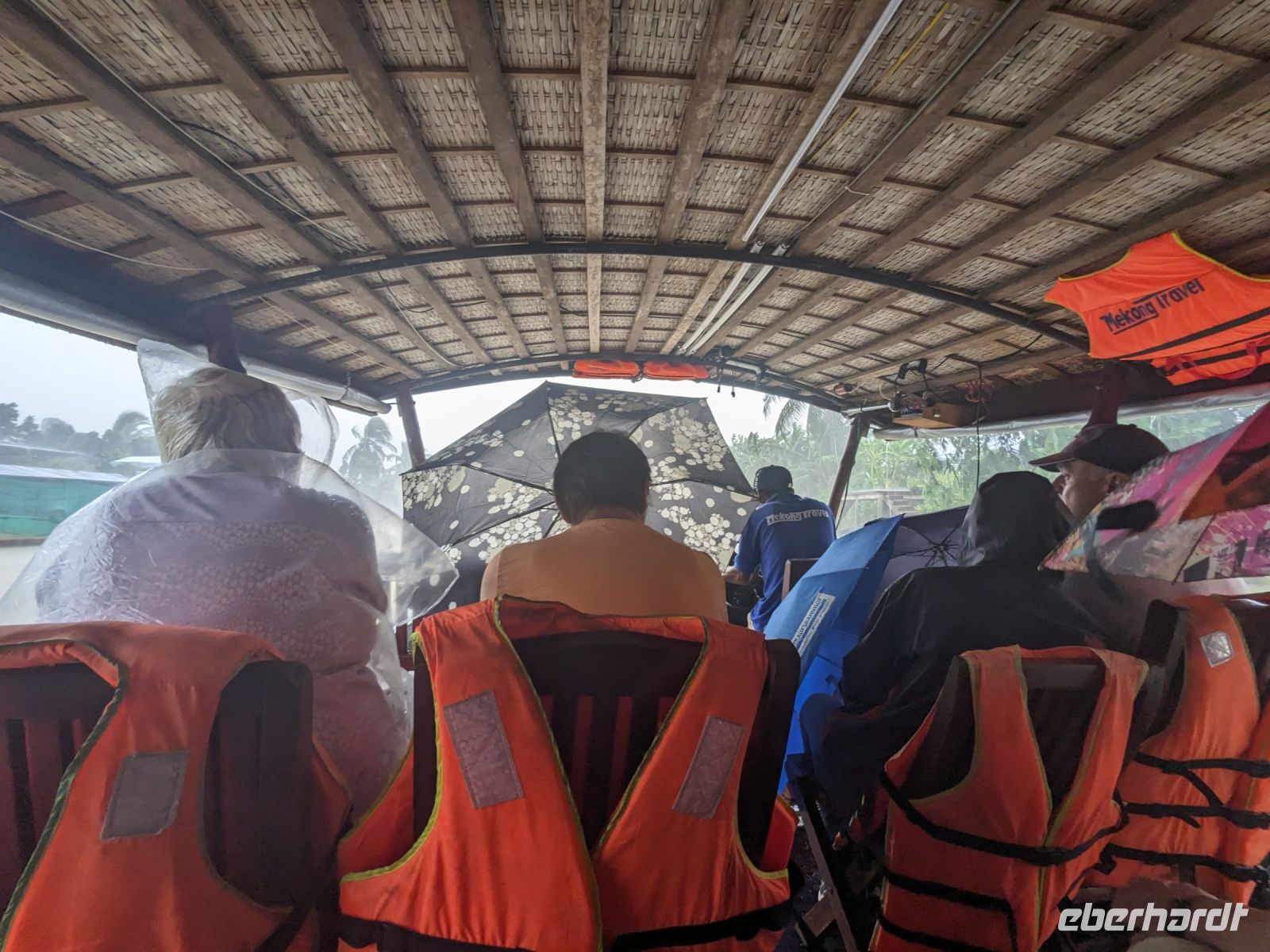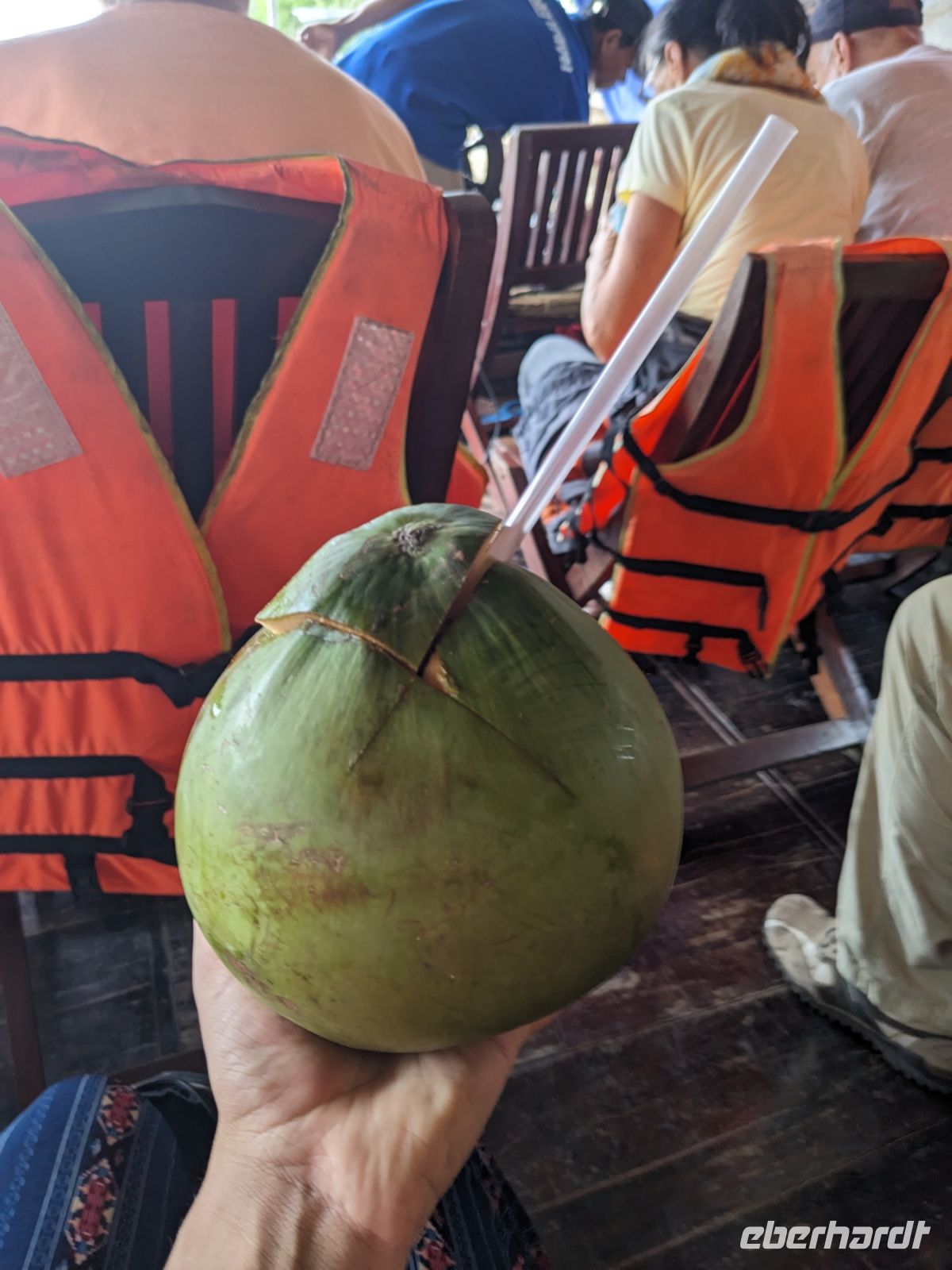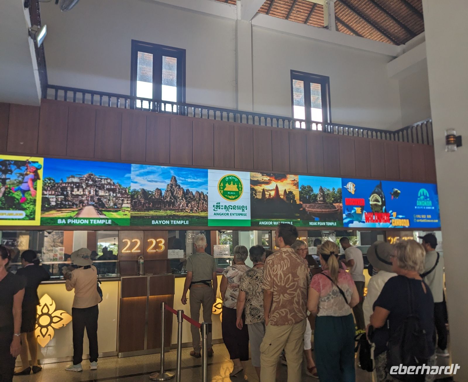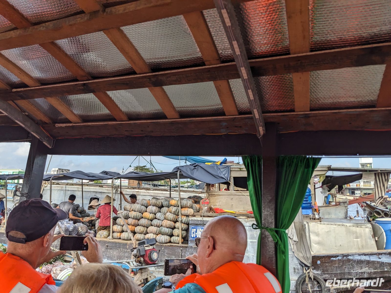 Nach einem letzten ausgiebigen Frühstück, genug Zeit zum Koffer packen und zur Nutzung der Annehmlichkeiten des Hotels fuhren wir dann los in Richtung des größten Binnensees Südostasiens, dem Tonle Sap - ein schöner Reiseabschluss mit zahlreichen Eindrücken. Denn bevor wir den eigentlichen See erreichten, durchfuhren wir zunächst ein Gebiet mit Stelzenhäusern, kleinen Inseln, auf denen beispielsweise Tempel gebaut waren und schließlich eröffnete sich uns der Blick in eine uneingeschränkte Weite. So weit wir auch blickten, es war kein Ende des Sees am Horizont zu sehen. Wieder zurück an der Anlegestelle war es mit dem Bus von dort nur ein kurzes Stück zum Flughafen von Siem Reap. Auf der Fahrt gab es von mir noch im Namen von Eberhardt TRAVEL einen kleinen Glücksbringer für zukünftige Reisen. Der Flughafen ist noch nicht mal zwei Monate alt gewesen zum, Zeitpunkt unseres Rückflugs und sehr eindrucksvoll gebaut. Alles hat ohne große Vorkommnisse funktioniert. Unser erstes Ziel war Ho Chi Minh Stadt und von dort ging es dann zurück in Richtung Frankfurt.