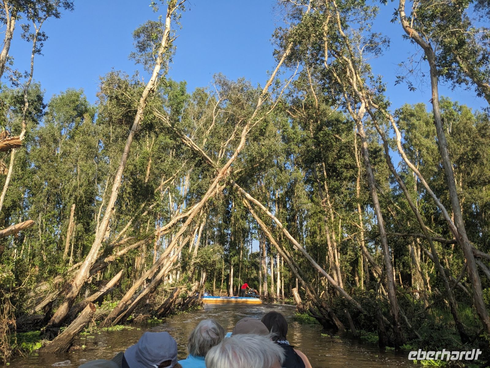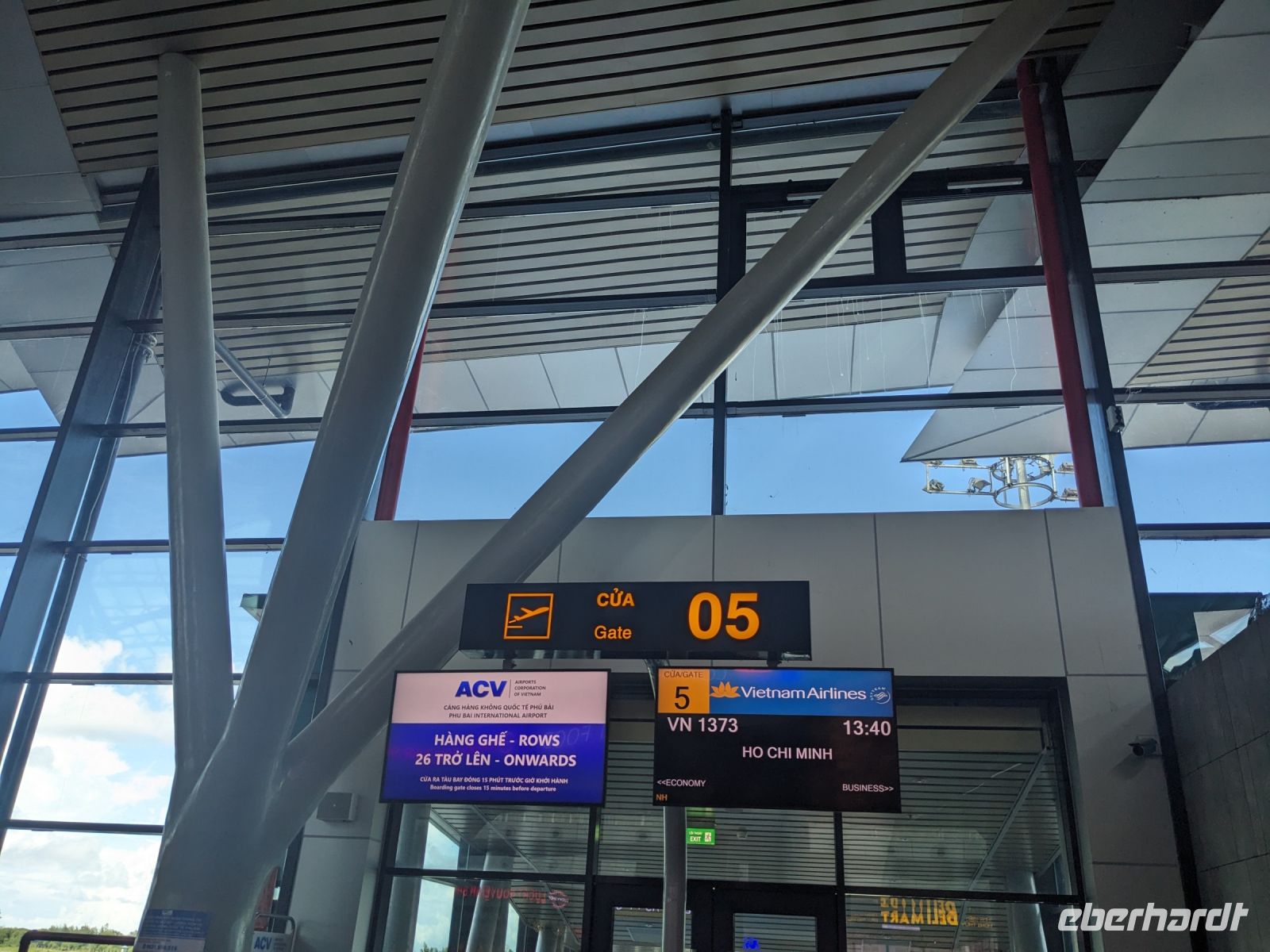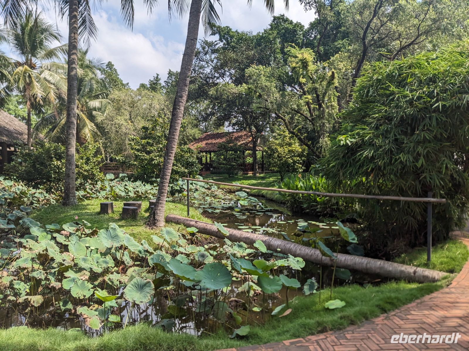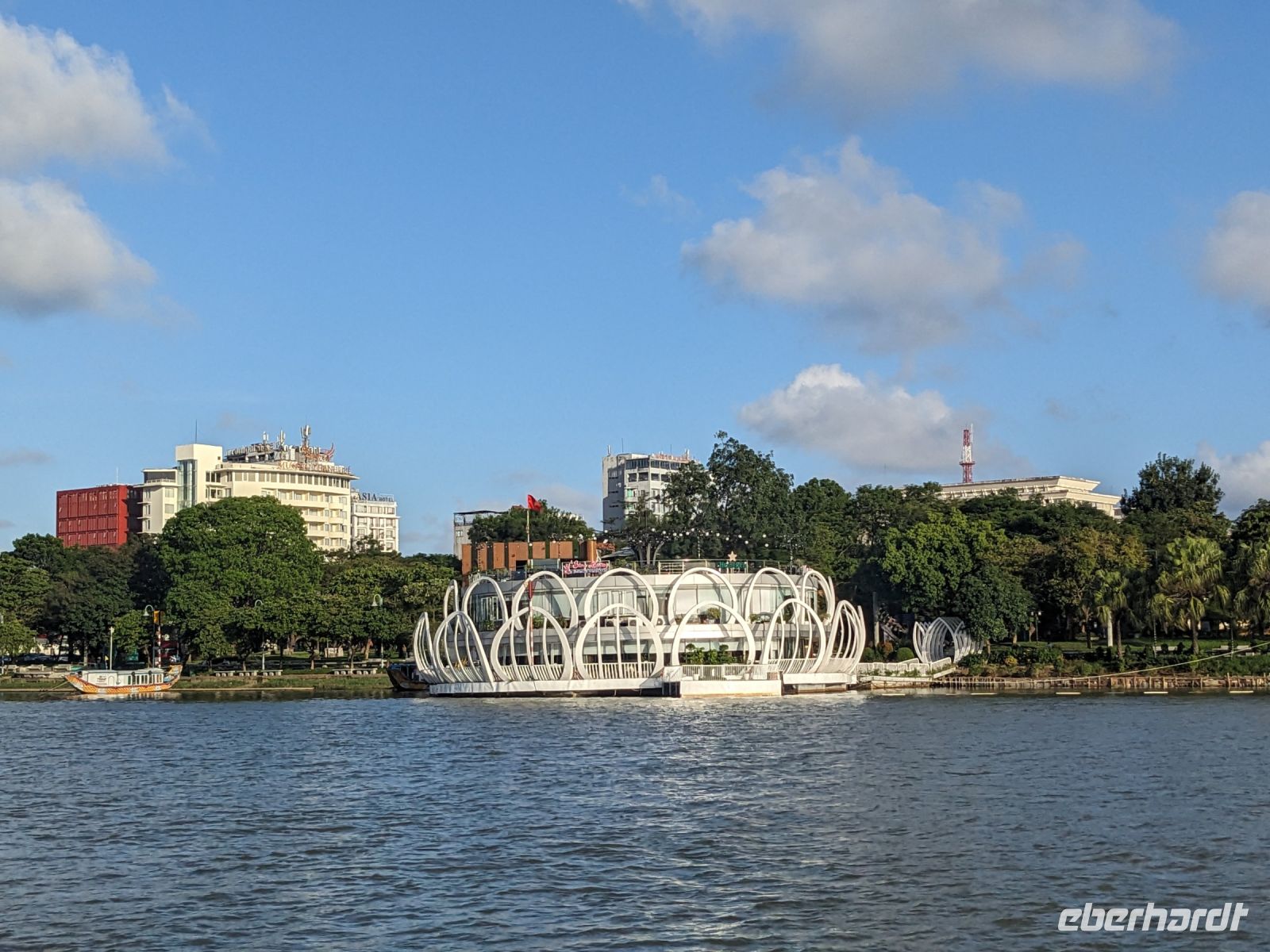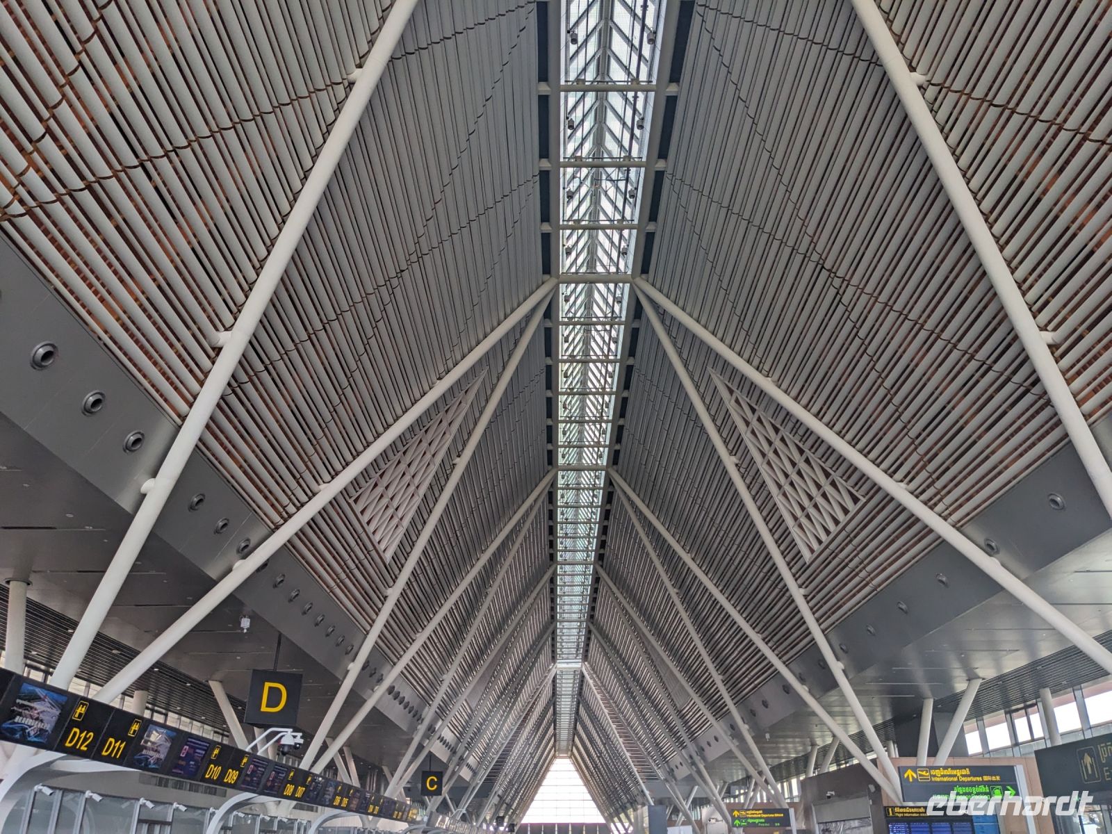 Nach einem letzten ausgiebigen Frühstück, genug Zeit zum Koffer packen und zur Nutzung der Annehmlichkeiten des Hotels fuhren wir dann los in Richtung des größten Binnensees Südostasiens, dem Tonle Sap - ein schöner Reiseabschluss mit zahlreichen Eindrücken. Denn bevor wir den eigentlichen See erreichten, durchfuhren wir zunächst ein Gebiet mit Stelzenhäusern, kleinen Inseln, auf denen beispielsweise Tempel gebaut waren und schließlich eröffnete sich uns der Blick in eine uneingeschränkte Weite. So weit wir auch blickten, es war kein Ende des Sees am Horizont zu sehen. Wieder zurück an der Anlegestelle war es mit dem Bus von dort nur ein kurzes Stück zum Flughafen von Siem Reap. Auf der Fahrt gab es von mir noch im Namen von Eberhardt TRAVEL einen kleinen Glücksbringer für zukünftige Reisen. Der Flughafen ist noch nicht mal zwei Monate alt gewesen zum, Zeitpunkt unseres Rückflugs und sehr eindrucksvoll gebaut. Alles hat ohne große Vorkommnisse funktioniert. Unser erstes Ziel war Ho Chi Minh Stadt und von dort ging es dann zurück in Richtung Frankfurt.