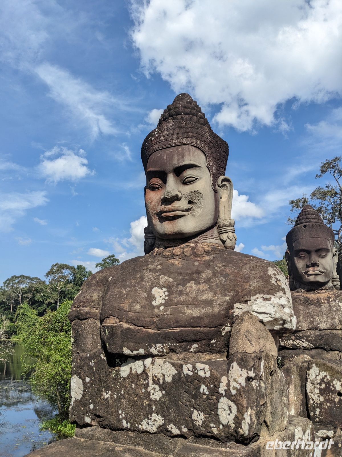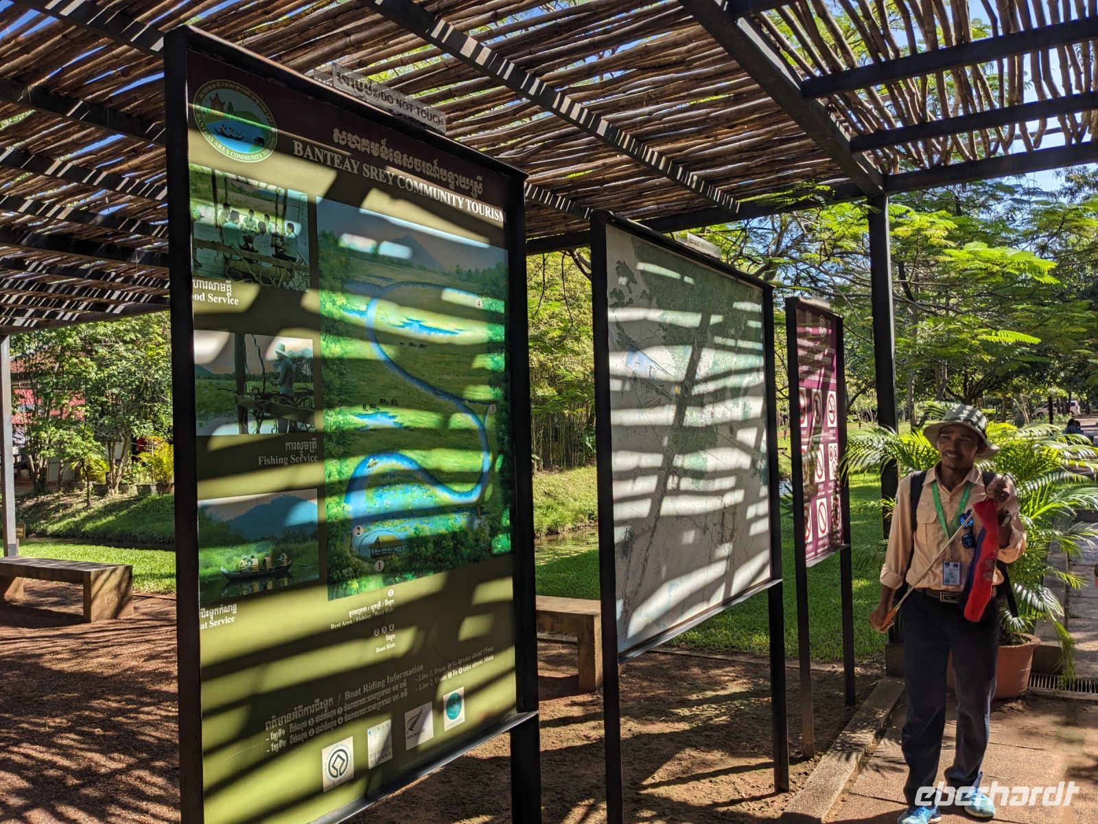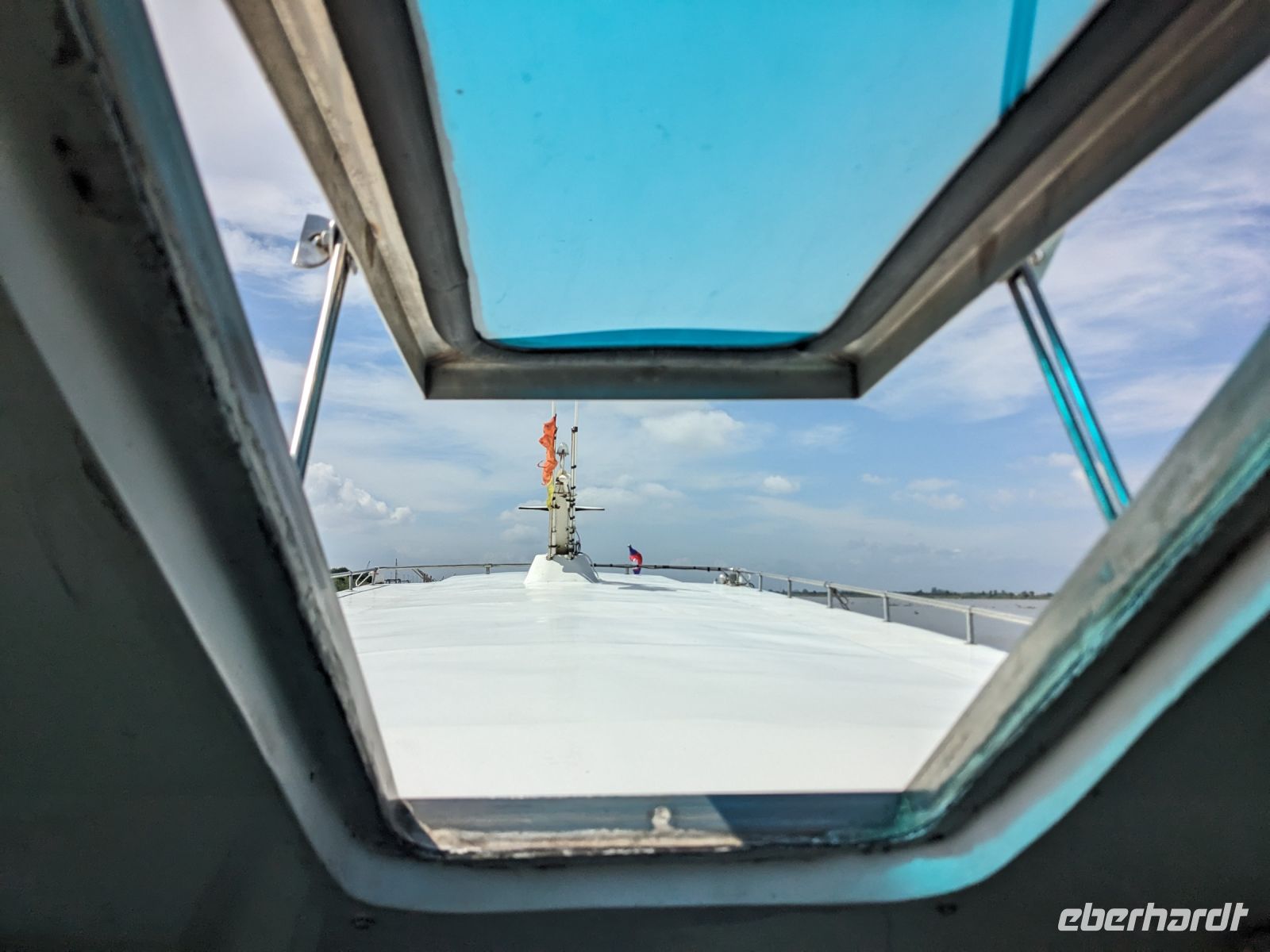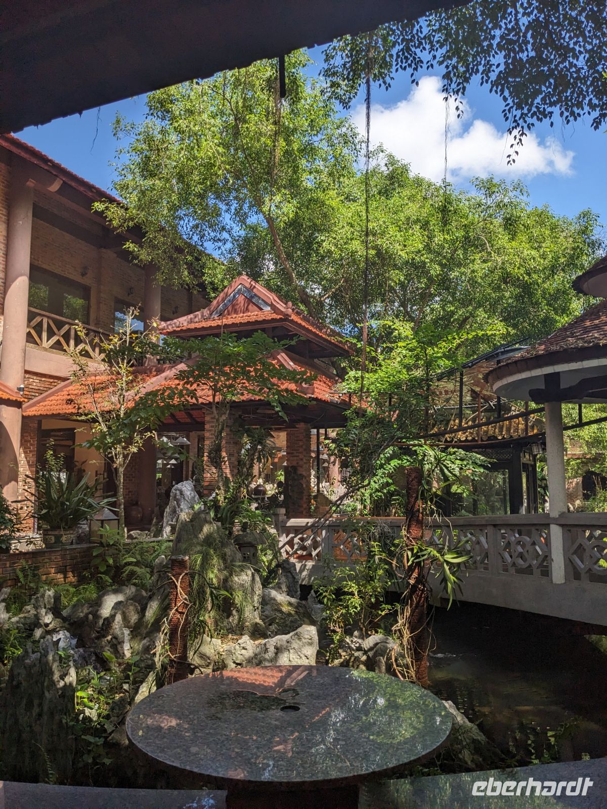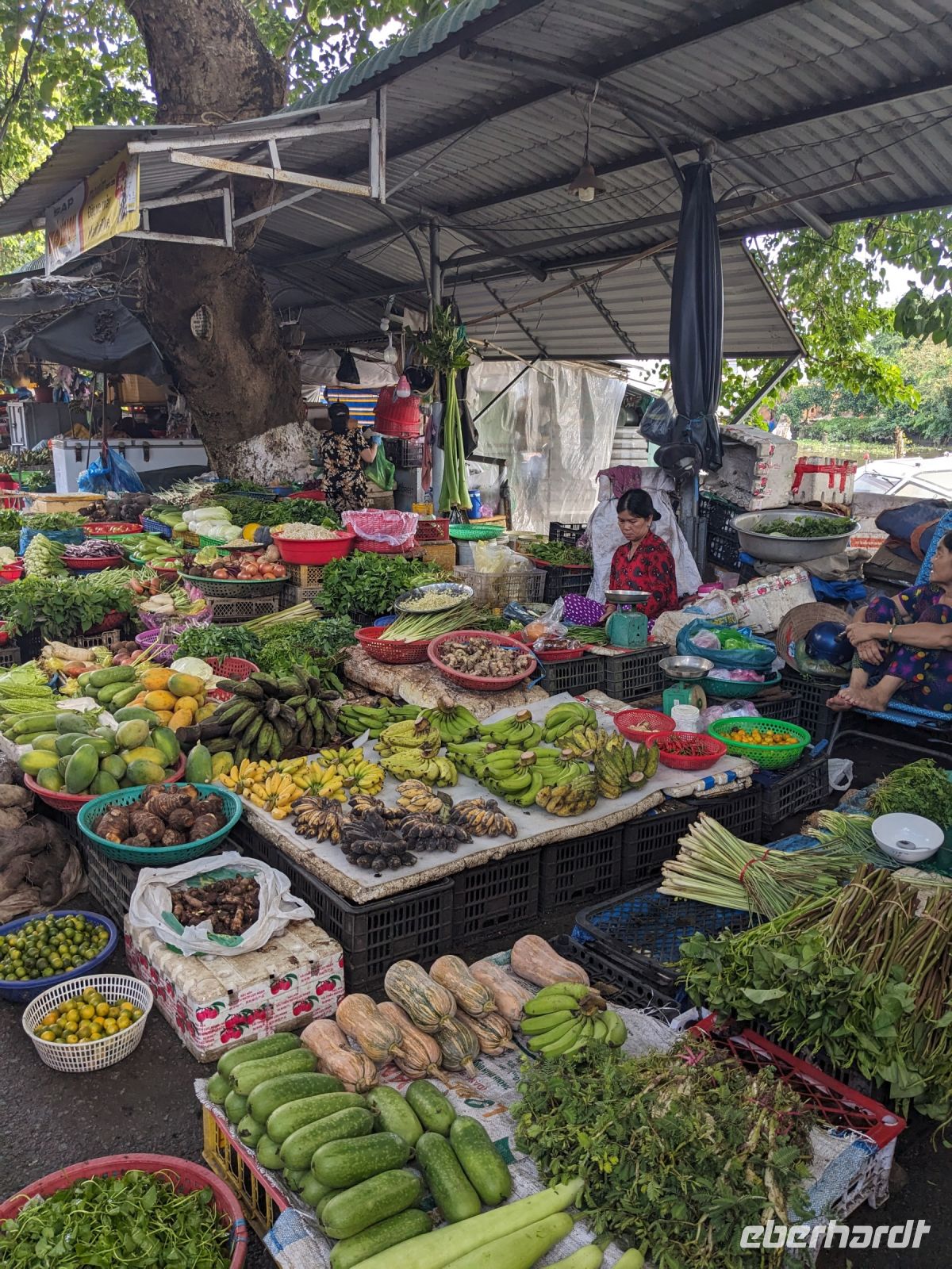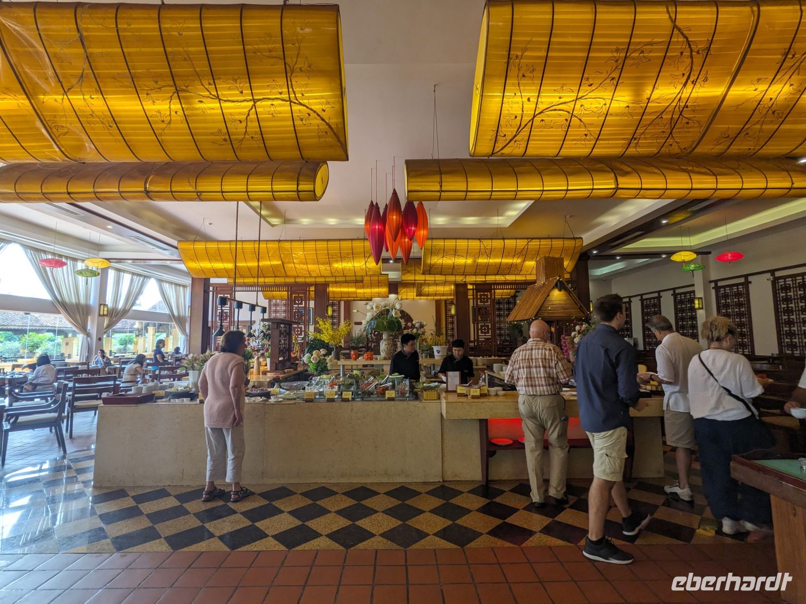 Nach einem letzten ausgiebigen Frühstück, genug Zeit zum Koffer packen und zur Nutzung der Annehmlichkeiten des Hotels fuhren wir dann los in Richtung des größten Binnensees Südostasiens, dem Tonle Sap - ein schöner Reiseabschluss mit zahlreichen Eindrücken. Denn bevor wir den eigentlichen See erreichten, durchfuhren wir zunächst ein Gebiet mit Stelzenhäusern, kleinen Inseln, auf denen beispielsweise Tempel gebaut waren und schließlich eröffnete sich uns der Blick in eine uneingeschränkte Weite. So weit wir auch blickten, es war kein Ende des Sees am Horizont zu sehen. Wieder zurück an der Anlegestelle war es mit dem Bus von dort nur ein kurzes Stück zum Flughafen von Siem Reap. Auf der Fahrt gab es von mir noch im Namen von Eberhardt TRAVEL einen kleinen Glücksbringer für zukünftige Reisen. Der Flughafen ist noch nicht mal zwei Monate alt gewesen zum, Zeitpunkt unseres Rückflugs und sehr eindrucksvoll gebaut. Alles hat ohne große Vorkommnisse funktioniert. Unser erstes Ziel war Ho Chi Minh Stadt und von dort ging es dann zurück in Richtung Frankfurt.