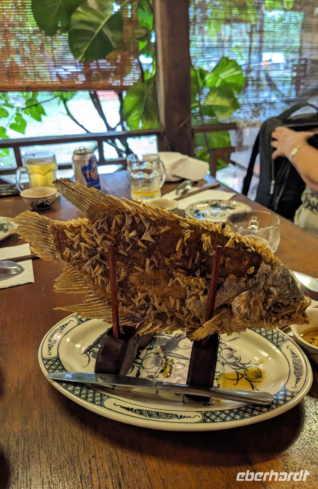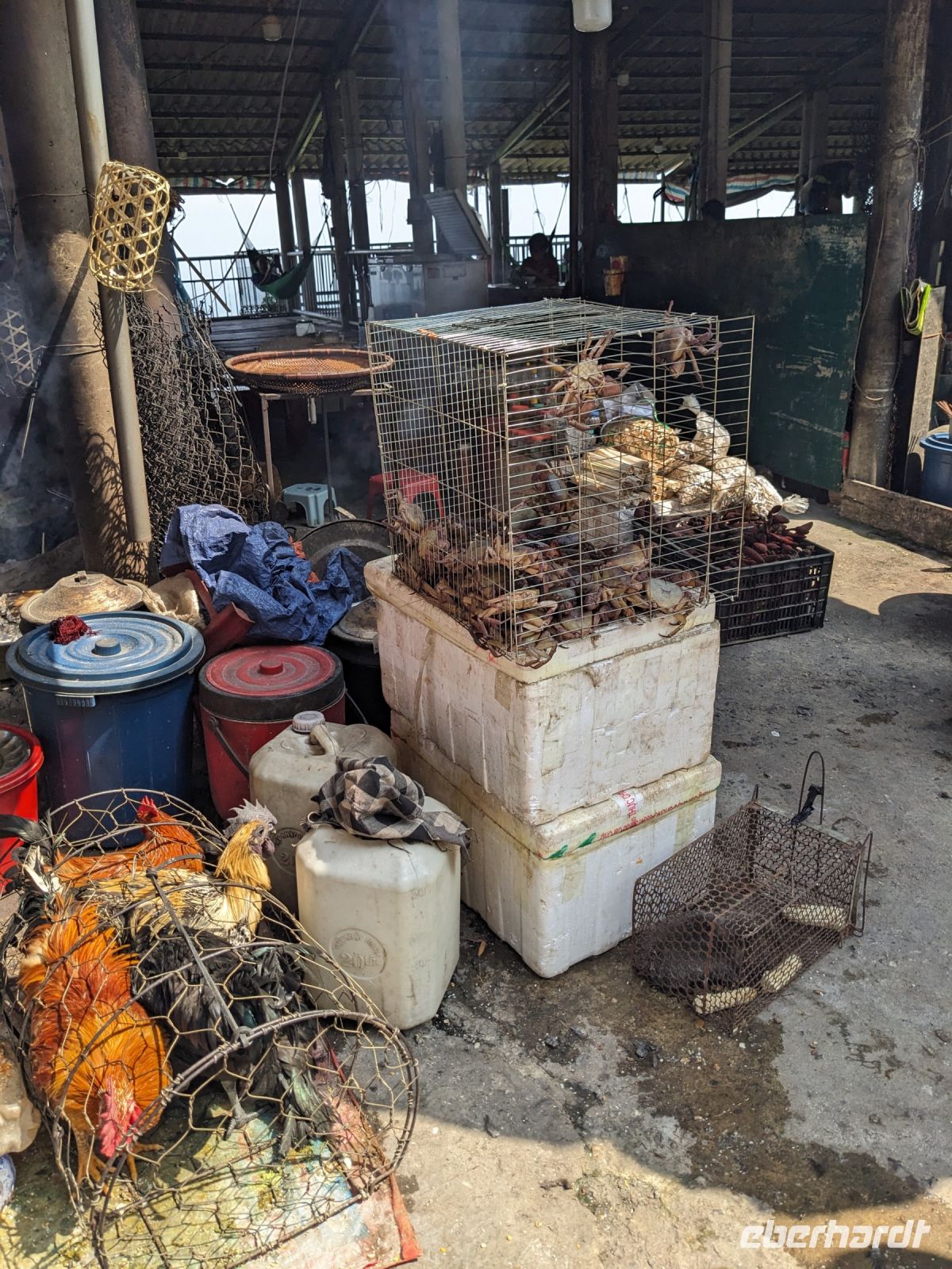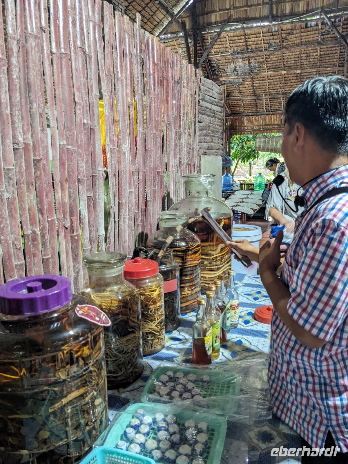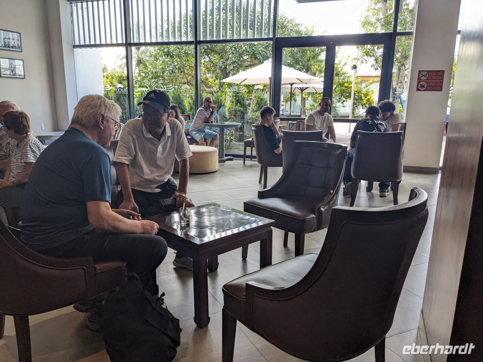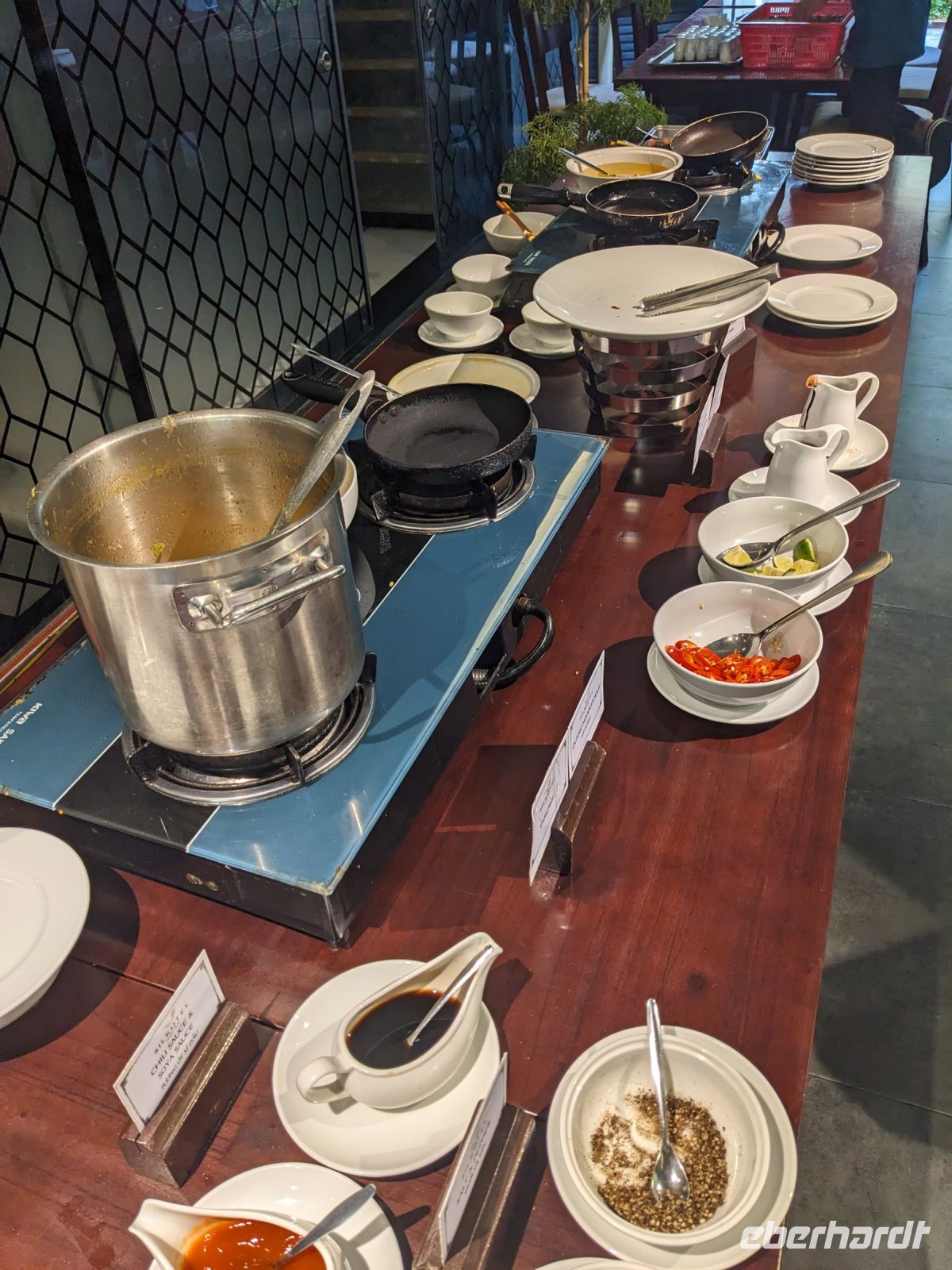 Nach einem letzten ausgiebigen Frühstück, genug Zeit zum Koffer packen und zur Nutzung der Annehmlichkeiten des Hotels fuhren wir dann los in Richtung des größten Binnensees Südostasiens, dem Tonle Sap - ein schöner Reiseabschluss mit zahlreichen Eindrücken. Denn bevor wir den eigentlichen See erreichten, durchfuhren wir zunächst ein Gebiet mit Stelzenhäusern, kleinen Inseln, auf denen beispielsweise Tempel gebaut waren und schließlich eröffnete sich uns der Blick in eine uneingeschränkte Weite. So weit wir auch blickten, es war kein Ende des Sees am Horizont zu sehen. Wieder zurück an der Anlegestelle war es mit dem Bus von dort nur ein kurzes Stück zum Flughafen von Siem Reap. Auf der Fahrt gab es von mir noch im Namen von Eberhardt TRAVEL einen kleinen Glücksbringer für zukünftige Reisen. Der Flughafen ist noch nicht mal zwei Monate alt gewesen zum, Zeitpunkt unseres Rückflugs und sehr eindrucksvoll gebaut. Alles hat ohne große Vorkommnisse funktioniert. Unser erstes Ziel war Ho Chi Minh Stadt und von dort ging es dann zurück in Richtung Frankfurt.