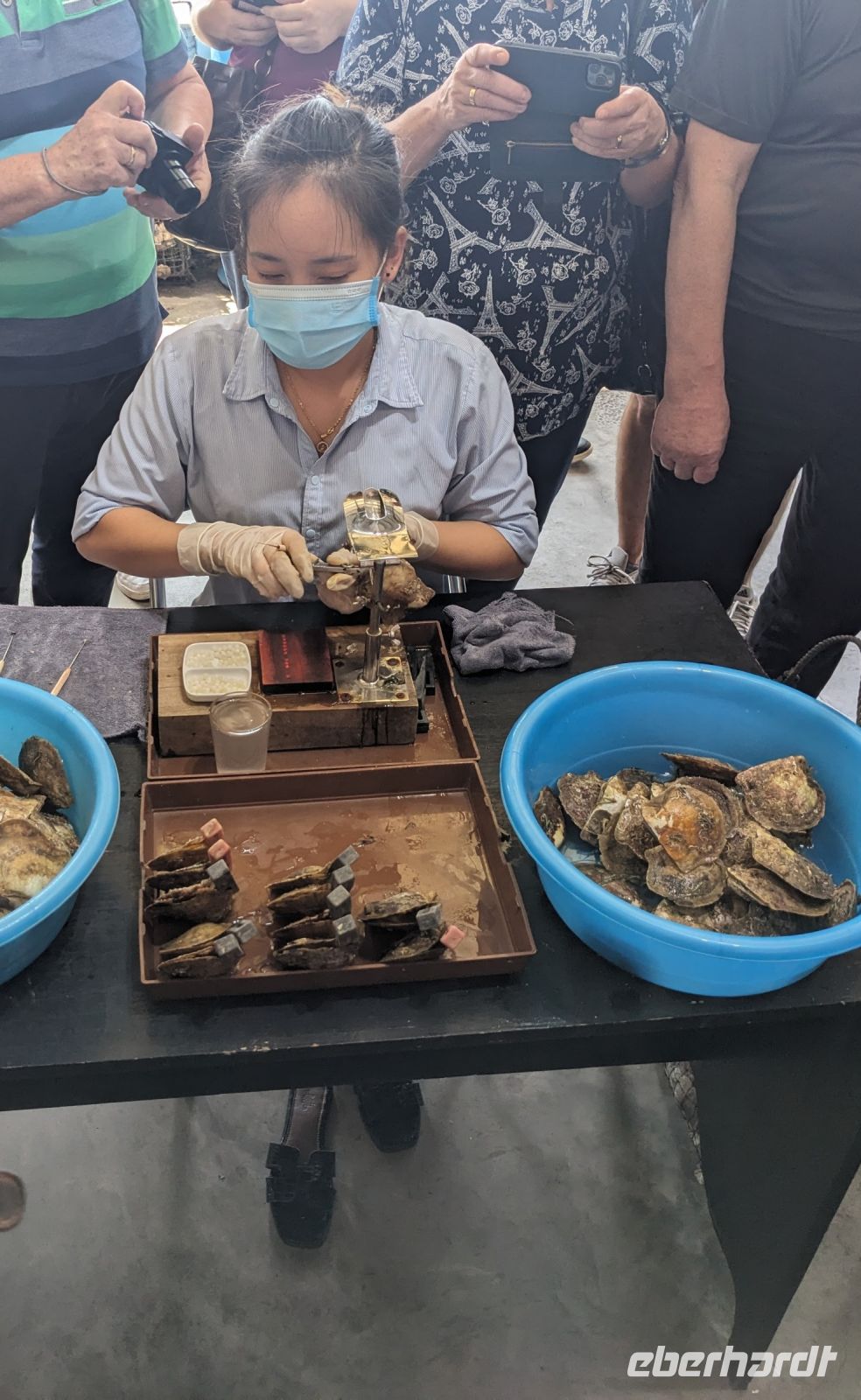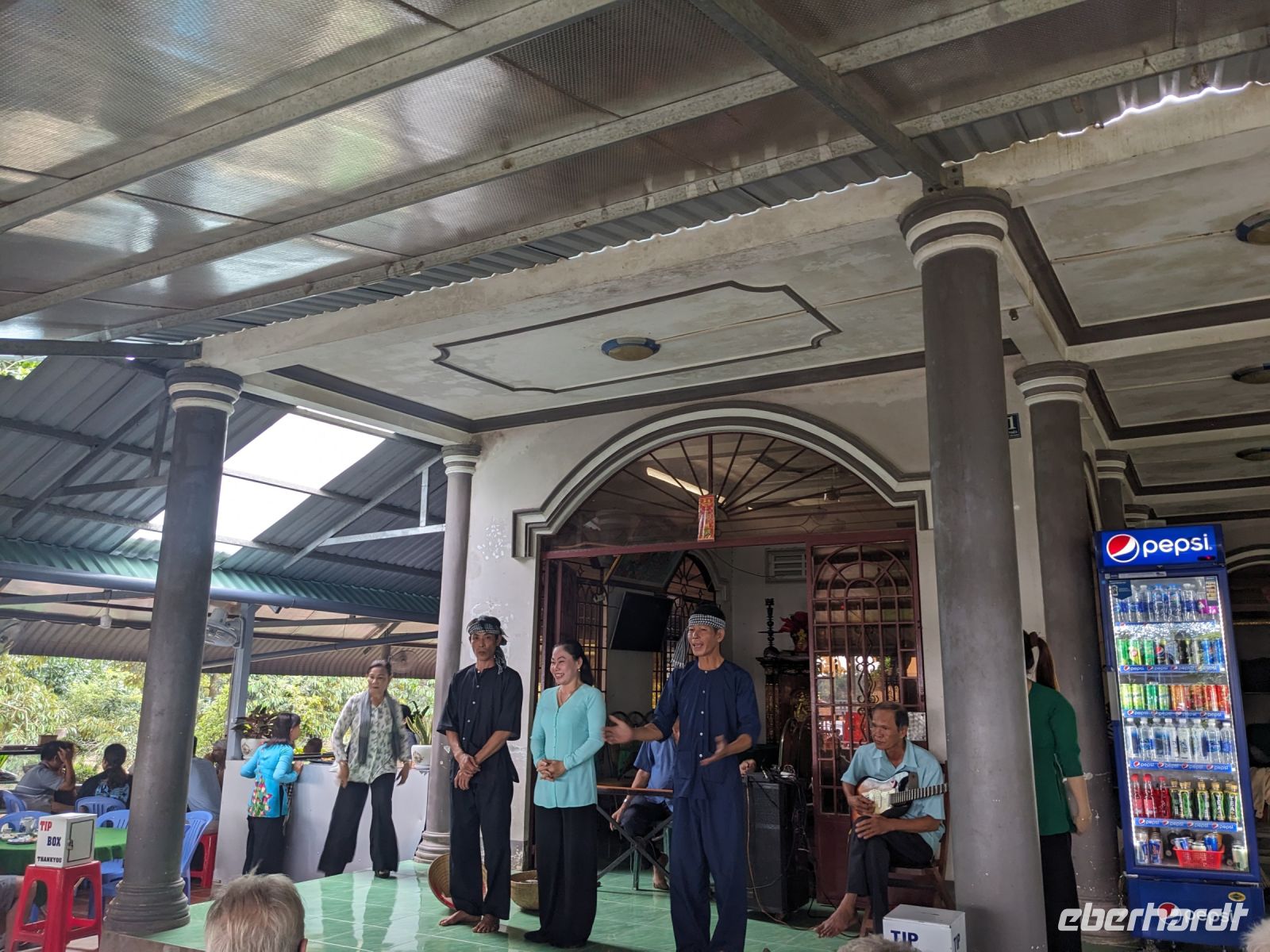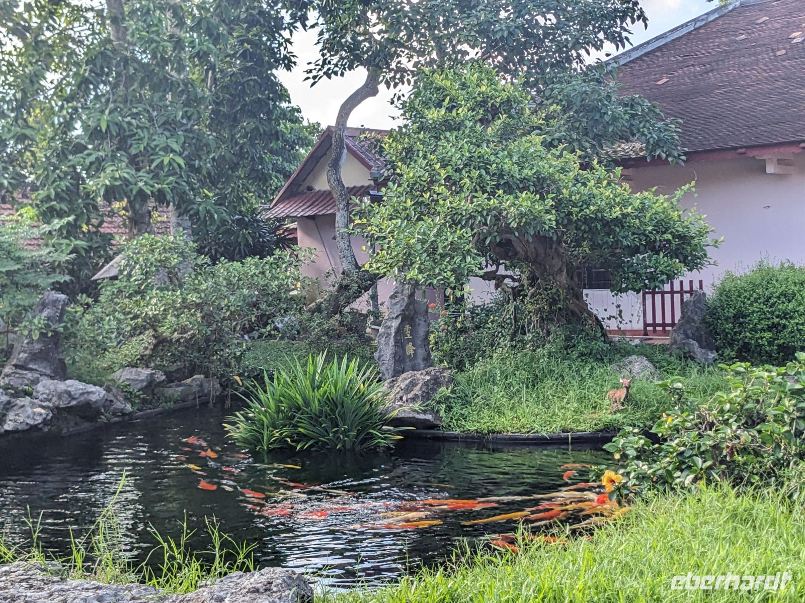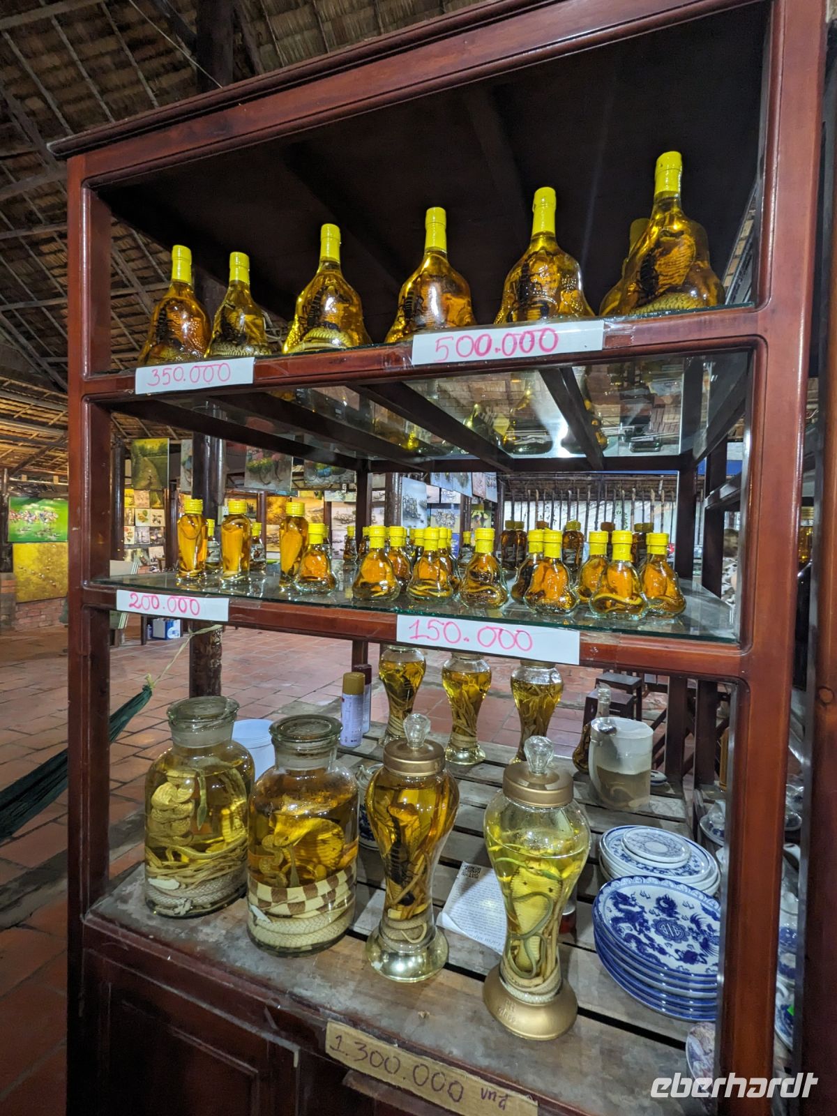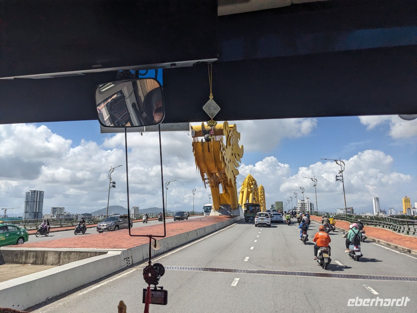 Nach einem letzten ausgiebigen Frühstück, genug Zeit zum Koffer packen und zur Nutzung der Annehmlichkeiten des Hotels fuhren wir dann los in Richtung des größten Binnensees Südostasiens, dem Tonle Sap - ein schöner Reiseabschluss mit zahlreichen Eindrücken. Denn bevor wir den eigentlichen See erreichten, durchfuhren wir zunächst ein Gebiet mit Stelzenhäusern, kleinen Inseln, auf denen beispielsweise Tempel gebaut waren und schließlich eröffnete sich uns der Blick in eine uneingeschränkte Weite. So weit wir auch blickten, es war kein Ende des Sees am Horizont zu sehen. Wieder zurück an der Anlegestelle war es mit dem Bus von dort nur ein kurzes Stück zum Flughafen von Siem Reap. Auf der Fahrt gab es von mir noch im Namen von Eberhardt TRAVEL einen kleinen Glücksbringer für zukünftige Reisen. Der Flughafen ist noch nicht mal zwei Monate alt gewesen zum, Zeitpunkt unseres Rückflugs und sehr eindrucksvoll gebaut. Alles hat ohne große Vorkommnisse funktioniert. Unser erstes Ziel war Ho Chi Minh Stadt und von dort ging es dann zurück in Richtung Frankfurt.