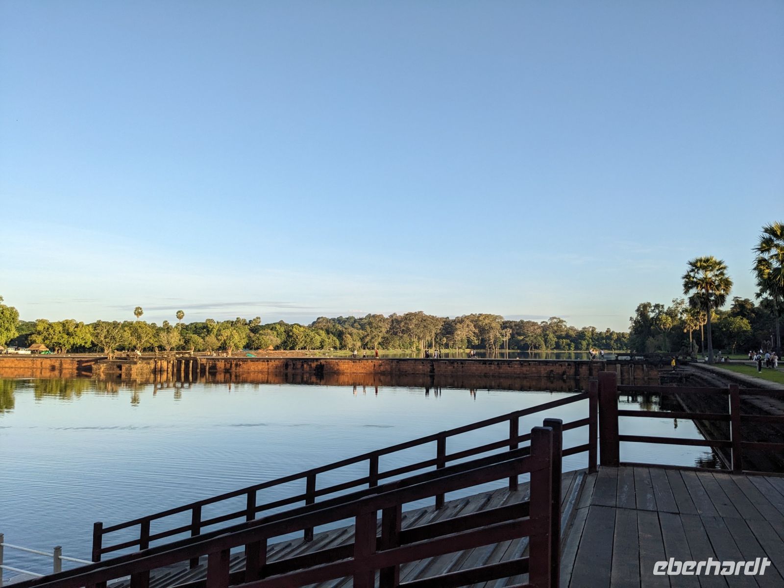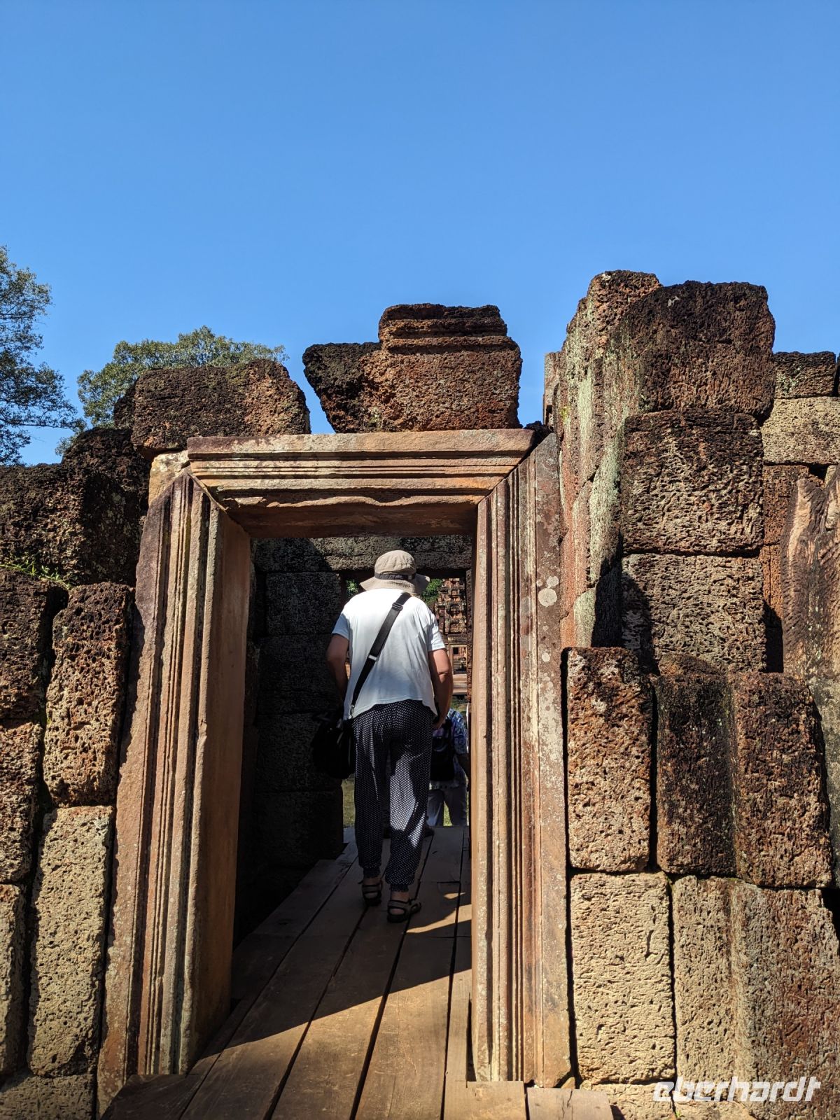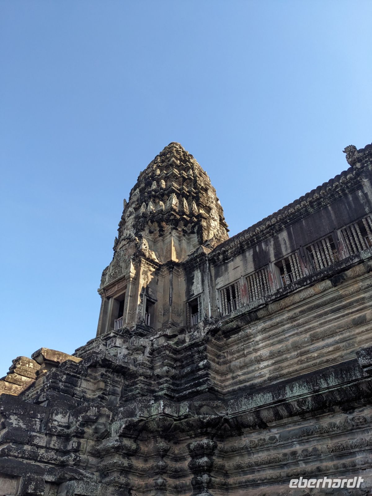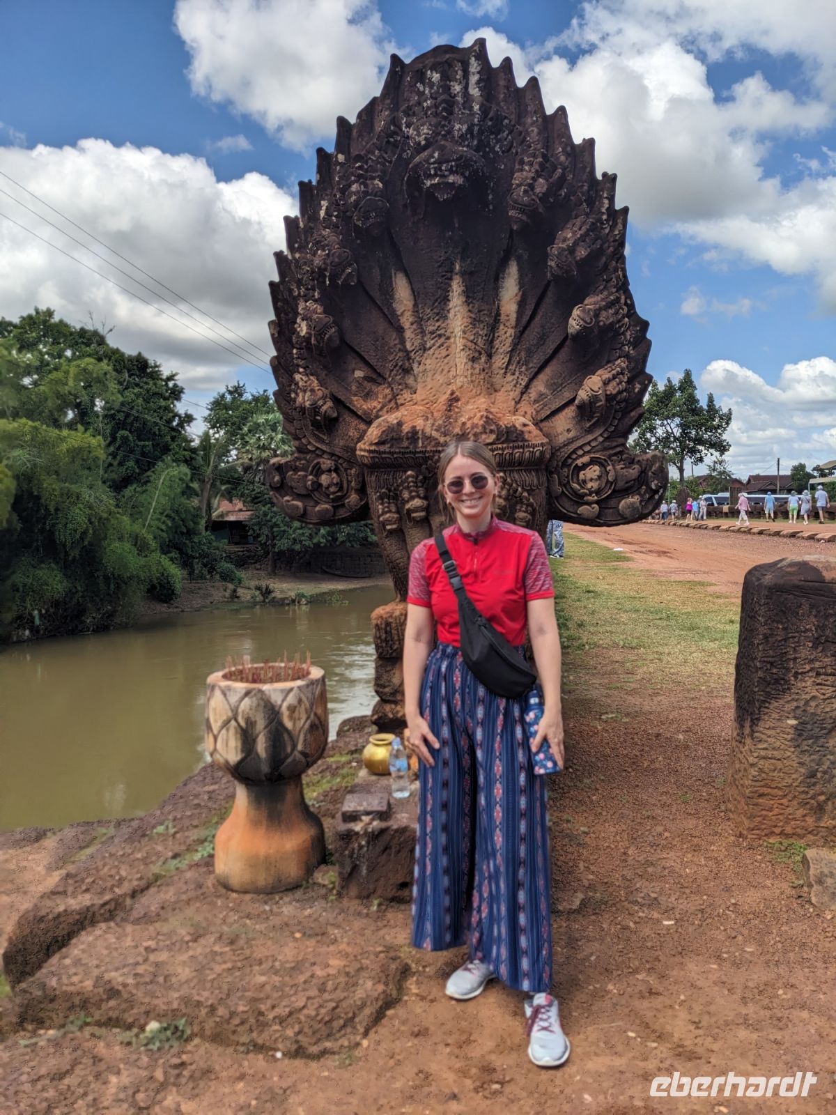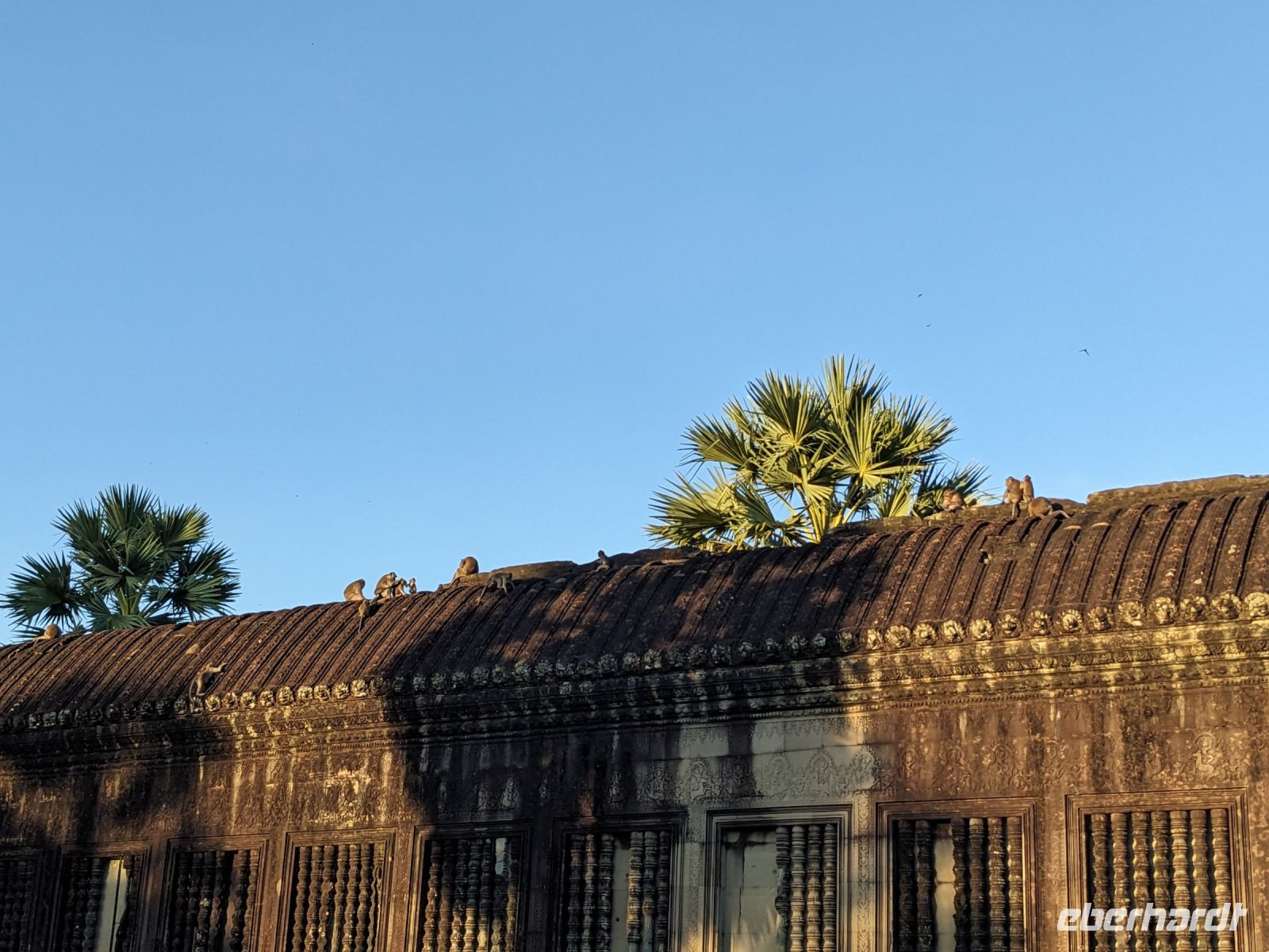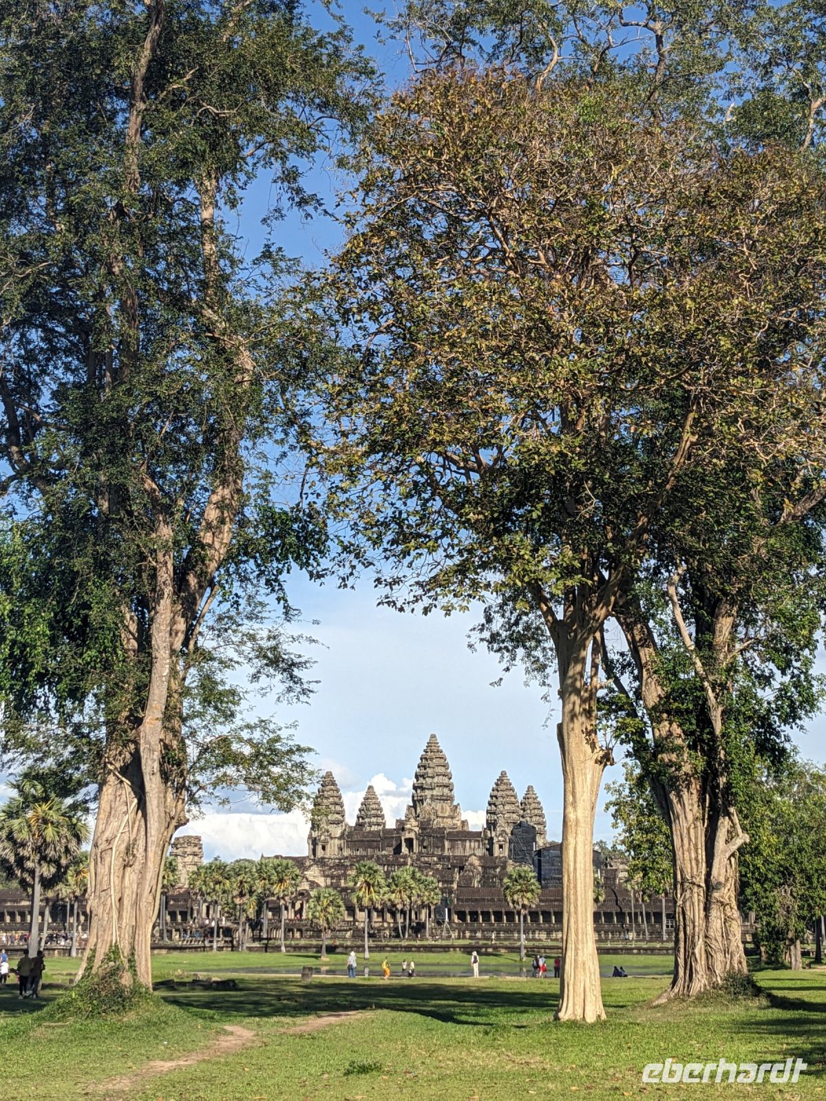 Der letzte volle Reisetag war angebrochen und was wäre ein besserer Abschluss als Angkor Wat selbst. Ein Großteil der Gruppe traf sich bereits zur Bestaunung des Sonnenaufgangs auf der Anlage. Langsam, Stück für Stück, schlich die Sonne immer weiter nach oben und tauchte schließlich über den Wäldern neben dem Haupttempel auf. Es gibt zwei Tage im Jahr (einmal im März und einmal im September), wo die Sonne direkt mittig über dem Tempel aufgeht. Anschließend ging es zurück ins Hotel zum Frühstücken, wo wir auf den Rest der Gruppe trafen. Gemeinsam zogen wir los zum Banteay Schrein, ein sehr kleiner Tempel mit vielen detailreichen Verzierungen. Auf dem Rückweg stoppten wir bei einem Palmzuckerverarbeiter. Hier konnten wir auch probieren und bei der Herstellung zuschauen. Fast jeder fand ein schönes Mitbringsel für Zuhause. Im Namen von Eberhardt TRAVEL gab es dann eine typisch kambodschanische Nudelsuppe zum Mittag und gut gestärkt, erkundeten wir schließlich Angkor Wat. Anders als am Morgen gingen wir in die Tempelanlage hinein und Lim machte mit uns eine ausführliche Tour. Im Haupttempel stieß der Großteil der Gruppe bis auf die dritte Etage hoch - doch die steilen Stufen waren es wert - von oben hatten wir einen tollen Ausblick auf die Umgebung. Am Abend erwartete uns dann unser letzten gemeinsames Abendessen in einem wirklich sehr schön gestalteten Restaurant, was wir ganz für uns allein hatten.