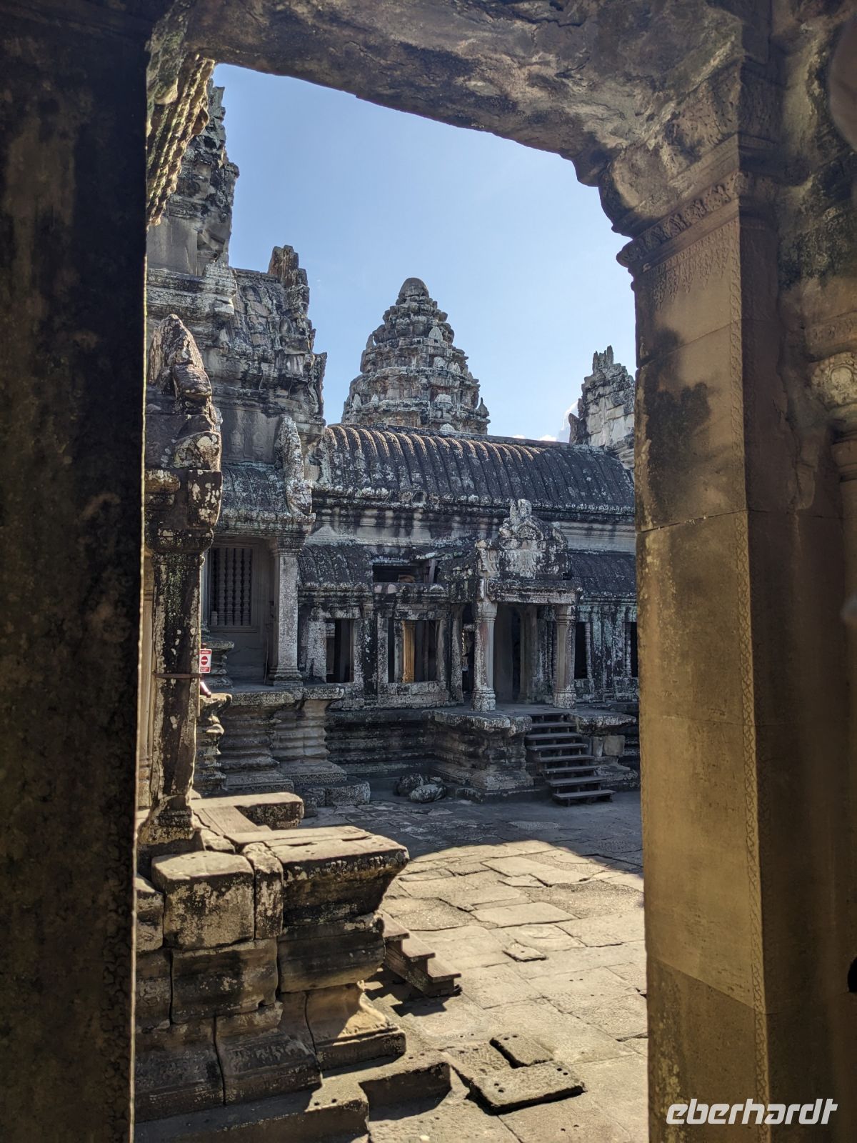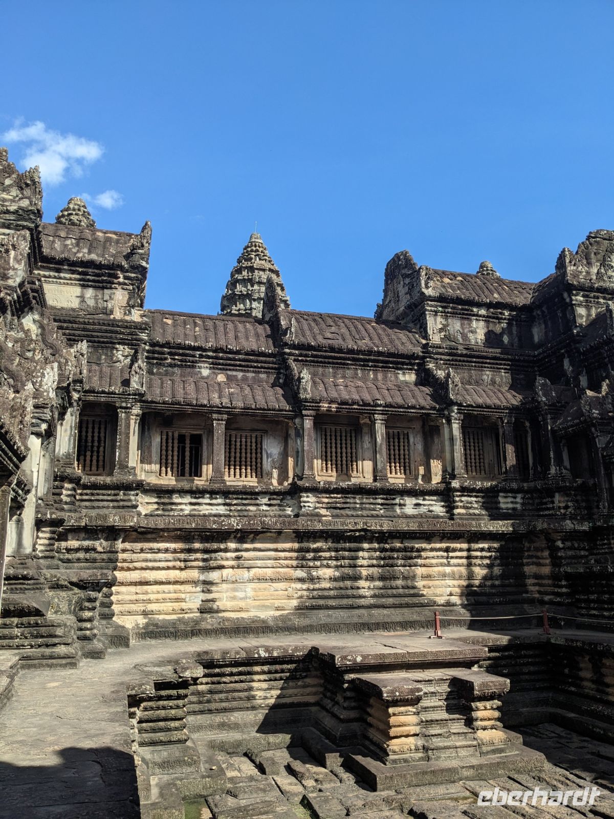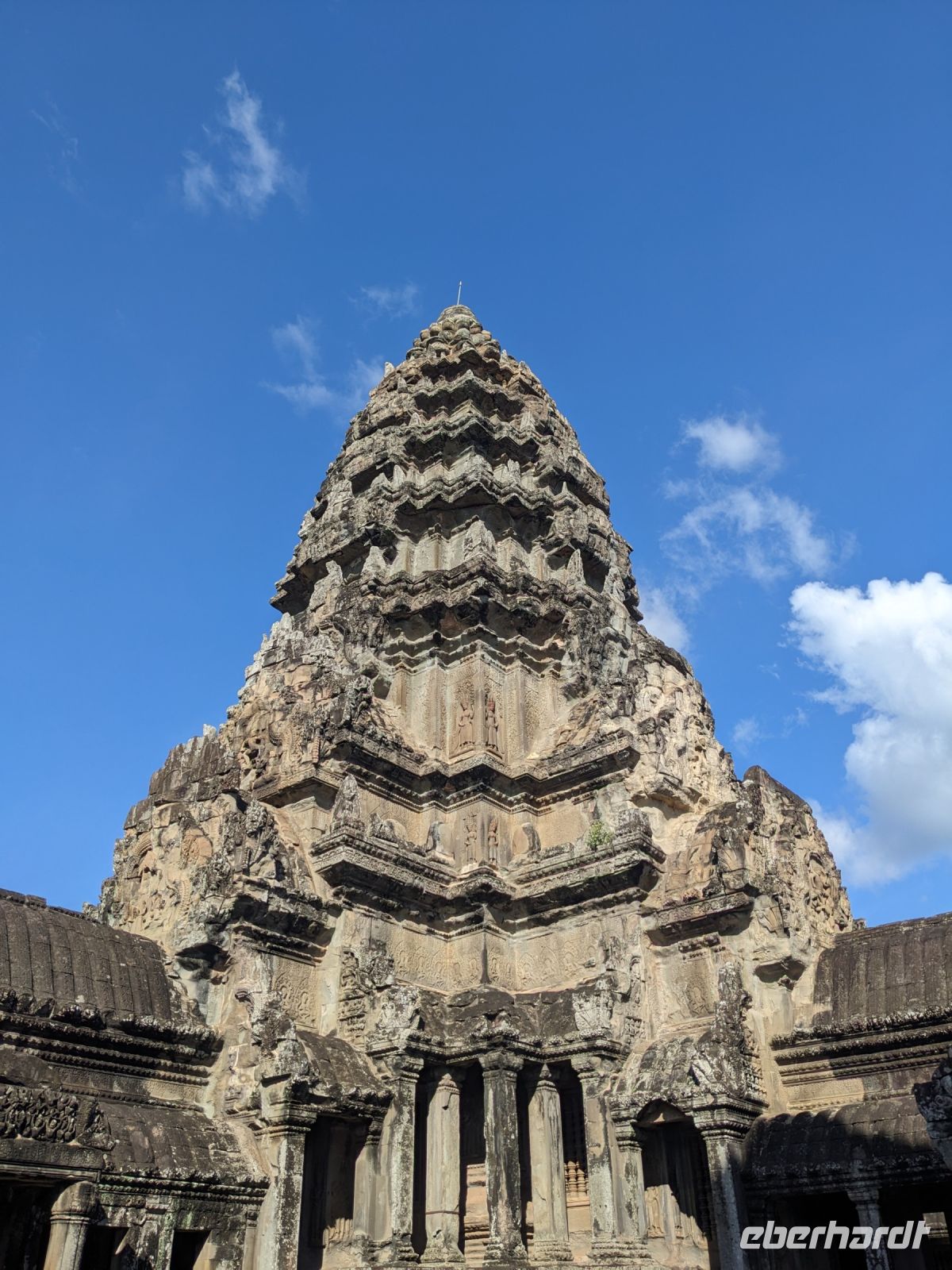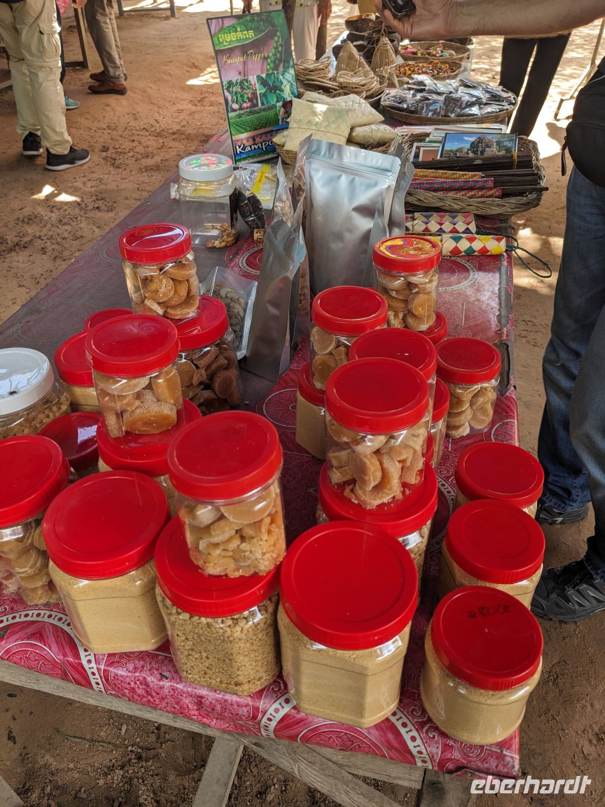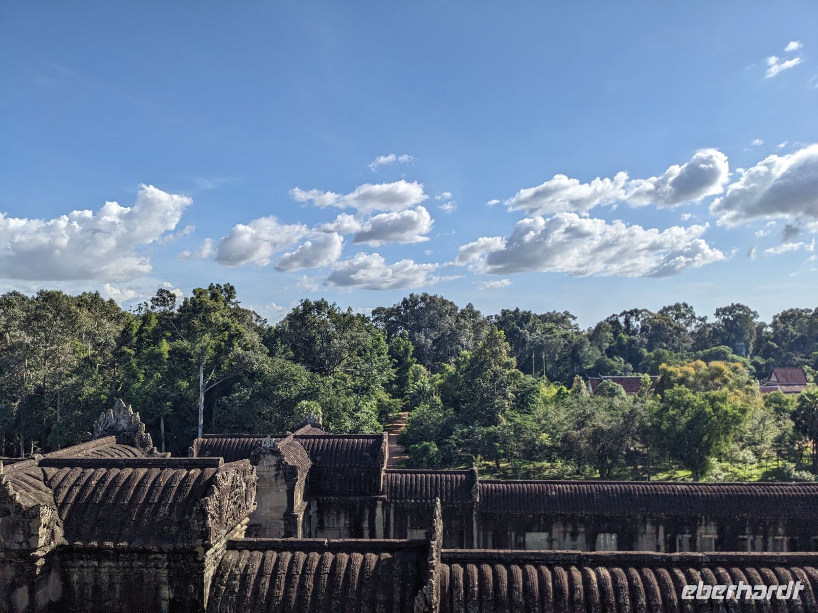 Der letzte volle Reisetag war angebrochen und was wäre ein besserer Abschluss als Angkor Wat selbst. Ein Großteil der Gruppe traf sich bereits zur Bestaunung des Sonnenaufgangs auf der Anlage. Langsam, Stück für Stück, schlich die Sonne immer weiter nach oben und tauchte schließlich über den Wäldern neben dem Haupttempel auf. Es gibt zwei Tage im Jahr (einmal im März und einmal im September), wo die Sonne direkt mittig über dem Tempel aufgeht. Anschließend ging es zurück ins Hotel zum Frühstücken, wo wir auf den Rest der Gruppe trafen. Gemeinsam zogen wir los zum Banteay Schrein, ein sehr kleiner Tempel mit vielen detailreichen Verzierungen. Auf dem Rückweg stoppten wir bei einem Palmzuckerverarbeiter. Hier konnten wir auch probieren und bei der Herstellung zuschauen. Fast jeder fand ein schönes Mitbringsel für Zuhause. Im Namen von Eberhardt TRAVEL gab es dann eine typisch kambodschanische Nudelsuppe zum Mittag und gut gestärkt, erkundeten wir schließlich Angkor Wat. Anders als am Morgen gingen wir in die Tempelanlage hinein und Lim machte mit uns eine ausführliche Tour. Im Haupttempel stieß der Großteil der Gruppe bis auf die dritte Etage hoch - doch die steilen Stufen waren es wert - von oben hatten wir einen tollen Ausblick auf die Umgebung. Am Abend erwartete uns dann unser letzten gemeinsames Abendessen in einem wirklich sehr schön gestalteten Restaurant, was wir ganz für uns allein hatten.