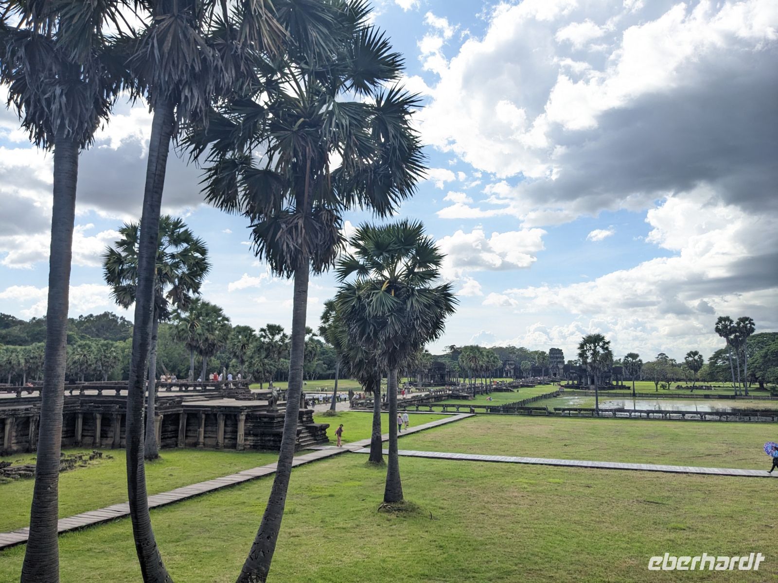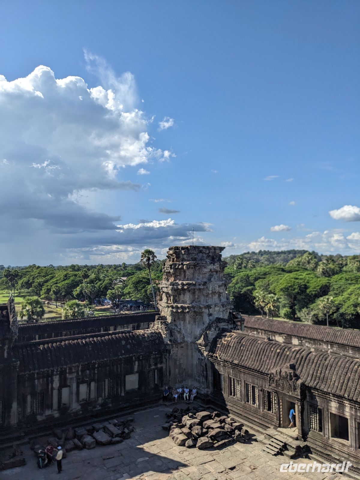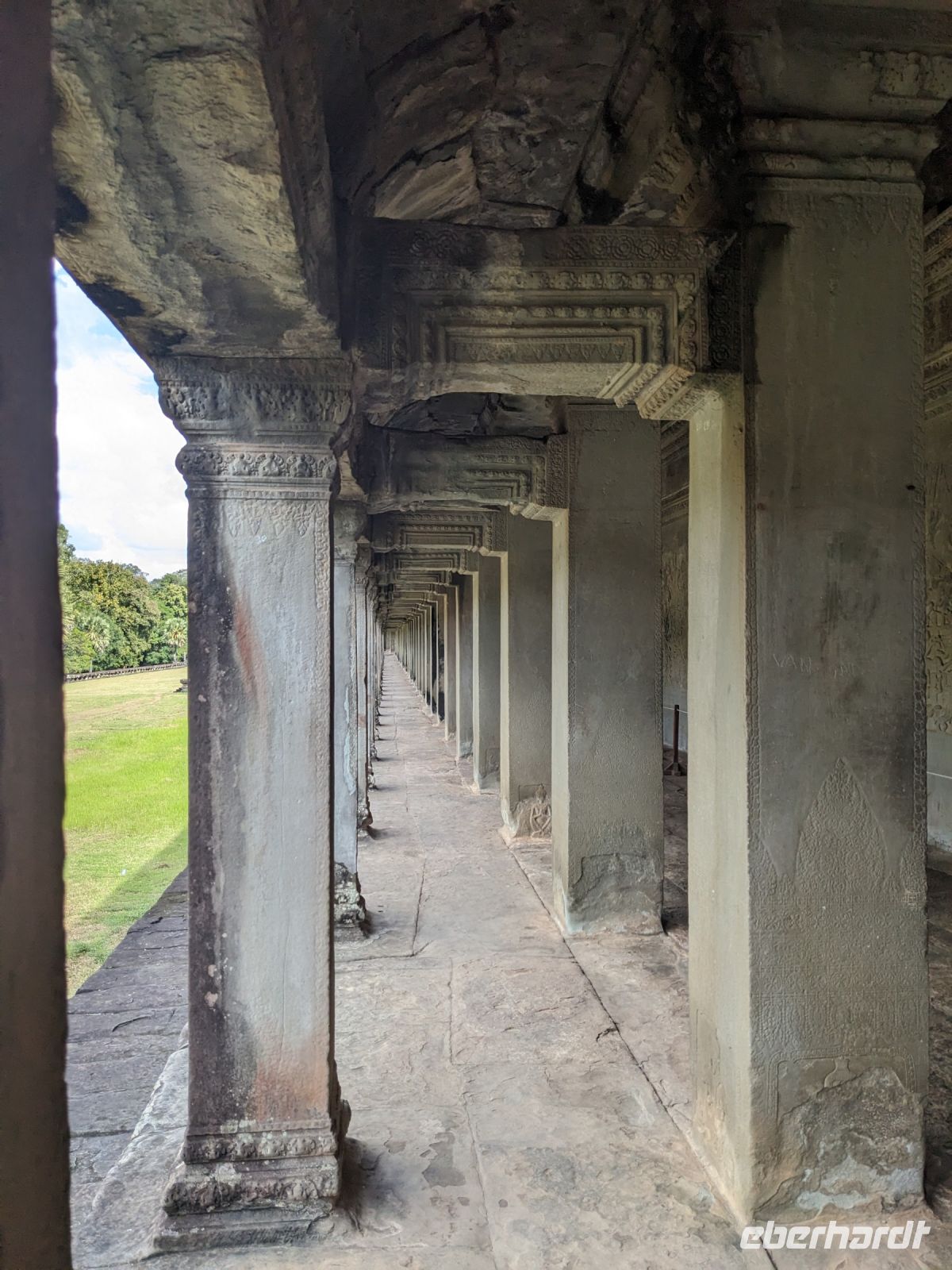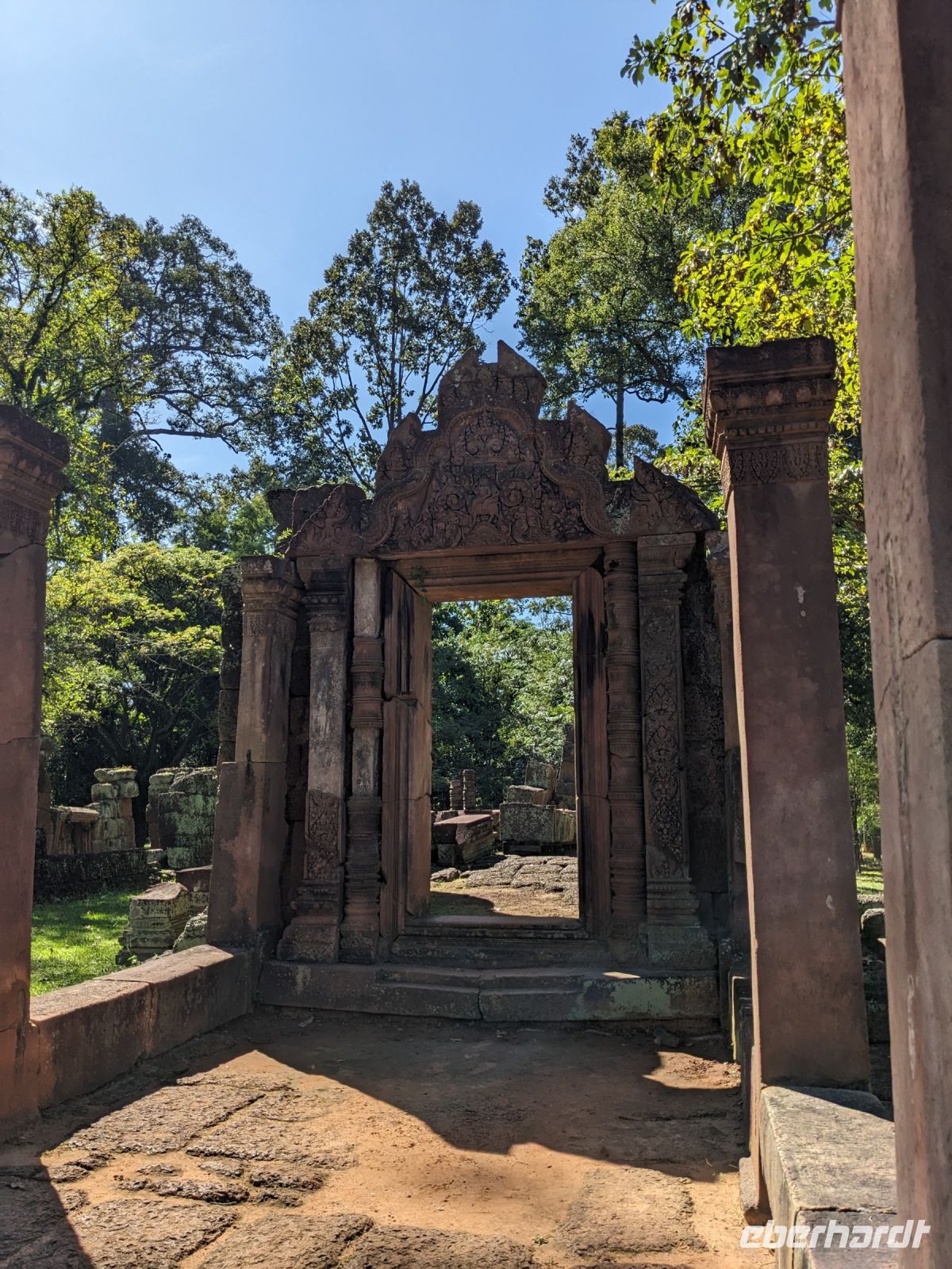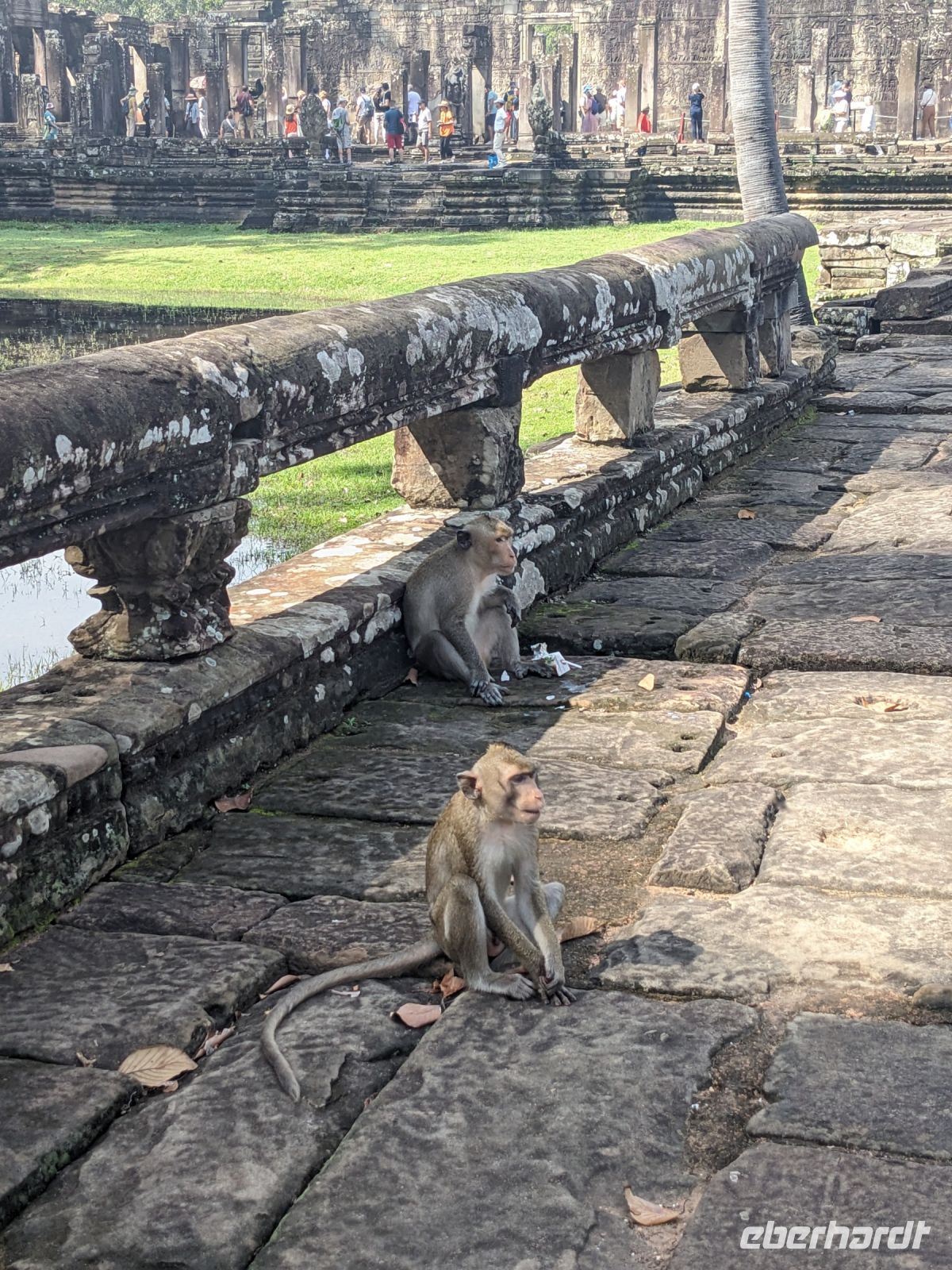 Der letzte volle Reisetag war angebrochen und was wäre ein besserer Abschluss als Angkor Wat selbst. Ein Großteil der Gruppe traf sich bereits zur Bestaunung des Sonnenaufgangs auf der Anlage. Langsam, Stück für Stück, schlich die Sonne immer weiter nach oben und tauchte schließlich über den Wäldern neben dem Haupttempel auf. Es gibt zwei Tage im Jahr (einmal im März und einmal im September), wo die Sonne direkt mittig über dem Tempel aufgeht. Anschließend ging es zurück ins Hotel zum Frühstücken, wo wir auf den Rest der Gruppe trafen. Gemeinsam zogen wir los zum Banteay Schrein, ein sehr kleiner Tempel mit vielen detailreichen Verzierungen. Auf dem Rückweg stoppten wir bei einem Palmzuckerverarbeiter. Hier konnten wir auch probieren und bei der Herstellung zuschauen. Fast jeder fand ein schönes Mitbringsel für Zuhause. Im Namen von Eberhardt TRAVEL gab es dann eine typisch kambodschanische Nudelsuppe zum Mittag und gut gestärkt, erkundeten wir schließlich Angkor Wat. Anders als am Morgen gingen wir in die Tempelanlage hinein und Lim machte mit uns eine ausführliche Tour. Im Haupttempel stieß der Großteil der Gruppe bis auf die dritte Etage hoch - doch die steilen Stufen waren es wert - von oben hatten wir einen tollen Ausblick auf die Umgebung. Am Abend erwartete uns dann unser letzten gemeinsames Abendessen in einem wirklich sehr schön gestalteten Restaurant, was wir ganz für uns allein hatten.