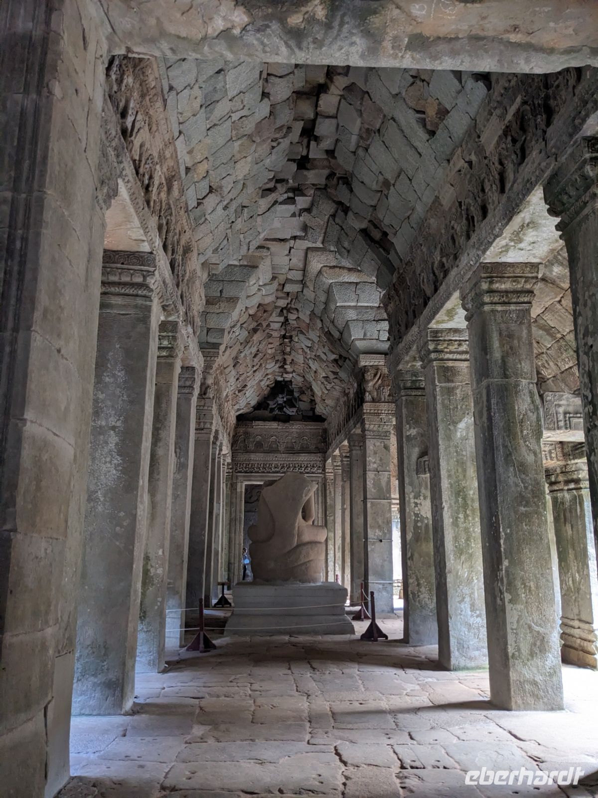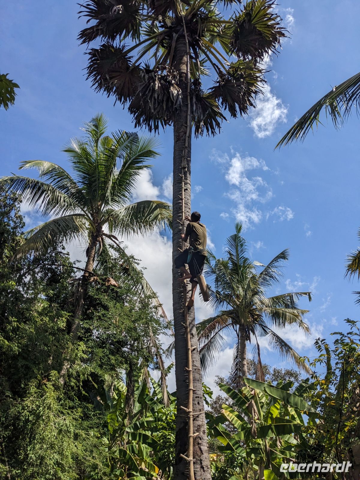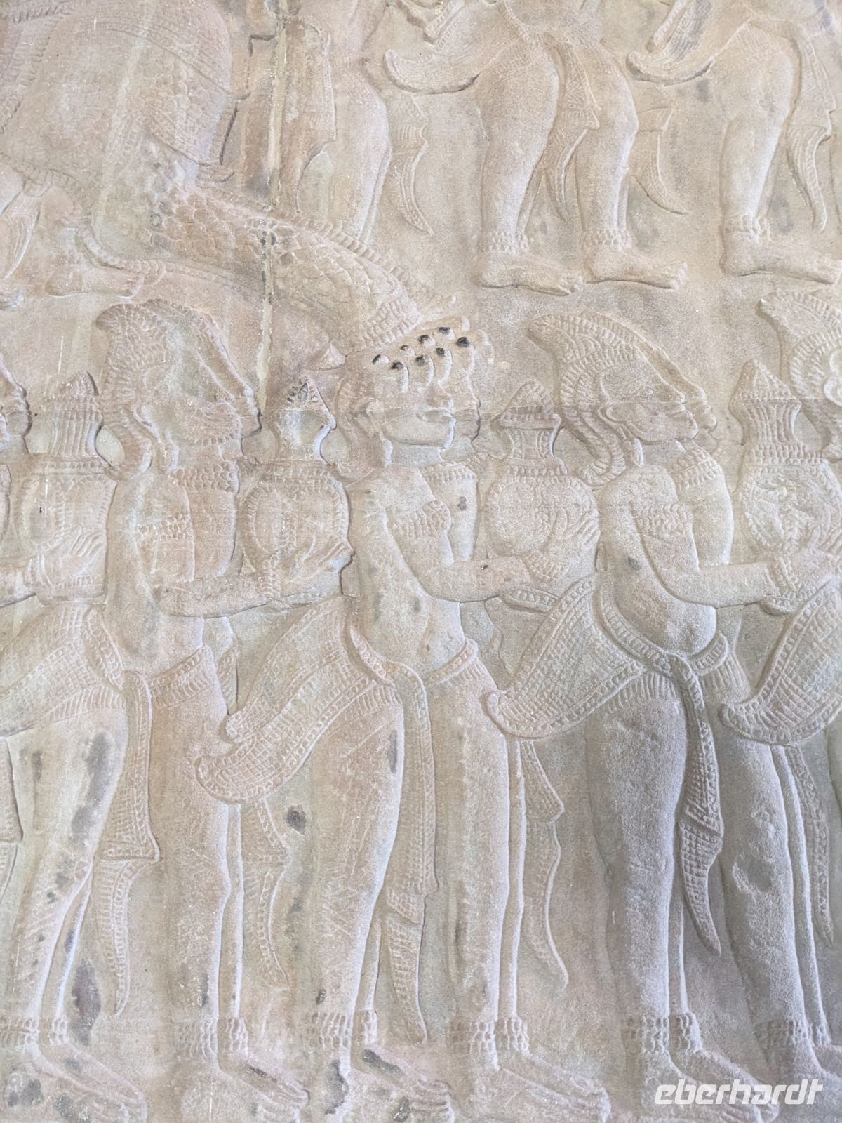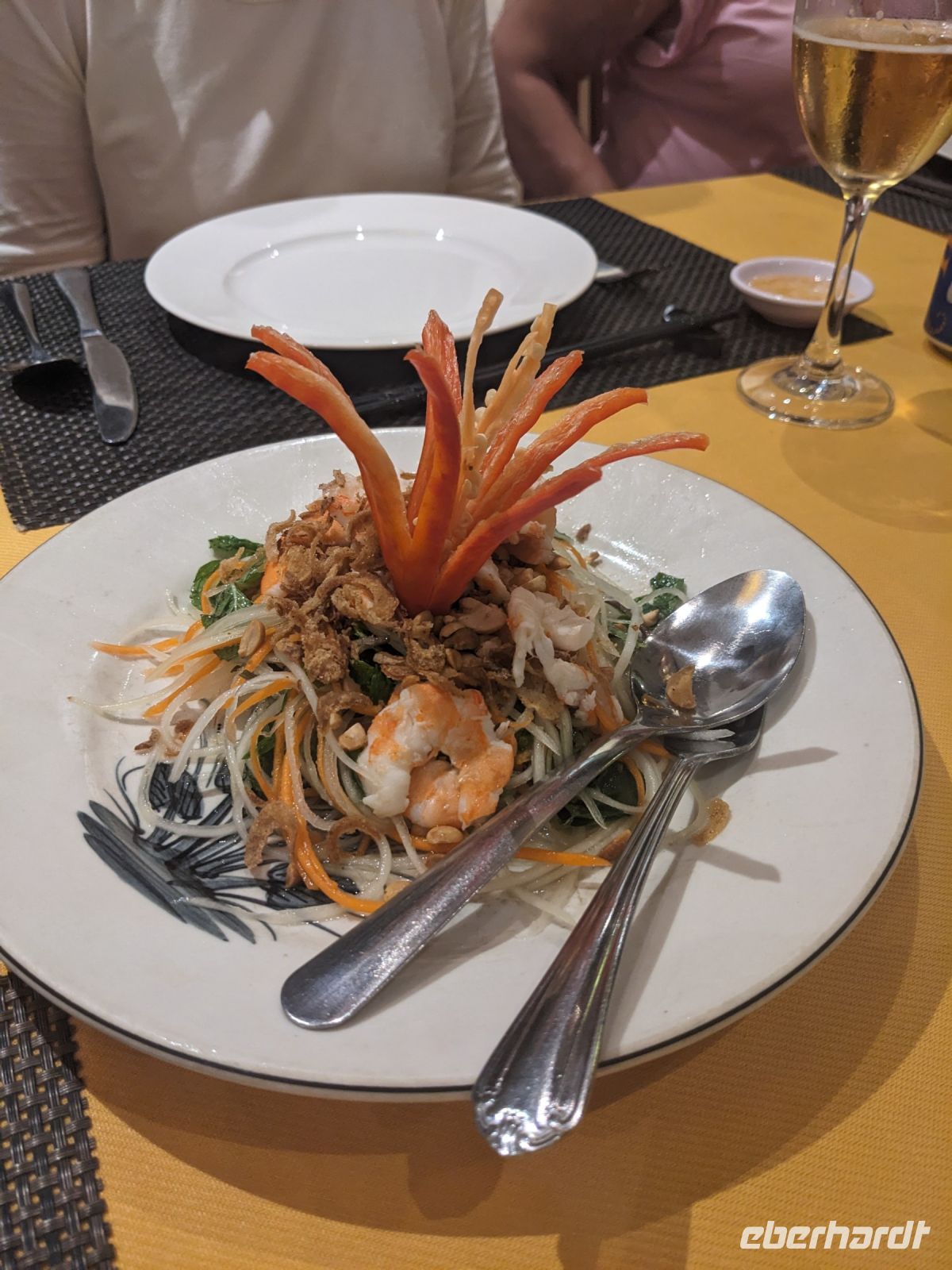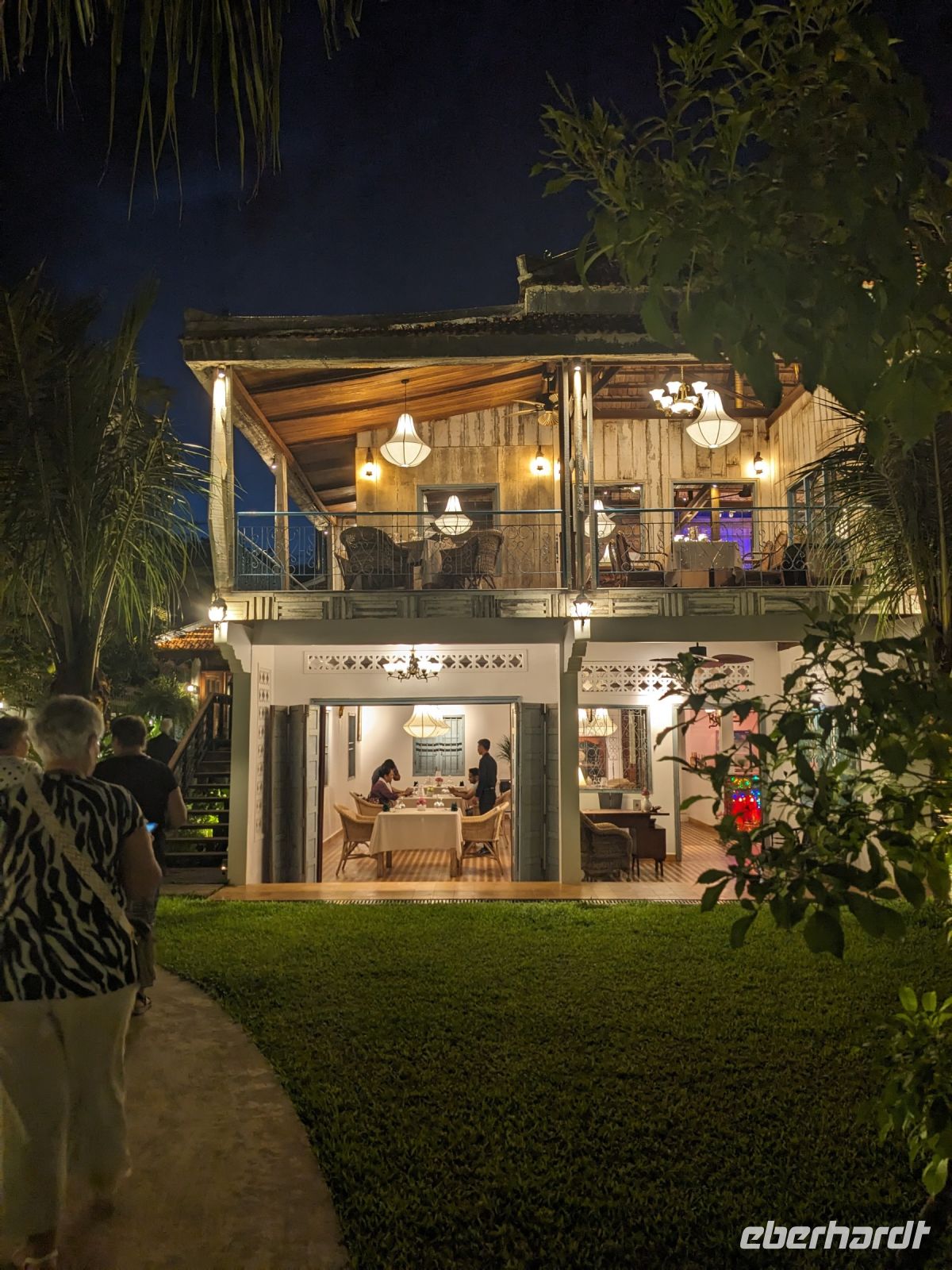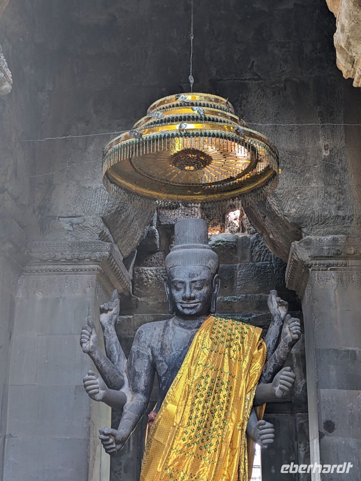 Der letzte volle Reisetag war angebrochen und was wäre ein besserer Abschluss als Angkor Wat selbst. Ein Großteil der Gruppe traf sich bereits zur Bestaunung des Sonnenaufgangs auf der Anlage. Langsam, Stück für Stück, schlich die Sonne immer weiter nach oben und tauchte schließlich über den Wäldern neben dem Haupttempel auf. Es gibt zwei Tage im Jahr (einmal im März und einmal im September), wo die Sonne direkt mittig über dem Tempel aufgeht. Anschließend ging es zurück ins Hotel zum Frühstücken, wo wir auf den Rest der Gruppe trafen. Gemeinsam zogen wir los zum Banteay Schrein, ein sehr kleiner Tempel mit vielen detailreichen Verzierungen. Auf dem Rückweg stoppten wir bei einem Palmzuckerverarbeiter. Hier konnten wir auch probieren und bei der Herstellung zuschauen. Fast jeder fand ein schönes Mitbringsel für Zuhause. Im Namen von Eberhardt TRAVEL gab es dann eine typisch kambodschanische Nudelsuppe zum Mittag und gut gestärkt, erkundeten wir schließlich Angkor Wat. Anders als am Morgen gingen wir in die Tempelanlage hinein und Lim machte mit uns eine ausführliche Tour. Im Haupttempel stieß der Großteil der Gruppe bis auf die dritte Etage hoch - doch die steilen Stufen waren es wert - von oben hatten wir einen tollen Ausblick auf die Umgebung. Am Abend erwartete uns dann unser letzten gemeinsames Abendessen in einem wirklich sehr schön gestalteten Restaurant, was wir ganz für uns allein hatten.