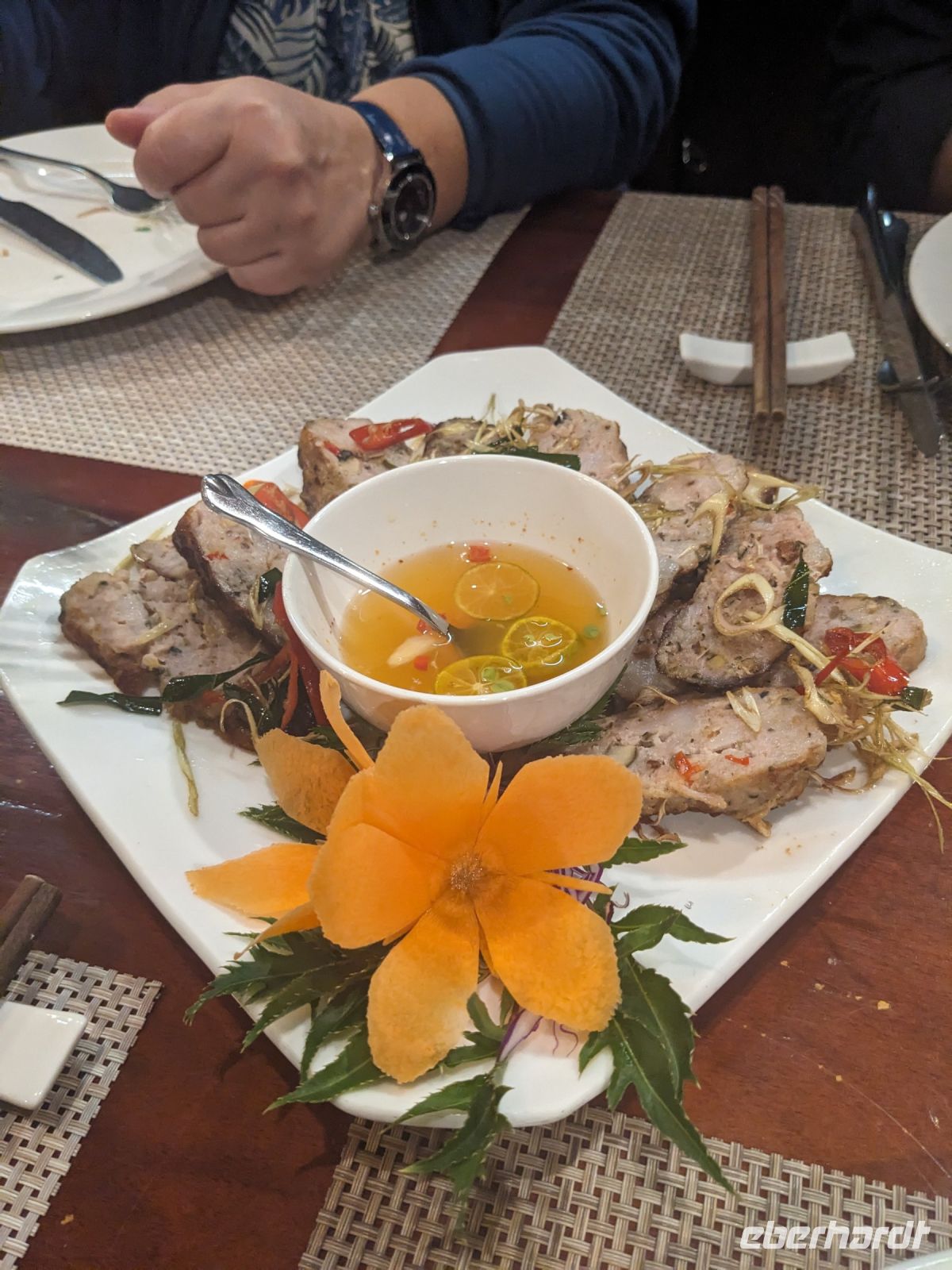 Über Hanoi folgte dann der Flug nach Da Nang in Zentralvietnam. Es hieß `Auf Wiedersehen´ zu Lang und `Hallo´ zu Hi, unserem neuen örtlichen Reiseleiter. Mit dem Bus fuhren wir vom Flughafen nach Hoi An und genossen dort ein unglaublich leckeres Abendessen in tollem Ambiente. Das Servicepersonal war sehr aufmerksam und zeigte uns bei den lokalen Spezialitäten, wie man diese am Besten isst. Anschließend fuhren wir in unser Hotel für die nächsten zwei Nächte.