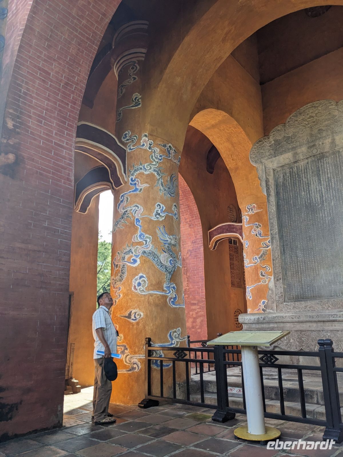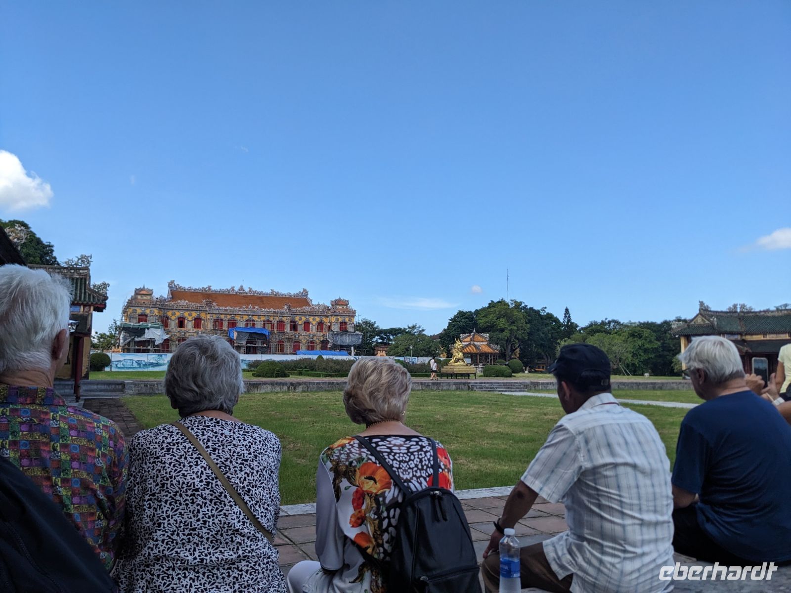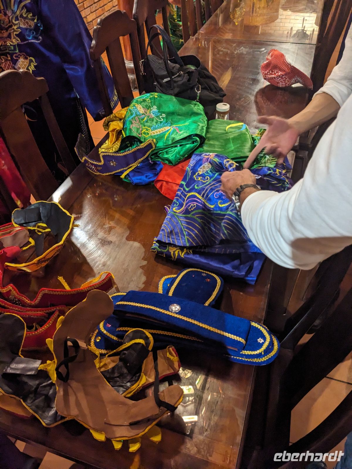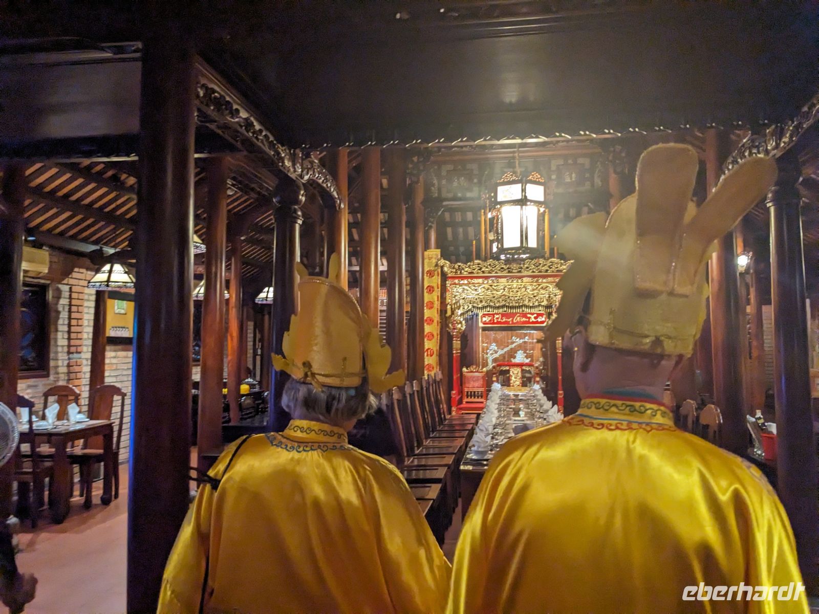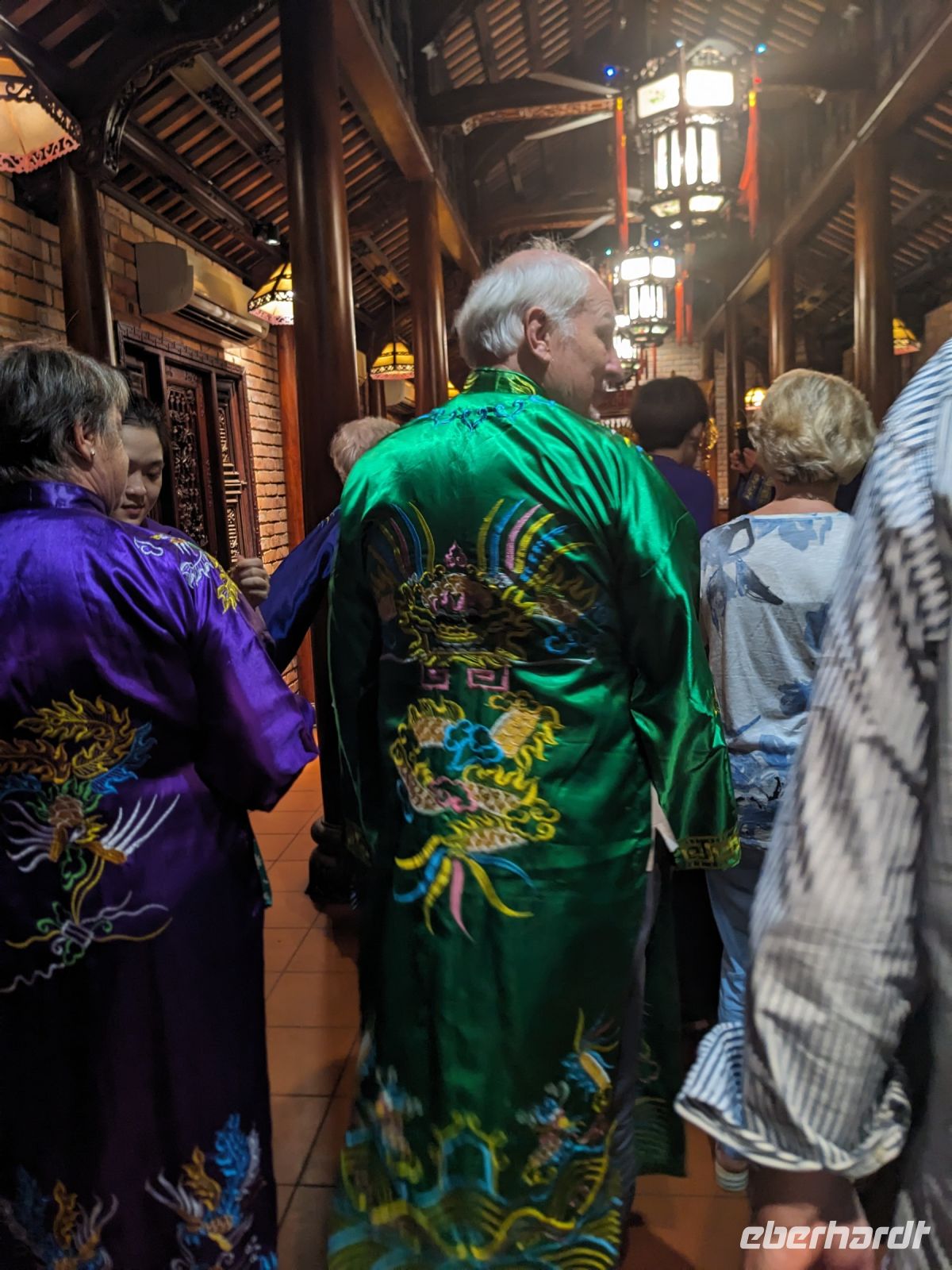 In der ersten Tageshälfte spazierten wir über die Anlage des Kaiserpalastes und erkundeten dabei auch die Verbotene Stadt. Überraschend war die riesige Dimension des Areals mit all den verschiedenen Gebäuden, welche unterschiedliche Zwecke zur damaligen Zeit erfüllten. Hier stolperten wir auch in einen Filmdreh hinein - die Kulisse hierfür bot sich auf jeden Fall an. Interessant war zudem von Hi mehr über die Herrscherstrukturen sowie die Geschichte des Reichs zu erfahren. Die Sprache kam auch immer wieder auf die Frauen der Herrscher, ihre Rolle sowie die ganz eigene Hierarchie untereinander. Anschließend besuchten wir noch die Grabstätte eines Herrschers. Die riesige Anlage nutzte er selbst noch zu Lebzeiten als Residenz und später wurde sie zu seinen Ehren erhalten. Nach diesem geschichtsträchtigen Tag gelangten wir zurück ins Hotel und konnten noch etwas entspannen, bevor wir schließlich zum Abendessen aufbrachen. Dieses stellte sich jedoch als kein gewöhnliches heraus - uns legte man Verkleidungen an und mit Musik untermauert wurden wir schließlich in den eindrucksvollen Speisesaal geführt. Dort konnten wir diese dann wieder ablegen und neben unserem leckeren Essen weiterhin einer traditionellen Musikgruppe lauschen, welche uns teilweise an unsere Erfahrungen mit dem Orchester des Wasserpuppentheaters erinnerte. Wir verabschiedeten uns hier von Hi, da ein Kollege von ihm uns am Folgetag zum Flughafen bringen würde.