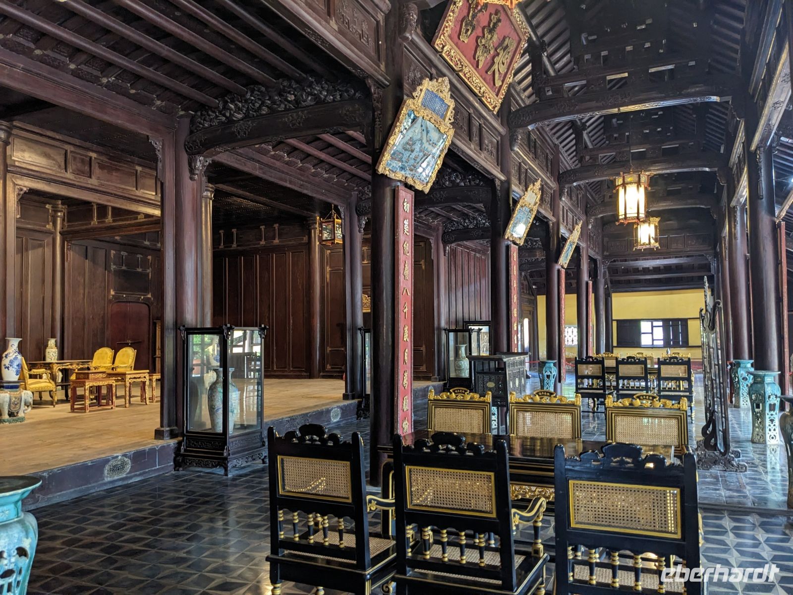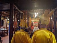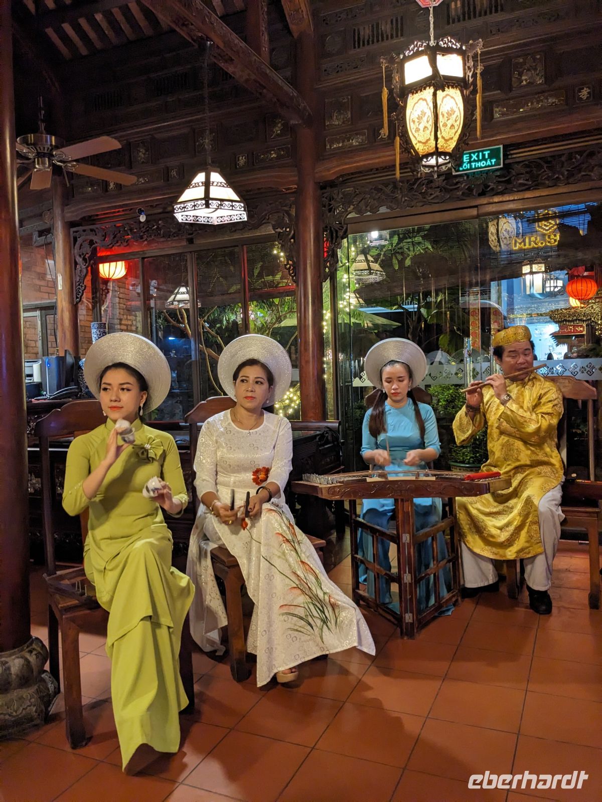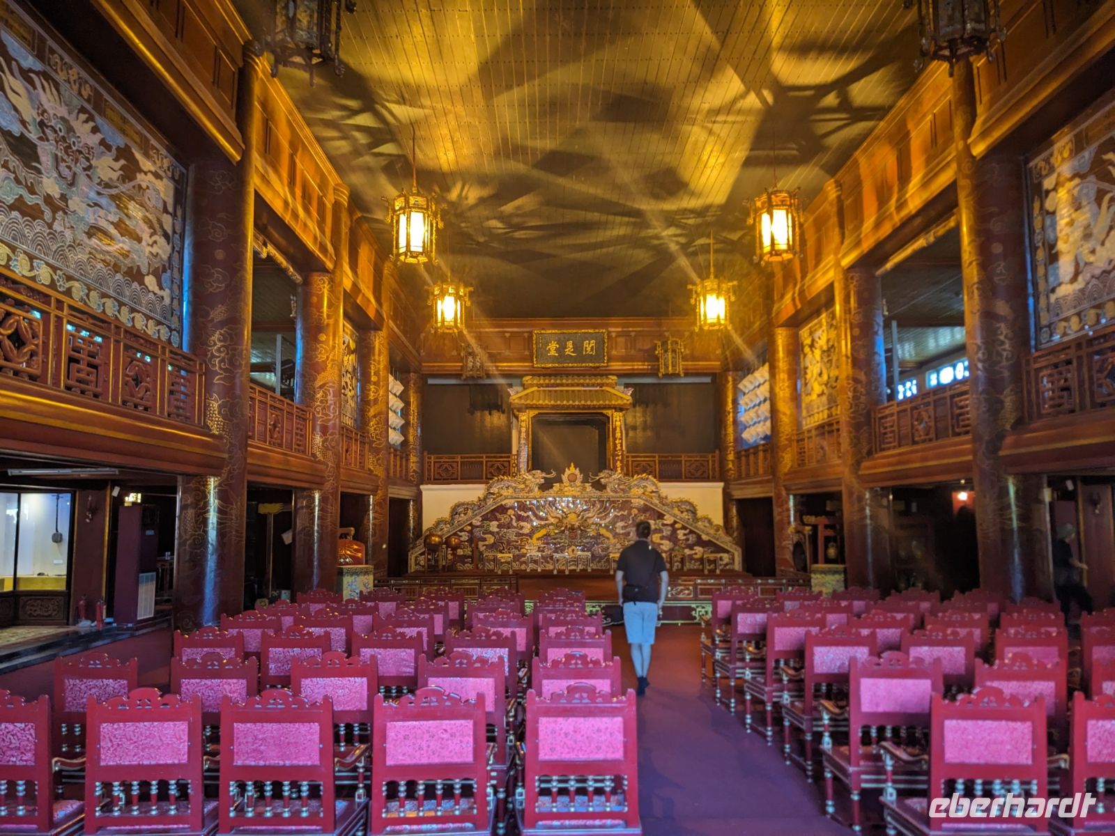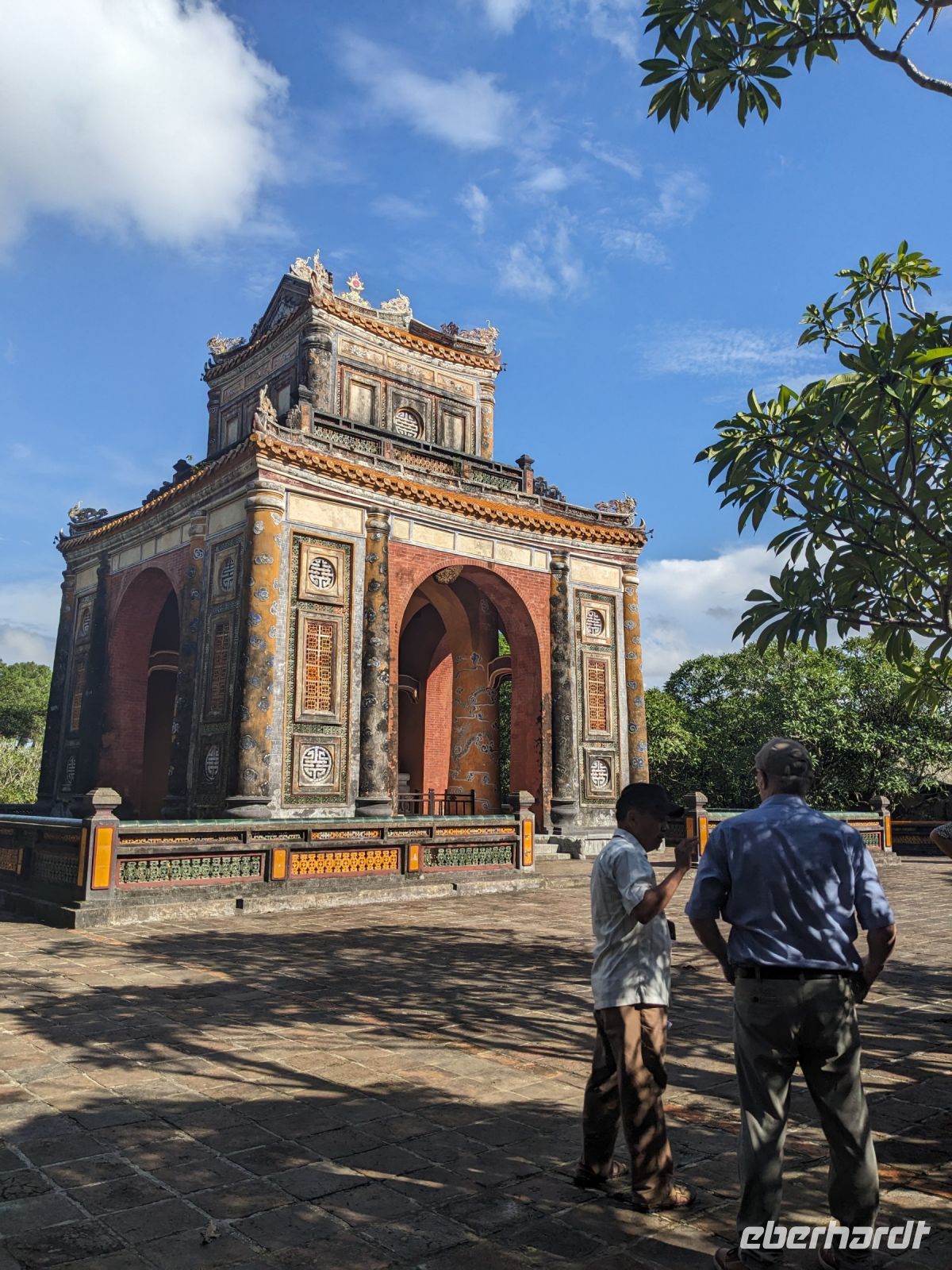 In der ersten Tageshälfte spazierten wir über die Anlage des Kaiserpalastes und erkundeten dabei auch die Verbotene Stadt. Überraschend war die riesige Dimension des Areals mit all den verschiedenen Gebäuden, welche unterschiedliche Zwecke zur damaligen Zeit erfüllten. Hier stolperten wir auch in einen Filmdreh hinein - die Kulisse hierfür bot sich auf jeden Fall an. Interessant war zudem von Hi mehr über die Herrscherstrukturen sowie die Geschichte des Reichs zu erfahren. Die Sprache kam auch immer wieder auf die Frauen der Herrscher, ihre Rolle sowie die ganz eigene Hierarchie untereinander. Anschließend besuchten wir noch die Grabstätte eines Herrschers. Die riesige Anlage nutzte er selbst noch zu Lebzeiten als Residenz und später wurde sie zu seinen Ehren erhalten. Nach diesem geschichtsträchtigen Tag gelangten wir zurück ins Hotel und konnten noch etwas entspannen, bevor wir schließlich zum Abendessen aufbrachen. Dieses stellte sich jedoch als kein gewöhnliches heraus - uns legte man Verkleidungen an und mit Musik untermauert wurden wir schließlich in den eindrucksvollen Speisesaal geführt. Dort konnten wir diese dann wieder ablegen und neben unserem leckeren Essen weiterhin einer traditionellen Musikgruppe lauschen, welche uns teilweise an unsere Erfahrungen mit dem Orchester des Wasserpuppentheaters erinnerte. Wir verabschiedeten uns hier von Hi, da ein Kollege von ihm uns am Folgetag zum Flughafen bringen würde.