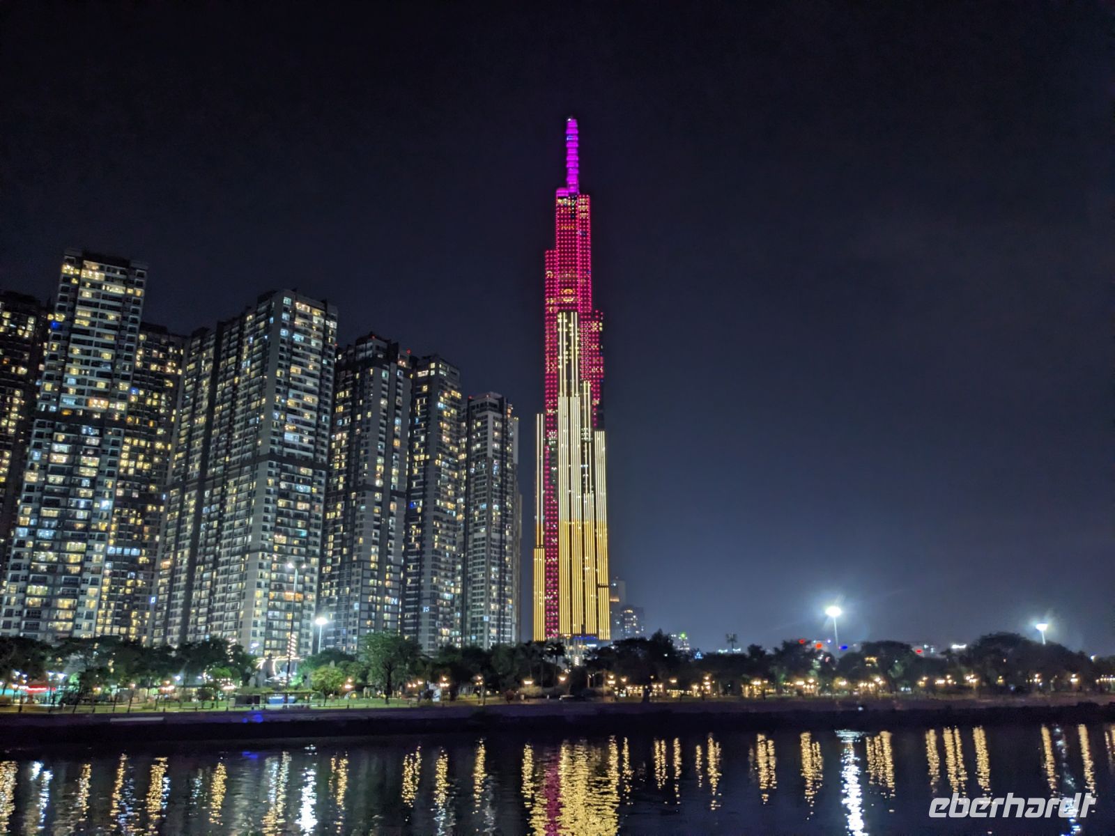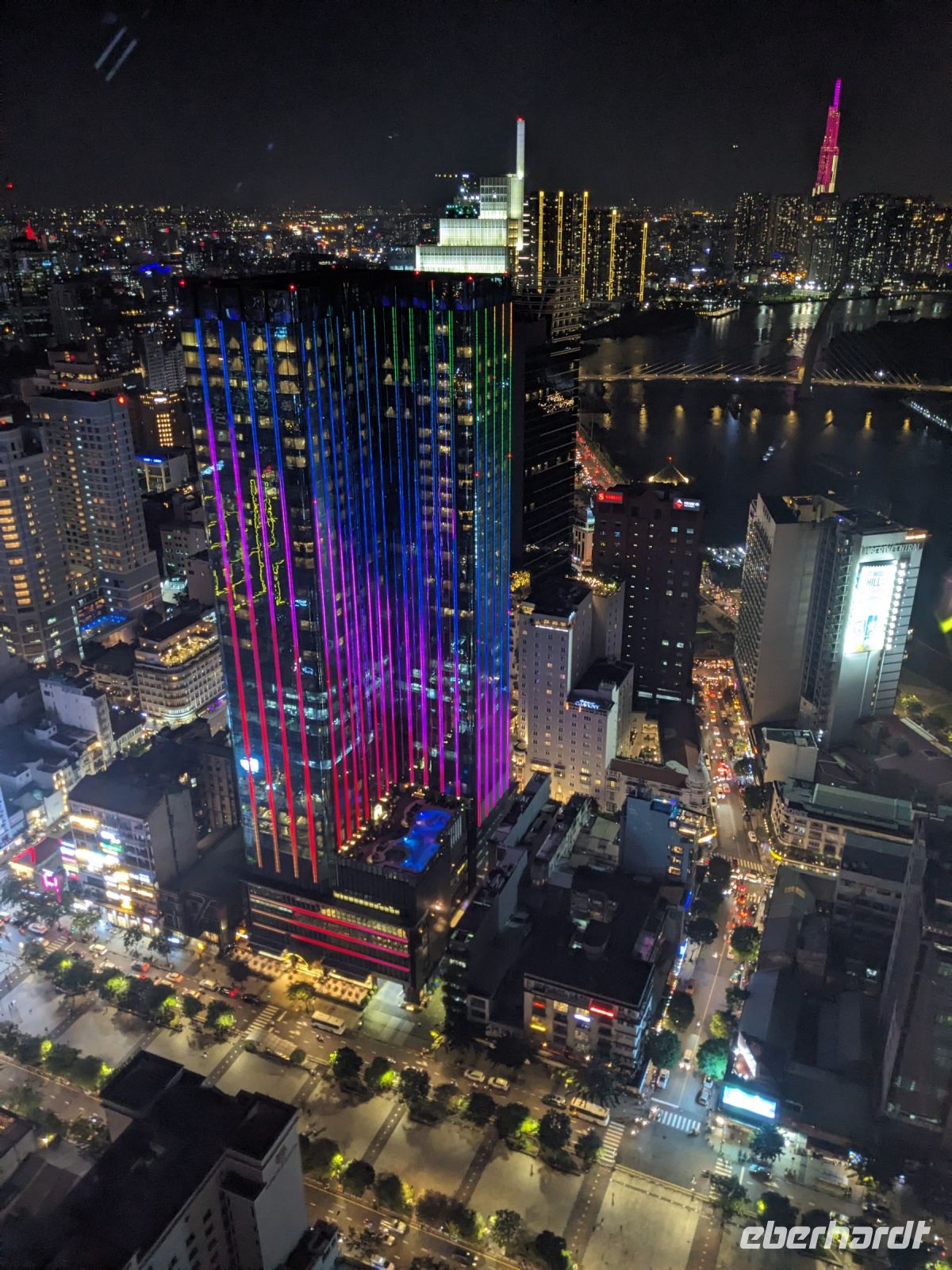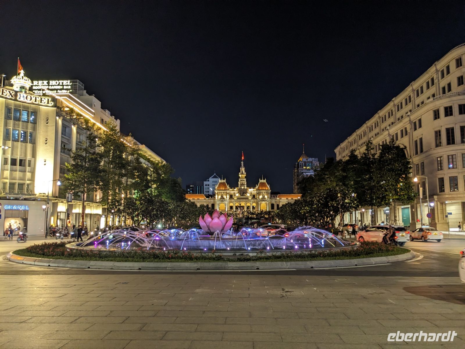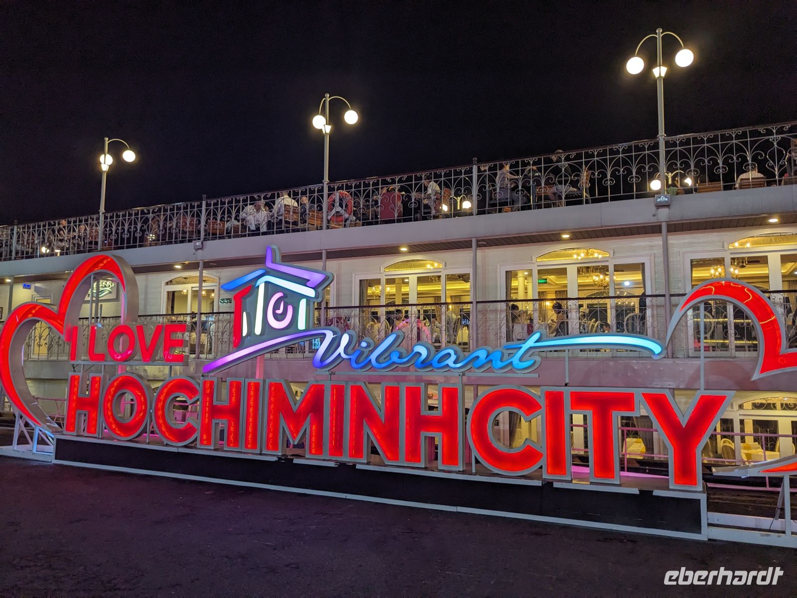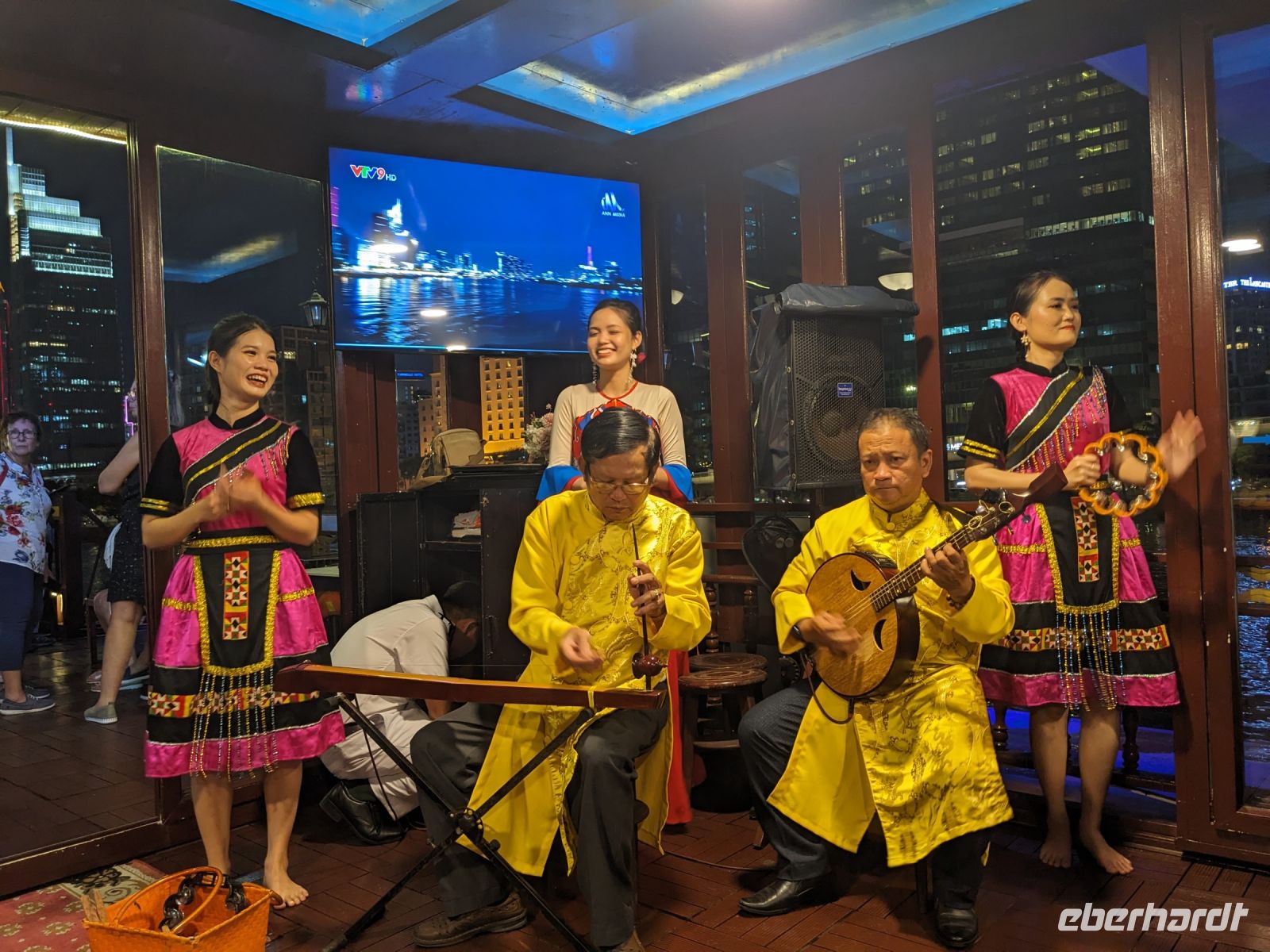 Nach einem entspannten Vormittag im Hotel wurden wir zum Flughafen gebracht. Unser nächstes Ziel: Ho Chi Minh Stadt, ehemals Saigon im Süden des Landes. Unser neuer örtlicher Reiseleiter Trong holte uns vom Flughafen ab und mit ihm erhielten wir einen ersten kurzen Eindruck der Stadt mit dem Besuch des Postamts, einem Blick auf die leider in Baugerüst verkleidete Notre Dame Kathedrale, dem Rathaus sowie der Oper. Nach einem kurzen Stopp im Hotel zum Check-In spazierten wir zum naheliegenden Aussichtsturm, von dem wir einen phänomenalen Blick auf die Stadt bei Nacht werfen konnten. Anschließend wurden wir zum Abendessen abgeholt und auch hier erwartete uns wieder etwas ganz Besonderes: Eine Fahrt mit einem Schiff entlang der Skyline von Saigon. Dabei gab es ein leckeres Menü sowie musikalische sowie tänzerische Untermalung.