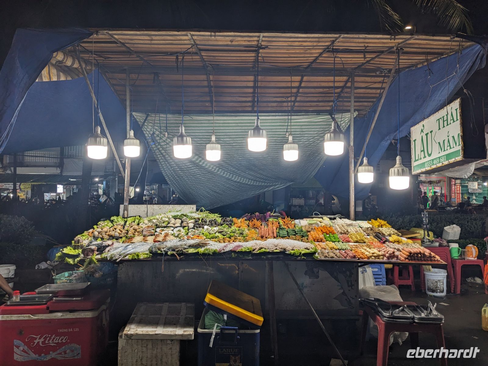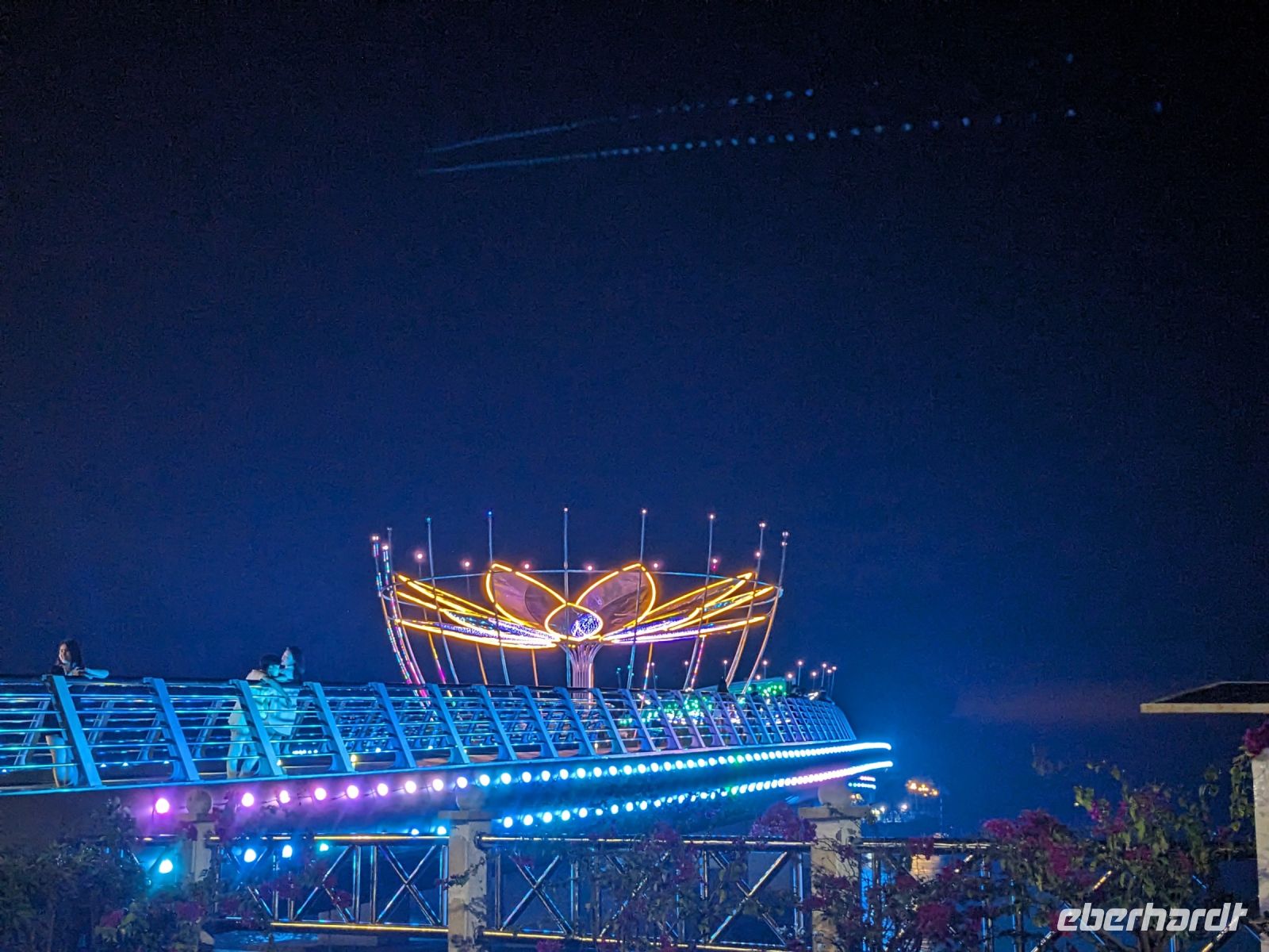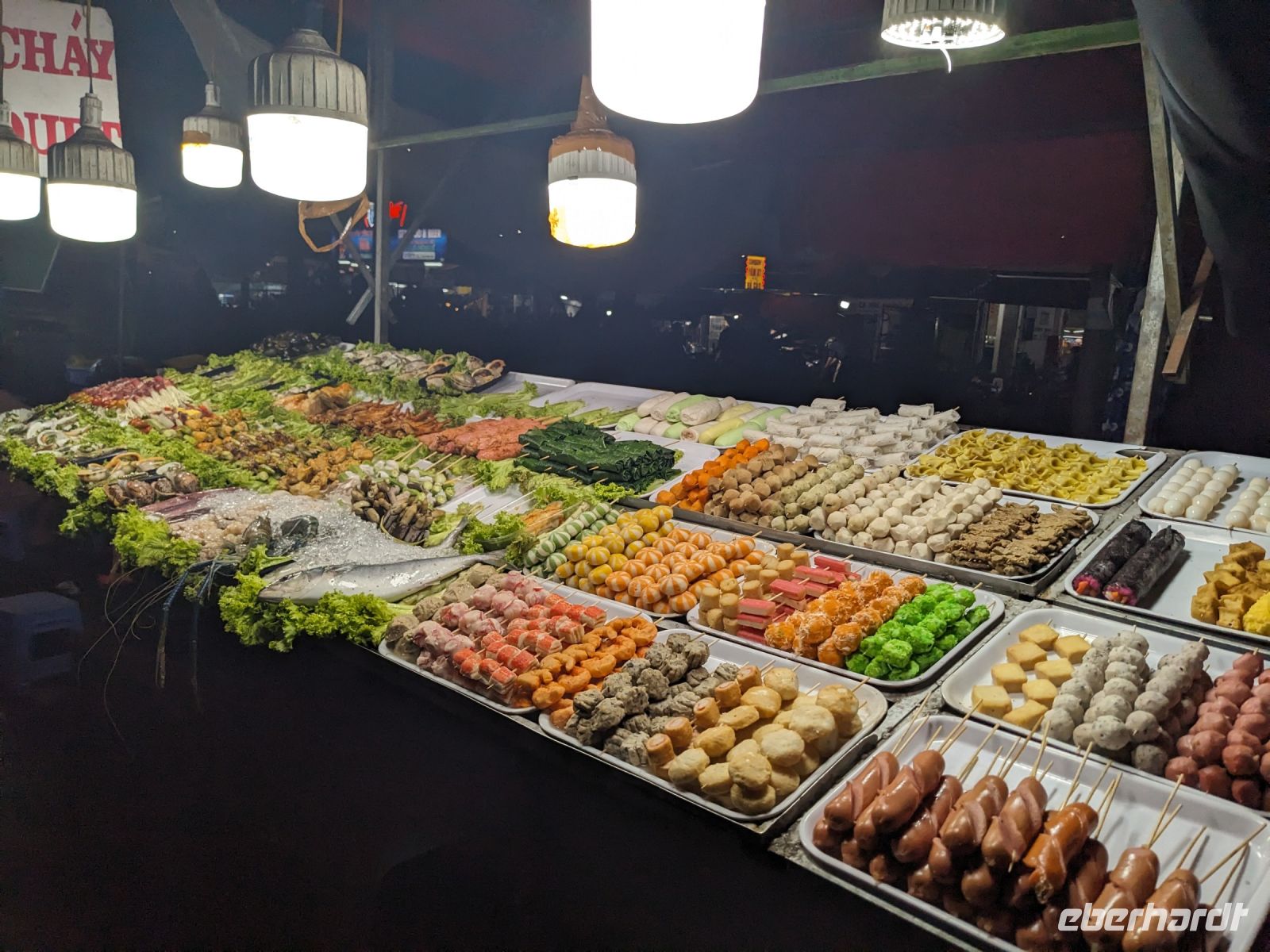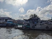 Bevor wir Saigon verließen statteten wir noch der 1000 Buddha Pagode einen Besuch ab. Ganz versteckt zwischen den Wohnhäusern würde man gar nicht denken, was hier für ein kleines Schätzchen schlummert. Vor allem der obere Saal mit den unzähligen Buddhastatuen ist sehr eindrucksvoll. Unser Reisebus brachte uns anschließend in die Region des Mekongs, einem riesigen Flussdelta. Mit einem Motorboot legten wir zunächst einen Stopp bei einer Obstplantage ein, wo wir leckeres Obst probieren konnten und nebenbei noch eine kleine Showeinlage geliefert bekamen. Mit Sampans, einfachen Ruderbooten, ging es dann ein Stück weit durch die Landschaft des Mekongs. Leider stach hier vor allem der umhertreibende Müll hervor - kein so schöner Anblick. Hinzu kam das Grollen des immer näher ziehenden Gewitters. Zum Glück erreichten wir noch trocken das überdachte Motorboot, bevor dann ein wahrer Blitzregenguss einsetzte. Eine Wand aus Regenschirmen sowie Jacken und Capes schützten uns teilweise. Schließlich erreichten wir das Familienrestaurant, welches für uns den Elefantenohrfisch zubereitet hatte. Hier saßen wir gemütlich den Regen aus und ließen uns diese lokale Spezialität schmecken. Weiter ging es dann zu einer fleißigen Betriebsstätte. Hier erfuhren wir, wie Reisepapier hergestellt wird, probierten einen Schlangenschnaps, erhielten eine Kostprobe vom dort produzierten Puffreis und konnten hier auch das ein oder andere Mitbringsel erwerben. Nach dem Ende unserer Erkundungstour brachte uns der Bus nach Can Tho, wo uns der Rest des Tages zur freien Verfügung stand. Mit allen, die wollten, gingen wir zusammen in ein Restaurant. Hier erlebten wir auch die ein oder andere Überraschung. Anschließend unternahmen wir noch als kleine Gruppe einen Spaziergang über den Nachtmarkt, entlang des Ufers, bis hin zur schön beleuchteten Passagierbrücke.