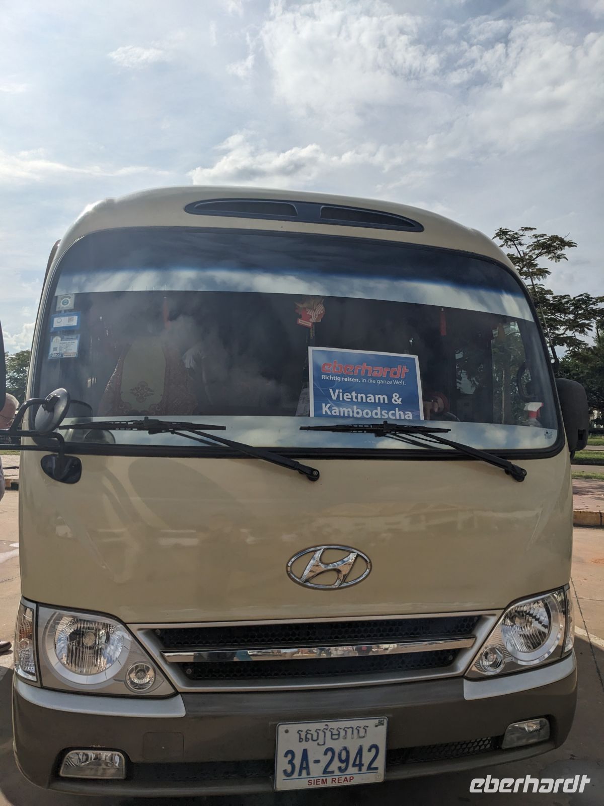 Der heutige Tag war leider geprägt von Warten, Warten und nochmal Warten - ein wirklich schwieriger Grenzübertritt. Wir haben ihn gemeistert - solche Erlebnisse schweißen einen wahrlich als Gruppe zusammen. Ich bin froh, dass wir es gut überstanden haben, alle durchgekommen sind und nichts verloren gegangen ist. Angekommen in Kambodscha hieß uns unser neuer Reiseleiter Chhim herzlich willkommen. Wir bekamen erstmal die Chance, Geld zu tauschen und fuhren dann direkt ins Hotel. Dort angekommen, viel der Stress von mir ab und ich merkte plötzlich, dass es mir nicht gut ging. Nach einer kleinen Erholungsphase am Nachmittag, dachte ich, es sei besser und kam mit zum Abendessen. Doch das war ein Trugschluss. Ich wollte mich an dieser Stelle nochmal ganz herzlich bei meiner Gruppe bedanken für die vielen Hilfsangebote und die Fürsorge, sei es in Form von Medizin oder mittels lieber und aufbauender Worte.