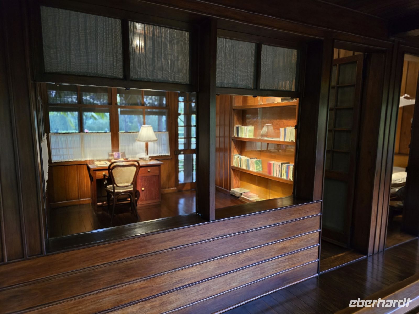 Direkt hinter dem Kaiserpalast befindet sich das Haus der Queen Mama. Es ist deutlich kleiner aber sieht sehr gemütlich und sympathisch aus, für ein Wohnhaus eine stattliche Herberge. Bevor man der Queen Mutter einen Besuch abstatten kann, muss man sich in einem separaten Häuschen anmelden und kann erst zum Haus kommen nach dem der Besuch gestattet worden ist. Auch dieses Wartehäuschen liegt schön umringt von einem Koi-Karpfen Teich, so das dem Besucher das Warten nicht so lange wird.