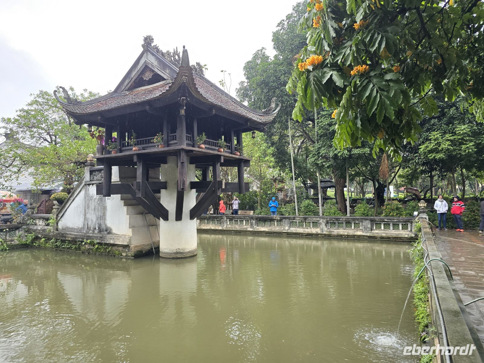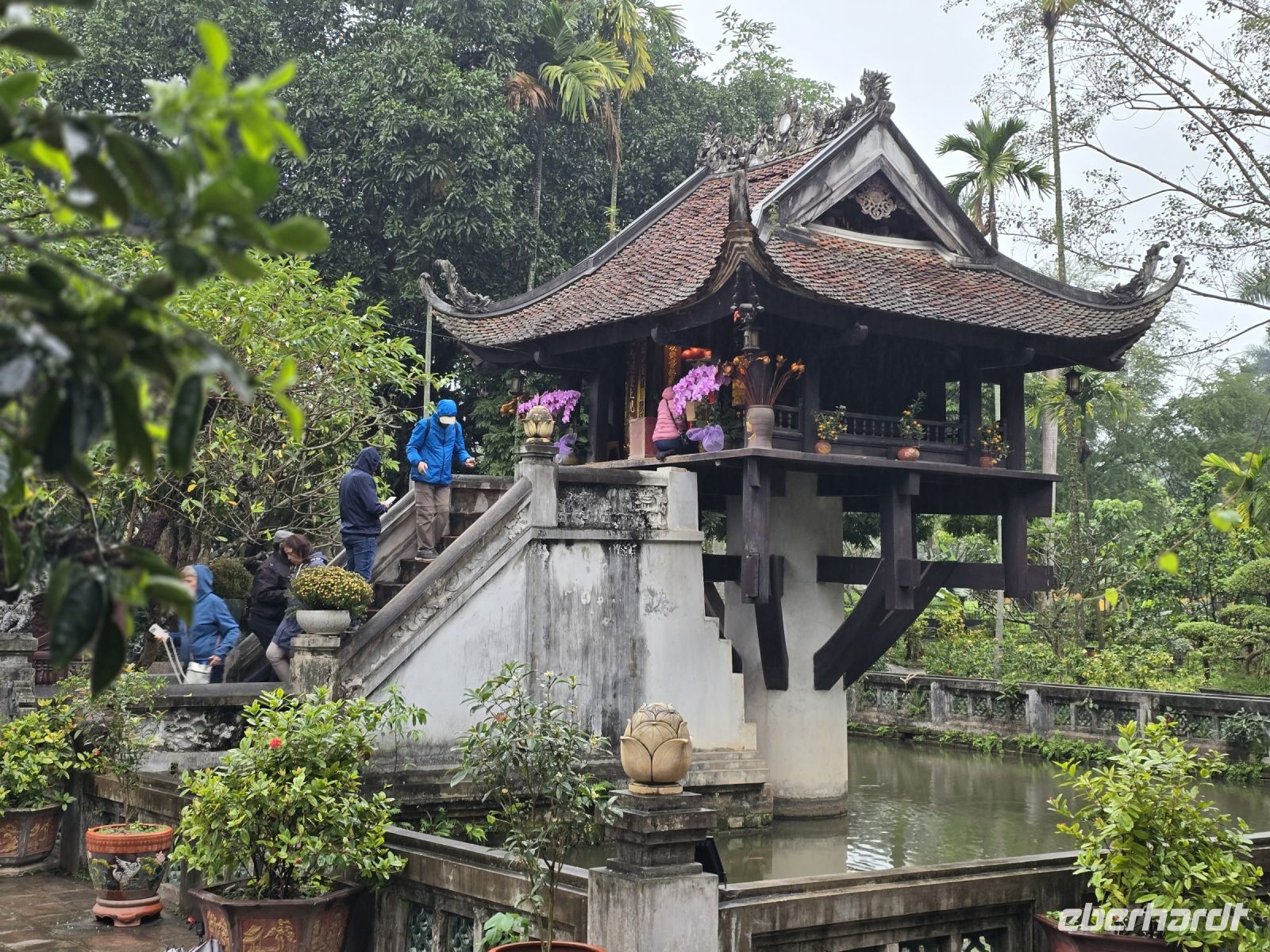 Danach gehen wir in das politische Zentrum Hanois. Zum Roten Platz, an dem auf der linken Seite das Ho Chi Minh Mausoleum steht und auf der rechten Seite das Parlamentsgebäude. "Onkel Ho" wie der ehemalige Freiheitskämpfer und Führer Vietnams liebevoll genannt wird, hatte hier seinen Wohn und Arbeitsort. Während dem großen amerikanischen Krieg wurde der Bereich mit einem großen Bunker unterkellert, in dem Ho Chi Minh und die gesamte Regierung, Schutz finden konnte. Ein weiteres Wahrzeichen Hanois ist die Schildkröteninsel, gelegen im Hoan Kiem See. Hier werden die ursprünglichen, aber seit 40 Jahren verstorbenen, großen Schildkröten präpariert präsentiert, die auch heute noch verehrt werden. In dieser Gegend befindet sich auch die berühmte Einsäulenpagode, die noch heute das Symbol für Fruchtbarkeit ist.