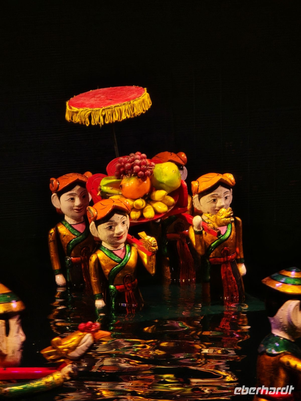 Am Nachmittag besuchten mir das Wasserpuppentheater, eine sehr beliebte Attraktion für Touristen und Schüler. Hier werden die traditionellen Geschichten Vietnams mit Puppen die auf einem Wasserbecken schwebend nachgespielt. Begleitet wird diese Vorführung durch ein kleines Orchester das auch den Puppen ihre Stimmen verleiht.