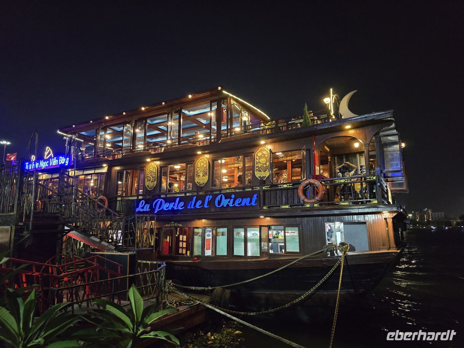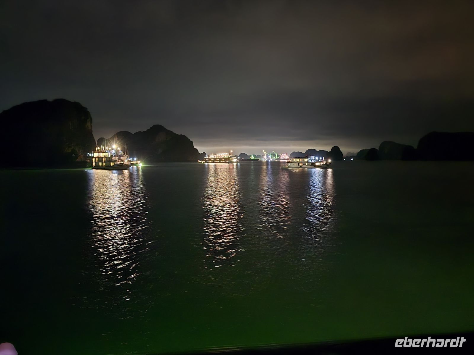 Wie hatten einen wunderschönen Abend auf dem Schiff. Bei Nacht lagen noch weitere Schiffe in Sichtweite in der Bucht, deren Board Beleuchtung erzeugte eine friedliche Stimmung.