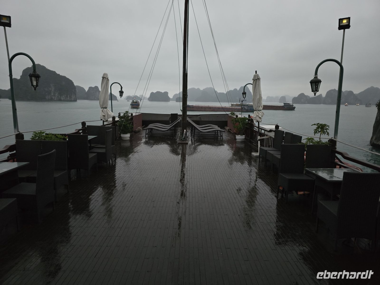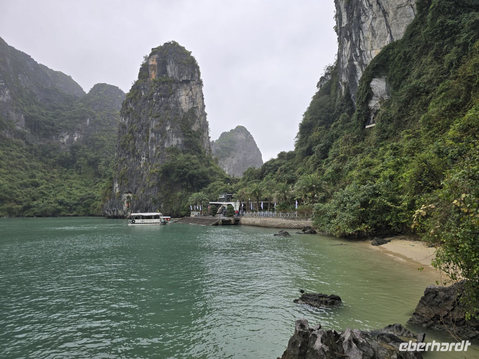 Der gesamte Weg erstreckte sich über 700 Steinstufen, abwechseln rauf und runter. Am Ausgang wurden wir mit dem Tenderboot wieder abgeholt und zur Dschunke zurückgebracht. Dort werden wir Empfangen mit einem Glas Ingwertee und für die Reinlichkeit bekommen wir heißfeuchte Tücher gereicht. Wir packen dann auch gleich unser Gepäck und räumen die Zimmer, denn als nächstes war ein großes Branch für uns vorbereitet und das Personal nütze die Zeit in den Kabinen Klarschiff machen konnte, damit zur Mittagszeit die nächsten Gäste einziehen können.
