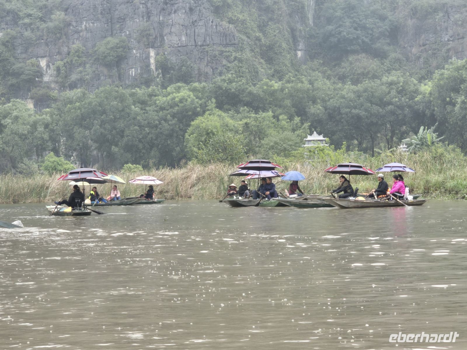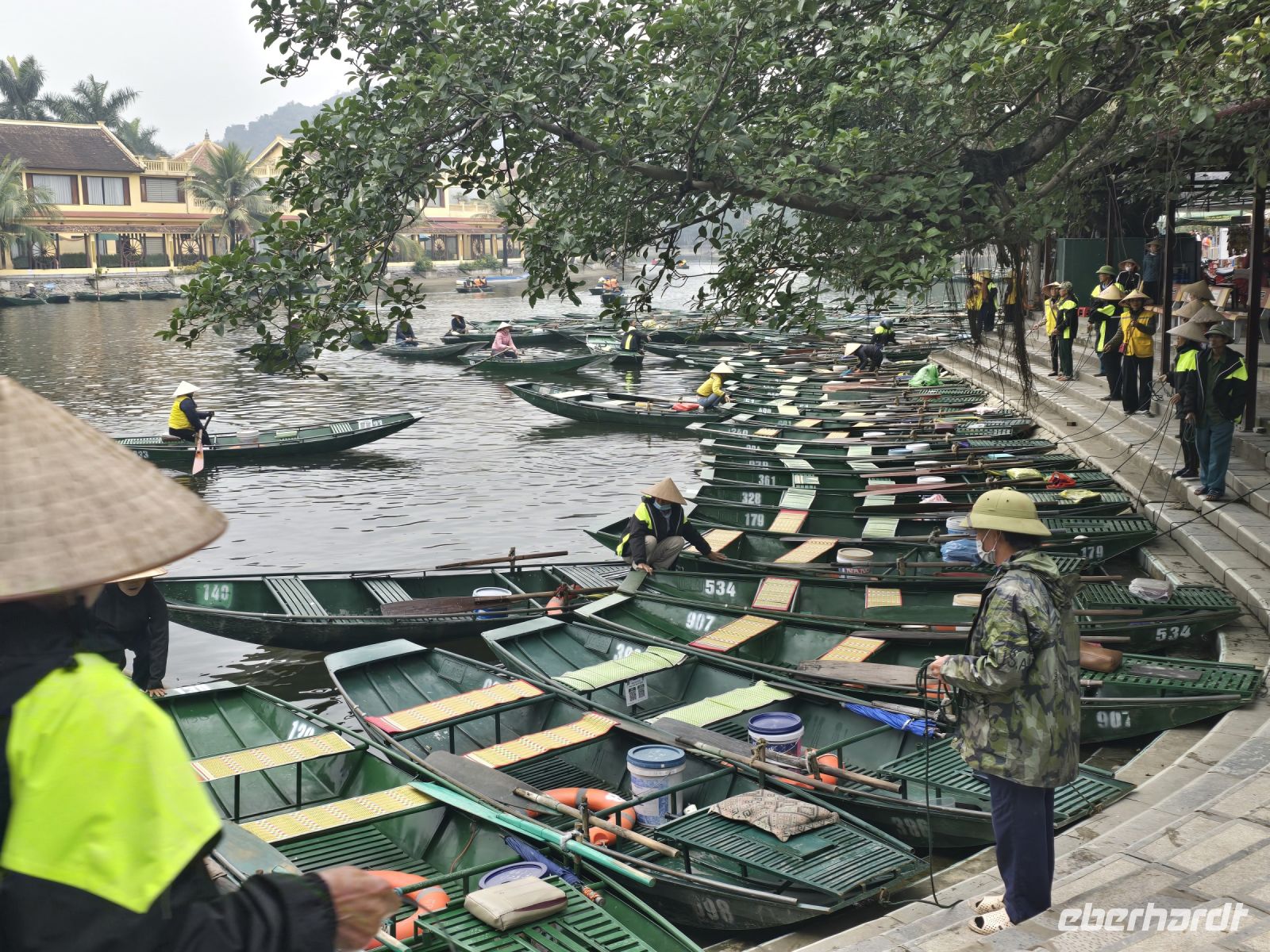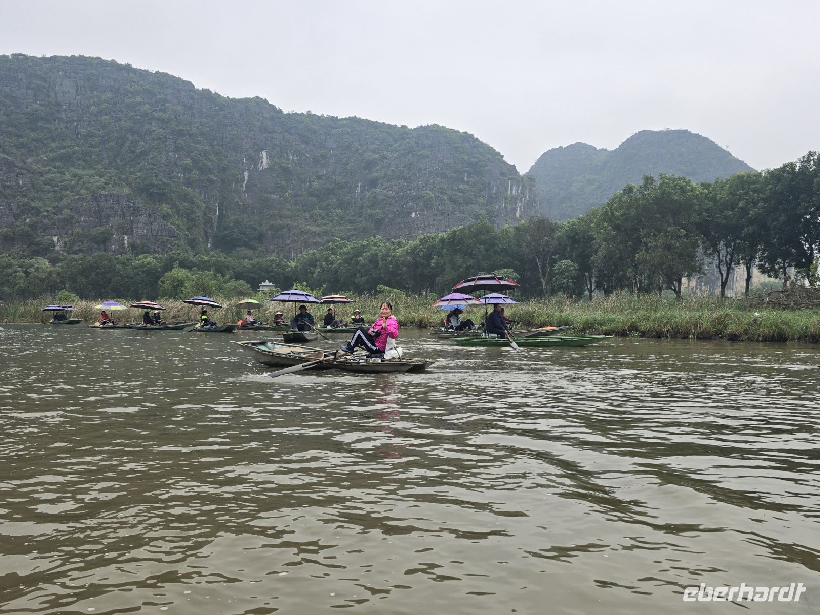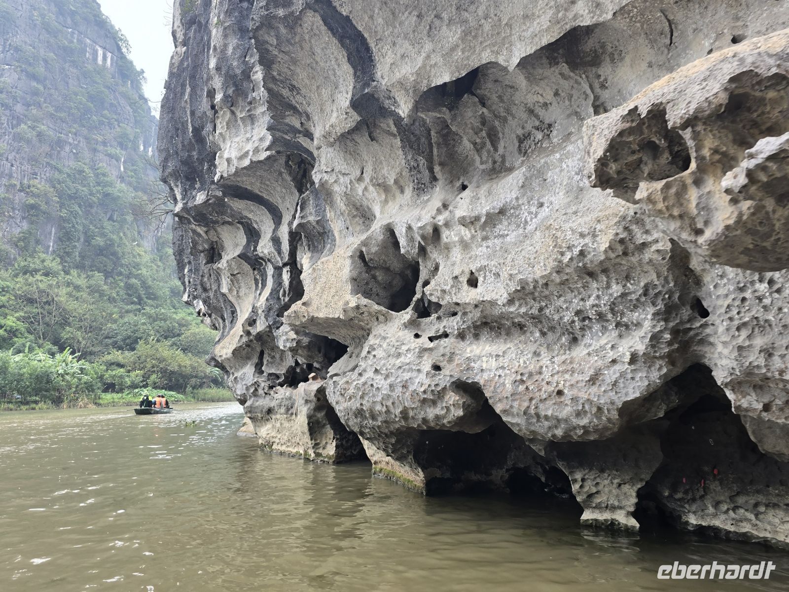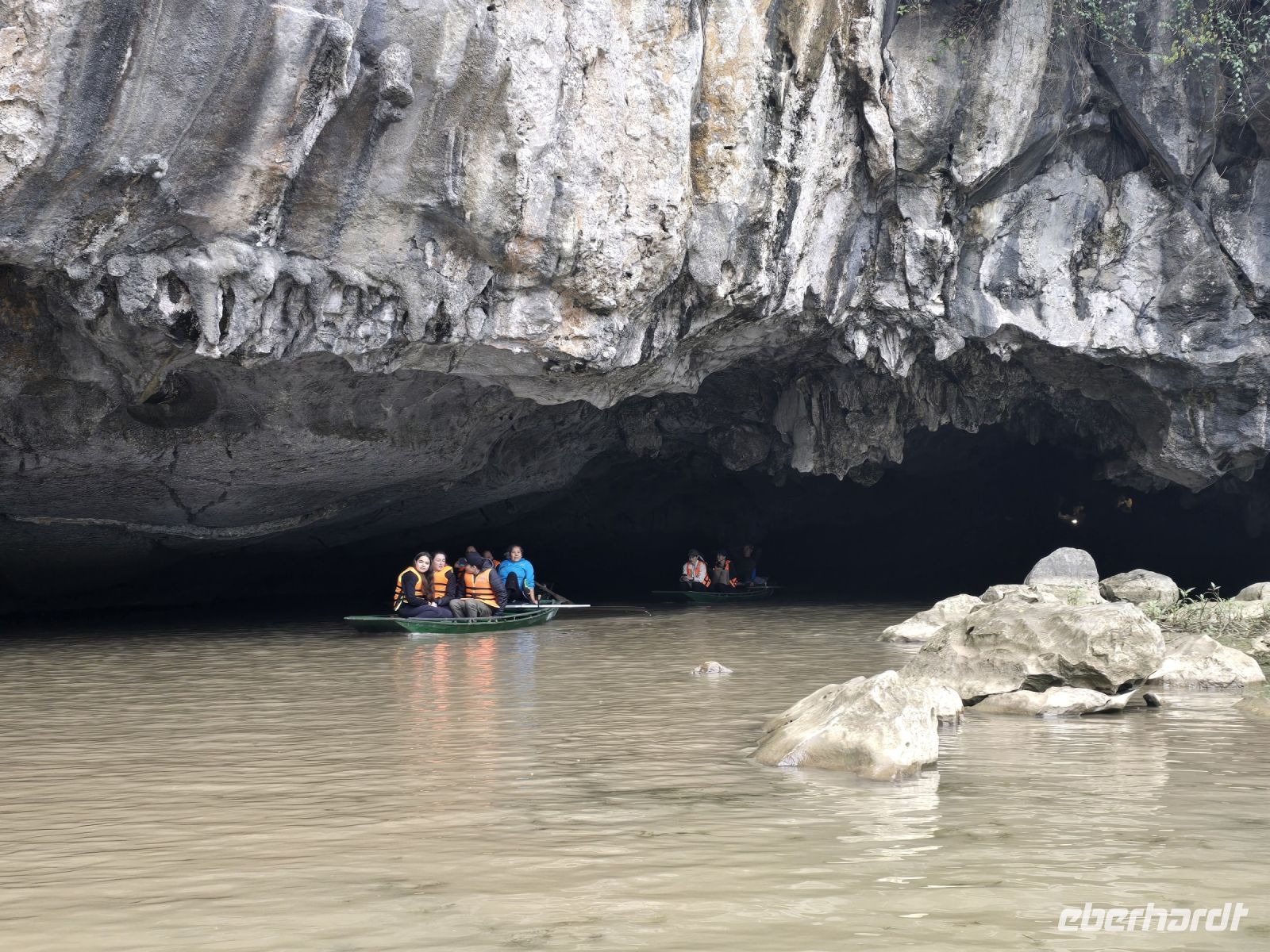 Heute ist die sogenannte trockene Ha-Lang Bucht unser Ziel. Wir fuhren mit dem Bus ca. 3 Stunden durch dieses großartige Kalksteinmassiv bis wir bei einem Reisbauerndorf, ankamen. Diese Reisbauern leben an einem Fluss der sich den Weg durch die Kalksteine gesucht hat.
