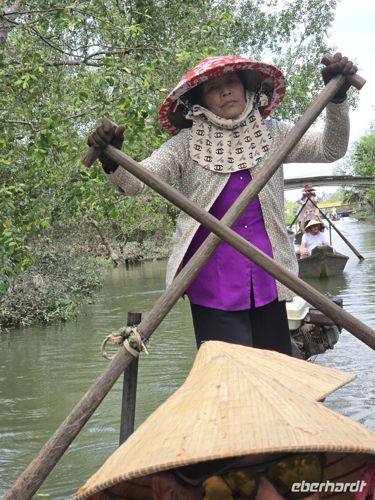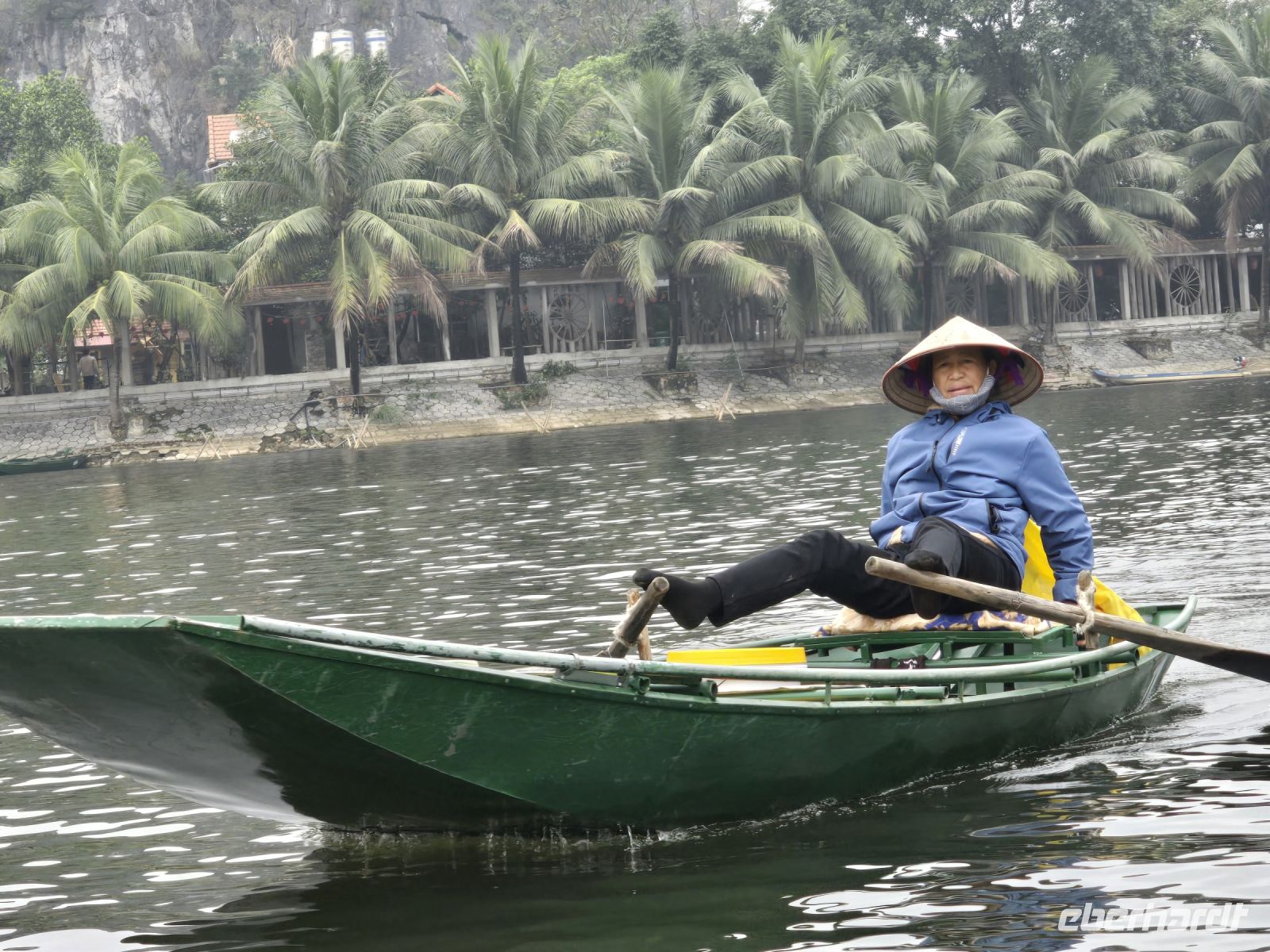 Die Reisbauern dieser Gegend bieten den Touristen an, sie durch den Fluss zu rudern, an den Reisfeldern entlang und durch die imposante Landschaft und eindrucksvoll durch die teilweise niederen Felstunnel. Neben all den Naturschönheiten ist es auch spannend zu beobachten, wie die Frauen die Ruderboote bewegen. Die beiden Paddel werden von den Frauen mit den Beinen bewegt, die Füße schmiegen sich an den Rudergriff und mit den Beinen werden die beiden Paddel geschmeidig bewegt, entweder im Gleichtakt oder Gegentakt.
