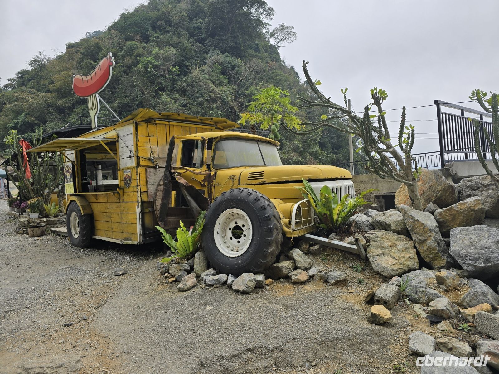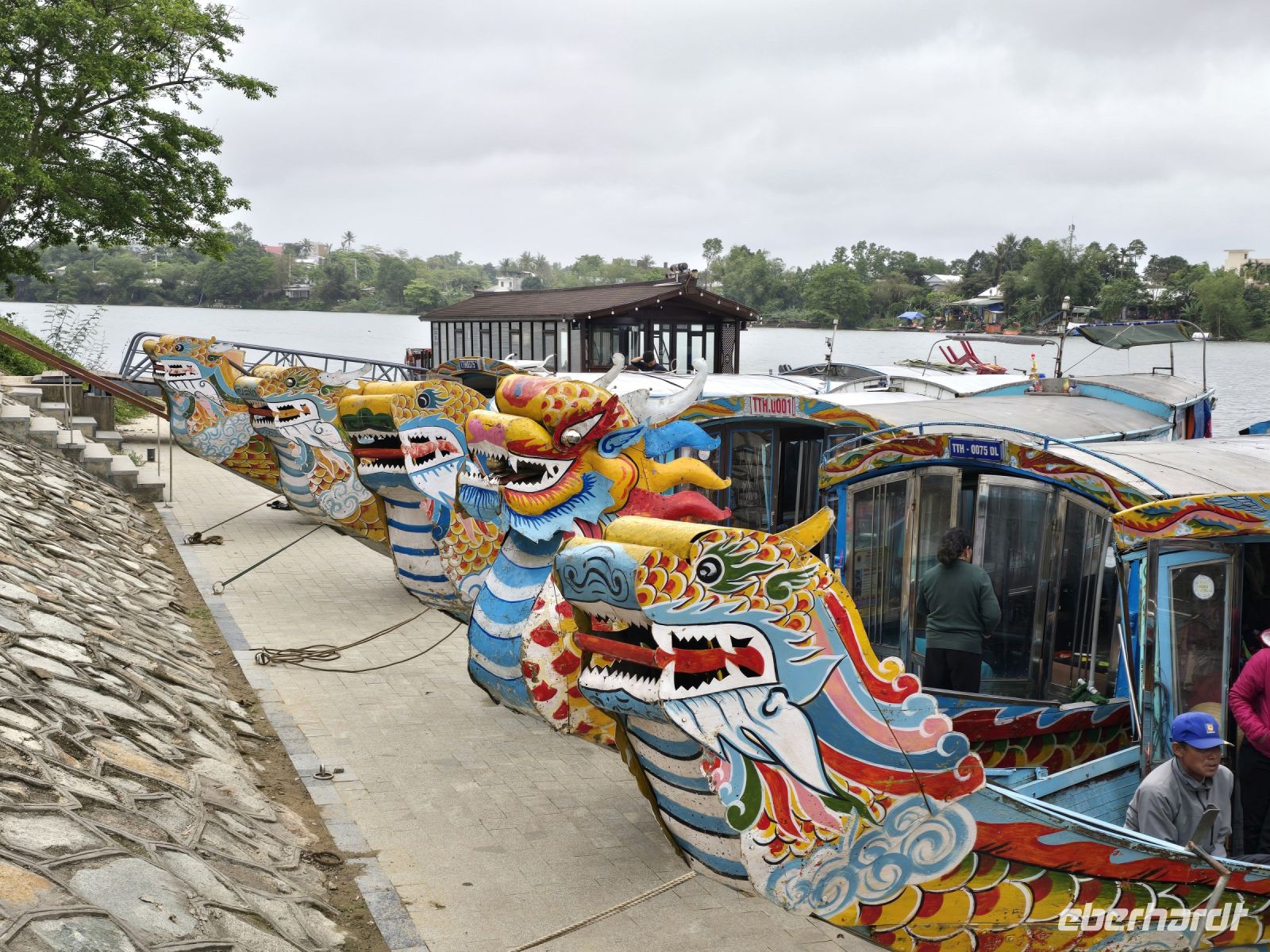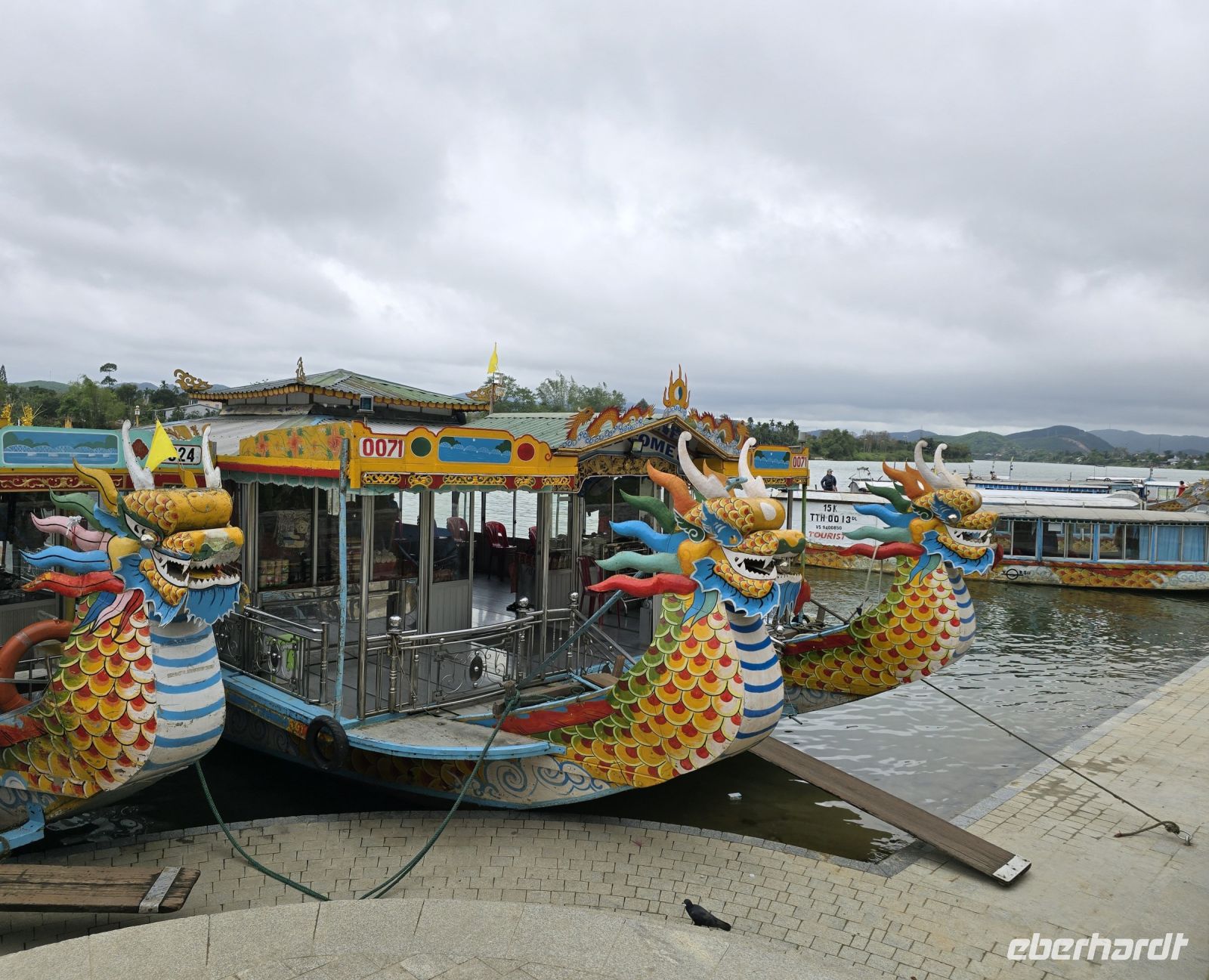 Nach all diesen eindrucksvollen Bildern im Kopf und diesen weiten Wegen die wir laufen mussten, sind wir jetzt reif für eine erholsame Mittagspause. Wir fahren ein kurzes Stück mit dem Bus bis zur Anlegestelle der Drachenboote und fahren mit dem Boot bis zum Zentrum von Hoe, wo wir in einem kleinen Straßencafé uns einen Imbiss gönnen.