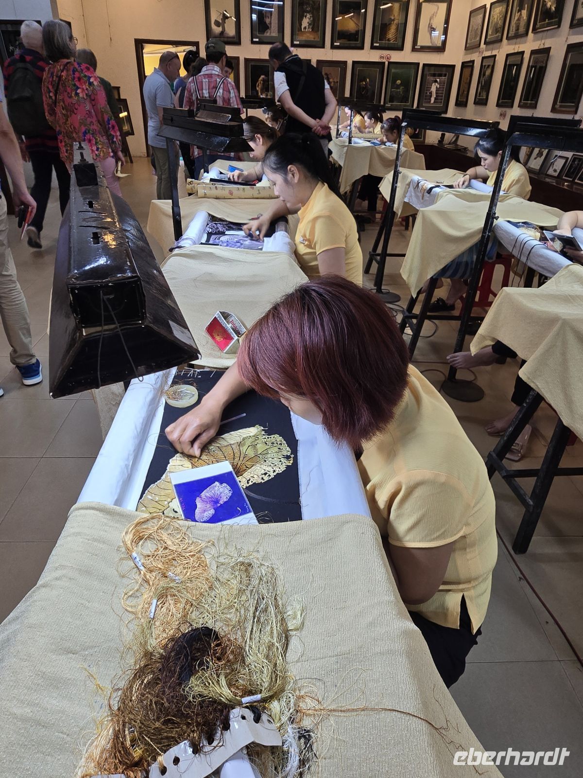 Am Nachmittag schauen wir uns noch ein Altes Bürgerhaus an, das unter Denkmalschutz steht und die typische alte Architektur der Häuser zeigt. Ein weiterer Besuch gilt der japanischen Brücke, einst gebaut um in das japanische Viertel mit dem Chinesischen zu verbinden. Heute steht die Brücke unter dem Schutz der UNESCO, und wird komplett generalsaniert. Viel zu sehen von der ehemaligen Brücke gibt es bist zur Fertigstellung der Renovierung leider nicht. Zum Ende unseres Stadtrundgang besuchen wir noch eine Seidenweberei. Hier wird gezeigt wie aus den dünnen Seitenpfaden der Kokons die feinen Stoffe gewebt werden. In angrenzenden Räumen werden die Stoffe weiterverarbeitet, entweder zu bestickten Tüchern oder zu Kleidung. Begeisterung lösen die schönen maßgeschneidert Hemden, Jacketts bei unserer Gruppe. Für einige Teilnehmer unserer Reisegruppe werden die Näherinnen in der kommenden Nacht arbeiten, damit am nächsten Morgen ihre Kleidungsstücke geliefert werden können.