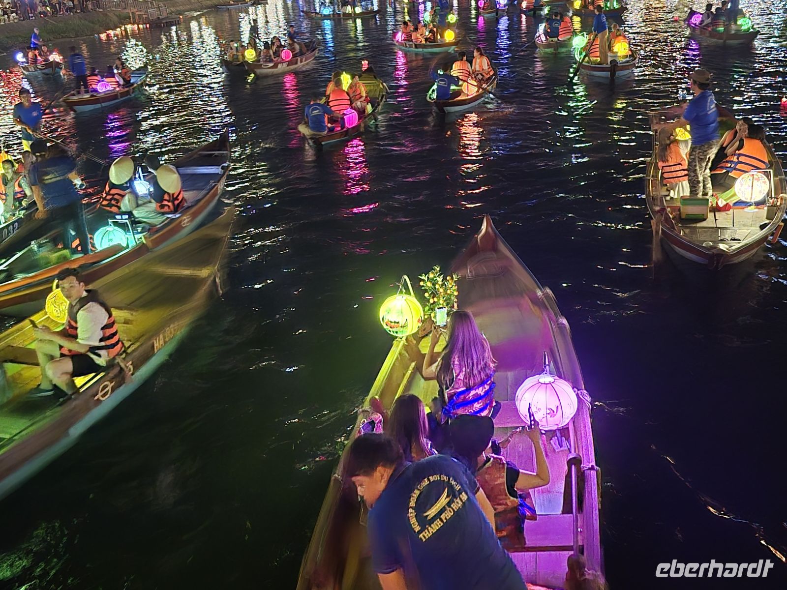 Hoi An ist die Lampion Stadt in Vietnam. Jeden Abend wird die die Stadt mit tausenden Lampions beleuchtet. Auf dem Fluss schwimmen Boote geschmückt mit Lampions, und für Glück im Leben werden kleine Pappboote mit einer Kerze in den Fluss abgesetzt. Das ist natürlich unser Interesse dieses bunte Lichterspektakel anzuschauen. Wir fahren in die Stadt bummeln nochmal durch die Gassen, unsere Fotografen können gar nicht genug Motive entdecken. Überall riecht es nach leckerem Essen entweder in kleinen Garständen oder in den Restaurants. Auch wir treffen uns zu unserem gemeinsamen Abendessen hier in der Altstadt und sind mal wieder komplett begeistert von unserem Menü.