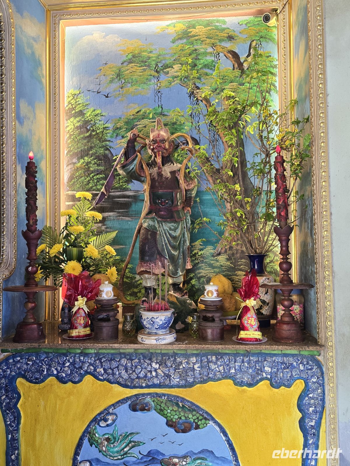 So wie jede reiche Familie einen Tempel haben musste, besaß natürlich die kaiserliche Familie einen sehr prunkvollen Tempel. Auch in diesem Tempel sind die Farben Rot und Gelb dominant. Gelb für Reichtum und Rot für Glück im Leben.