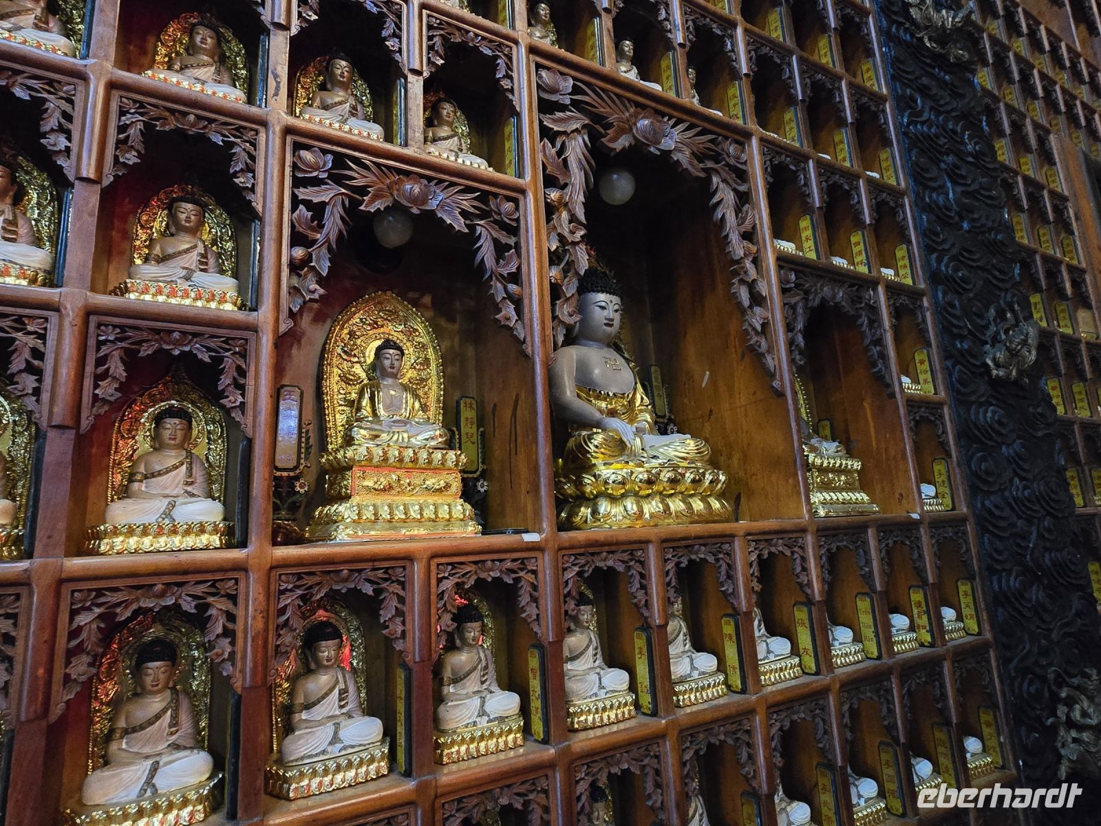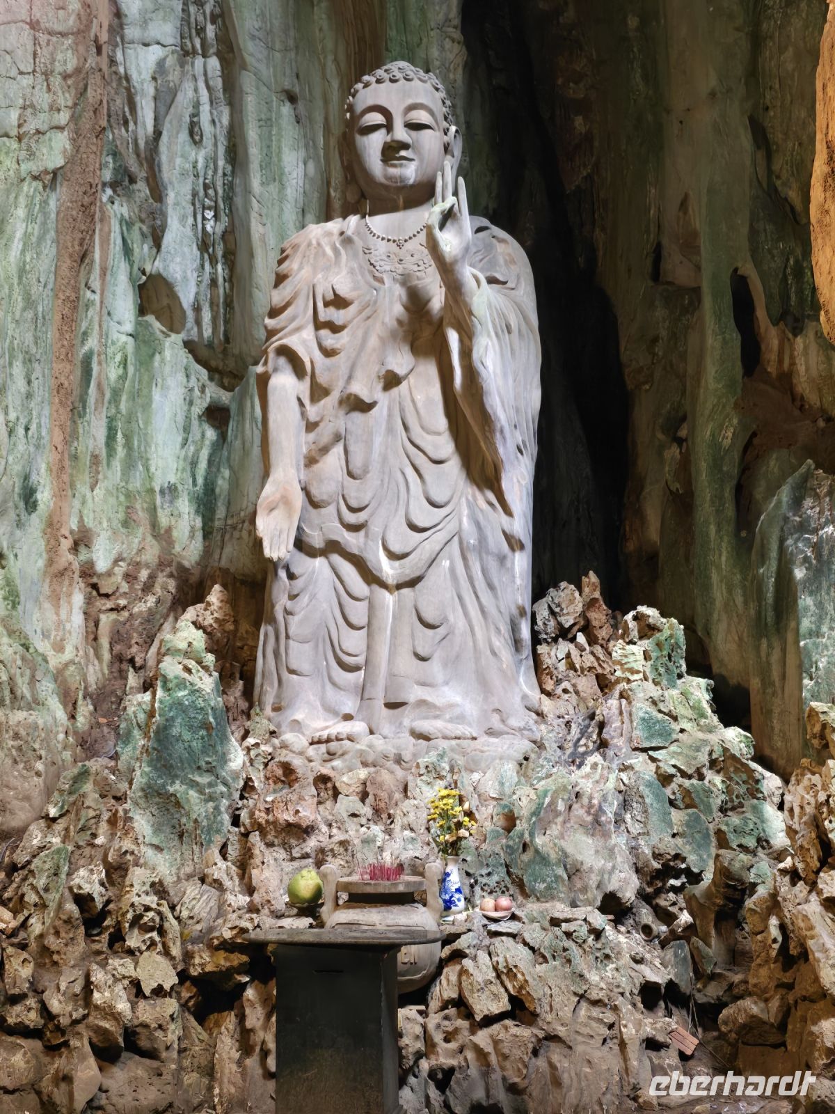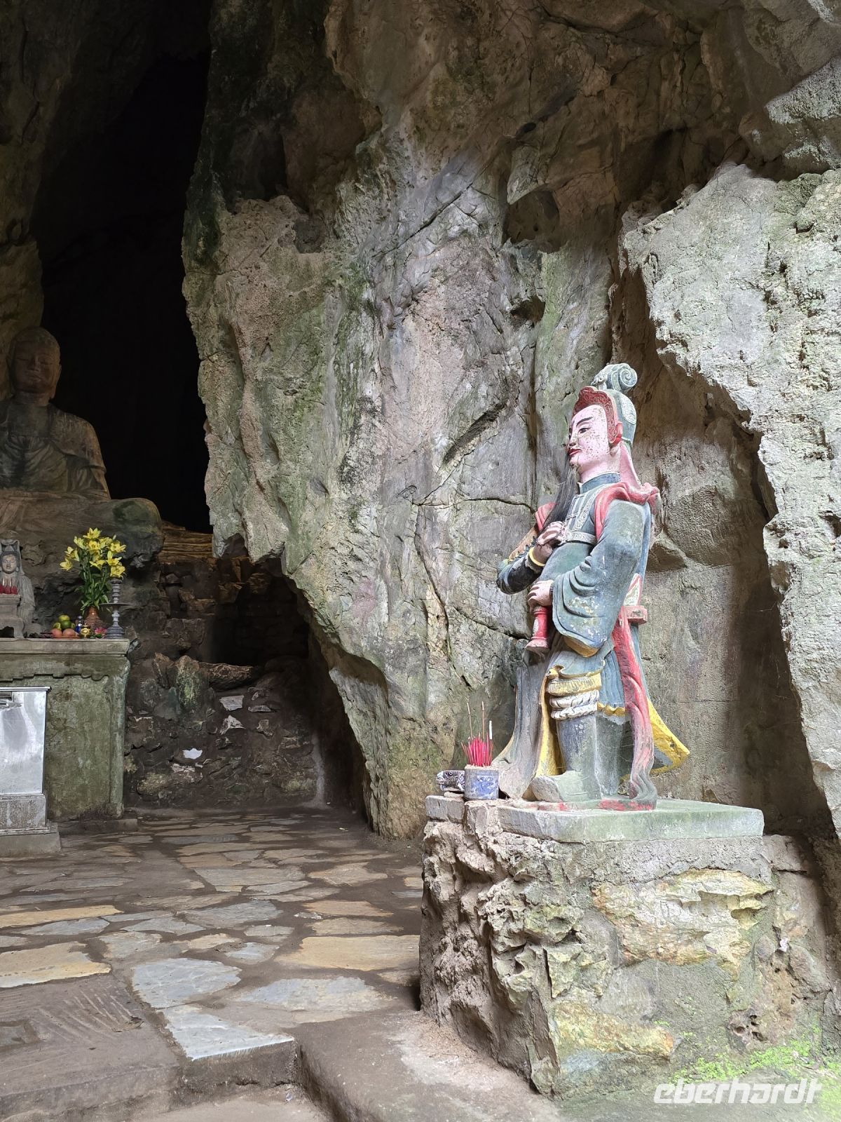 Noch einige Meter weiter, dann kommen wir in mehrere heiligen Höhlen, jede Höhle ist dominiert von einer Heiligenfigur entweder dargestellt als Buddha oder in einer anderen mythischen Darstellung. Wir bekamen dazu sehr ausführliche Erklärungen von unserem Reiseleiter Ming.