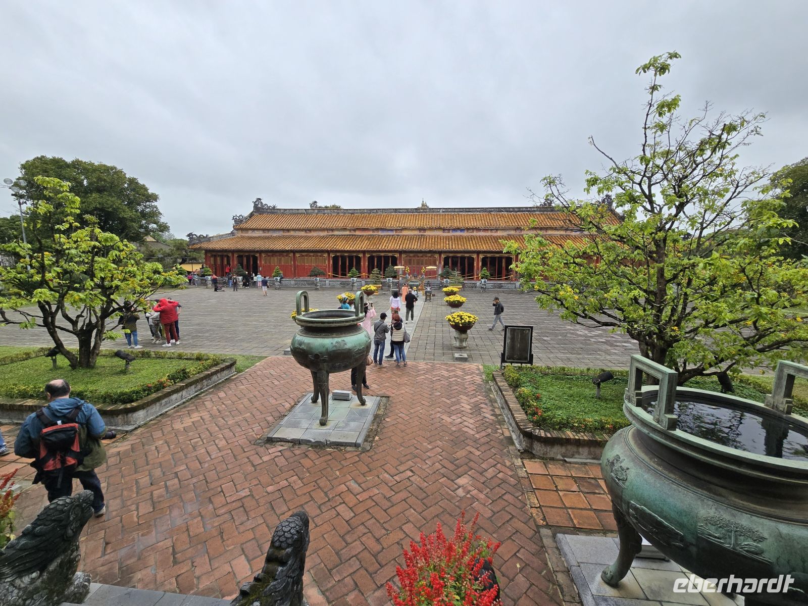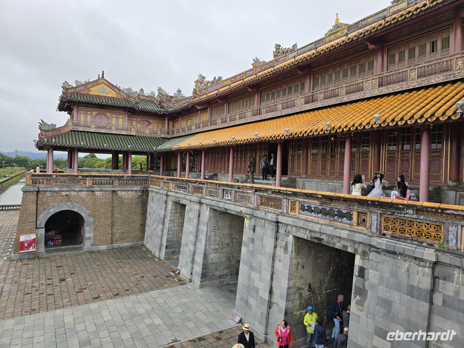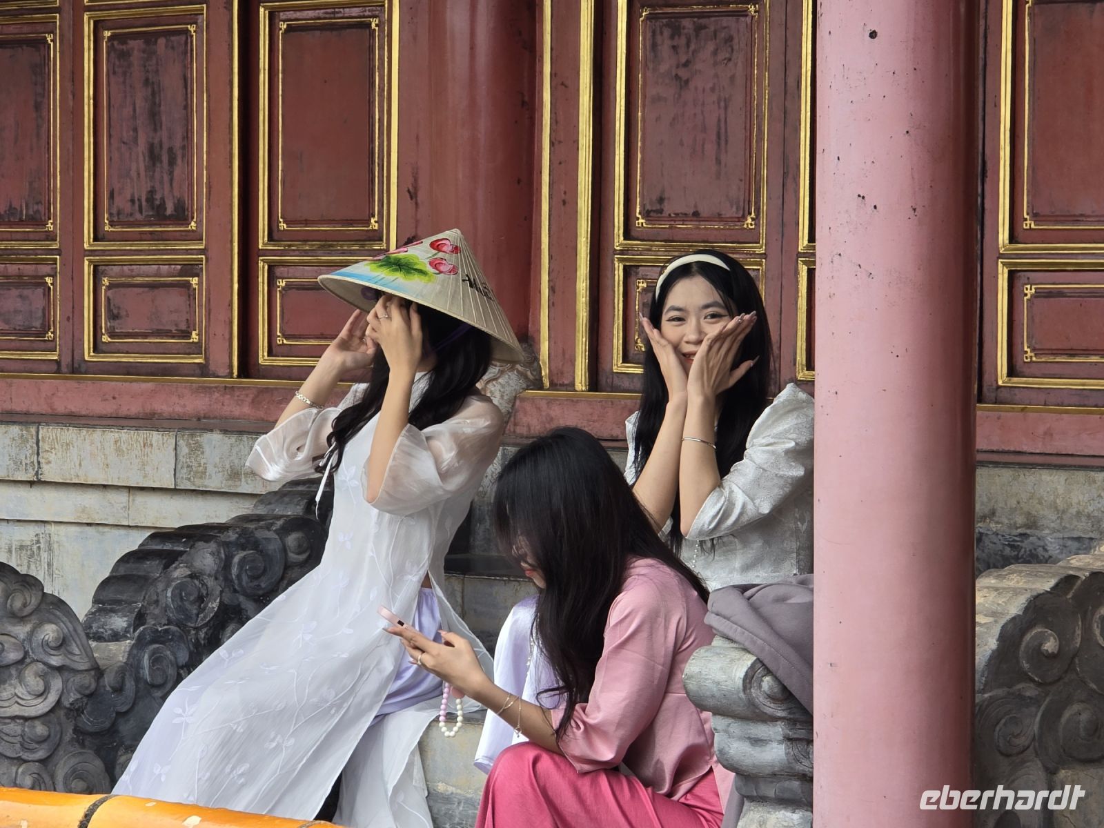 Unser Spaziergang durch die kaiserlichen Anlagen wurde immer weitläufiger, die Größe der Anlage konnten wir in unseren Beinen spüren. Es war auch sehr auffällig und schön anzuschauen, dass viele junge Vietnamesinnen in traditionelle Kleider geschlüpften und sich in Pose vor den eindrucksvollen Gebäuden und Palästen fotografieren ließen.