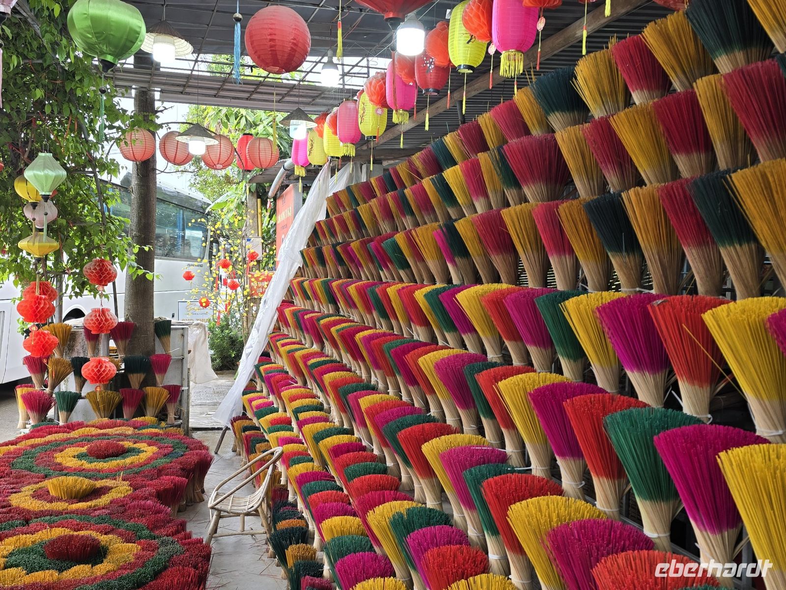 Bevor wir ins Hotel zurückkehren schauen wir uns noch die Manufakturstraße der Räucherstäbchen an. Es ist links und rechts der Straße alles voll mit Räucherstäbchen in Gelb und in Rot selbstverständlich die Farben der Tempel.