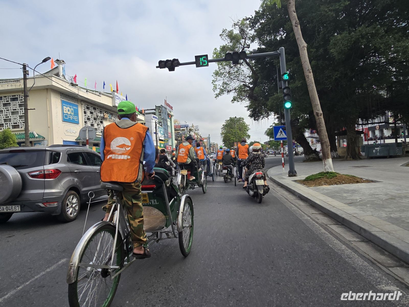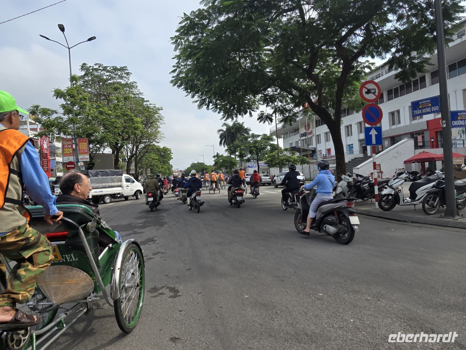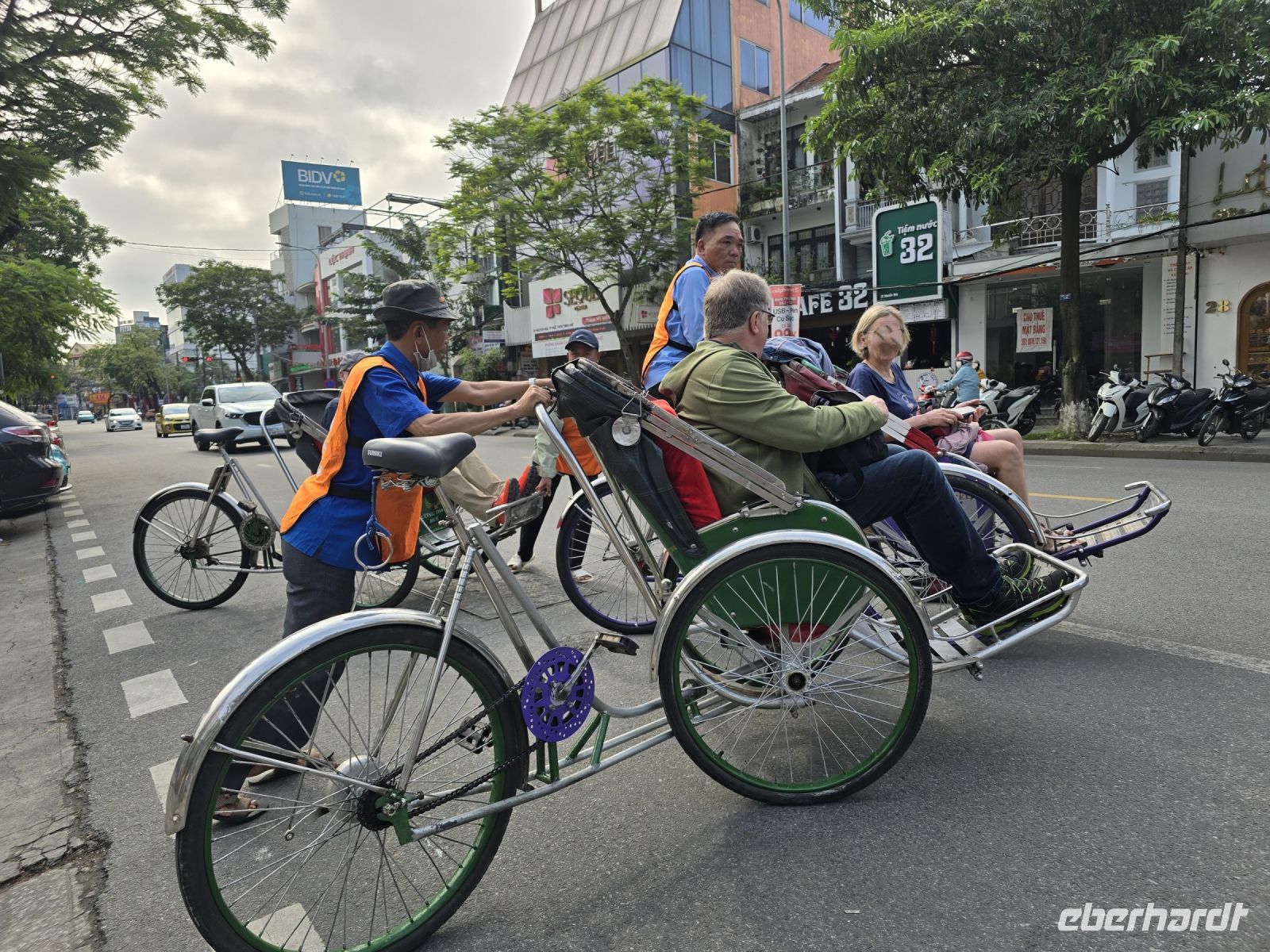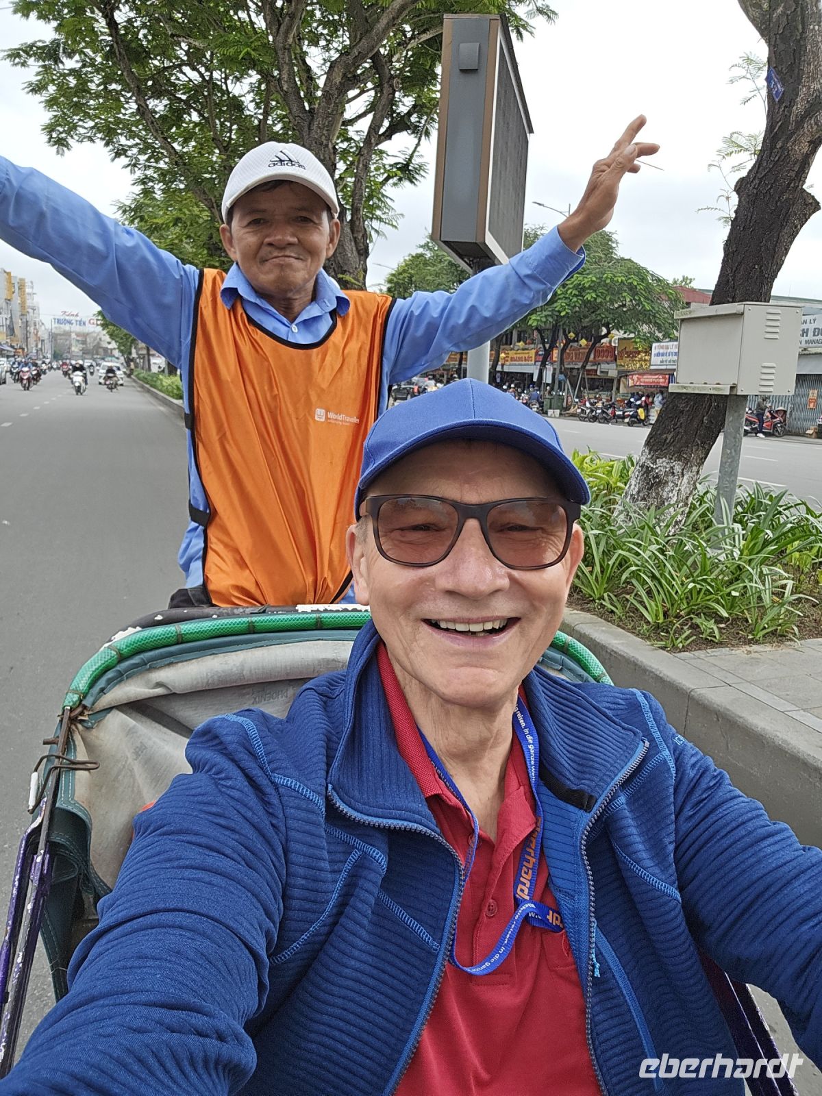 Dann ging es wieder über Umwege zurück zum Hotel, es war ein tolle Ausflug am Morgen und jetzt müssen wir Koffer packen und mit dem Bus zum Flughafen fahren. Diese Rikschafahrt war ein schöner Anschluss von Hue, und unsere 19 Fahrer hatten auch Spass mit der Tour und waren bereit auch uns mal auf den Fahrradsattel sitzen zu lassen. Unser Reiseleiter Ming hat uns in seiner Heimat sehr gut betreut und mit seinem speziellen Humor hatten wir viel Spass mit ihm.