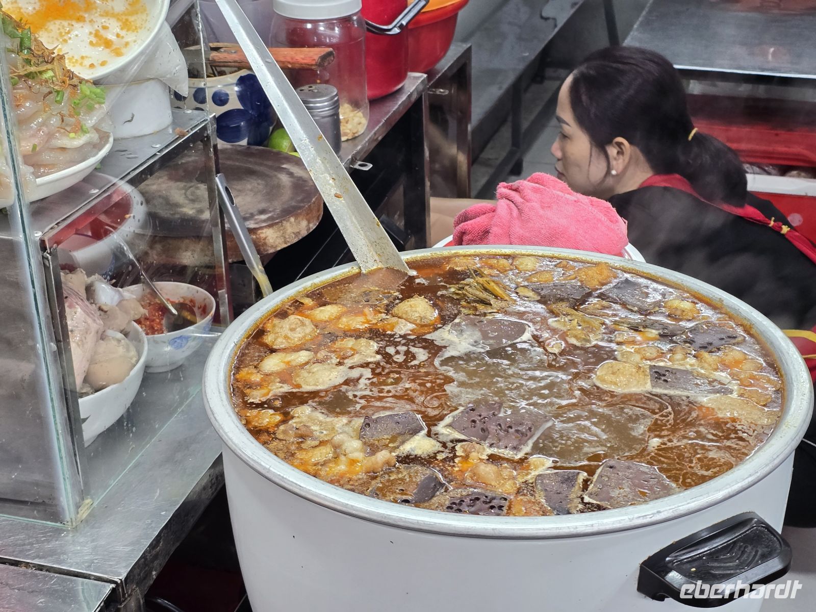Für eine kleine Pause gehen wir in das Altstadtquartier. Neben all dem Trubel in diesen Gassen kann man in Kleinen Ständen sehr gut essen und Kaffee trinken. Sehr interessant und geschmackvoll ist der berühmte Eierkaffee. Für die Zubereitung wird Eigelb mit Zucker schaumig geschlagen, und dann der Kaffee untergegossen. Durch vorsichtiges Anheben der Mischung mit dem Löffel, wird der Kaffee nach oben gehoben, ohne jedoch den Eischaum zu zerstören. Eine ganz neue Kaffeekreation und sehr lecker.