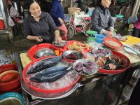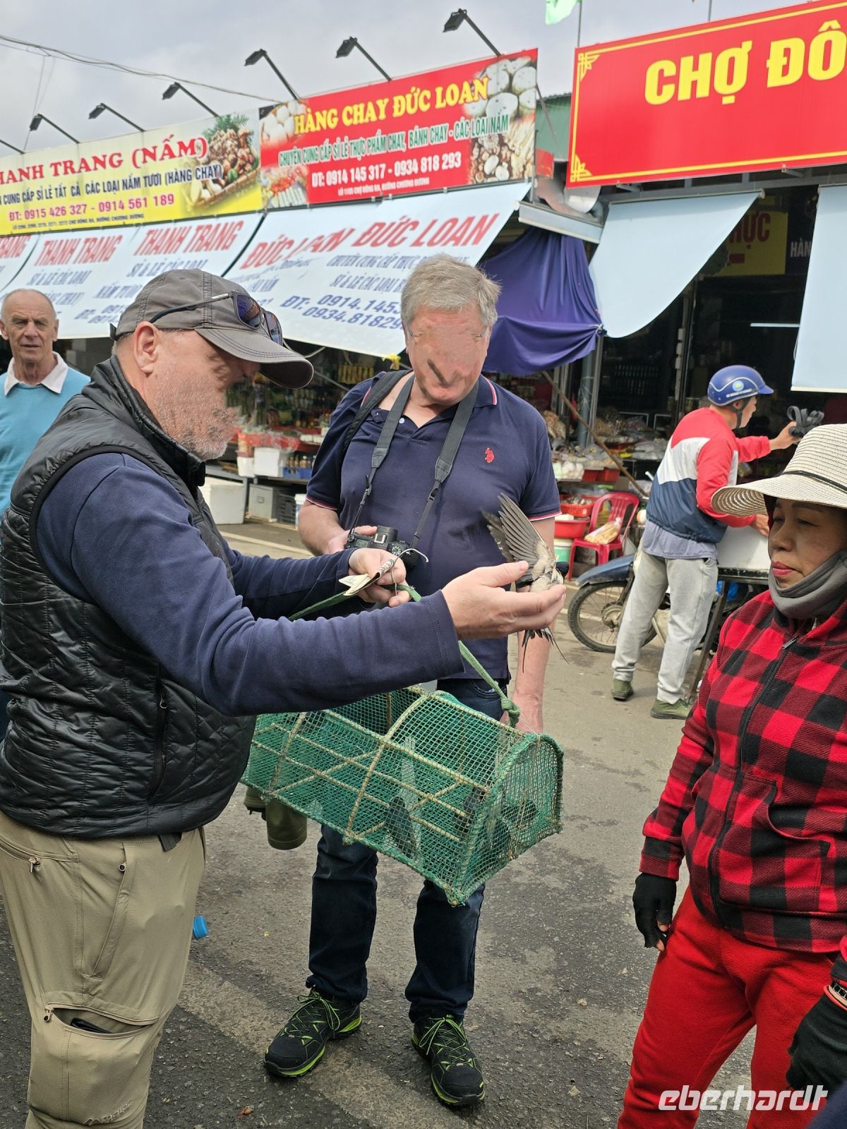 Gleich am Morgen unternehmen wir eine Rikschafahrt durch Hue. Mitten im Getümmel alte Gassen und Hauptverkehrsstraßen, als Ziel der große Markt. Über den Markt sind wir zu Fuß gegangen. Jetzt am frühen Vormittag konnten wir dort kuriose Kochvorbereitungen gesehen. Fleisch zerkleinern, Gemüse und Scampi kochen in riesigen Töpfen, an anderer Stelle werden Zwiebel und Knoblauch geschält und geschnitten, ganze Säcke werden verarbeitet. Eine Frau hat uns Vögel angeboten, um sie freizulassen, für 1 US-Dollar pro Vogel, einer unserer Teilnehmer hat Mitleid und hat den ganzen Käfig befreit.