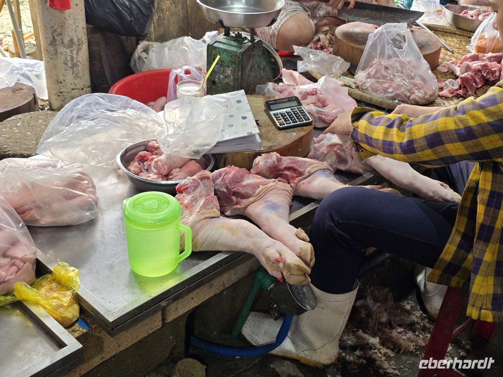 Einige von uns sind schon einmal um den Block gelaufen und haben dabei jede Menge kleine Lädchen entdeckt, oder kleine Unterschlüpfe in dehnen gekocht wird, gibt es überall. Aber nicht nur gekocht auch handwerkliche Shops werden hier überall angeboten. Es scheint das jeder der kann, sein eigenes Geschäft aufmacht. Heute regnet es und der Boden ist feucht, man merkt das der Belag der Gehwege und Straßen glatt rutschig sind, hier wird viel gekocht, hier ist viel Fett auf den Gehwegen man muss tatsächlich aufpassen nicht auszurutschen.