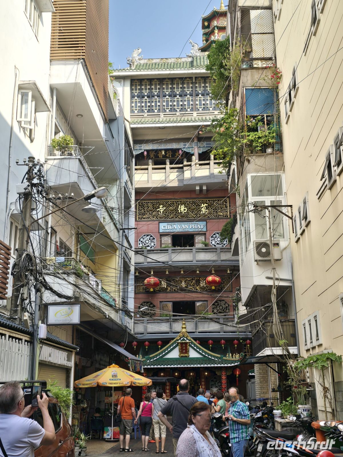 Heute Morgen haben wir schon einen frühen Start, schon vor 8:00 Uhr packen wir unsere Koffer in den Bus und machen uns auf den Weg zum Mekong Delta. Aber zuvor besuchen wir noch die Pagode der 10.000 Buddhas. Vom Hotel ist die Pagode nur einen Katzensprung entfernt, aber in der Rush Hour am Montagmorgen benötigen wir dafür mit dem Bus eine ganze halbe Stunde. Dann endlich angekommen sehen wir zwischen den Wohnhäusern ein Vierstöckiges Haus ziemlich schmal, aber wie gesagt 4 Stockwerke hoch. Diese Pagode ist noch sehr jung sie wurde erst 1994 gebaut. Über alle 4 Stockwerke sind die Buddha Altare verteilt je höher das Stockwerk, umso prachtvoller werden die Altare. Wir fragen uns weshalb diese Buddhas so unterschiedlich aussehen, und Trong, unser Reiseleiter, erklärt uns das es nur einen einzigen Buddha an höchster Stelle gibt. Aber dieser Buddha wird in unterschiedlichen Eigenschaften gezeigt, das steht für die vielfältigen Eigenschaften des Buddhas in allen Lebenslagen. Daneben gibt es noch seinen weltlichen Stellvertreter, der ist in dieser Pagode auch dargestellt. Trong hat uns noch weitere Einblicke in den buddhistischen Glauben gegeben, was sehr aufschlussreich war.